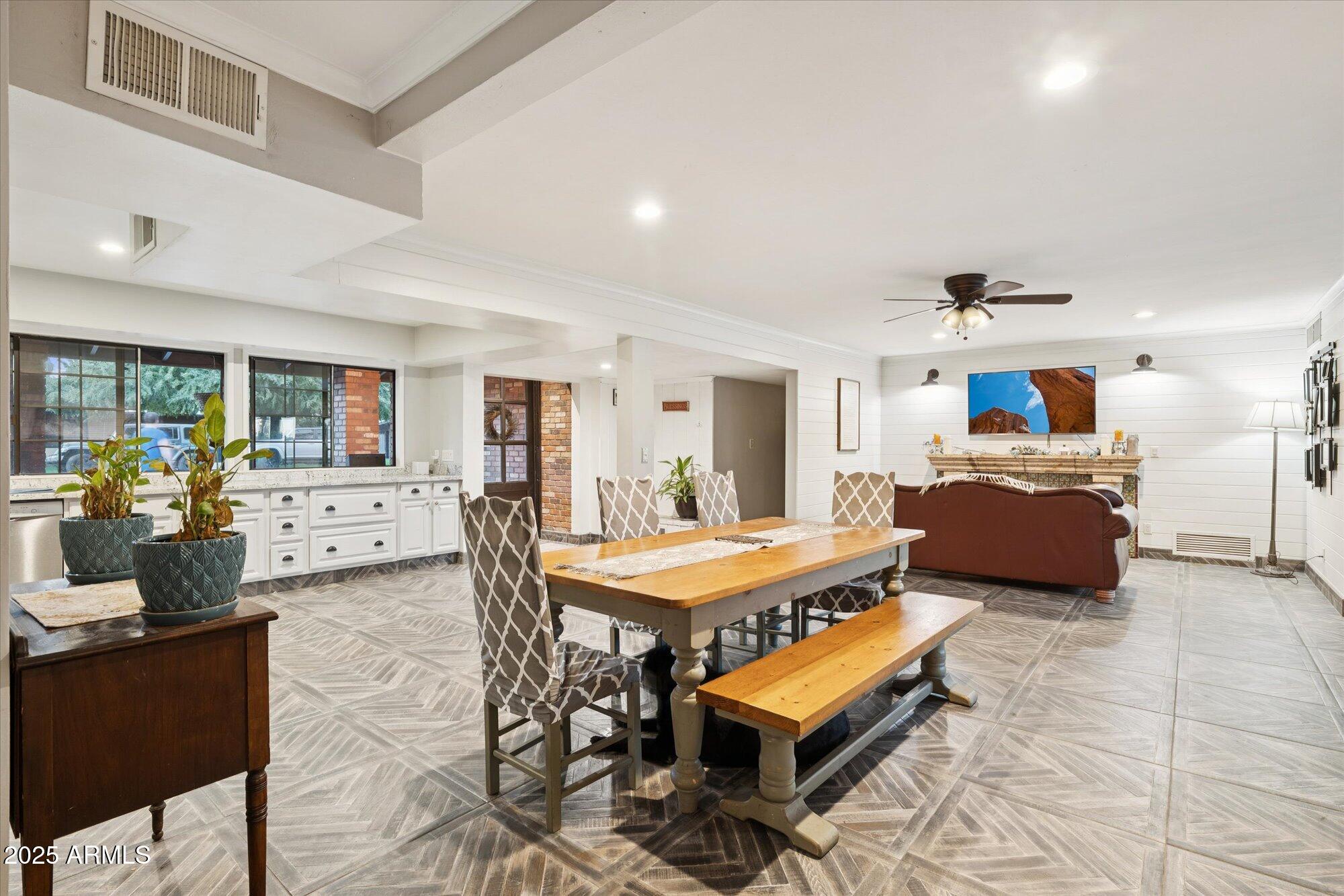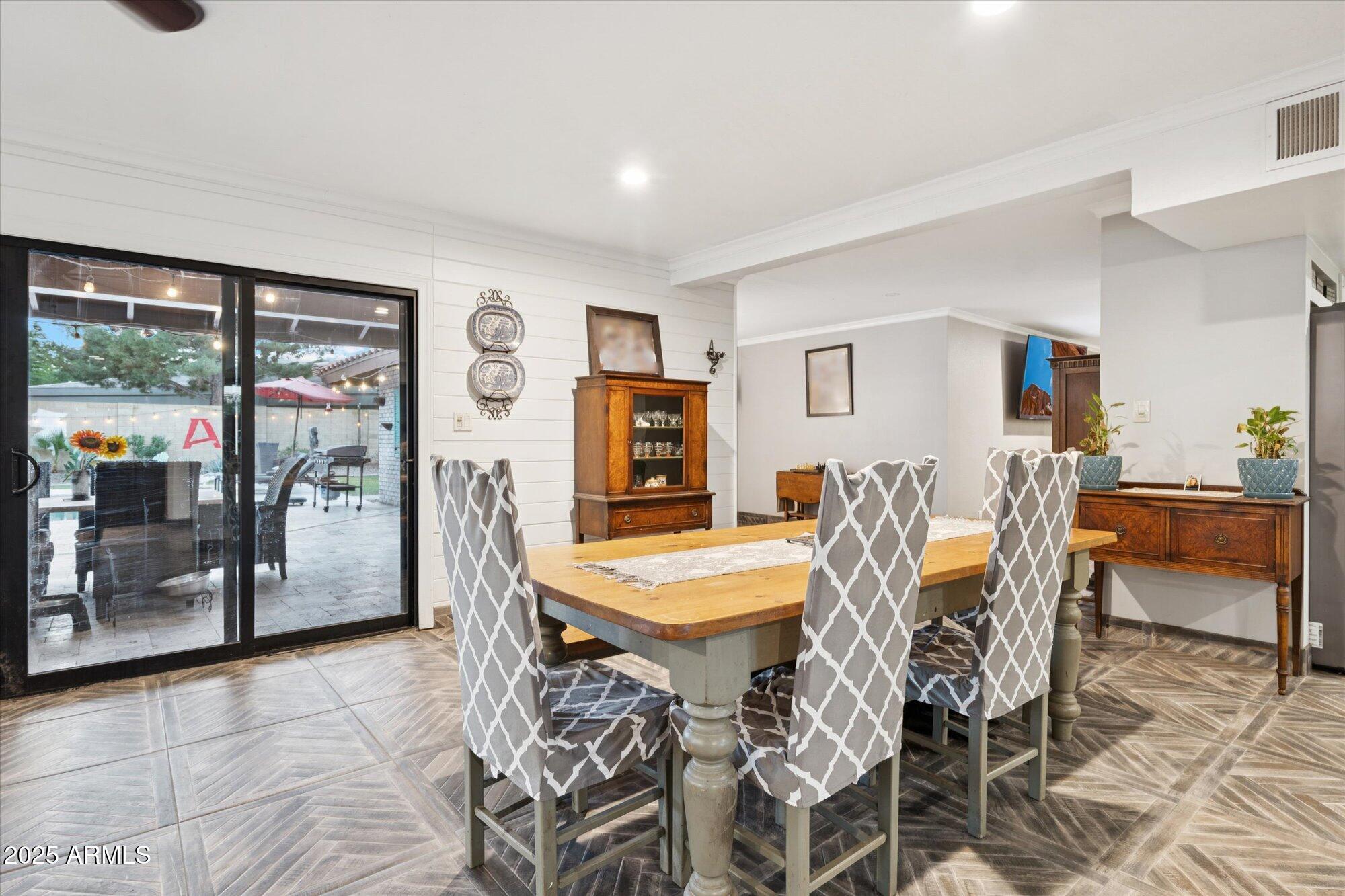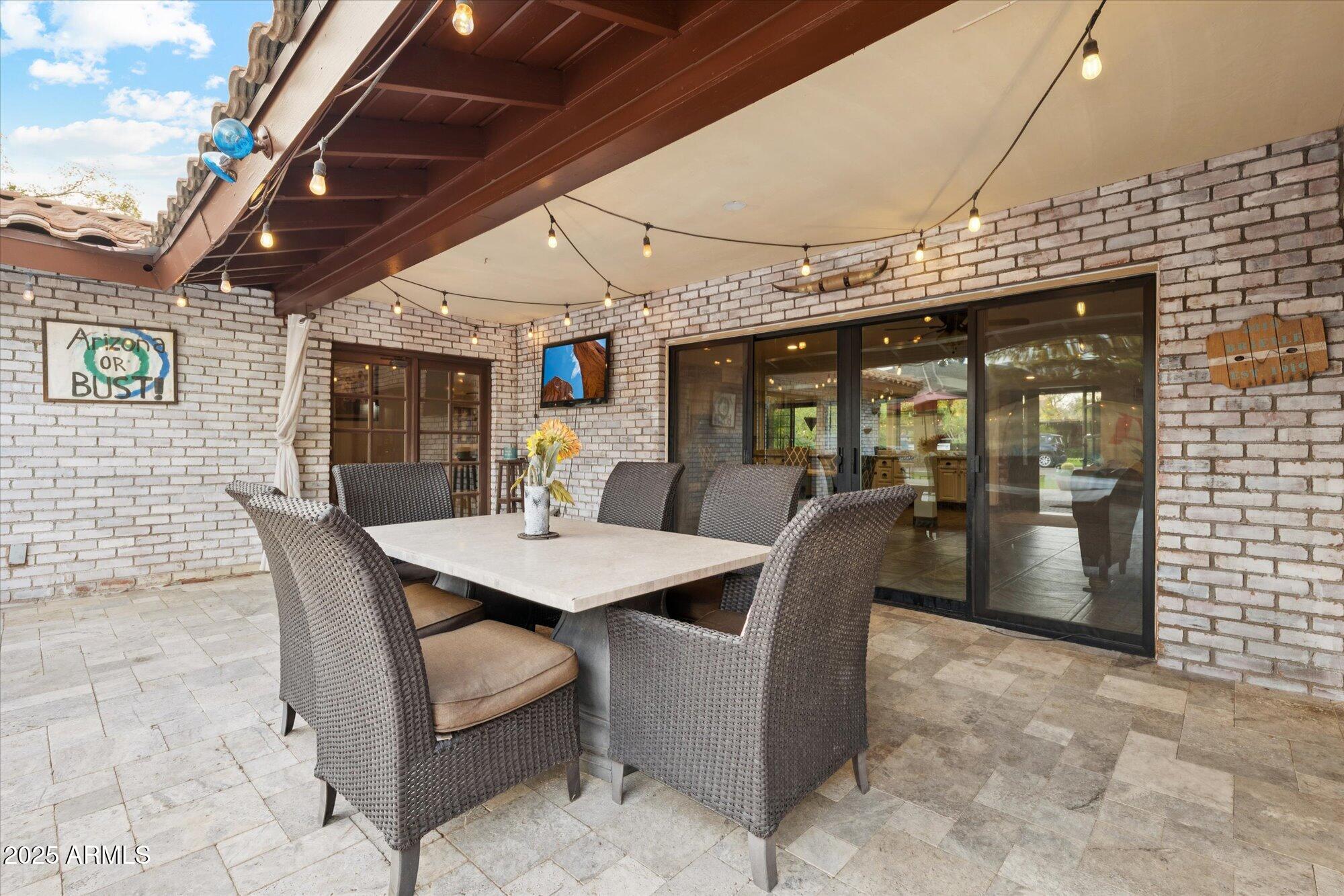 Nestled in a private cul-de-sac within the highly sought-after North Central Corridor, this single-level home seamlessly combines timeless character with modern upgrades. A welcoming front yard shaded by mature trees and a spacious sitting area creates the perfect first impression. Inside, the open-concept layout connects beautifully updated kitchen and living spaces, ideal for entertaining or comfortable everyday living. With 5 bedrooms and 3 bathrooms, plus a 121 sqft. casita, there's plenty of flexibility for guests, work, or hobbies. The backyard retreat features a play pool (updated in 2021), tranquil water feature, and new pool equipment. An expanded covered patio with Travertine tile provides the perfect spot for outdoor dining or quiet evenings under the stars. Additional highlights include a split floor plan, newer concrete tile roof, paver driveway, two fireplaces, and no HOA. Located just steps from the Bridle Path and close to top-rated schools, this home offers both comfort and opportunity to add your personal touch.