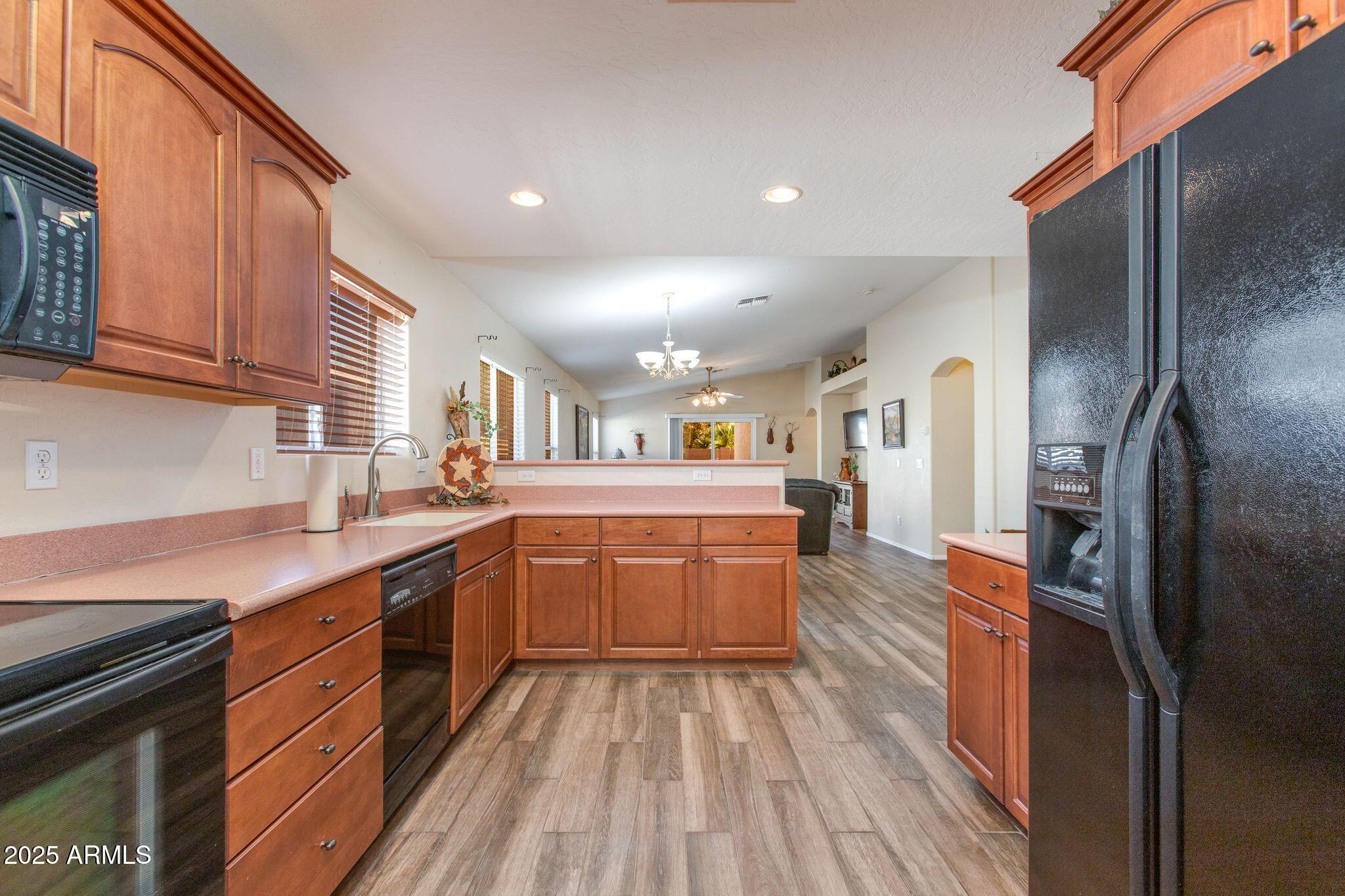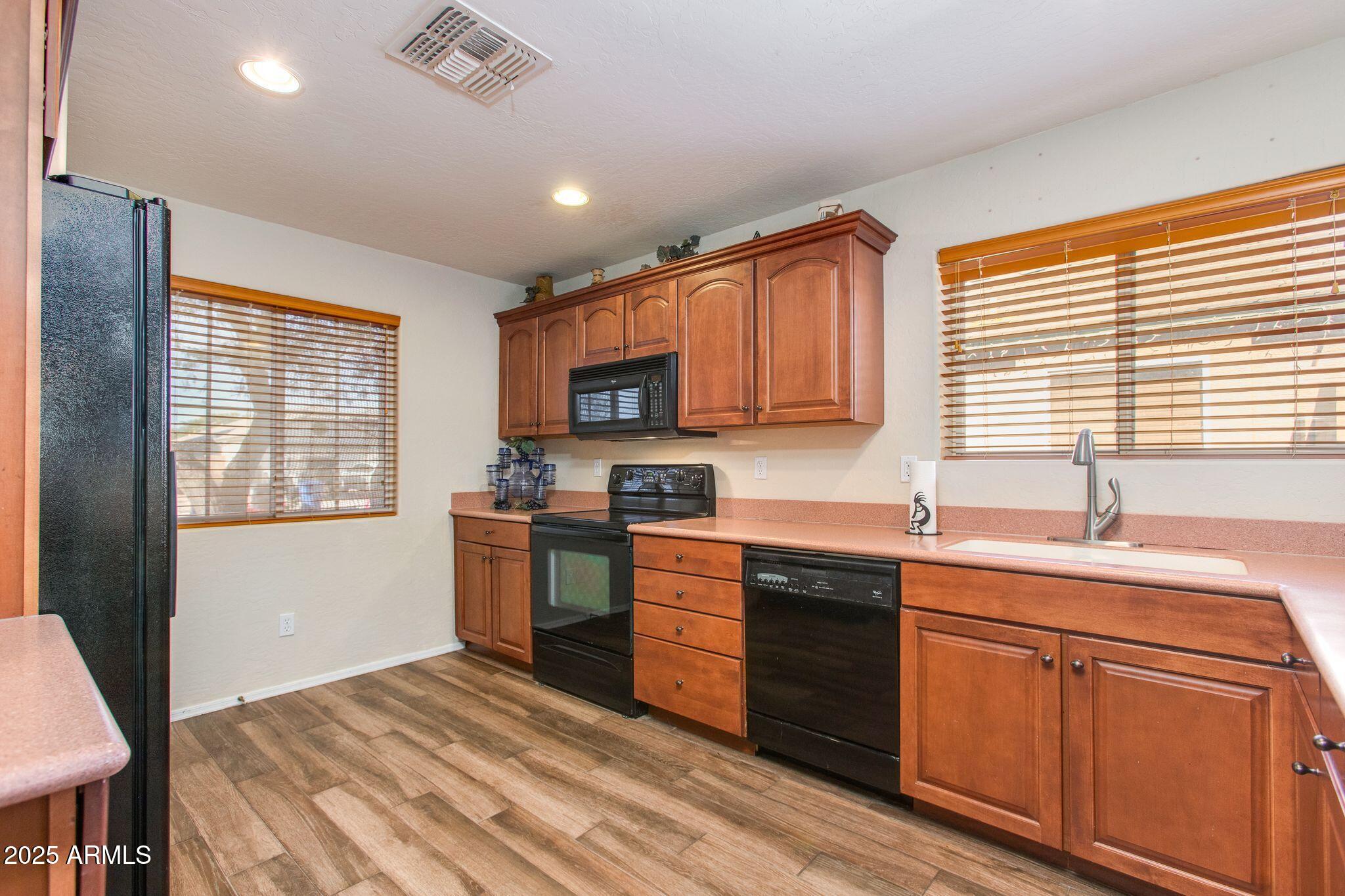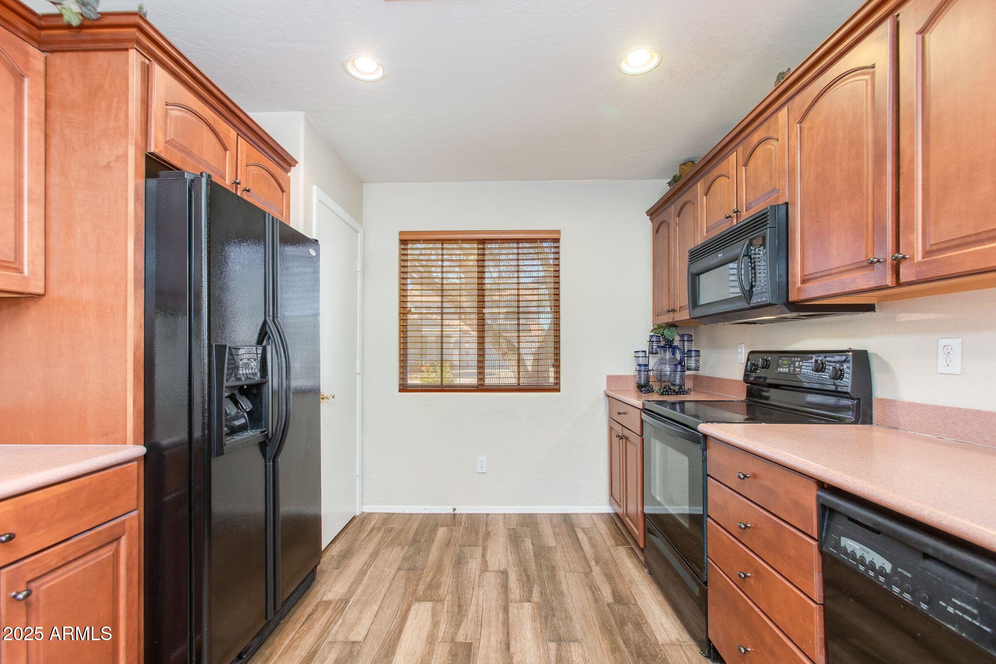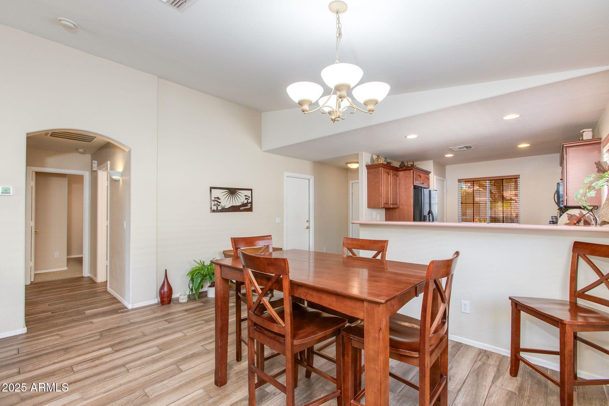 Beautiful single-level home in a highly desired neighborhood! This spacious 4 bedroom / 2 bath property offers an open, inviting split floor plan with vaulted ceilings and fresh modern updates throughout. The stylish kitchen features updated cabinets and counters, matching appliances, pantry, and a large breakfast bar. Enjoy the updated flooring, new lighting, and tasteful finishes throughout. Primary suite offers generous space and privacy, with a walk in closet and separate bathroom. Three additional bedrooms and secondary bathroom provide ample space, along with a conveniently located laundry room. Desert landscaped backyard offers a spacious, fully paved patio area with attractive brick pavers, perfect for low-maintenance living and outdoor entertaining. This home is truly move-in ready, exceptionally maintained, and located close to schools, parks, shopping, and dining. Opportunities like this don't last, come see this beautifully updated home today!