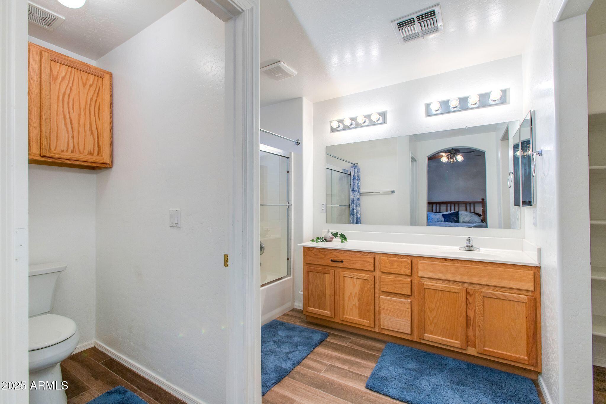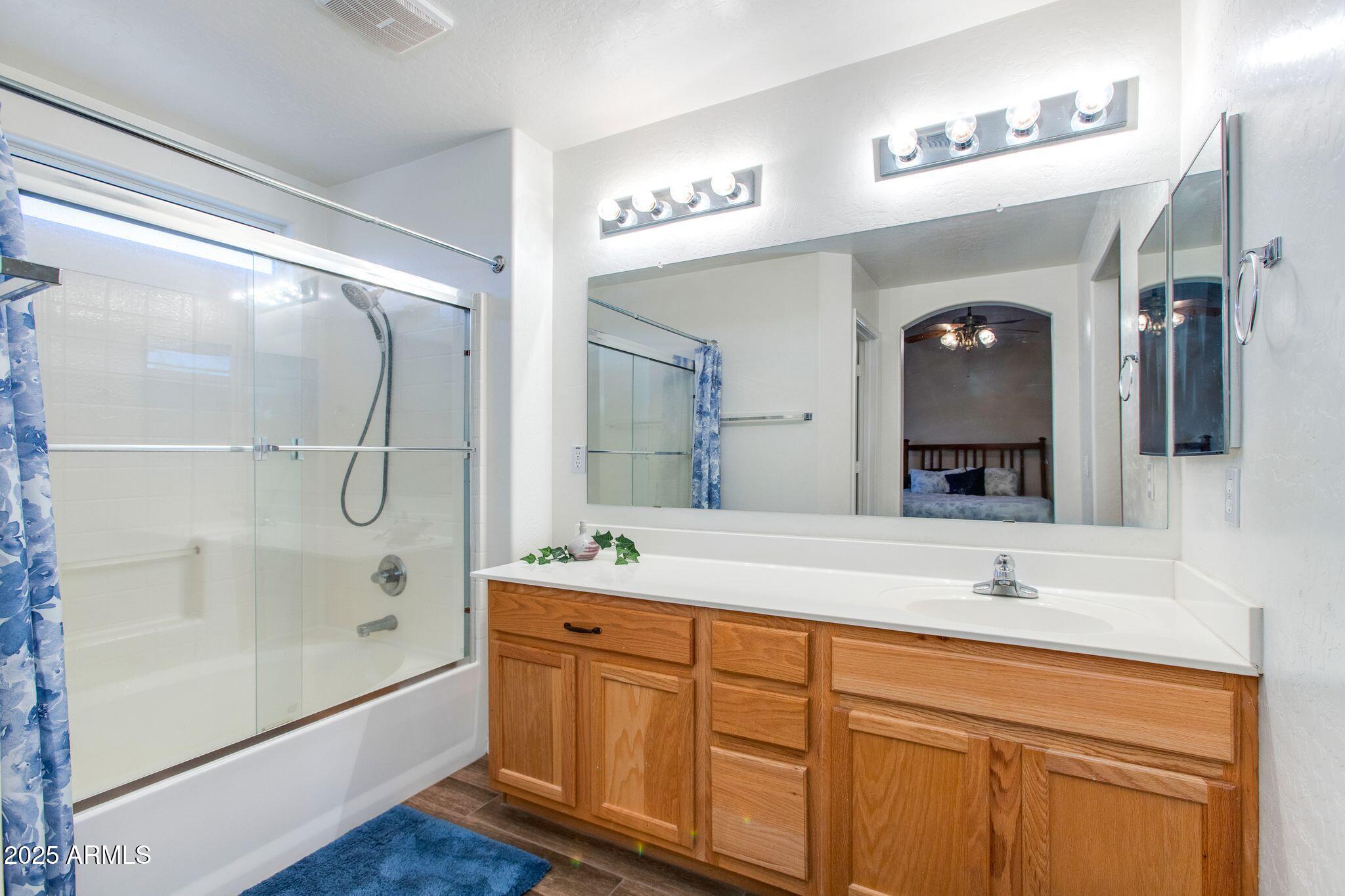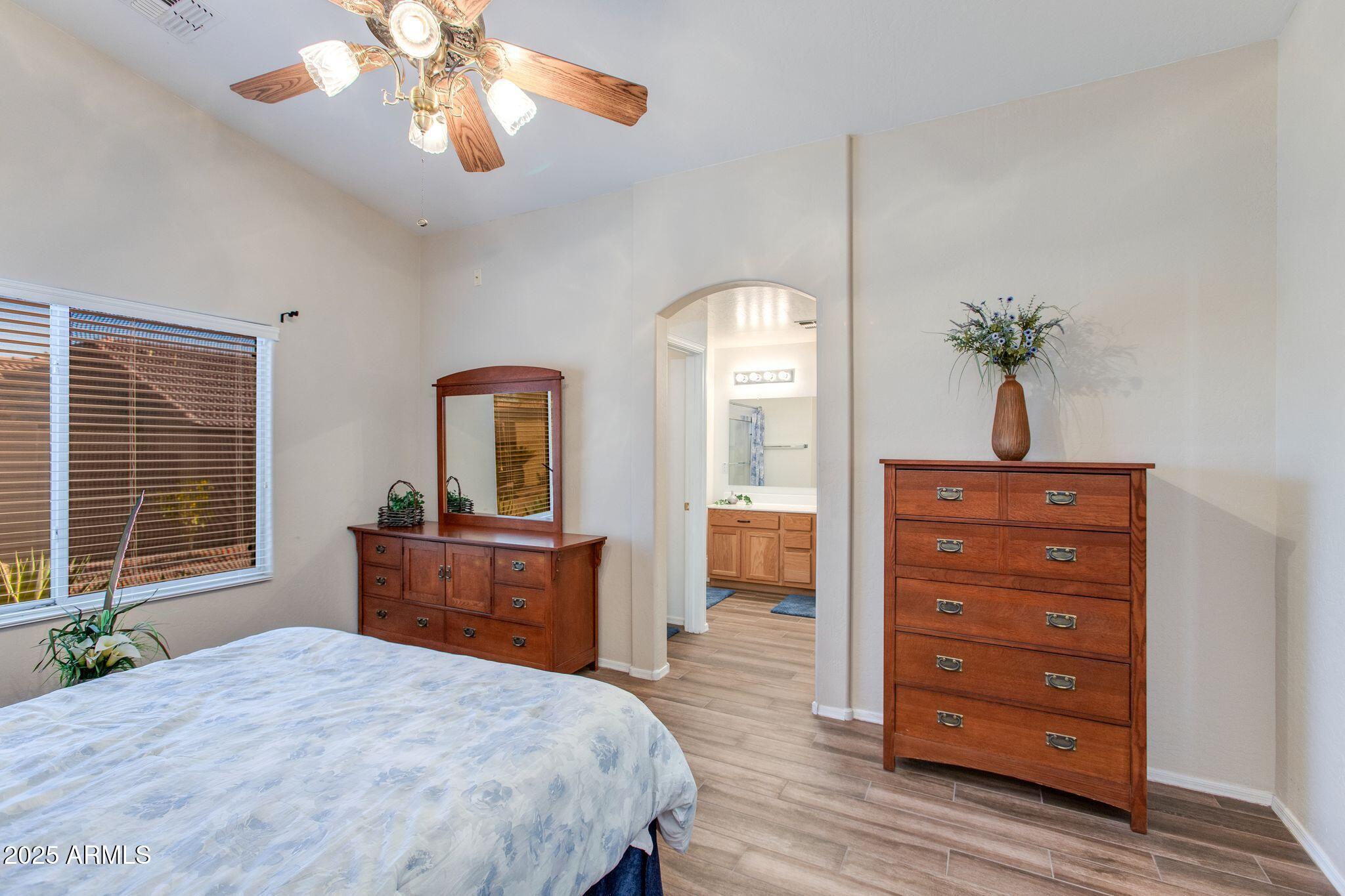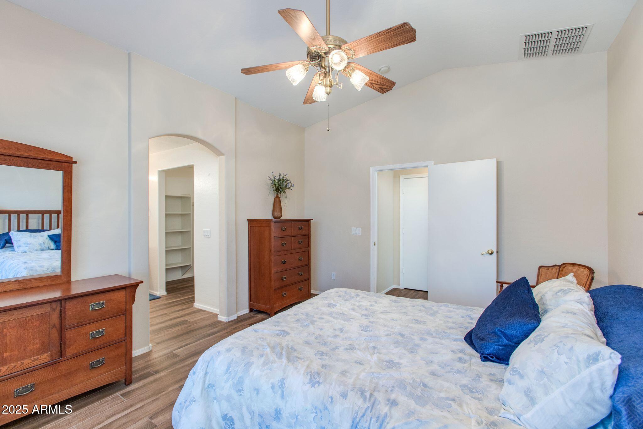 Beautiful single-level home in a highly desired neighborhood! This spacious 4 bedroom / 2 bath property offers an open, inviting split floor plan with vaulted ceilings and fresh modern updates throughout. The stylish kitchen features updated cabinets and counters, matching appliances, pantry, and a large breakfast bar. Enjoy the updated flooring, new lighting, and tasteful finishes throughout. Primary suite offers generous space and privacy, with a walk in closet and separate bathroom. Three additional bedrooms and secondary bathroom provide ample space, along with a conveniently located laundry room. Desert landscaped backyard offers a spacious, fully paved patio area with attractive brick pavers, perfect for low-maintenance living and outdoor entertaining. This home is truly move-in ready, exceptionally maintained, and located close to schools, parks, shopping, and dining. Opportunities like this don't last, come see this beautifully updated home today!