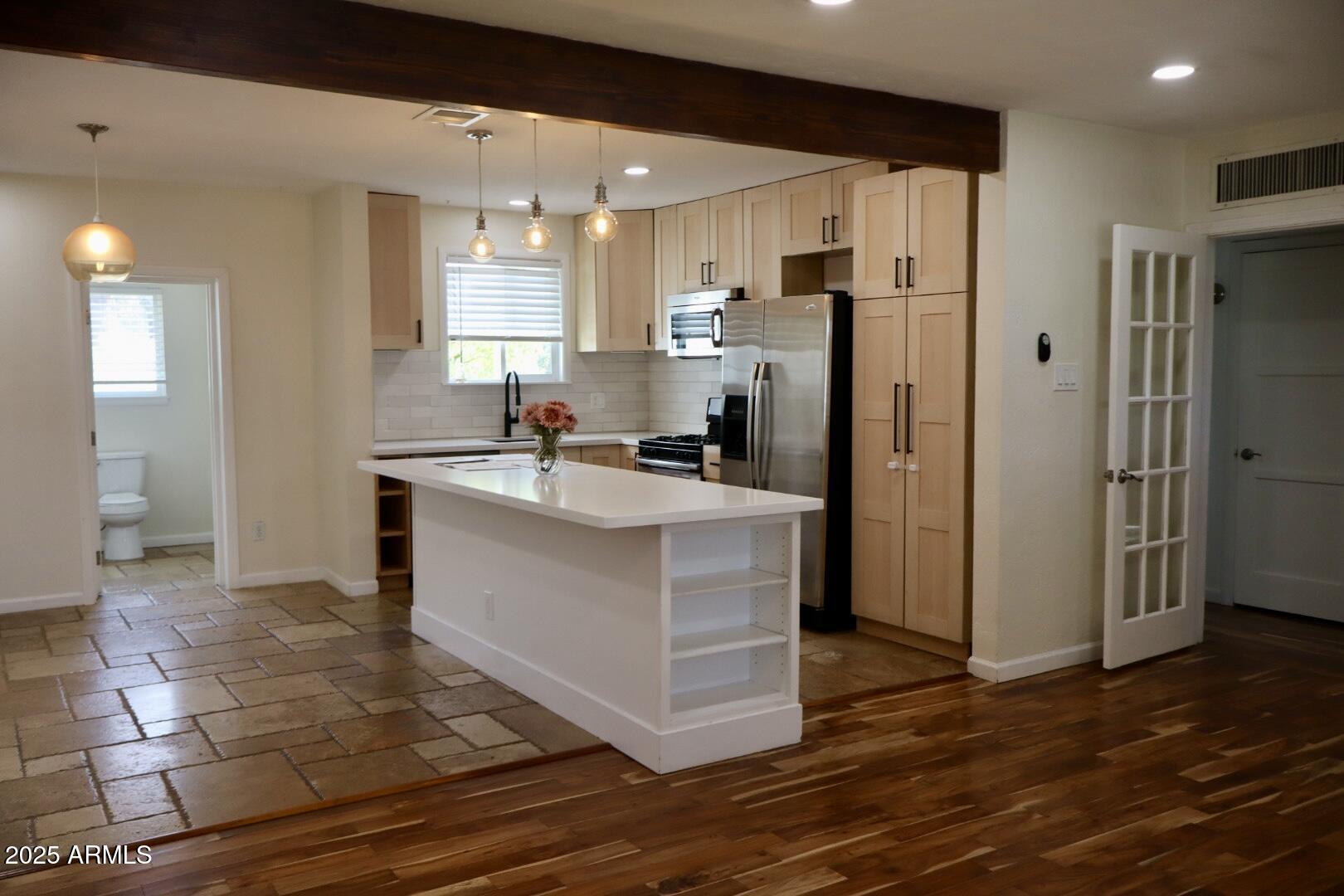 This home features a spacious floorplan filled with natural light, a beautifully updated kitchen with abundant cabinet space, and includes refrigerator, washer, and dryer. The large backyard is a private retreat, boasting a sparkling pool, putting green, synthetic turf, and a shaded lounge area -- perfect for entertaining or relaxing. Pool service is provided by the landlord, ensuring year-round enjoyment with ease. Historic charm, modern updates, and a vibrant community all in one of the most sought-after neighborhoods in Central Phoenix.