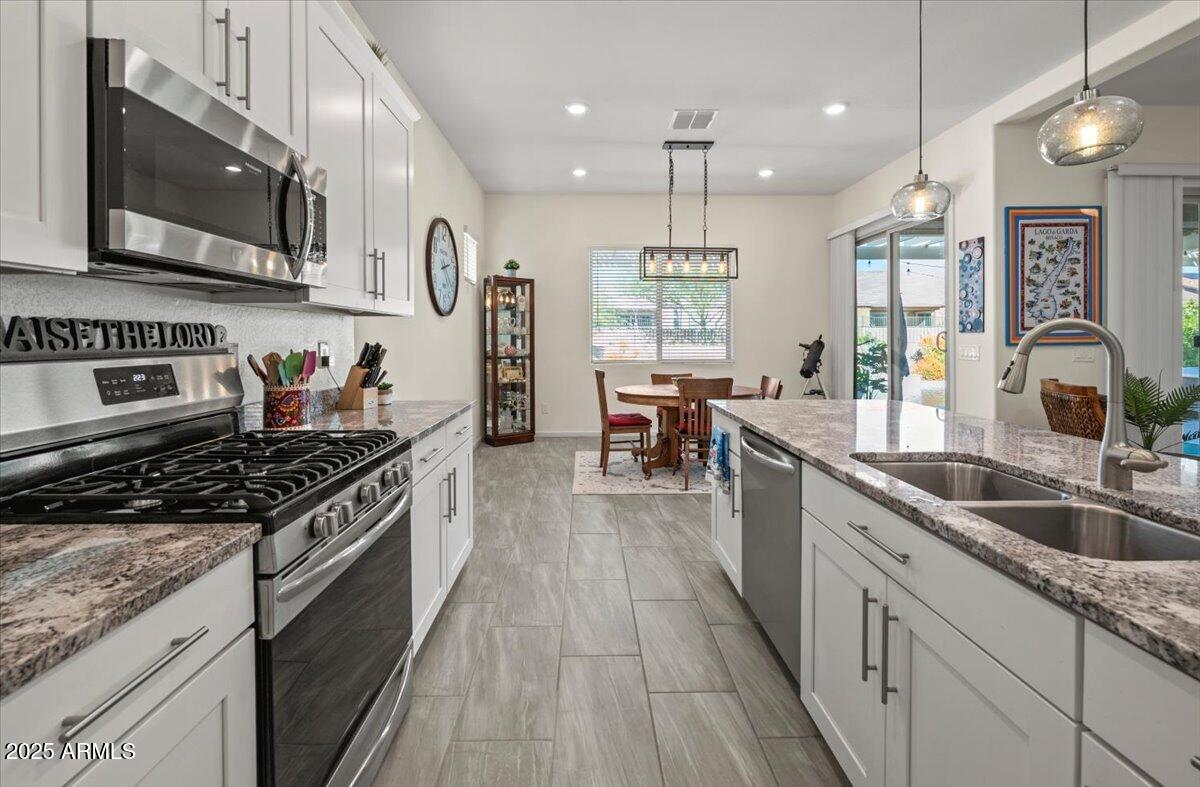 Owned Solar on this coveted Next-gen Oracle model! This home features a fully independent suite that is perfect for extended family, guests, a home business, or rental income.The suite includes its own garage, private entrance, separate HVAC, and full kitchen. The main home offers 3 beds, 2 baths, and a bright, open layout. Upgrades include tile floors, granite counters, tile showers, new water softener system and epoxy garage floors. Step outside to a true resort backyard with a 2024 heated pool boasting a Baja shelf, waterfall, and fire feature, plus a gas-plumbed BBQ, bar area, pergola, and lush landscaping that creates a private oasis perfect for entertaining or unwinding. Enjoy resort style living with 2 lakes, 2 rec centers, world class gyms, pickleball, pools, water park & golf!
