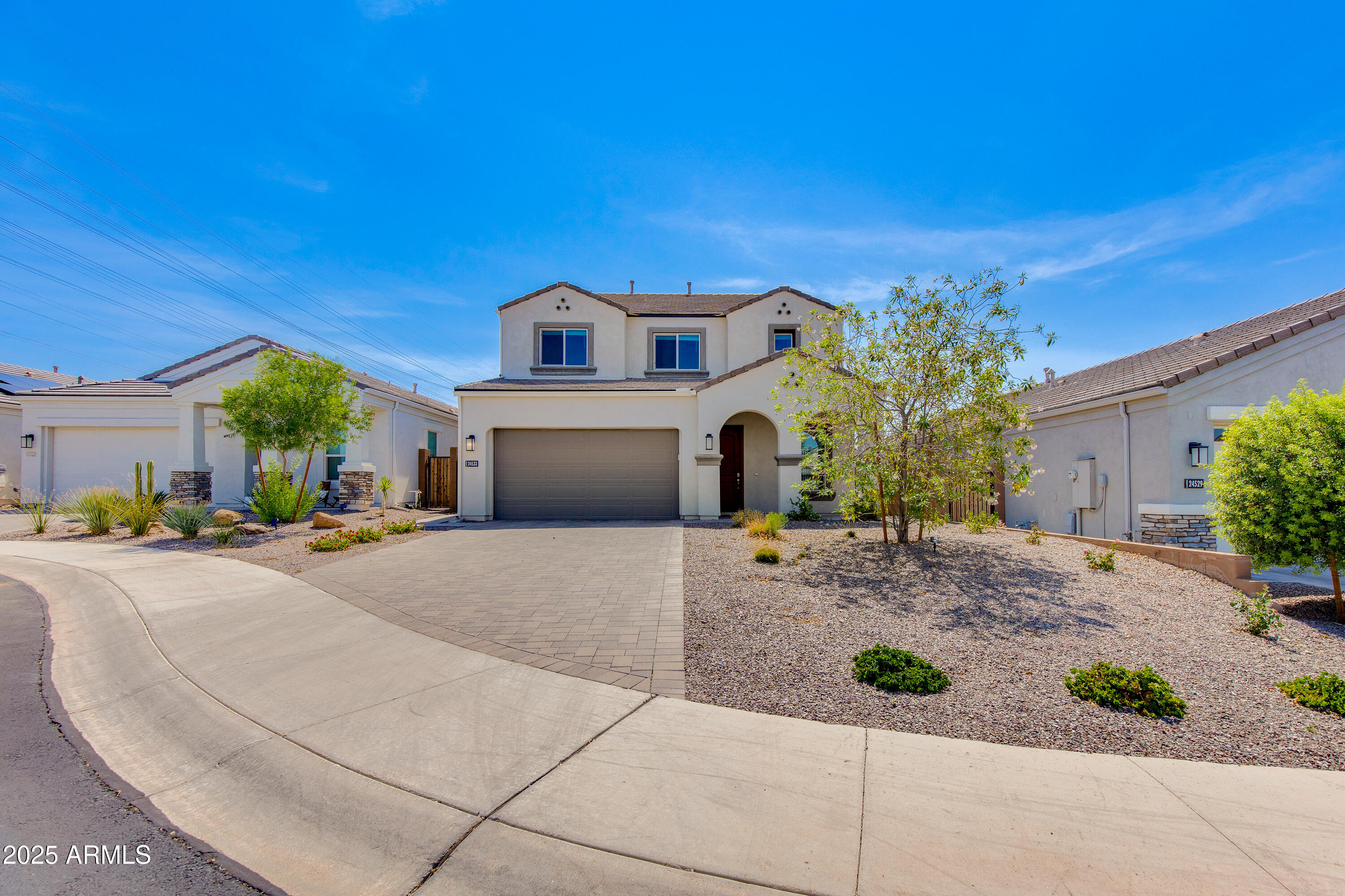 Modern and move-in ready, this smart home offers 4 bedrooms, 2.5 baths, and stylish finishes throughout. The gourmet kitchen boasts sleek white cabinets, quartz countertops, a tile backsplash, gas cooktop, and a large island--perfect for entertaining. Multi-slide glass doors connect the spacious great room to the patio and side courtyard, creating seamless indoor/outdoor living space. Wood-look tile flows through the main areas, with carpet in the bedrooms. Retreat to your luxurious primary suite, a true haven of comfort and style. This serene space features not one, but two spacious closets for effortless organization and direct access to the laundry room, making daily routines a breeze.