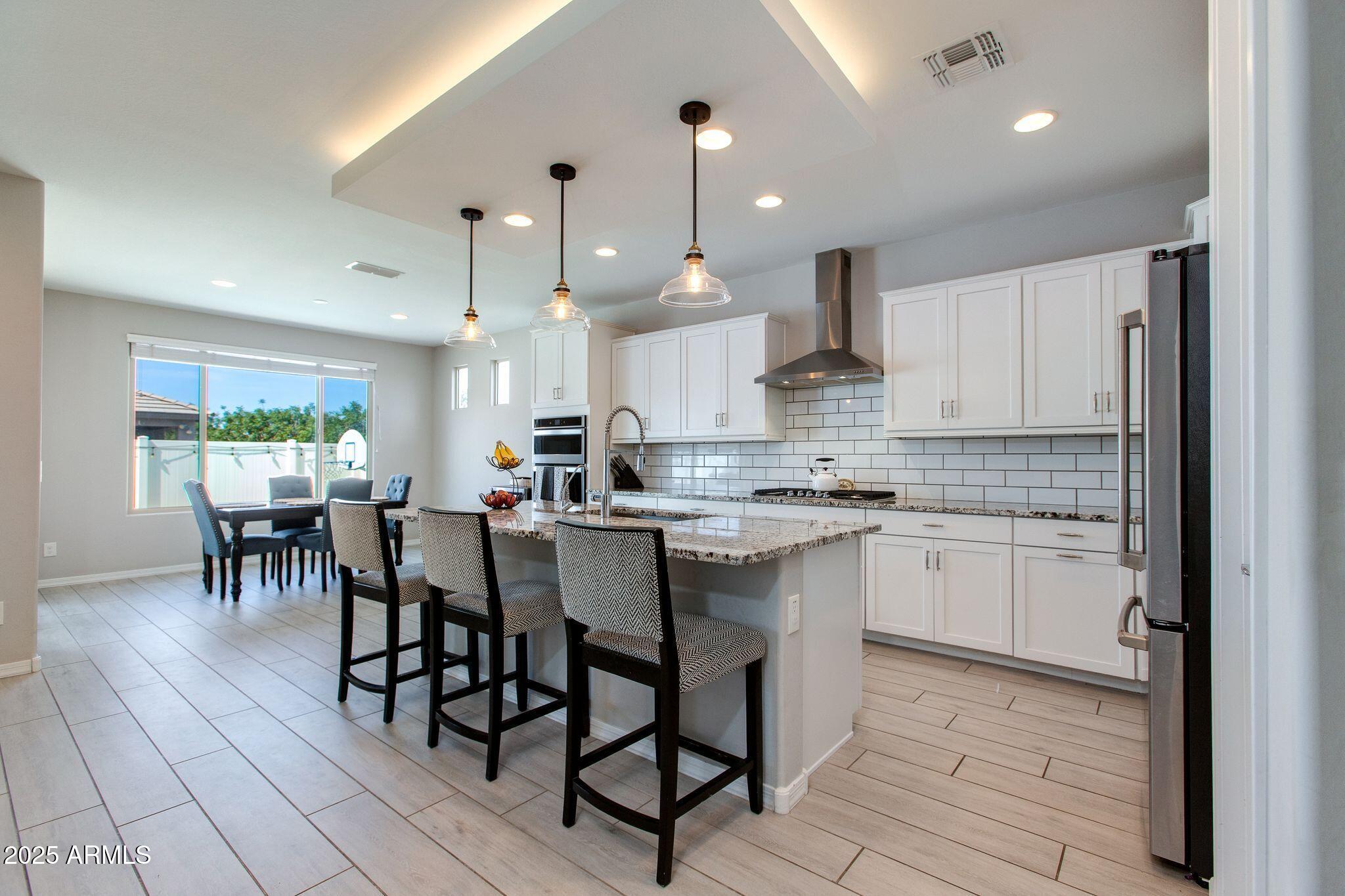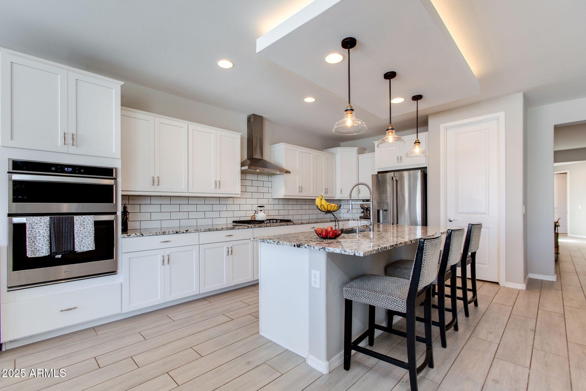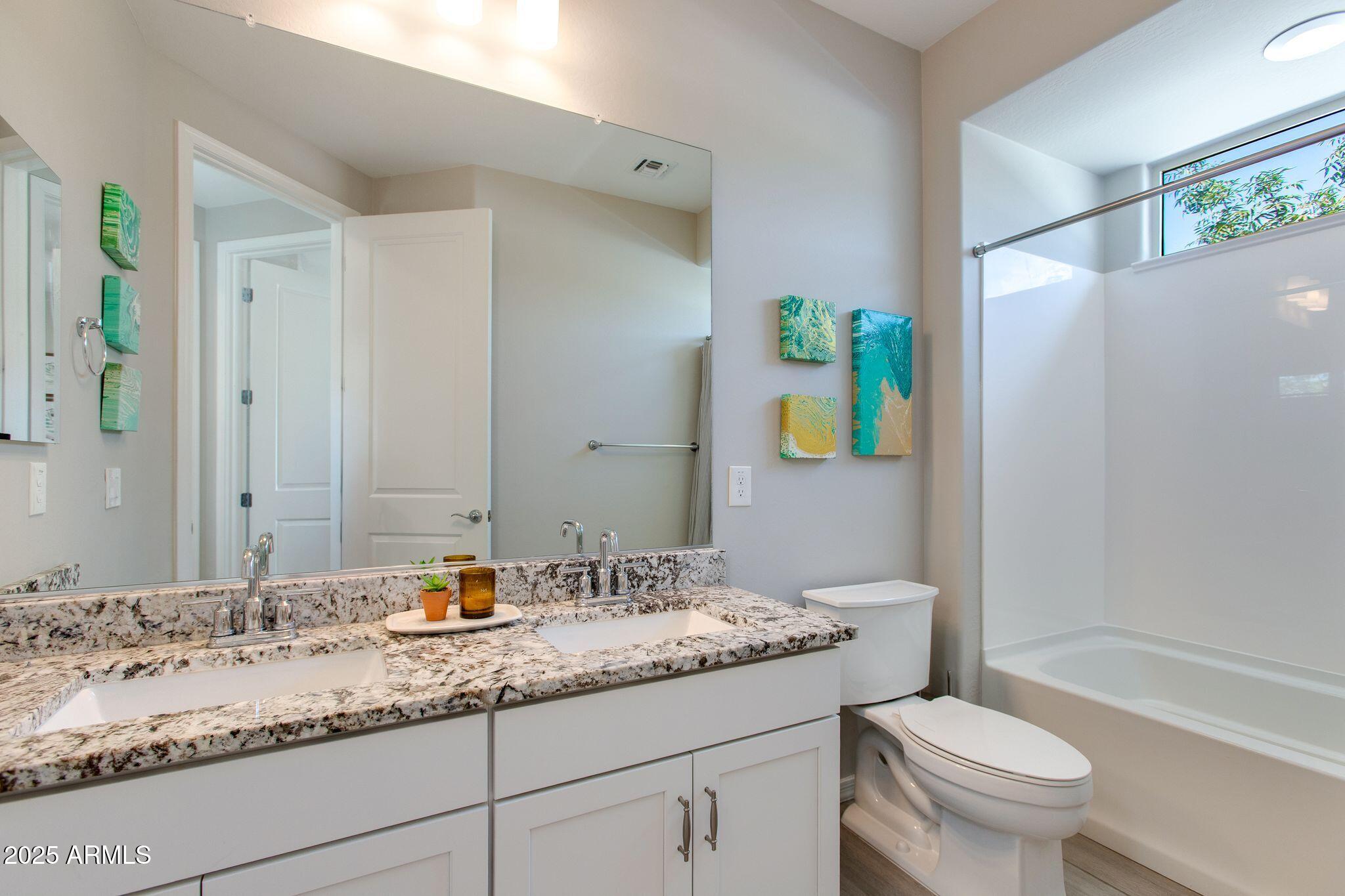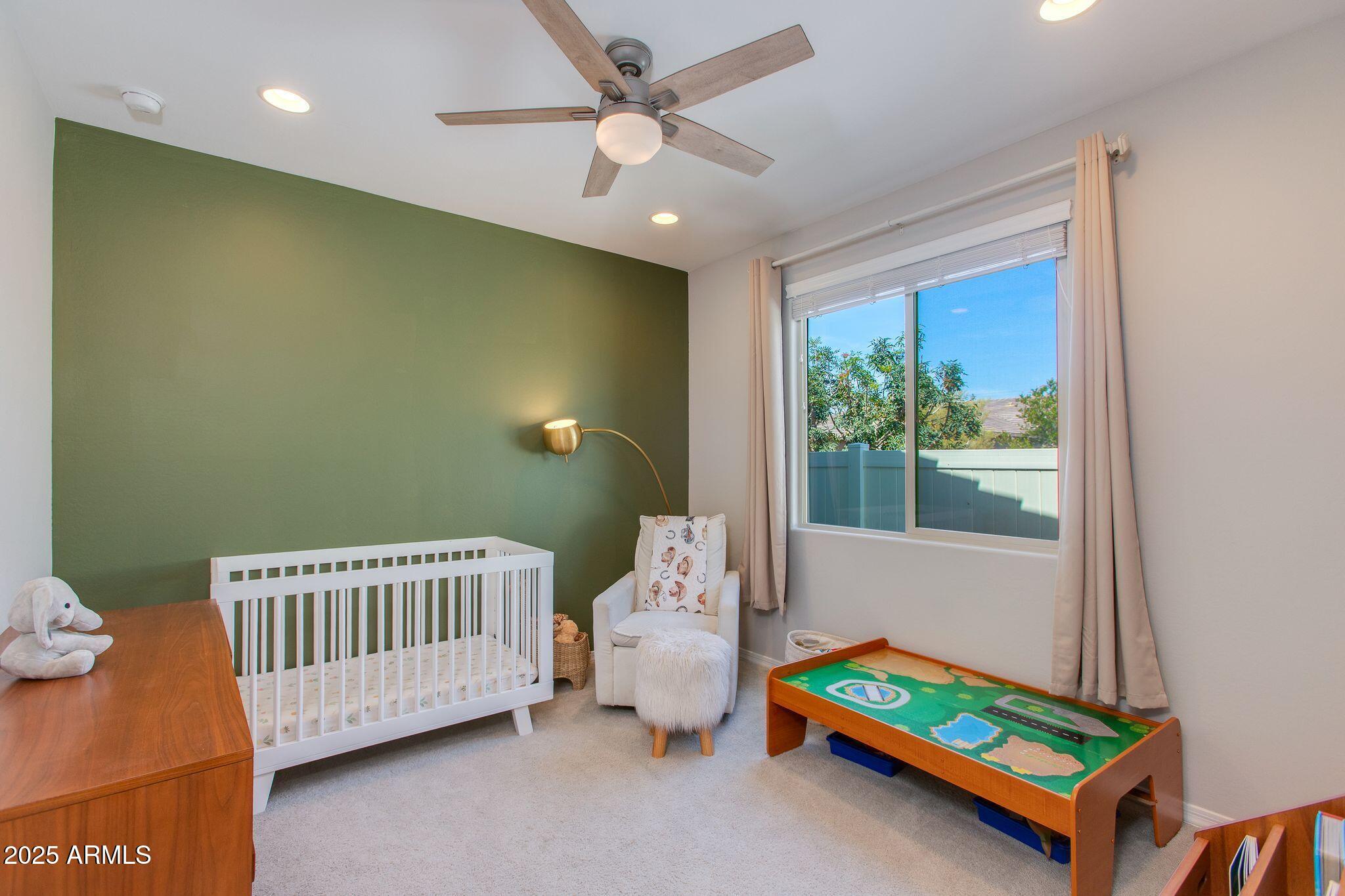 Radiates pride of ownership with designer upgrades and a prime South Mountain location! This 4 bed + den, 2.5 bath home is nestled in the gated Arbors community, where residents enjoy access to amazing amenities including scenic walking trails, soccer fields, a playground, and city & mountain views throughout the neighborhood. The chef-style kitchen features granite countertops, gas cooktop with canopy hood, wall oven/microwave, stylish backsplash, stainless appliances, and pendant lighting. Glass sliders lead to a covered patio, PebbleTec pool with bay, and built-in gas BBQ hookup, perfect for entertaining. Interior highlights include upgraded tile, plush carpet in bedrooms, 8' doors, tall ceilings, accent walls, and modern lighting. The spacious primary suite offers dual vanities, a large walk-in closet, and a tile-surround shower with dual shower heads. French doors open into a flexible den ideal for a home office. The 3-car garage includes a single bay perfect for a home gym, studio, or flex space. Close to hiking, parks, dining, major freeways & Sky Harbor Airport!