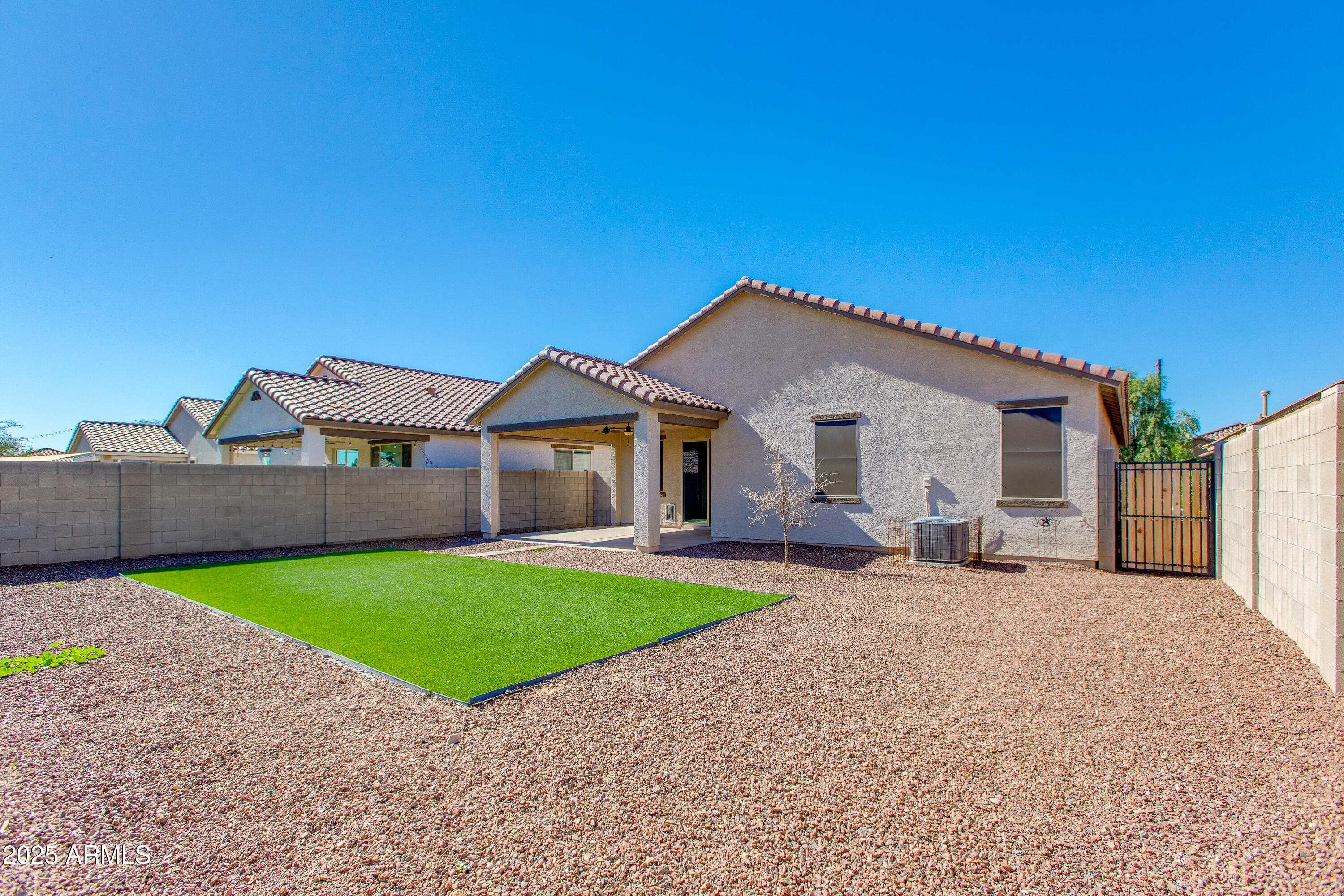 This spacious 3BR/2BA home is coming to market for the first time. Built in 2021 by KB Homes, this split floorplan offers a spacious primary ensuite, great privacy for guests, and an open great room perfect for entertaining. Large kitchen with island + pantry featuring stainless steel appliances overlooks great room with patio access creating a seamless indoor/outdoor experience. Plank flooring in all common areas, and neutral carpet in bedrooms. New interior paint throughout. Outside enjoy low-maintenance landscaping with installed turf and desert plantings. Resort-style amenities within the community include a sparkling pool, splash pad, basketball courts, BBQ pavilions, & lush green spaces. No need to wait on a new build, this property is ready for you today!