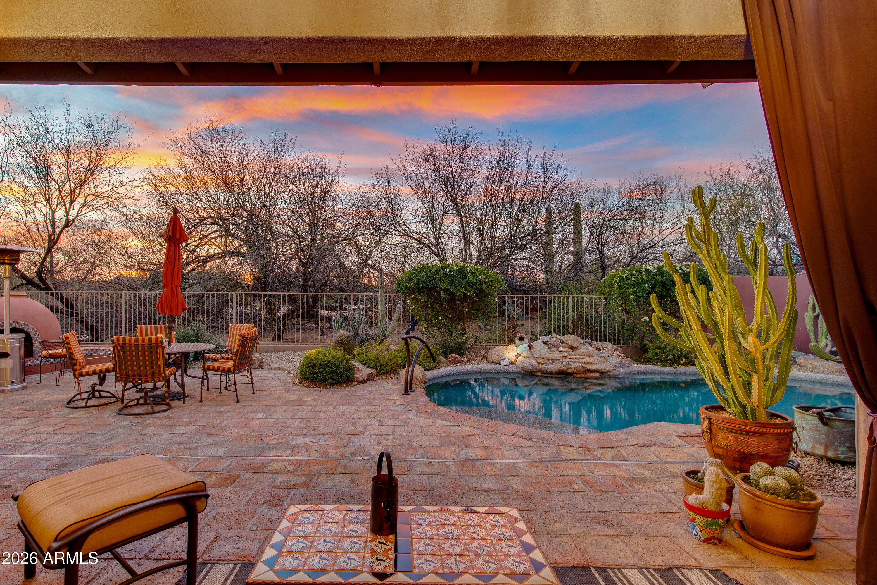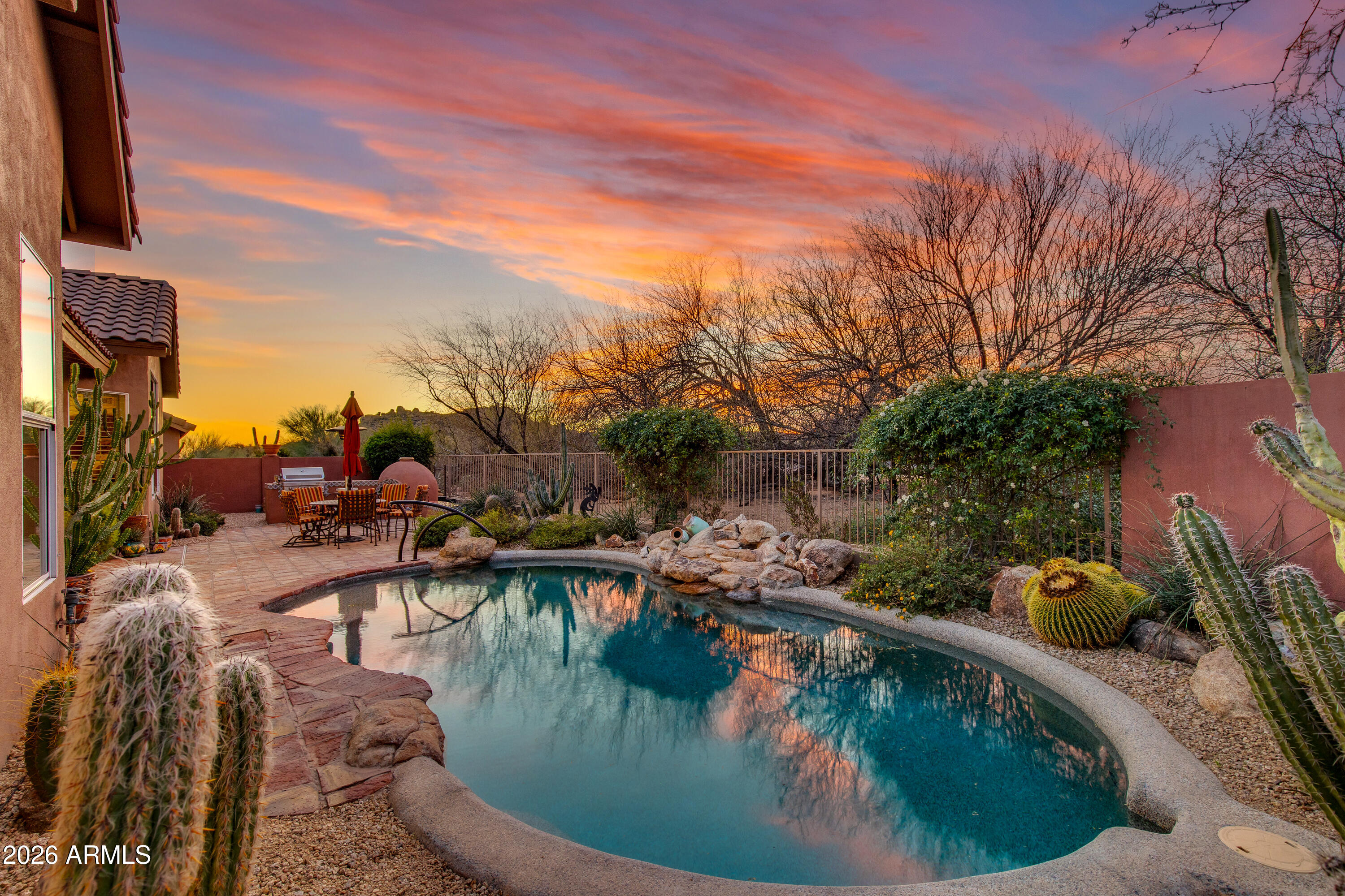 First time to market! Situated within Echo Ridge at Troon North, this exceptional residence blends desert sophistication with designer finishes throughout. Set on a desirable corner lot, this 3BR/Den/2.5BA home offers 2,836 SF of thoughtfully designed living space. High end finishes create an inviting atmosphere where generous living areas flow seamlessly into a beautifully appointed kitchen + gathering space. Versatile den offers perfect setting for home office or addt'l lounge. Primary ensuite w/ patio access + remodeled spa bath w/ custom closet. Sparkling pool, outdoor kiva fireplace, & multiple seating areas providing year-round outdoor enjoyment. Pride of ownership drives this meticulously maintained home mere moments from world-class golf, hiking, dining & recreation!