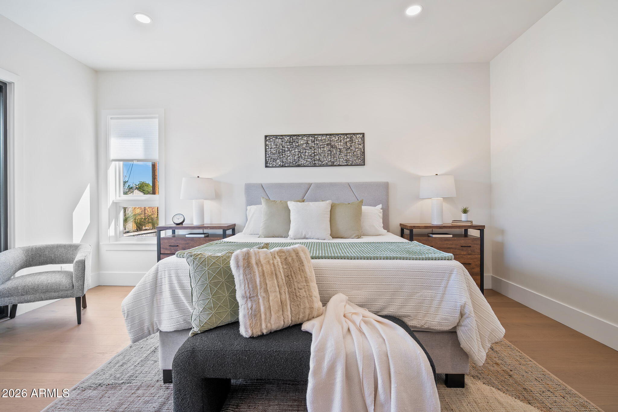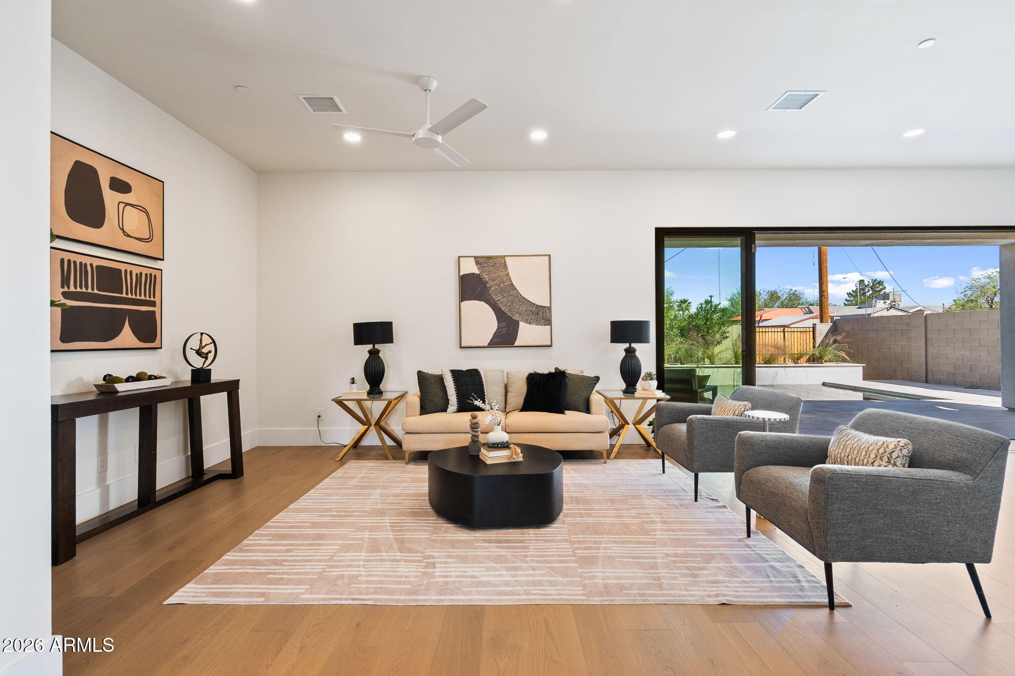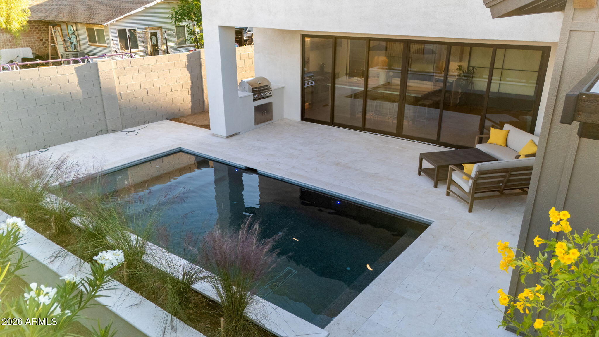 *NEW PRICE* Brand-new construction in Old Town Scottsdale! Located just 3 miles from Downtown Scottsdale, Fashion Square Mall, world class dining & entertainment! Perfect for a young family or investor looking to capitalize on Old Town's strong AIRBNB market! Positioned in a charming mid-century neighborhood, this home offers modern design, quality craftsmanship, and a highly functional layout w/ a heated POOL! The exterior features clean landscaping, a limestone front porch, and a striking steel-and-glass entry. Inside, the chef's kitchen includes a 48'' WOLF range, oversized quartz island with seating for eight, full-size side-by-side refrigerator and freezer, three ovens, a convection microwave, and a custom hood with vintage-inspired mantel detail. A 20' multi-slide glass door opens to the backyard, creating seamless indoor-outdoor living with a heated pool, built-in BBQ, limestone pavers, and a large covered patio. The primary suite offers a private patio, freestanding soaking tub set within a bright alcove, a two-person shower, expansive vanity, and an oversized walk-in closet with direct access to the laundry room. The split floorplan provides 4 bedrooms plus a central den/office/flex space, 2,646 sq ft, 10' flat ceilings, wood flooring, two-tone cabinetry, and premium quartz counters throughout.