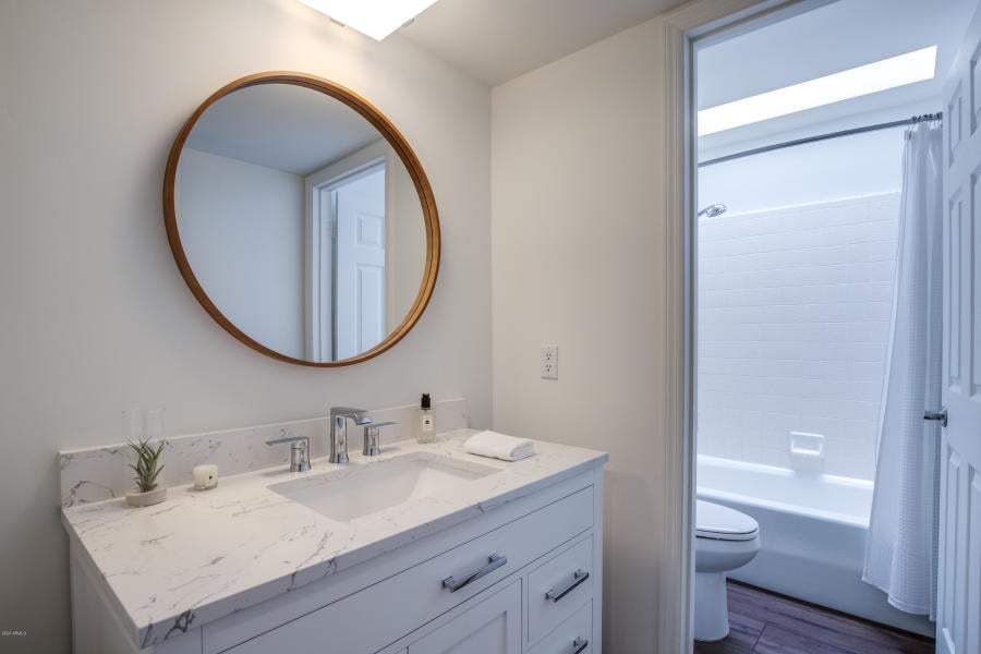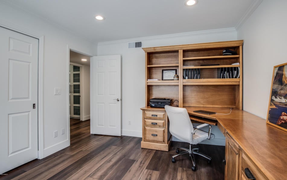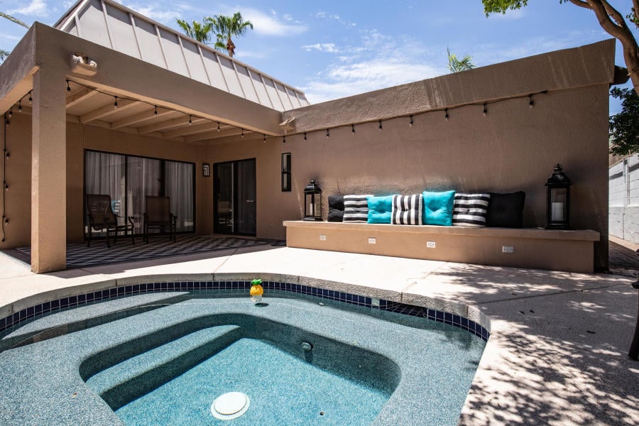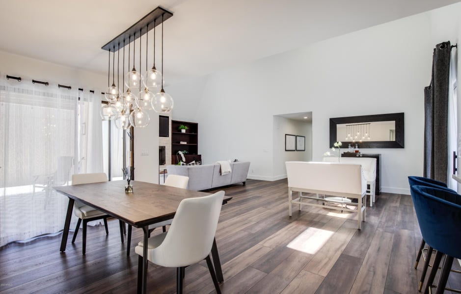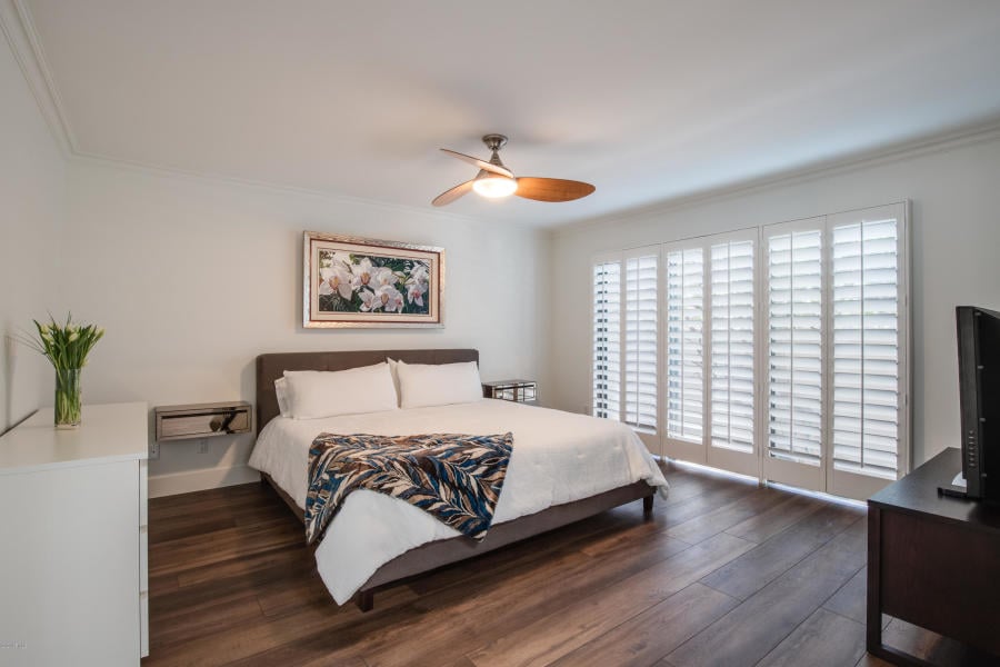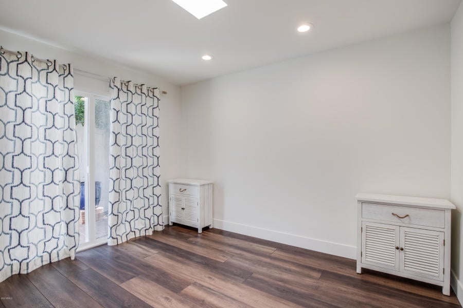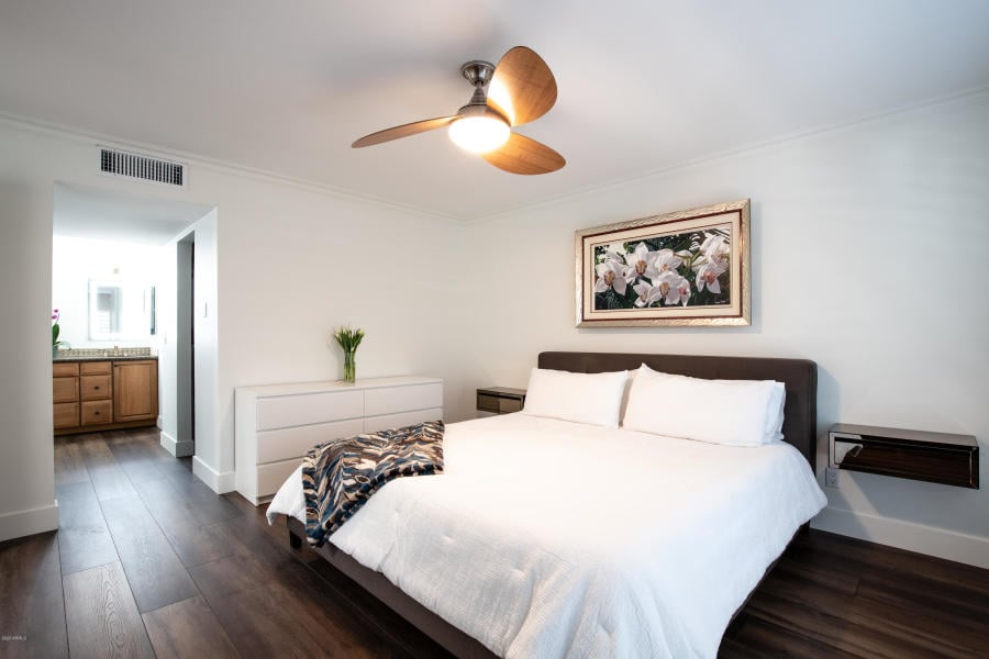 This contemporary dream is located in the guard-gated community of Colony Biltmore! With soaring, vaulted ceilings, beautiful wood plank flooring, and modern finishes throughout, this home is sure to impress! The kitchen showcases clean lines through custom cabinetry, sleek tile backsplash, quartz countertops, and stainless Samsung appliances. The open living concept is perfect for hosting and entertaining guests. Low maintenance backyard features a spacious covered patio and splash pool. You cannot beat this prime location just minutes from Biltmore Fashion Park and downtown Phoenix.