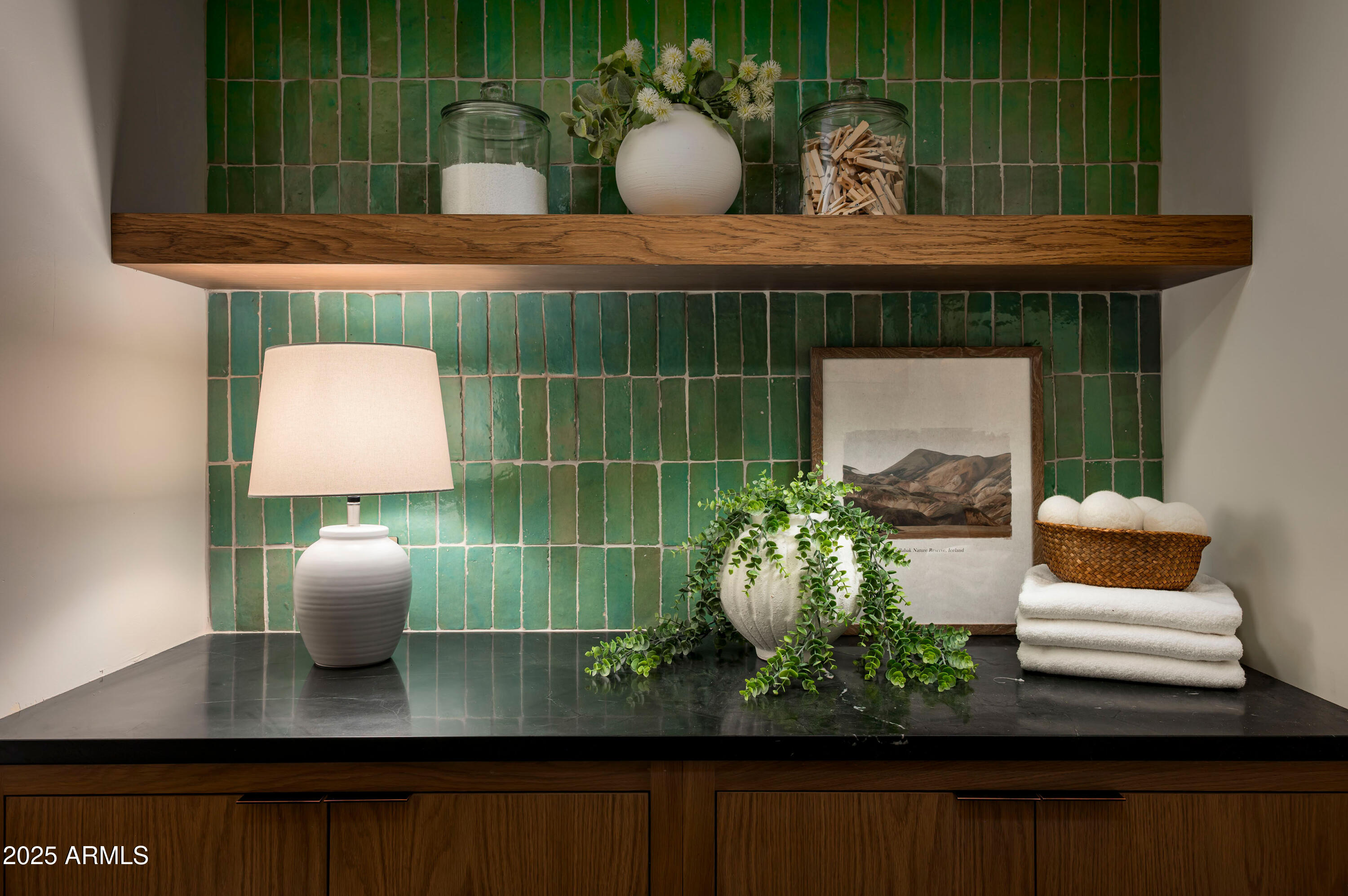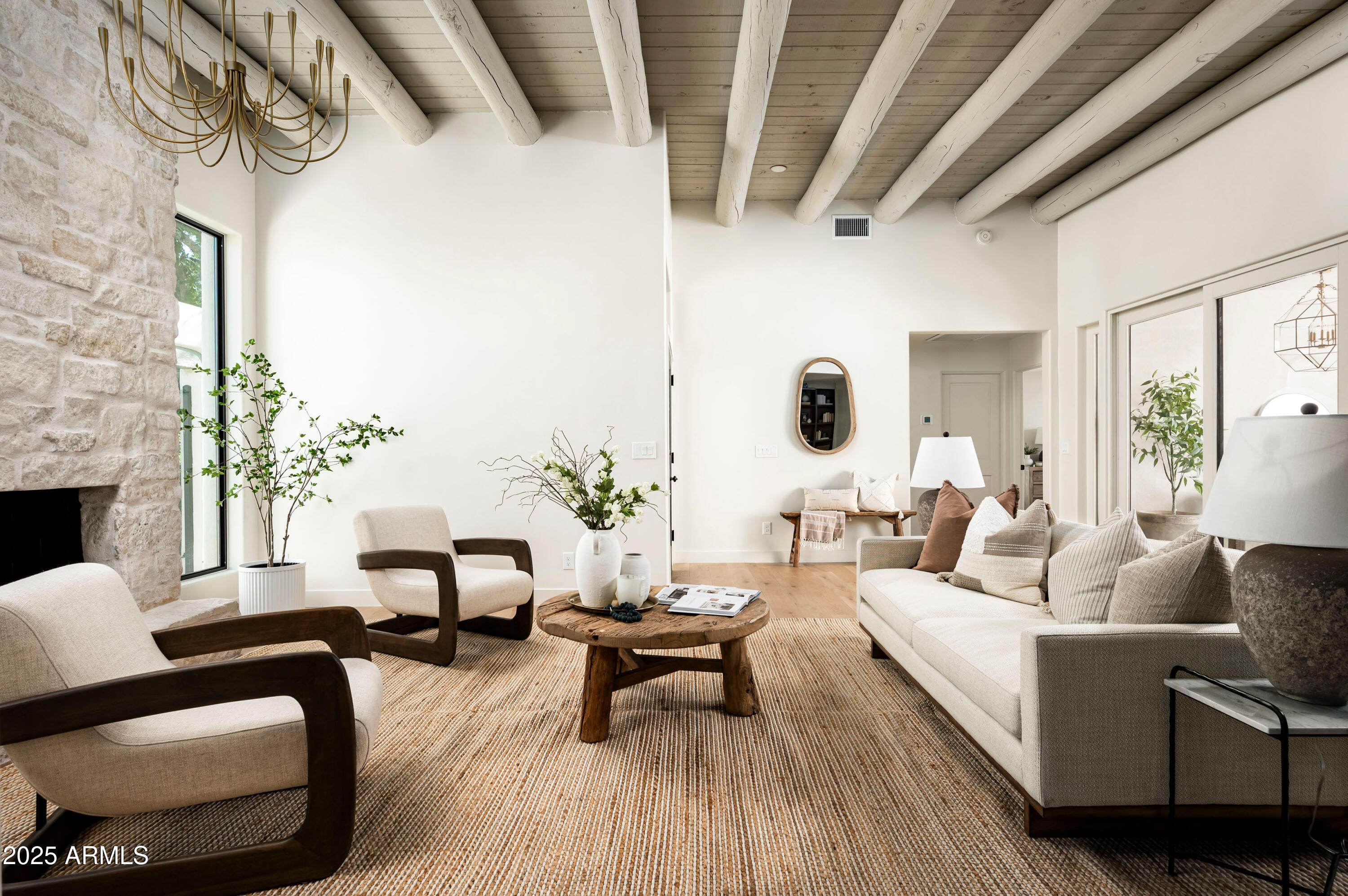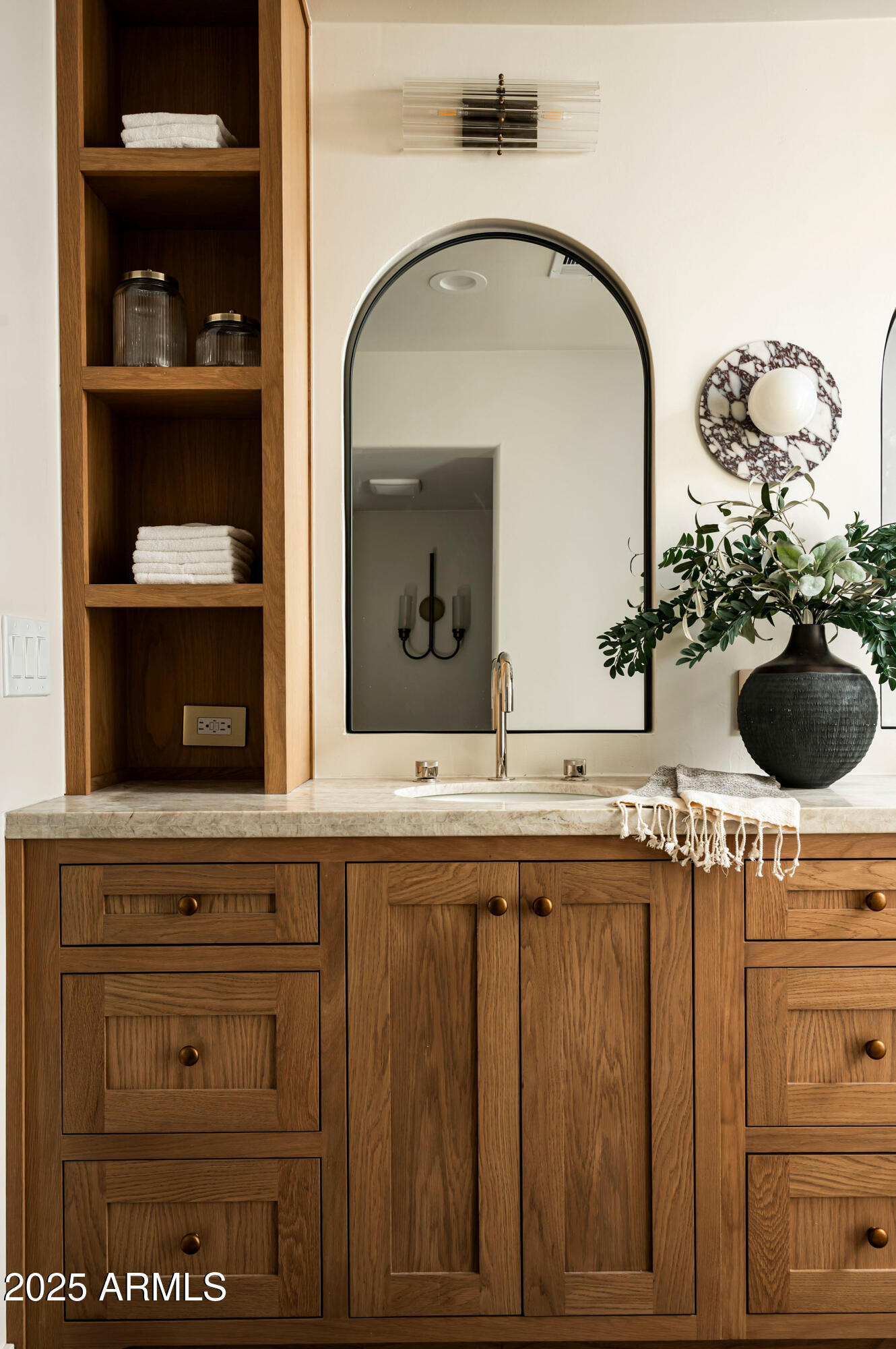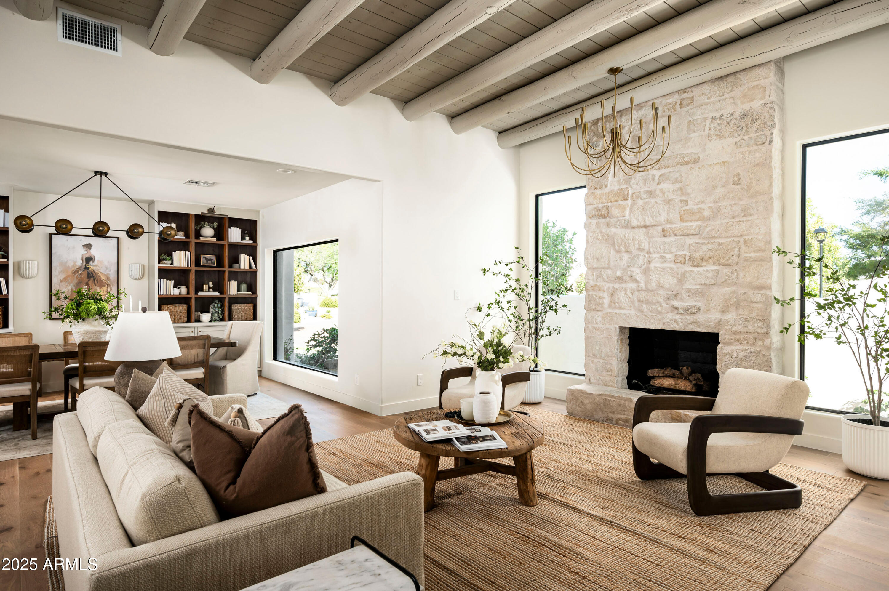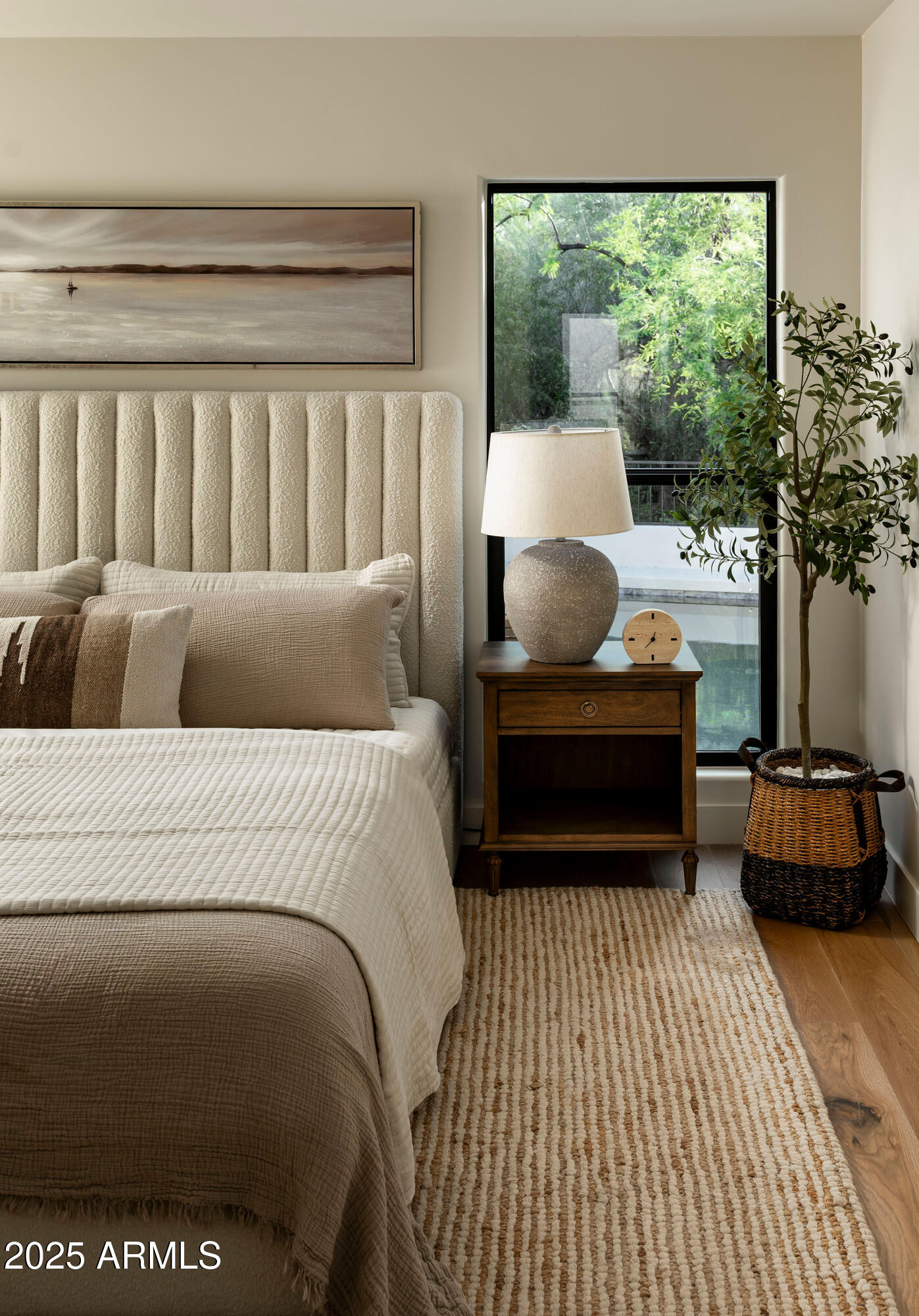 Located on an oversized lot at the end of a cul-de-sac, the lushly surrounded backyard is anchored by a sparkling dive pool and hot tub and thoughtfully designed for both relaxation and entertaining. Surrounded by privacy walls and mature greenery from the wash, this outdoor space is the perfect extension of the home's serene, sophisticated aesthetic.