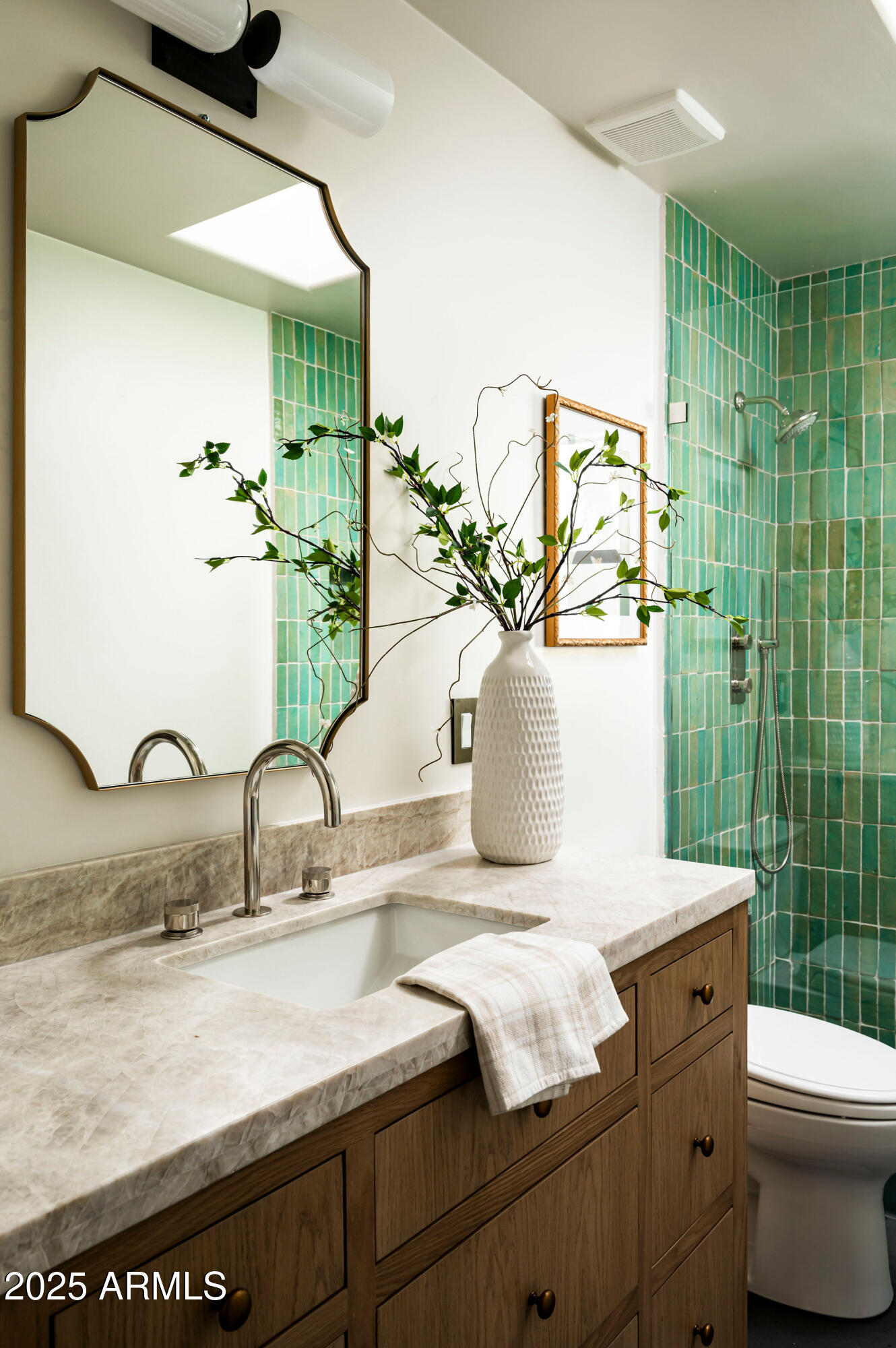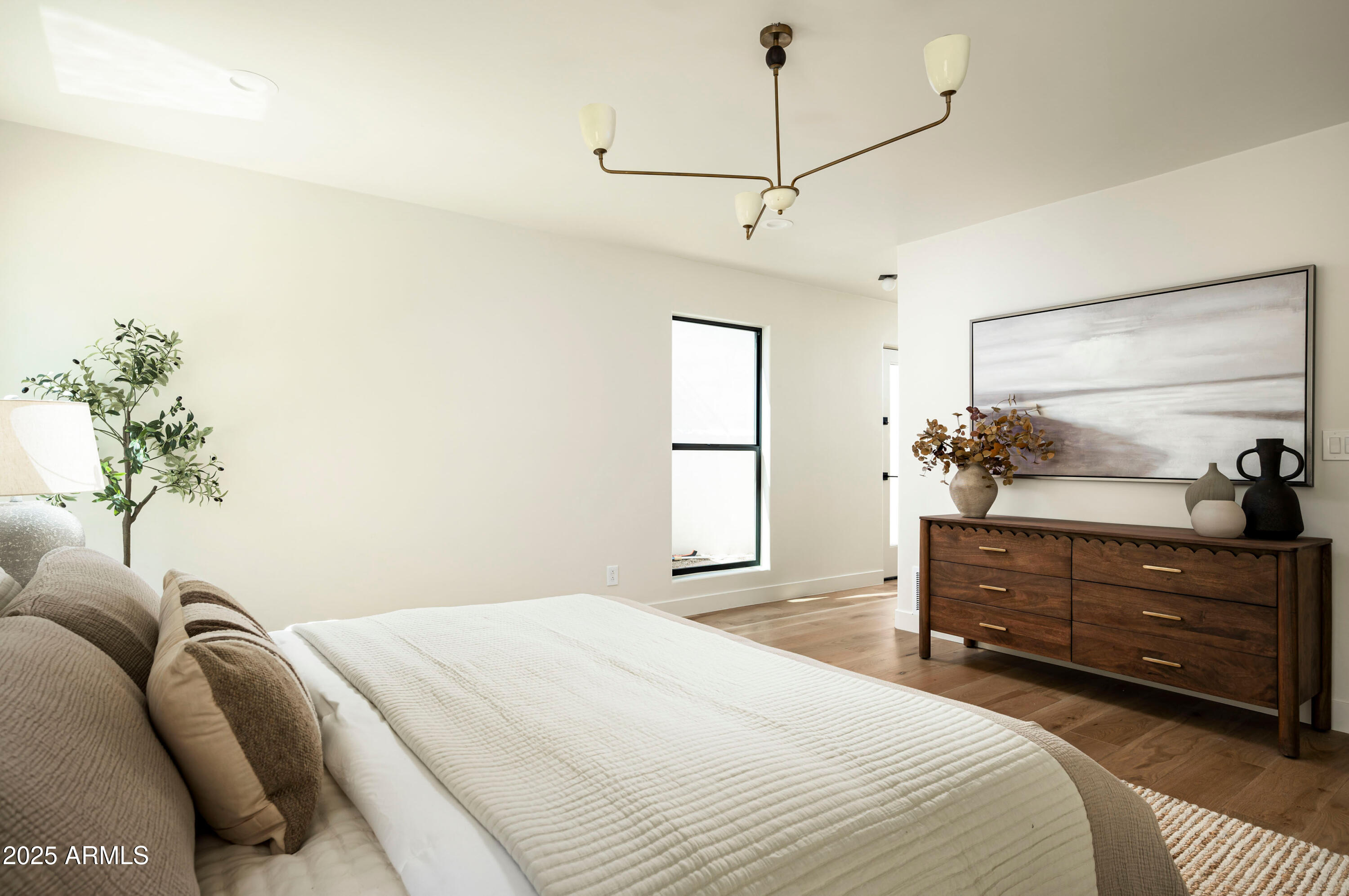Enjoy peace of mind with brand new windows, doors, upgraded HVAC, updated wiring and plumbing, brand new flat roof with a 10-year warranty, new skylights and 1-year builder warranty ensuring both comfort and peace of mind. The open-concept layout, elevated ceilings, and designer upgrades make this home a rare find in one of Phoenix's most sought-after guard-gated communities.