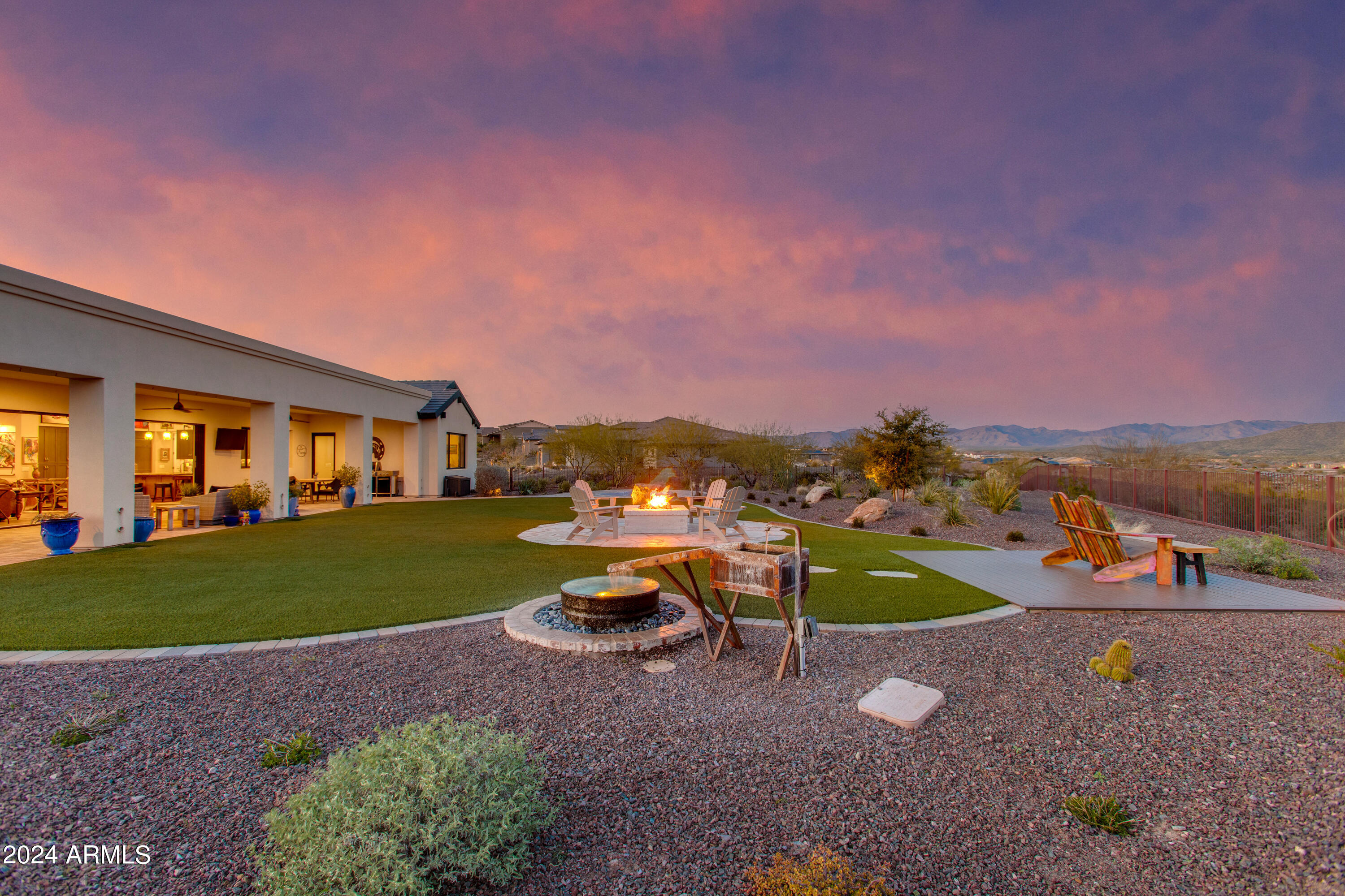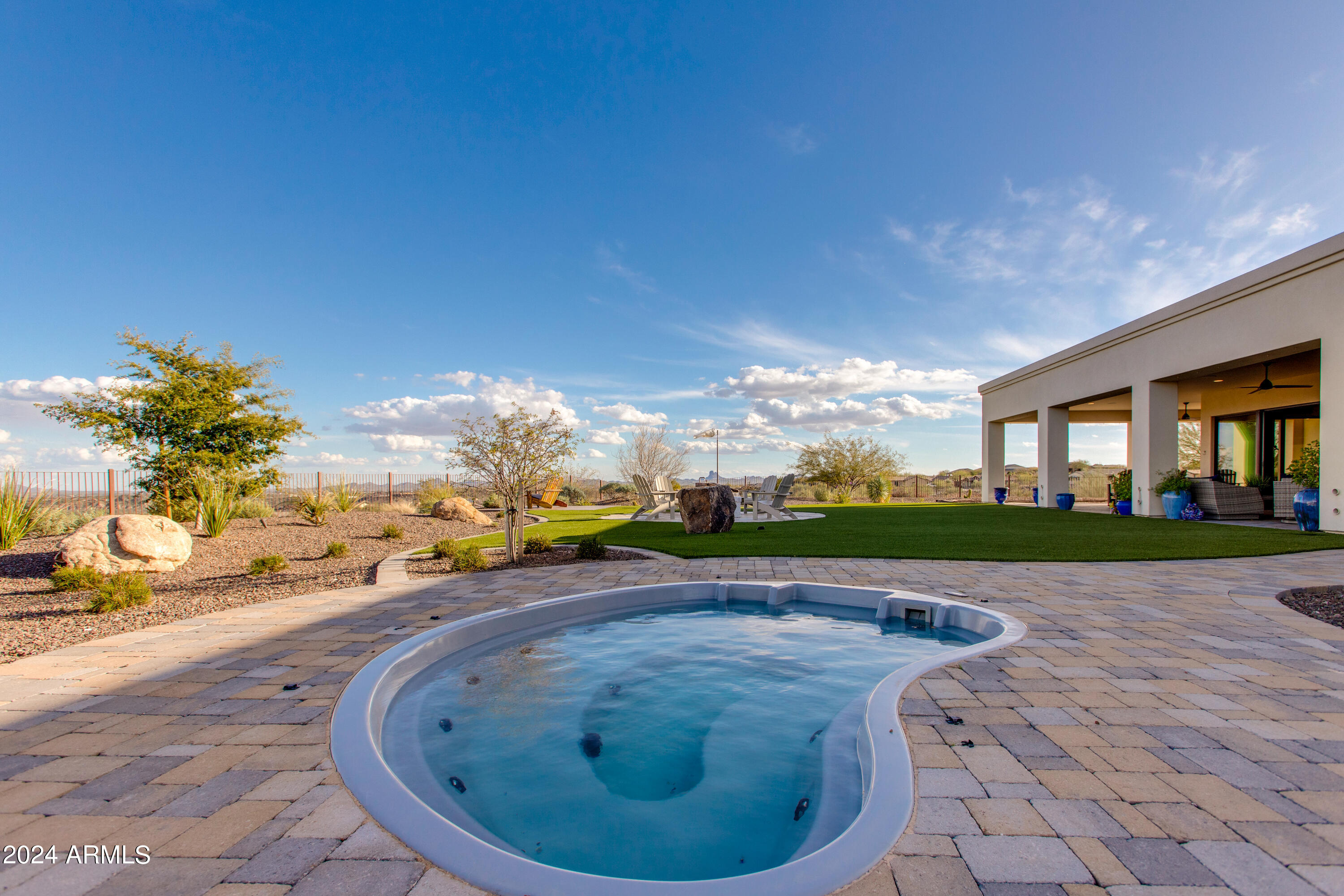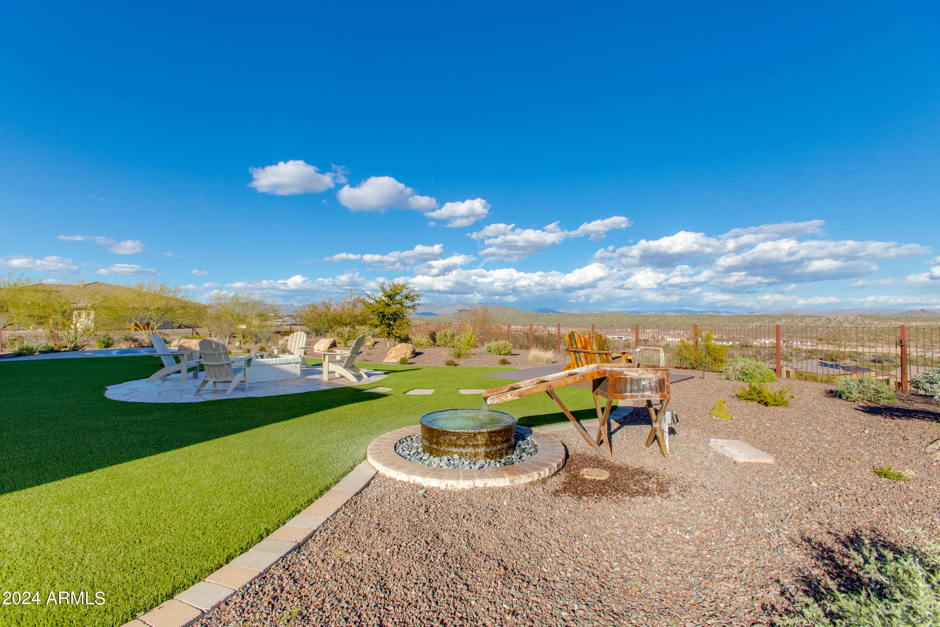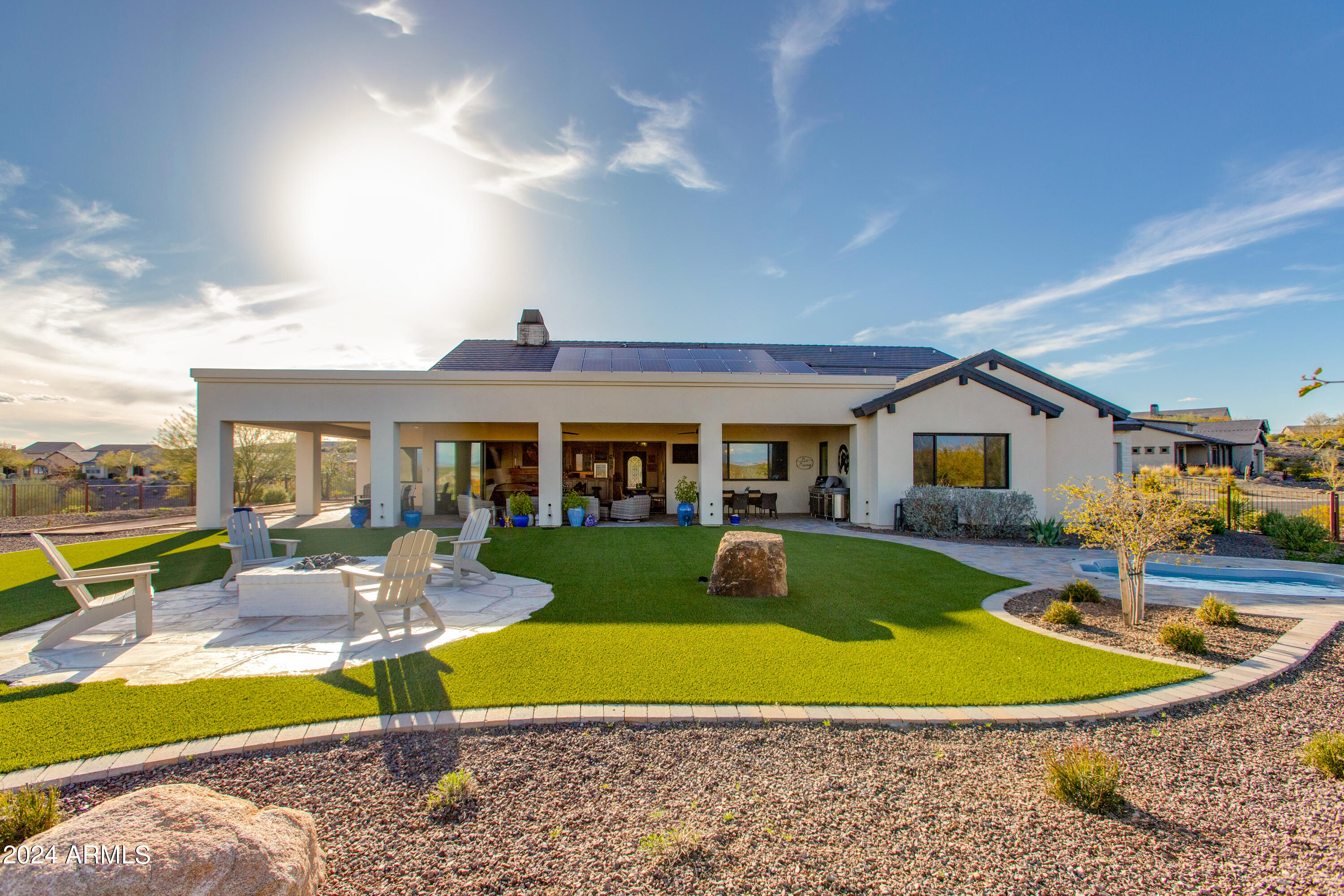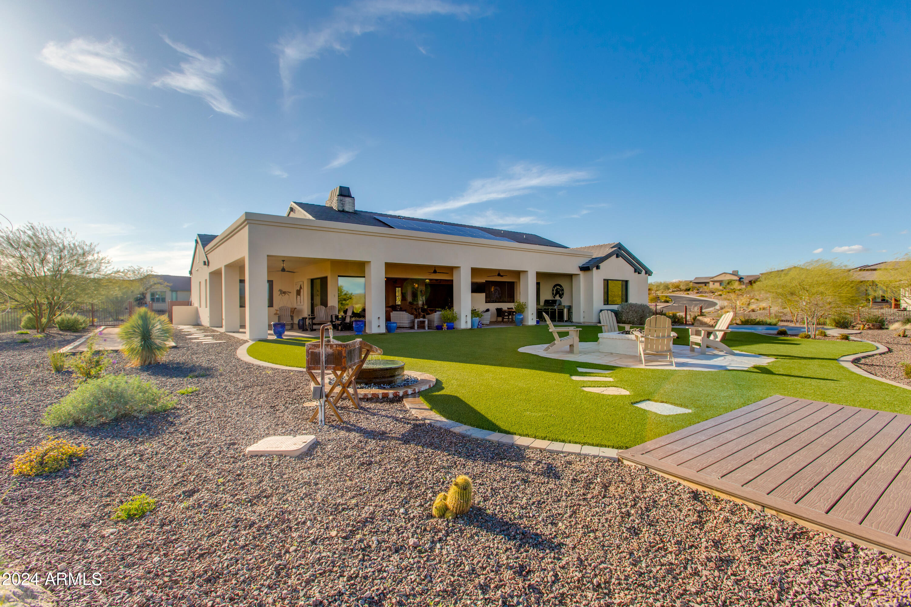 Give yourself the BEST WR has to offer. Enjoy 3/4 of an acre w/private panoramic views from every window. This one of a kind Scott Edmunds home is hosted on the largest homesite in WR. Spacious 3 bedroom 3.5 bath with Den. The Grand Living Room features gorgeous vaulted ceilings with beams and a built-in fireplace. Generous natural light with dramatic sliding walls of glass seamlessly blending your indoor and outdoor living spaces. Gourmet kitchen boast bountiful kitchen cabinets with builtin Wolf & Kitchenaid appliances. Gas cooktop includes a pot filler with custom decorative tile with under cabinet lighting. Kitchen island/breakfast bar houses built in microwave, separate prep sink with its own garbage disposal, builtin trash and recycling. Custom storage throughout. Primary Ensuite leads to a heavy glass shower enclosure with 4 shower heads walk-in with 2 entries coming from 2 separate water closets. Guest suites separated from Primary. Both ensuite with walk-in closets. Amazing backyard with multiple sitting/entertaining locations fully enclosed wrought iron fence with additional pest guard to keep out desert friends. Generous astro turf surrounds a large builtin gas fire pit with ample space for seating. In ground salt free hot tub, custom fountain & rock feature, bocce ball court, large covered patio with high pressure builtin misting system, Whole home Solar connects with EV charger. This is a MUST SEE. There is truly nothing in the community to compare.