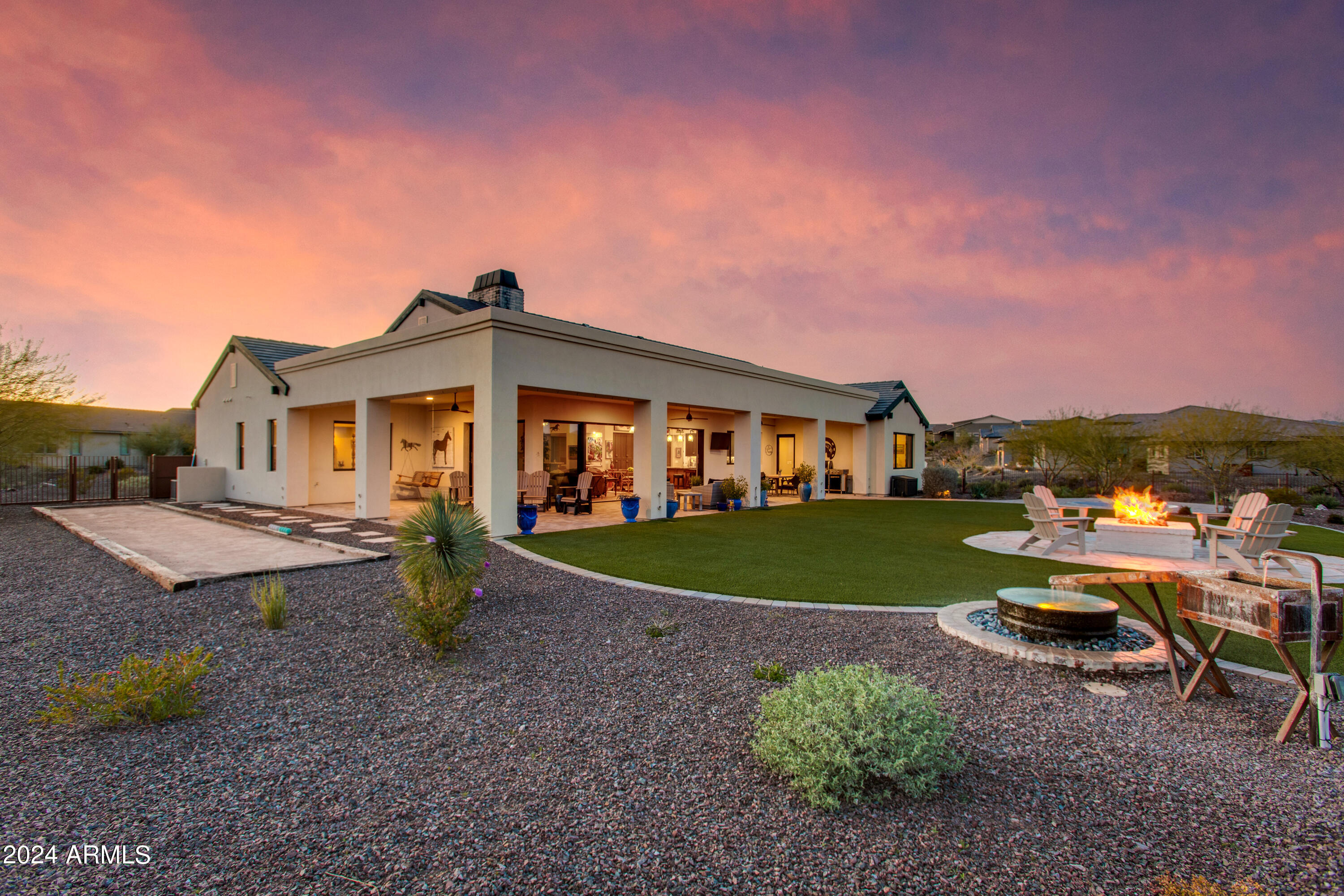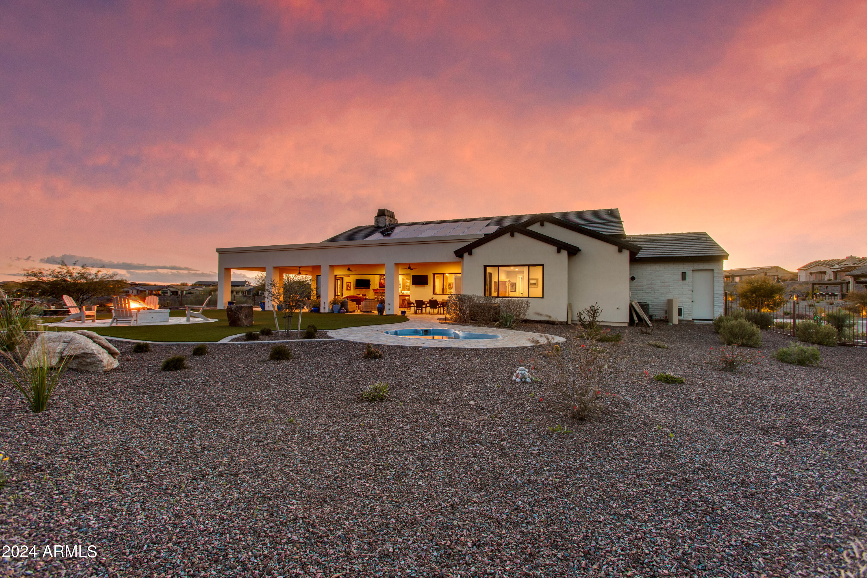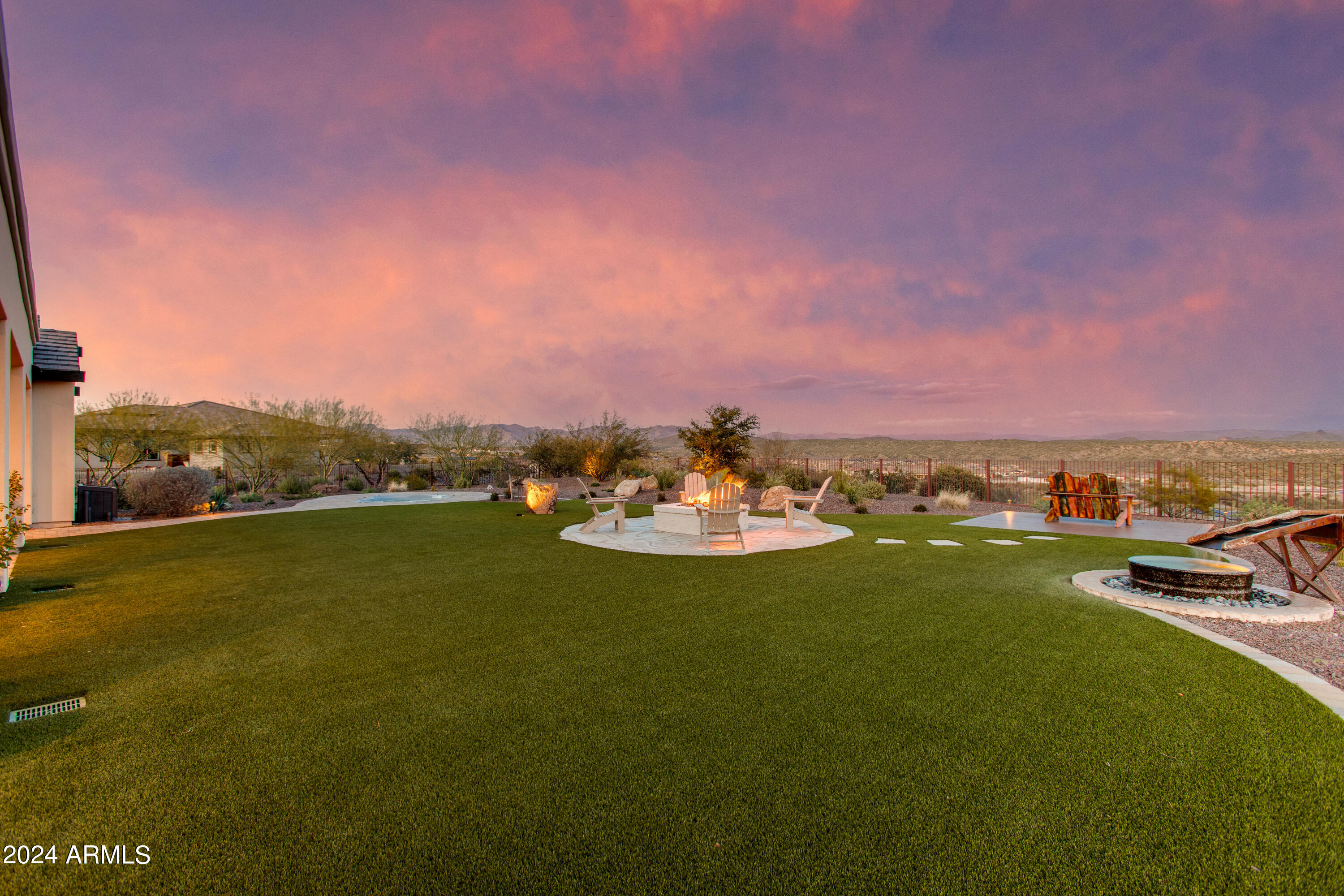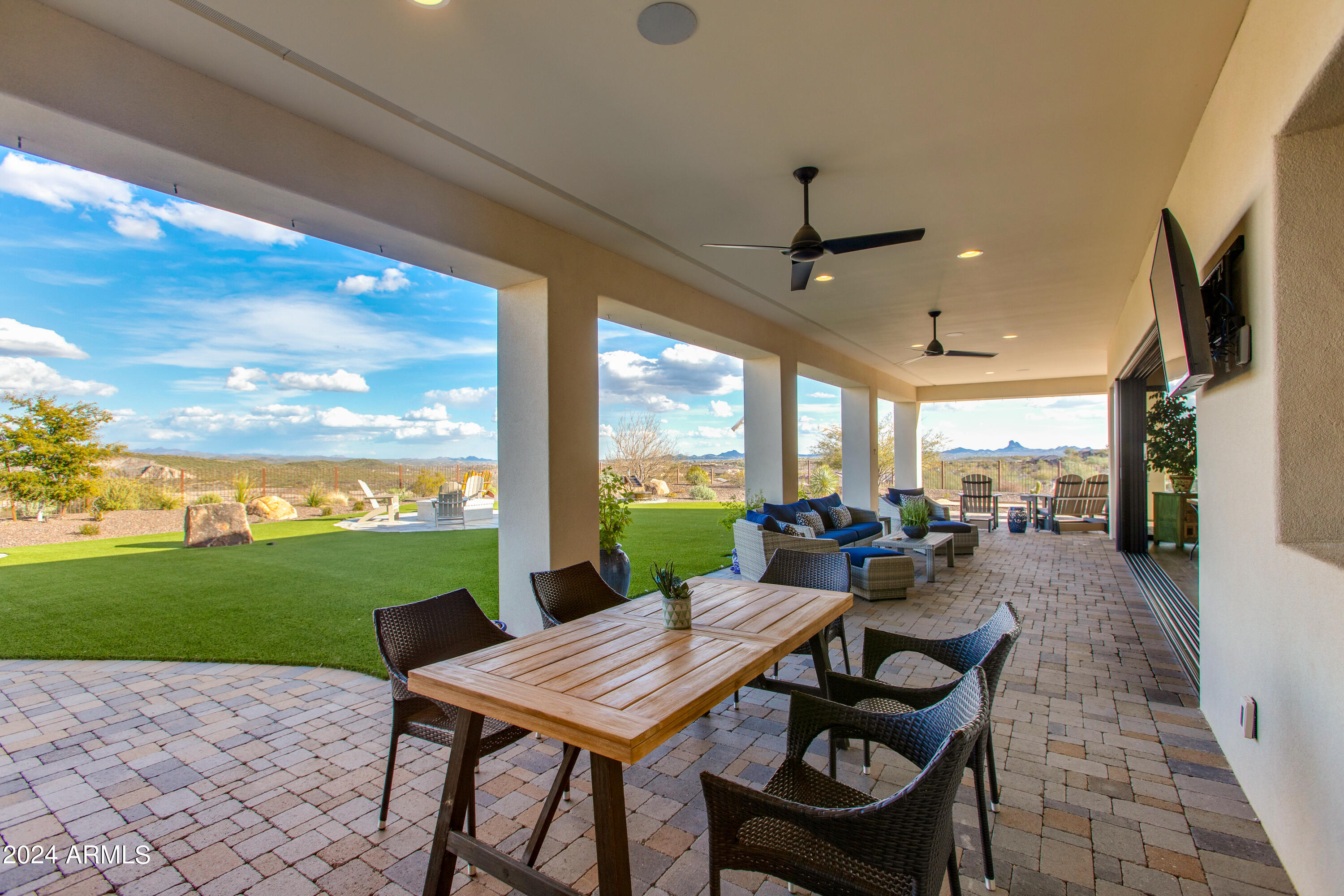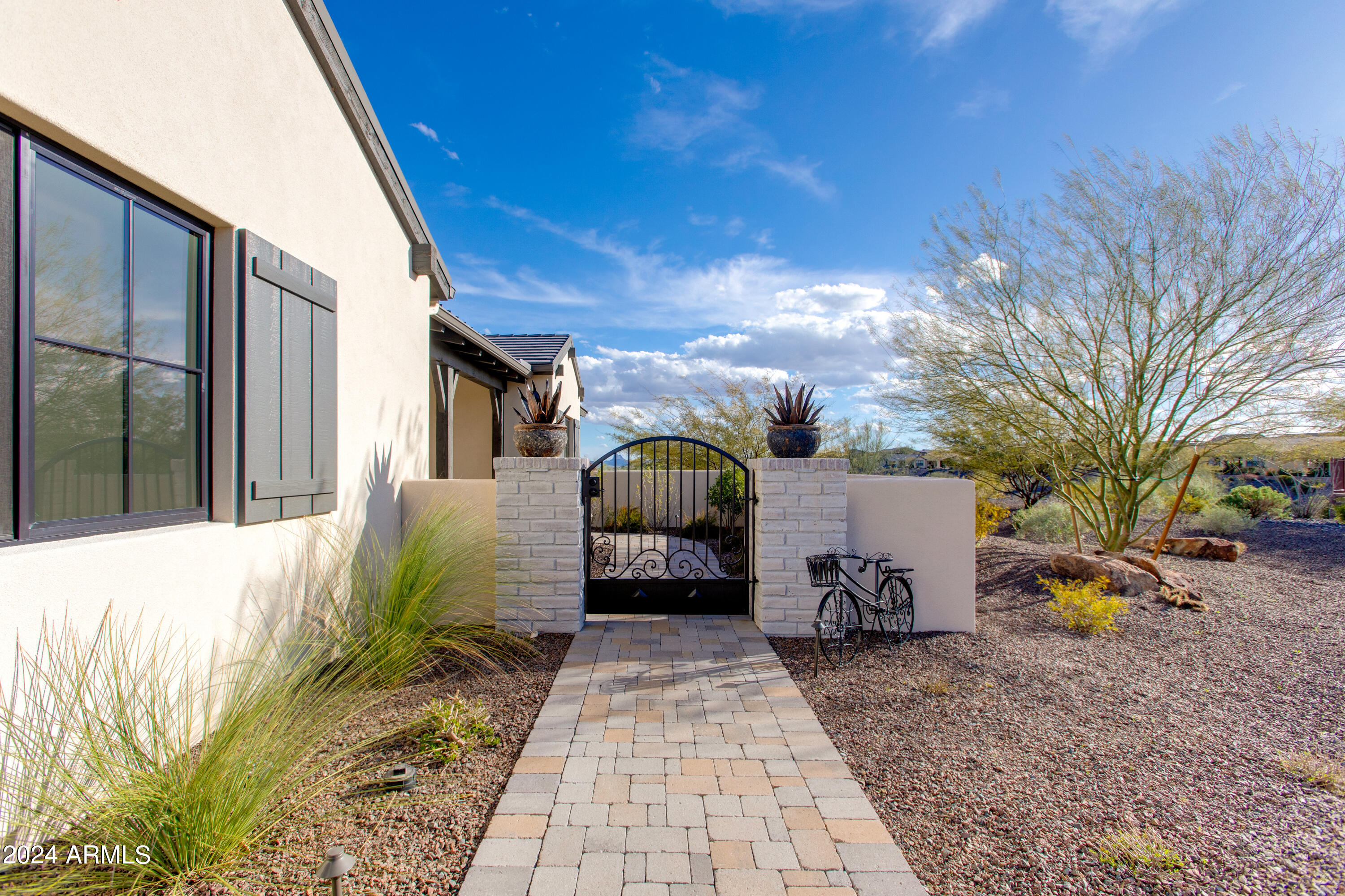 Give yourself the BEST WR has to offer. Enjoy 3/4 of an acre w/private panoramic views from every window. This one of a kind Scott Edmunds home is hosted on the largest homesite in WR. Spacious 3 bedroom 3.5 bath with Den. The Grand Living Room features gorgeous vaulted ceilings with beams and a built-in fireplace. Generous natural light with dramatic sliding walls of glass seamlessly blending your indoor and outdoor living spaces. Gourmet kitchen boast bountiful kitchen cabinets with builtin Wolf & Kitchenaid appliances. Gas cooktop includes a pot filler with custom decorative tile with under cabinet lighting. Kitchen island/breakfast bar houses built in microwave, separate prep sink with its own garbage disposal, builtin trash and recycling. Custom storage throughout. Primary Ensuite leads to a heavy glass shower enclosure with 4 shower heads walk-in with 2 entries coming from 2 separate water closets. Guest suites separated from Primary. Both ensuite with walk-in closets. Amazing backyard with multiple sitting/entertaining locations fully enclosed wrought iron fence with additional pest guard to keep out desert friends. Generous astro turf surrounds a large builtin gas fire pit with ample space for seating. In ground salt free hot tub, custom fountain & rock feature, bocce ball court, large covered patio with high pressure builtin misting system, Whole home Solar connects with EV charger. This is a MUST SEE. There is truly nothing in the community to compare.
