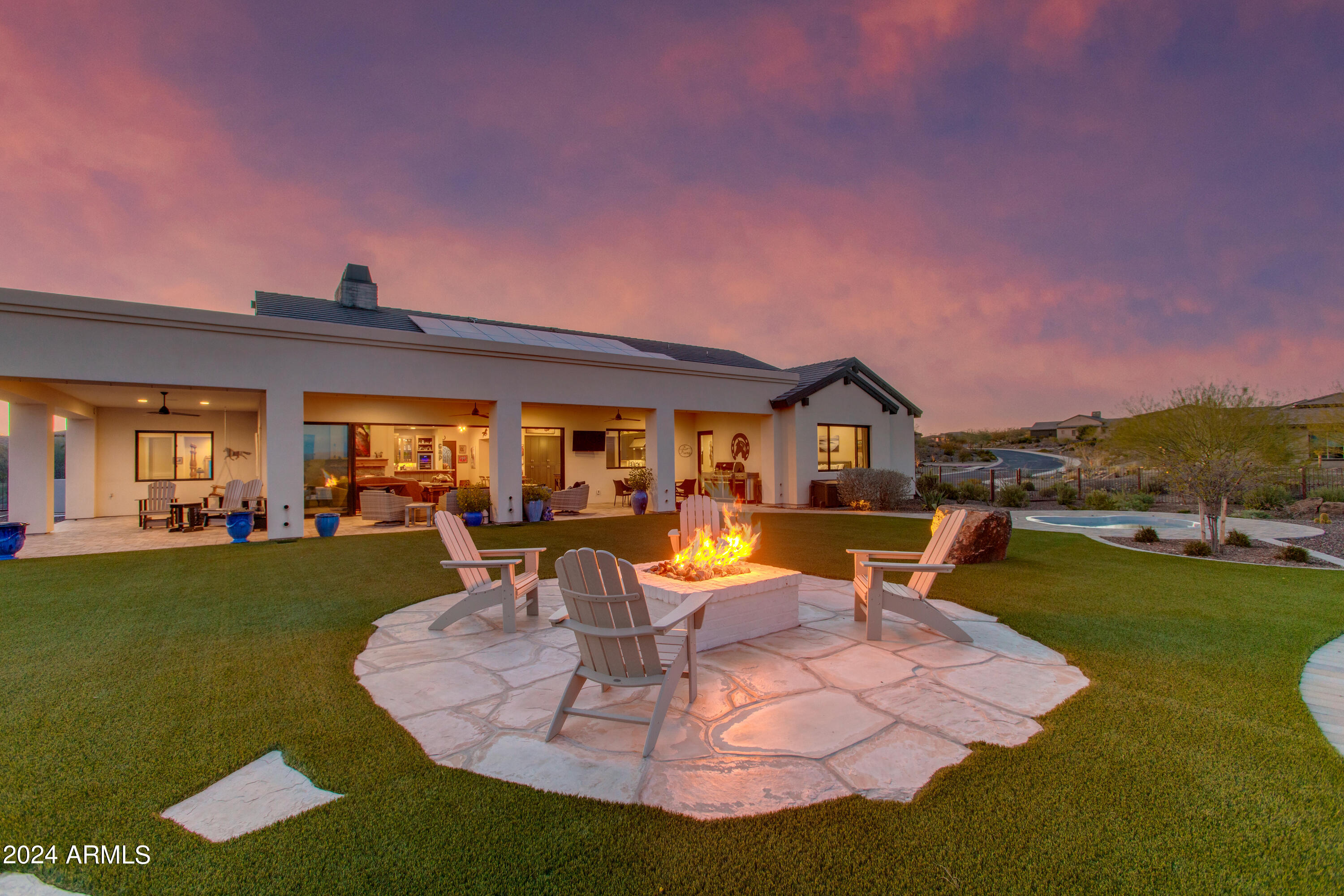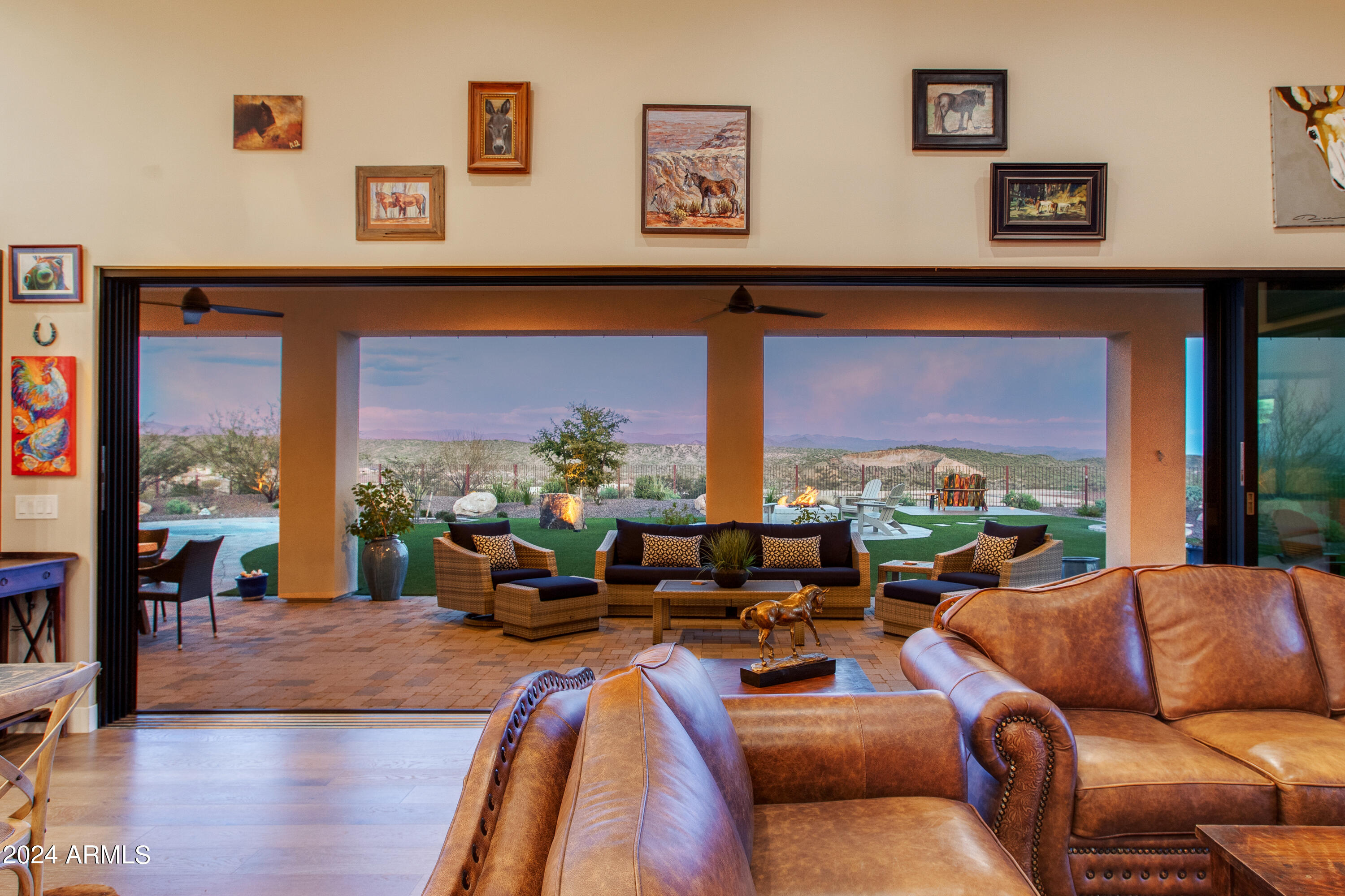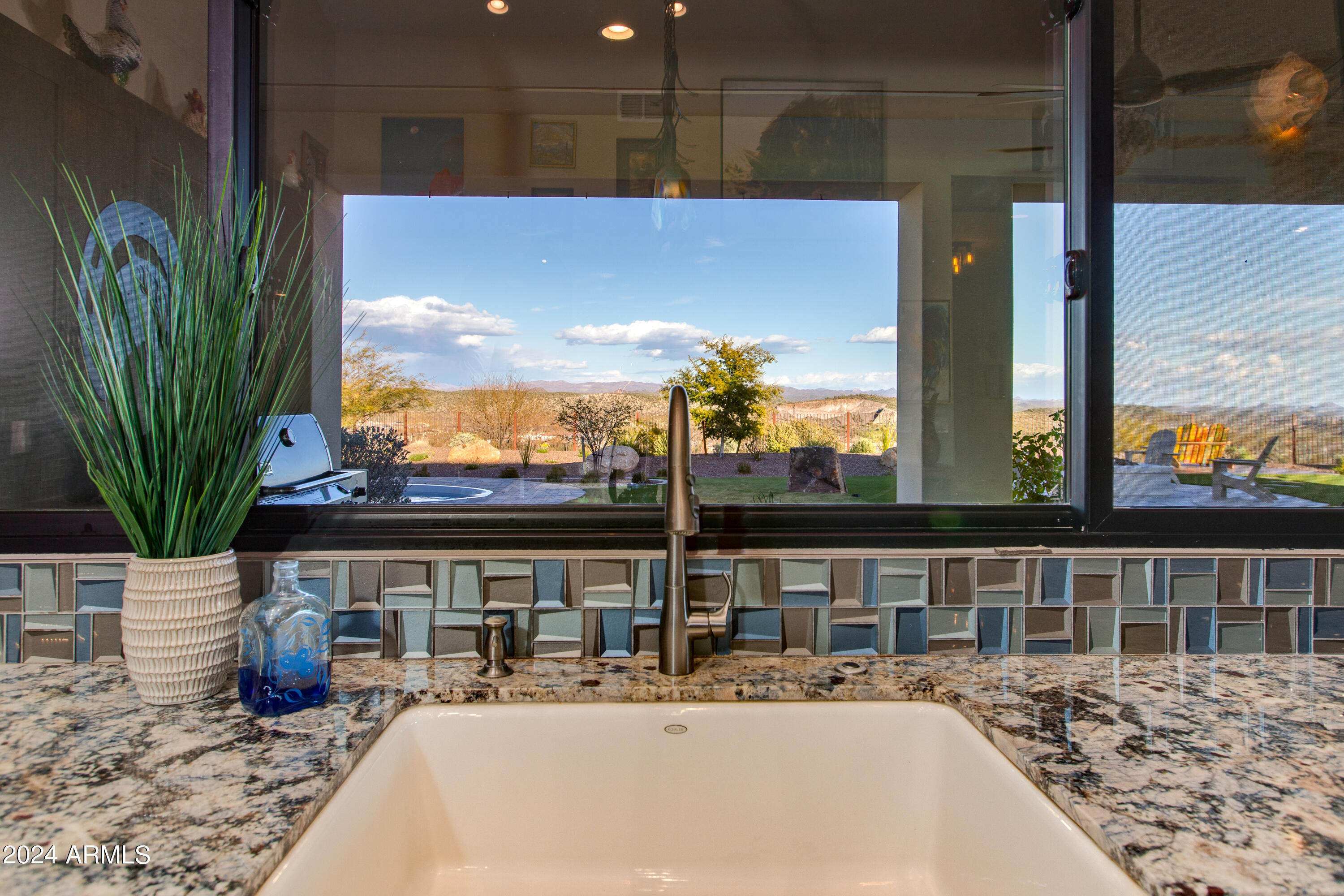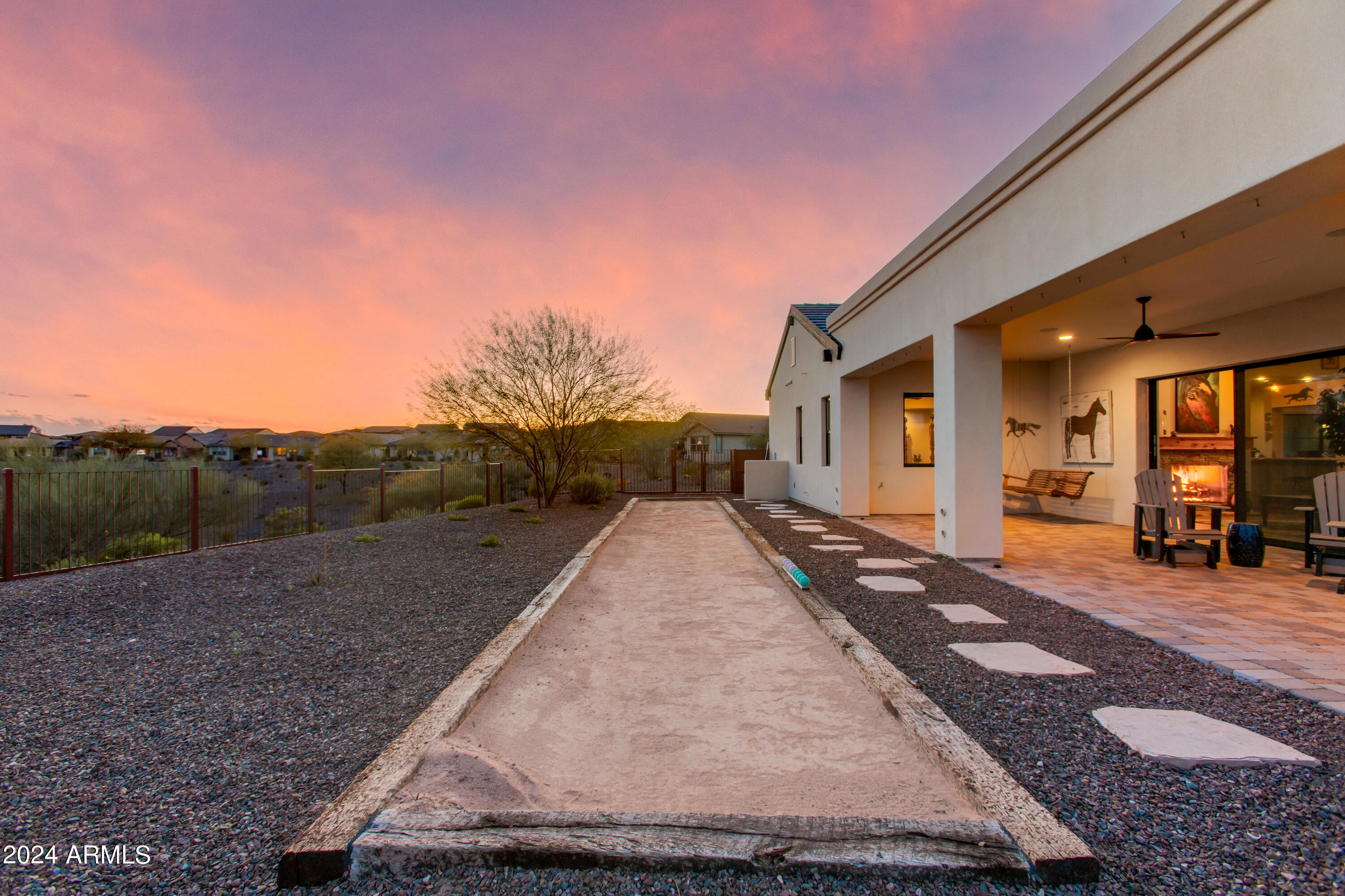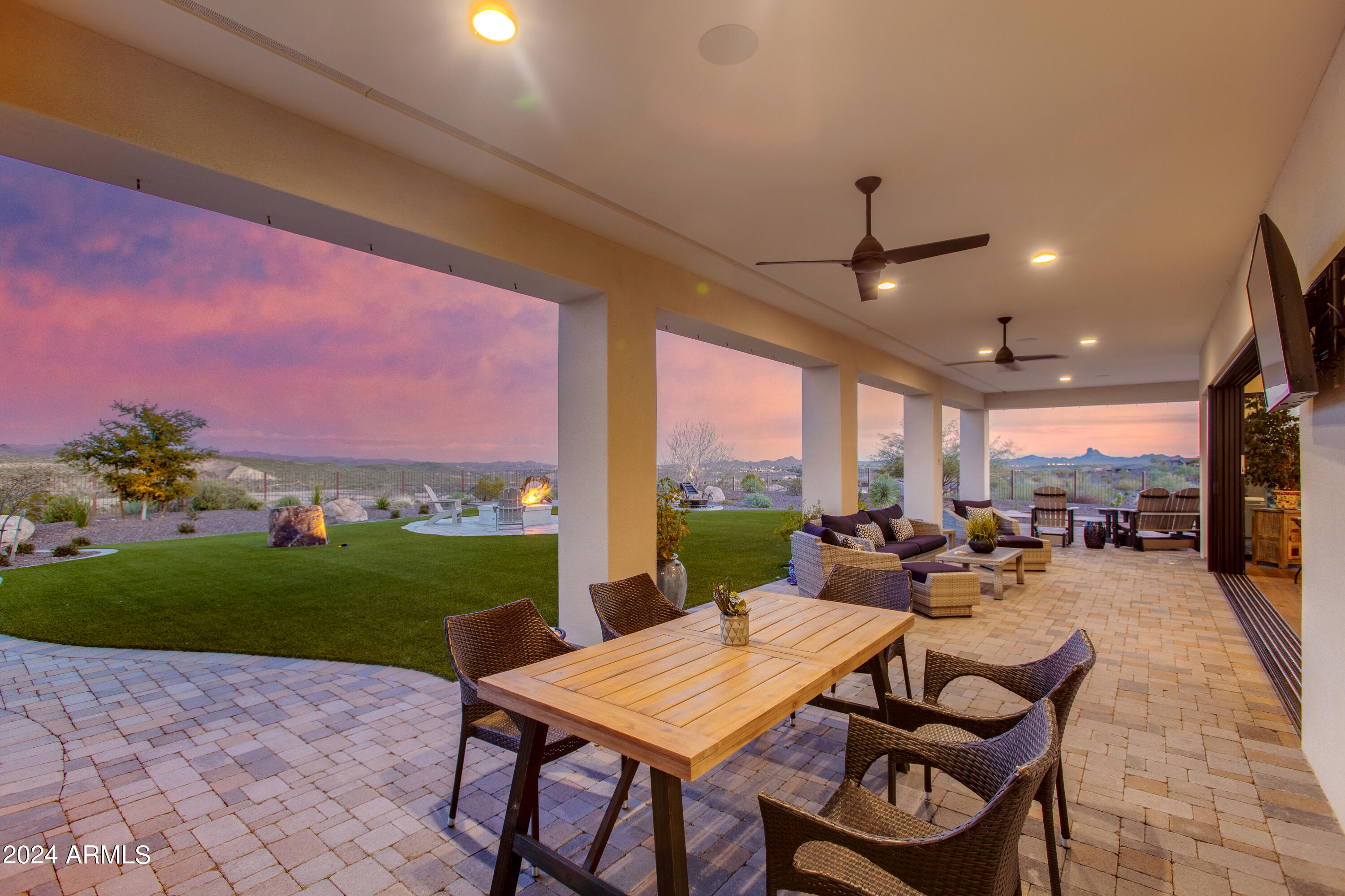 Give yourself the BEST WR has to offer. Enjoy 3/4 of an acre w/private panoramic views from every window. This one of a kind Scott Edmunds home is hosted on the largest homesite in WR. Spacious 3 bedroom 3.5 bath with Den. The Grand Living Room features gorgeous vaulted ceilings with beams and a built-in fireplace. Generous natural light with dramatic sliding walls of glass seamlessly blending your indoor and outdoor living spaces. Gourmet kitchen boast bountiful kitchen cabinets with builtin Wolf & Kitchenaid appliances. Gas cooktop includes a pot filler with custom decorative tile with under cabinet lighting. Kitchen island/breakfast bar houses built in microwave, separate prep sink with its own garbage disposal, builtin trash and recycling. Custom storage throughout. Primary Ensuite leads to a heavy glass shower enclosure with 4 shower heads walk-in with 2 entries coming from 2 separate water closets. Guest suites separated from Primary. Both ensuite with walk-in closets. Amazing backyard with multiple sitting/entertaining locations fully enclosed wrought iron fence with additional pest guard to keep out desert friends. Generous astro turf surrounds a large builtin gas fire pit with ample space for seating. In ground salt free hot tub, custom fountain & rock feature, bocce ball court, large covered patio with high pressure builtin misting system, Whole home Solar connects with EV charger. This is a MUST SEE. There is truly nothing in the community to compare.