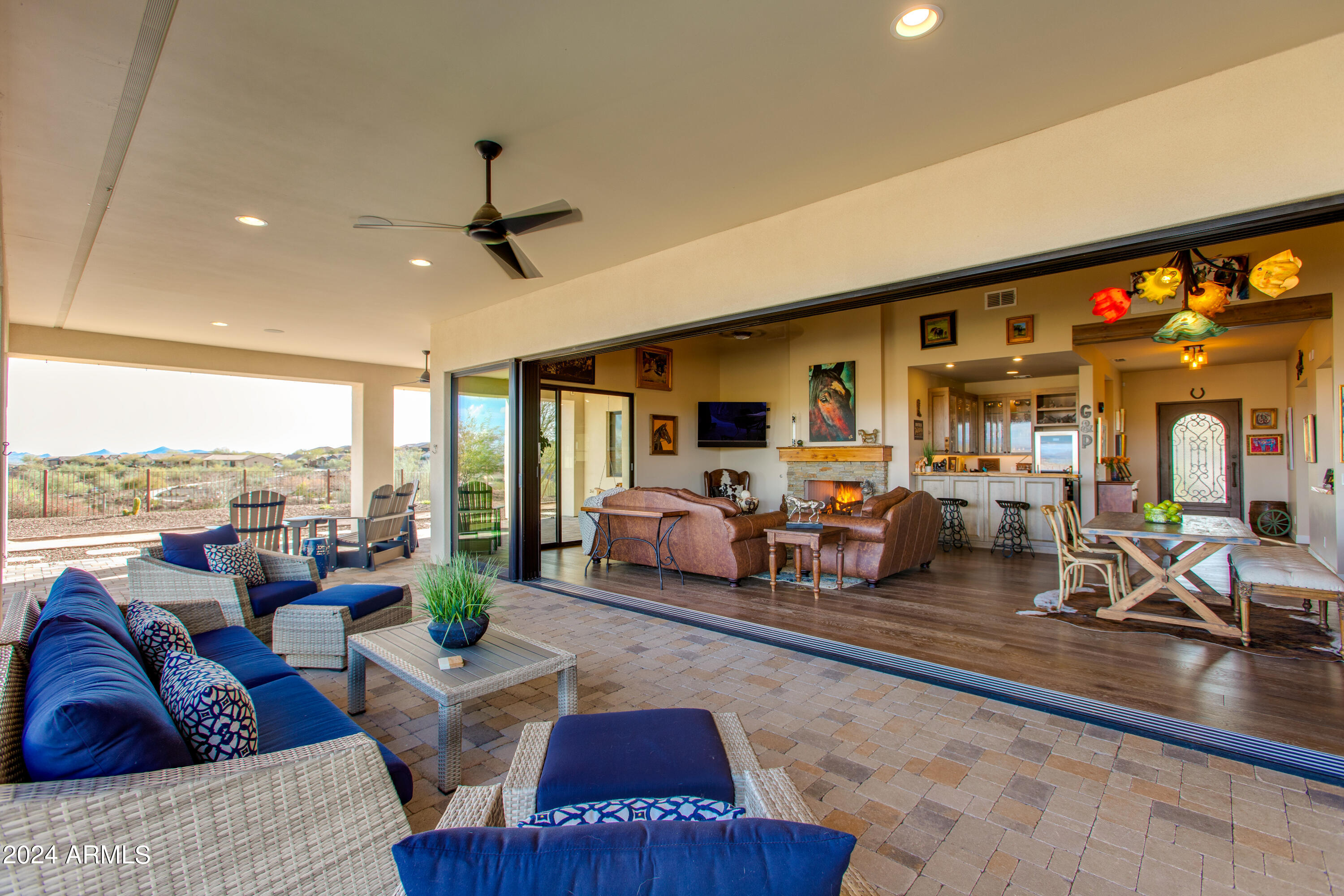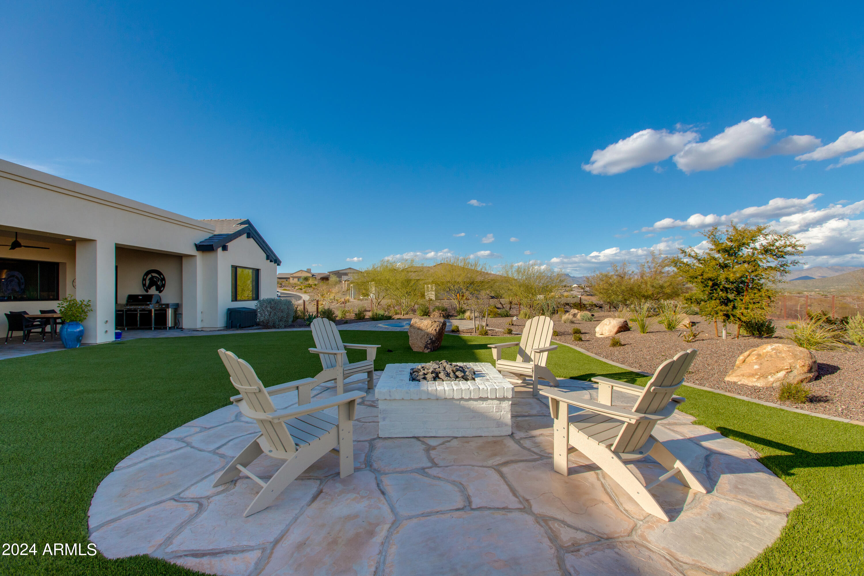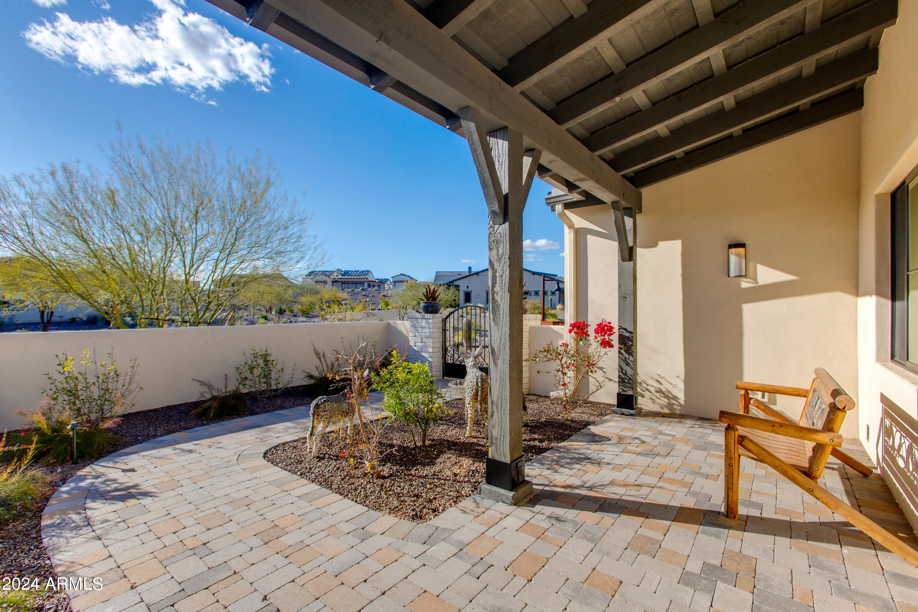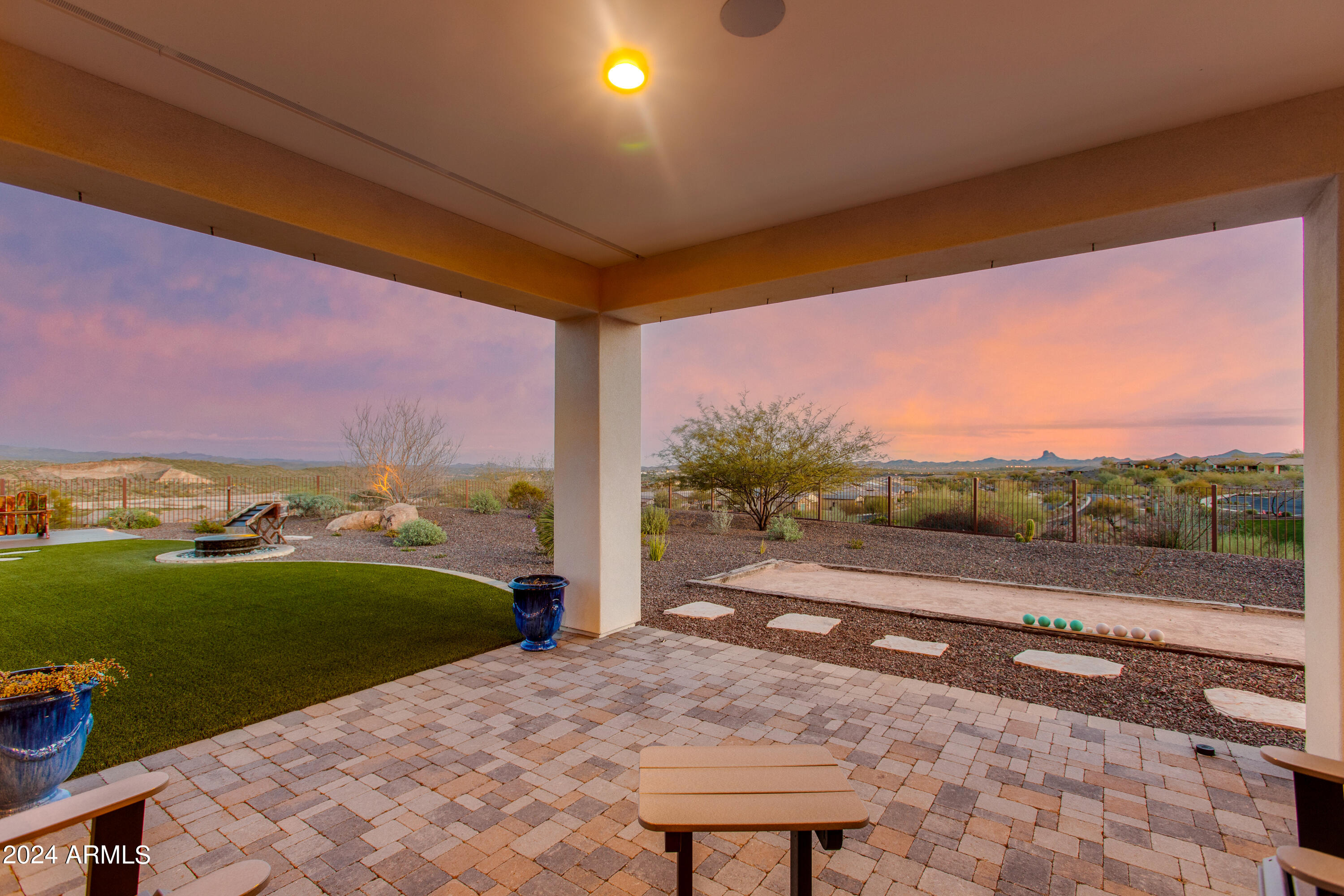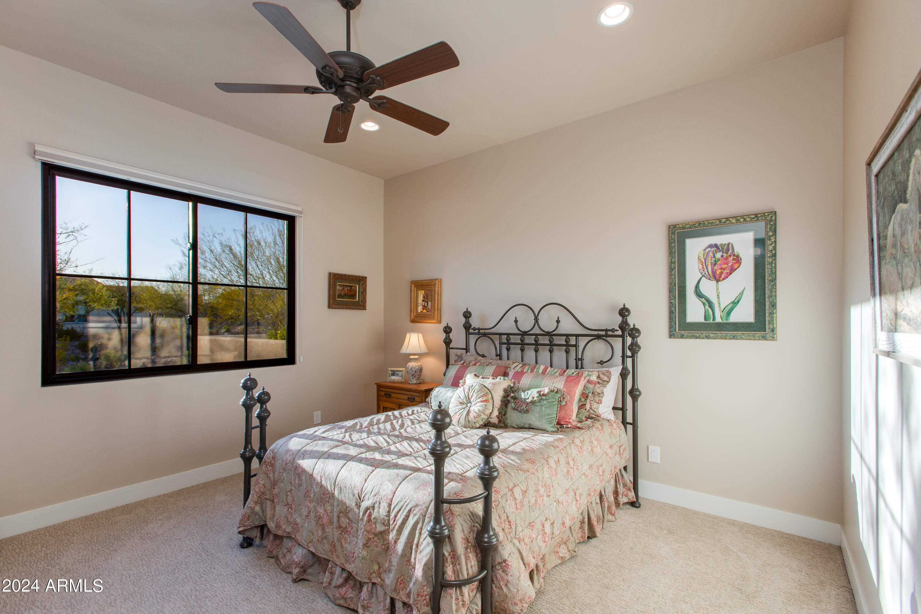 Give yourself the BEST WR has to offer. Enjoy 3/4 of an acre w/private panoramic views from every window. This one of a kind Scott Edmunds home is hosted on the largest homesite in WR. Spacious 3 bedroom 3.5 bath with Den. The Grand Living Room features gorgeous vaulted ceilings with beams and a built-in fireplace. Generous natural light with dramatic sliding walls of glass seamlessly blending your indoor and outdoor living spaces. Gourmet kitchen boast bountiful kitchen cabinets with builtin Wolf & Kitchenaid appliances. Gas cooktop includes a pot filler with custom decorative tile with under cabinet lighting. Kitchen island/breakfast bar houses built in microwave, separate prep sink with its own garbage disposal, builtin trash and recycling. Custom storage throughout. Primary Ensuite leads to a heavy glass shower enclosure with 4 shower heads walk-in with 2 entries coming from 2 separate water closets. Guest suites separated from Primary. Both ensuite with walk-in closets. Amazing backyard with multiple sitting/entertaining locations fully enclosed wrought iron fence with additional pest guard to keep out desert friends. Generous astro turf surrounds a large builtin gas fire pit with ample space for seating. In ground salt free hot tub, custom fountain & rock feature, bocce ball court, large covered patio with high pressure builtin misting system, Whole home Solar connects with EV charger. This is a MUST SEE. There is truly nothing in the community to compare.