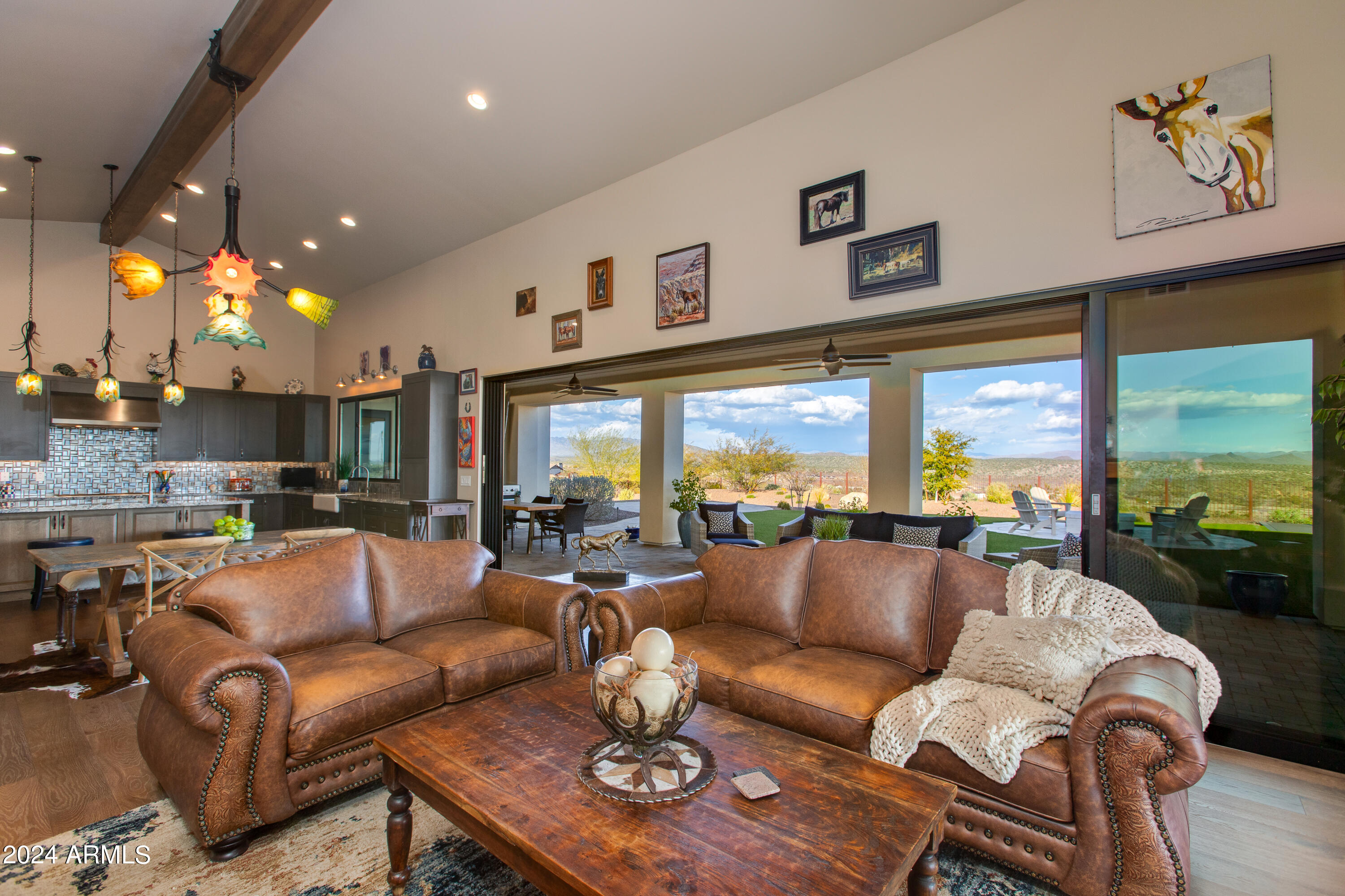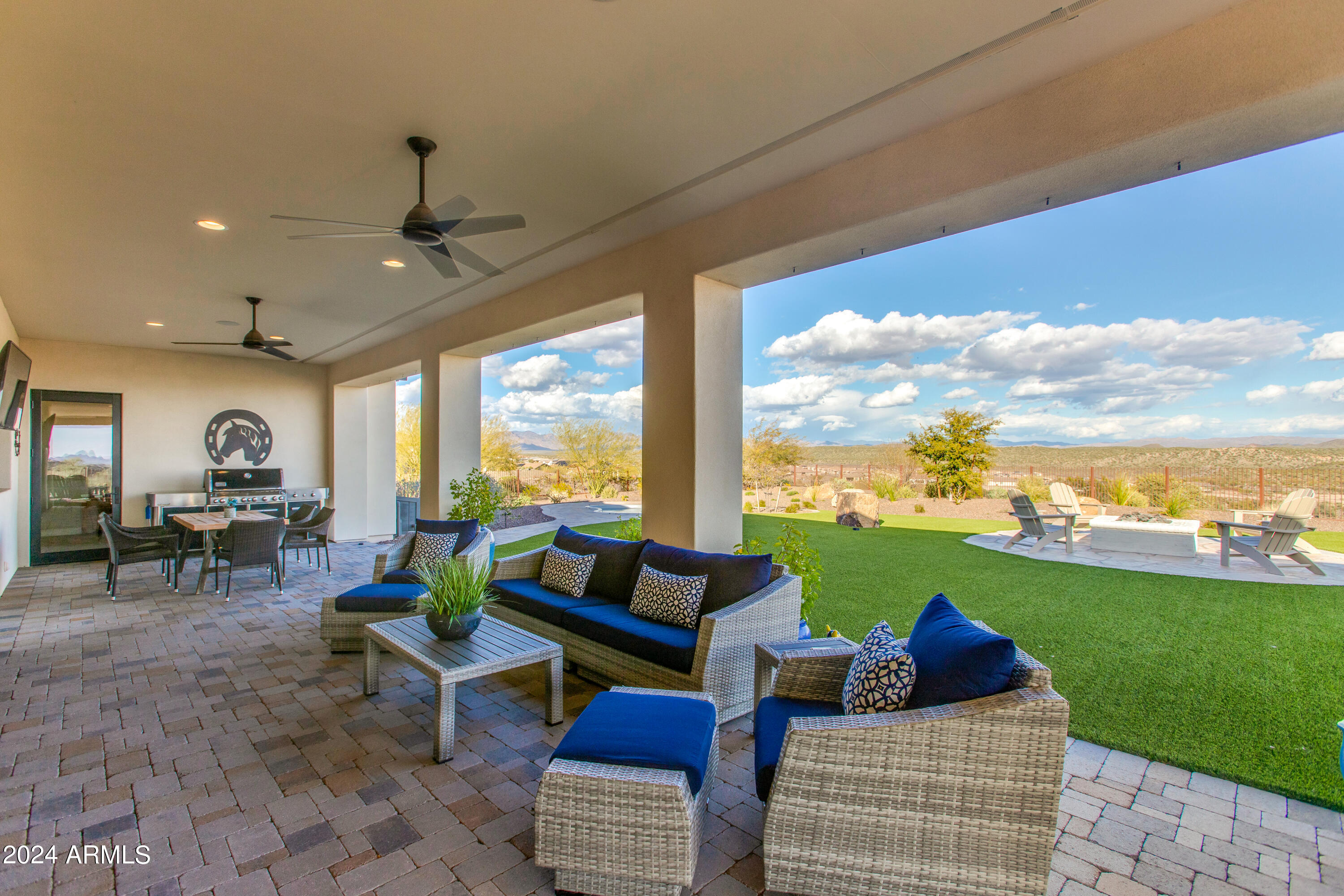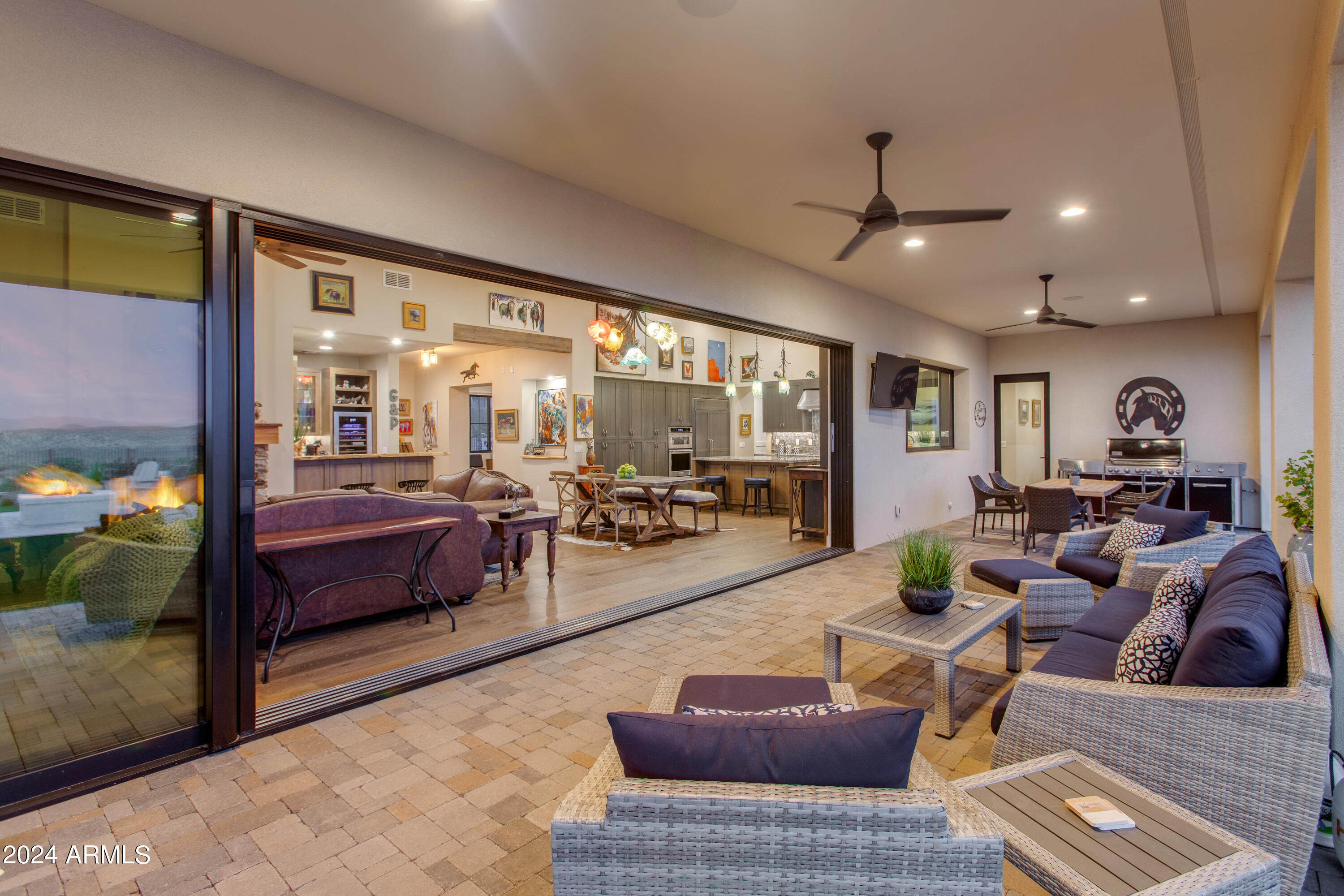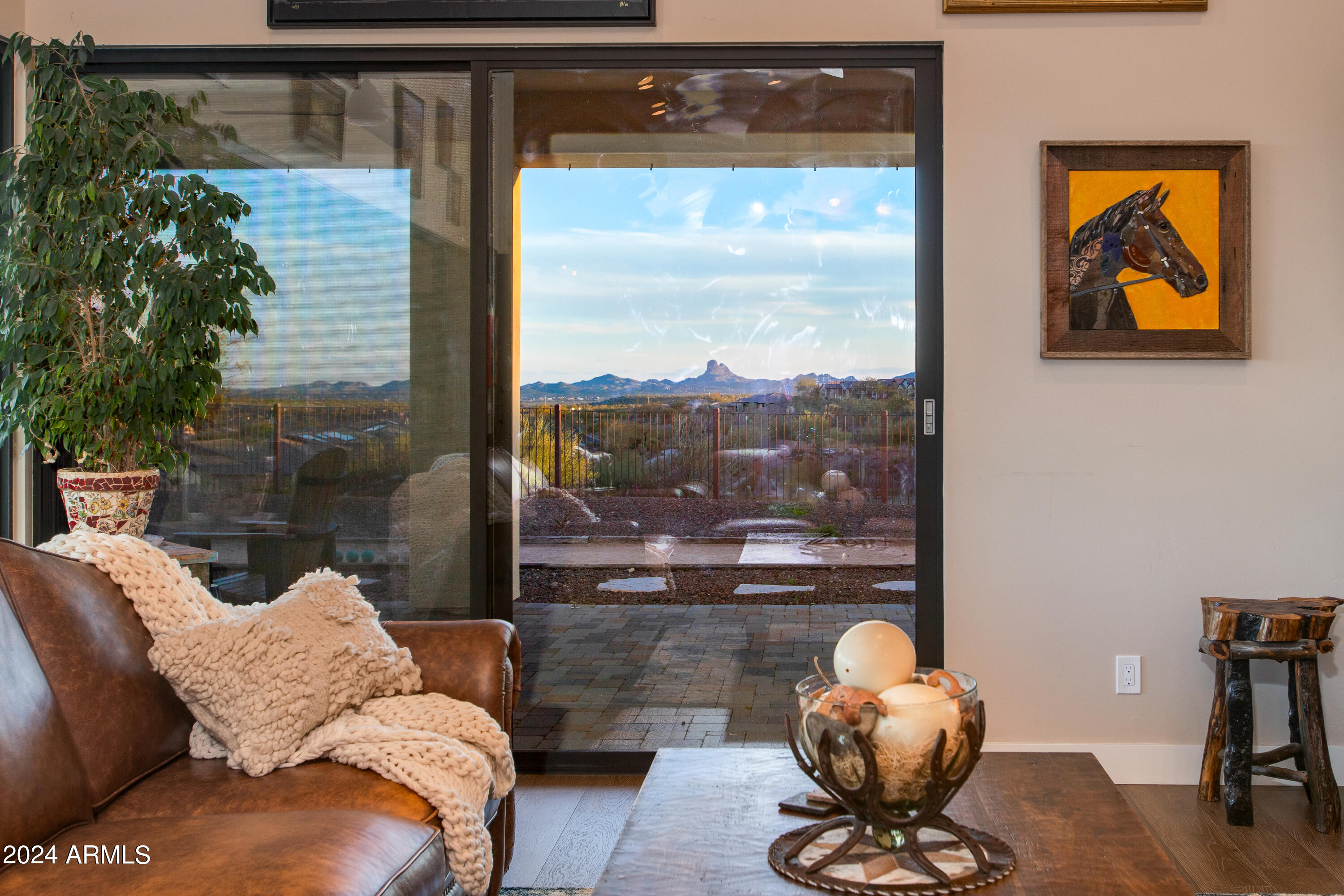 Give yourself the BEST WR has to offer. Enjoy 3/4 of an acre w/private panoramic views from every window. This one of a kind Scott Edmunds home is hosted on the largest homesite in WR. Spacious 3 bedroom 3.5 bath with Den. The Grand Living Room features gorgeous vaulted ceilings with beams and a built-in fireplace. Generous natural light with dramatic sliding walls of glass seamlessly blending your indoor and outdoor living spaces. Gourmet kitchen boast bountiful kitchen cabinets with builtin Wolf & Kitchenaid appliances. Gas cooktop includes a pot filler with custom decorative tile with under cabinet lighting. Kitchen island/breakfast bar houses built in microwave, separate prep sink with its own garbage disposal, builtin trash and recycling. Custom storage throughout. Primary Ensuite leads to a heavy glass shower enclosure with 4 shower heads walk-in with 2 entries coming from 2 separate water closets. Guest suites separated from Primary. Both ensuite with walk-in closets. Amazing backyard with multiple sitting/entertaining locations fully enclosed wrought iron fence with additional pest guard to keep out desert friends. Generous astro turf surrounds a large builtin gas fire pit with ample space for seating. In ground salt free hot tub, custom fountain & rock feature, bocce ball court, large covered patio with high pressure builtin misting system, Whole home Solar connects with EV charger. This is a MUST SEE. There is truly nothing in the community to compare.