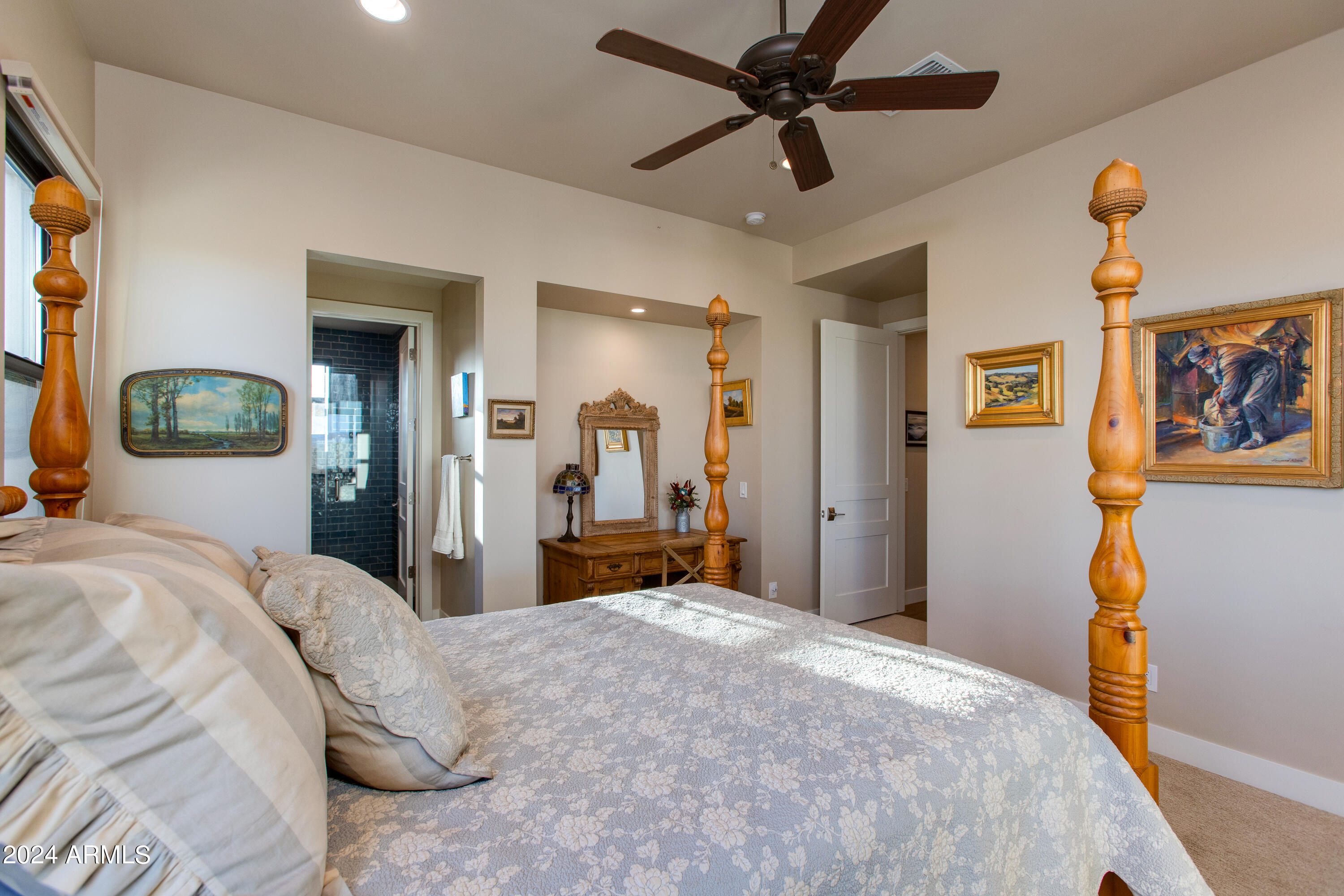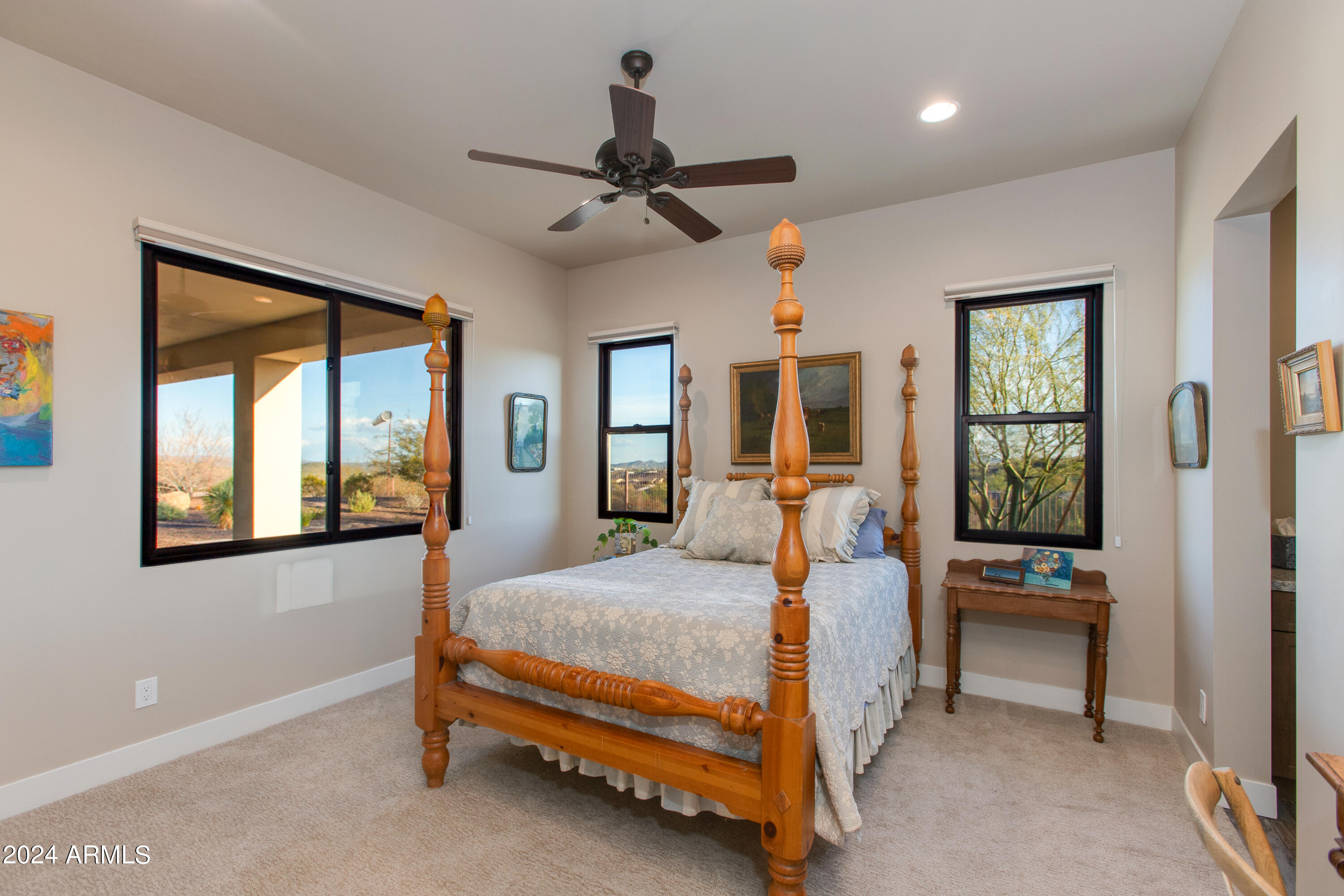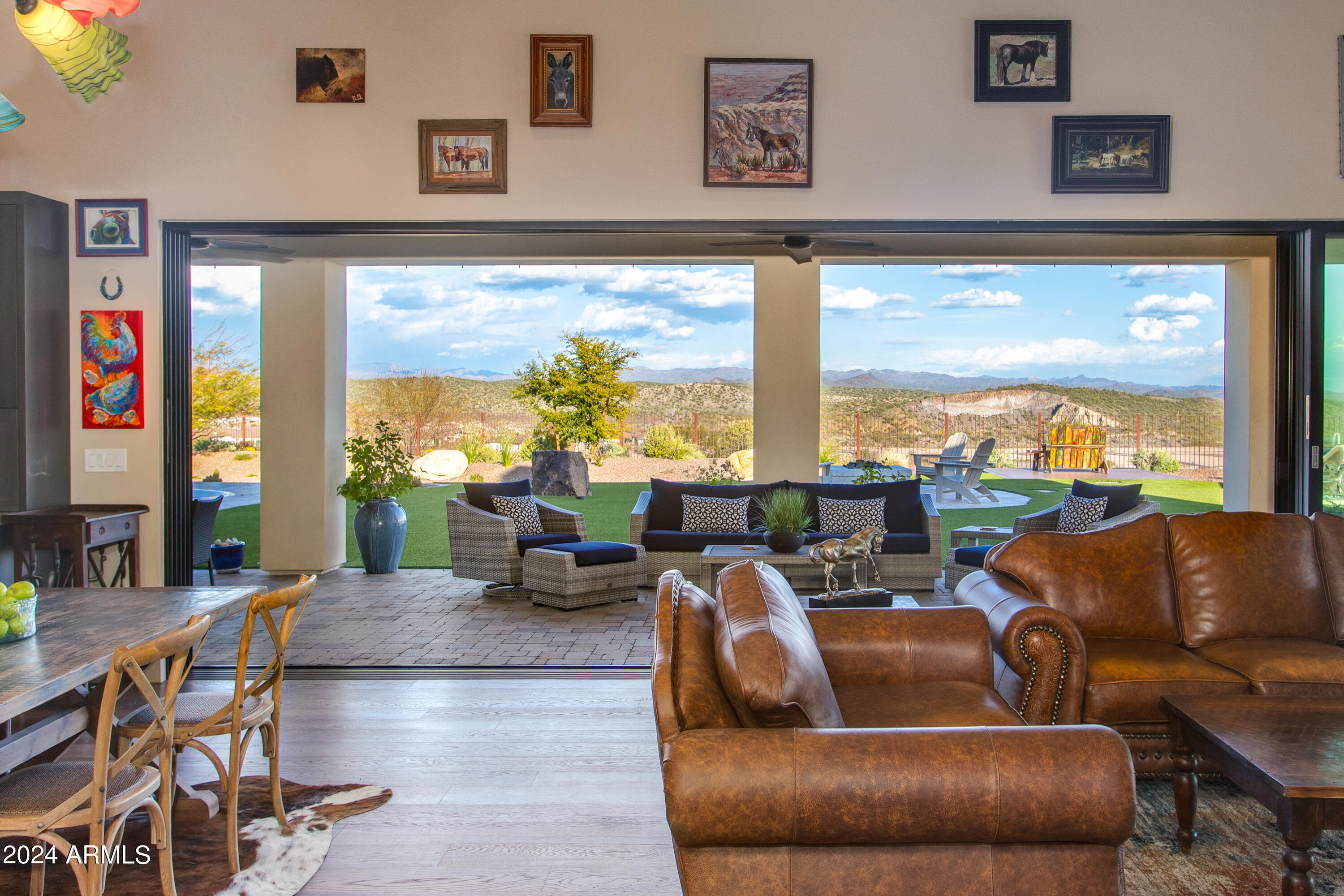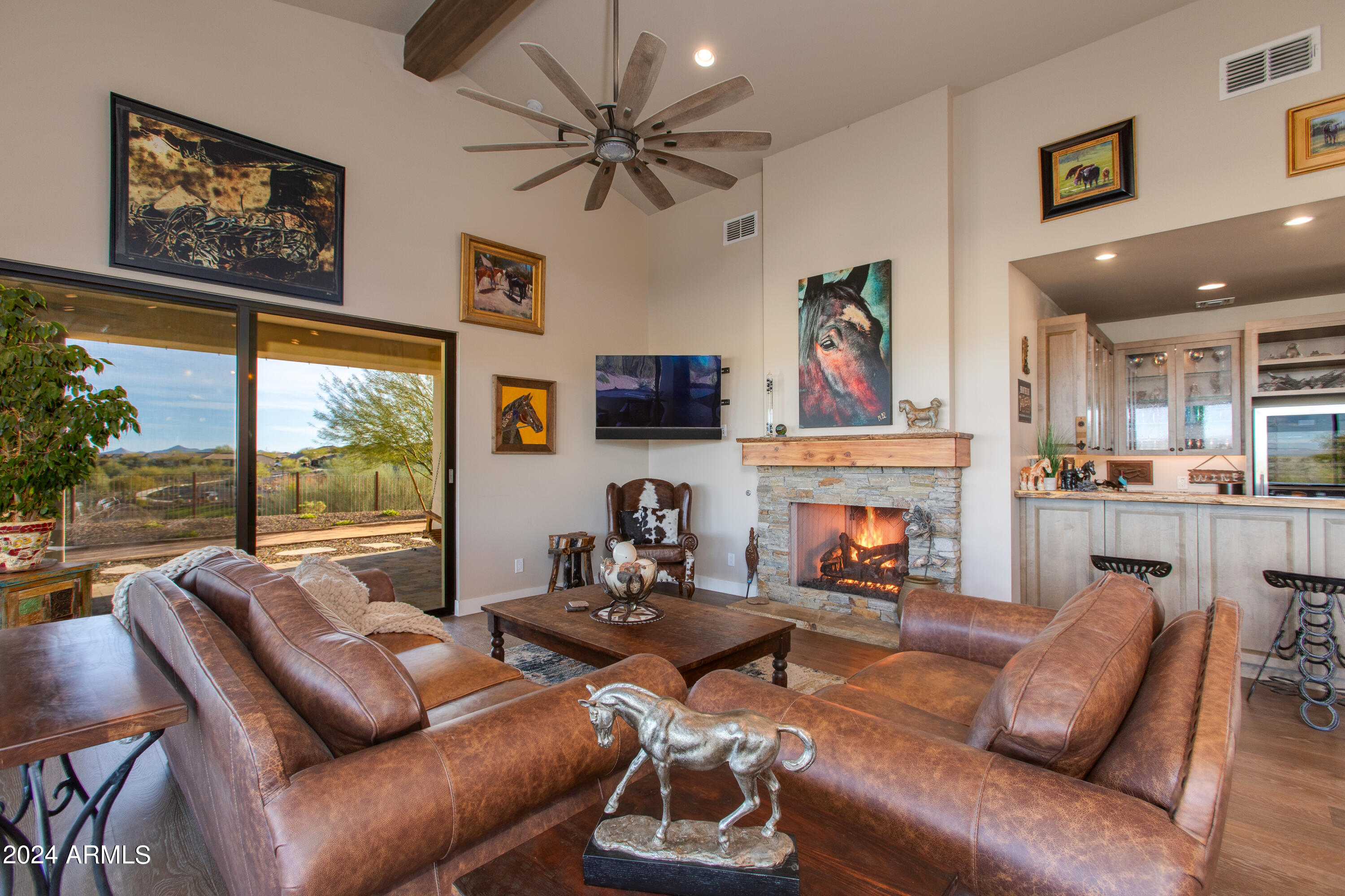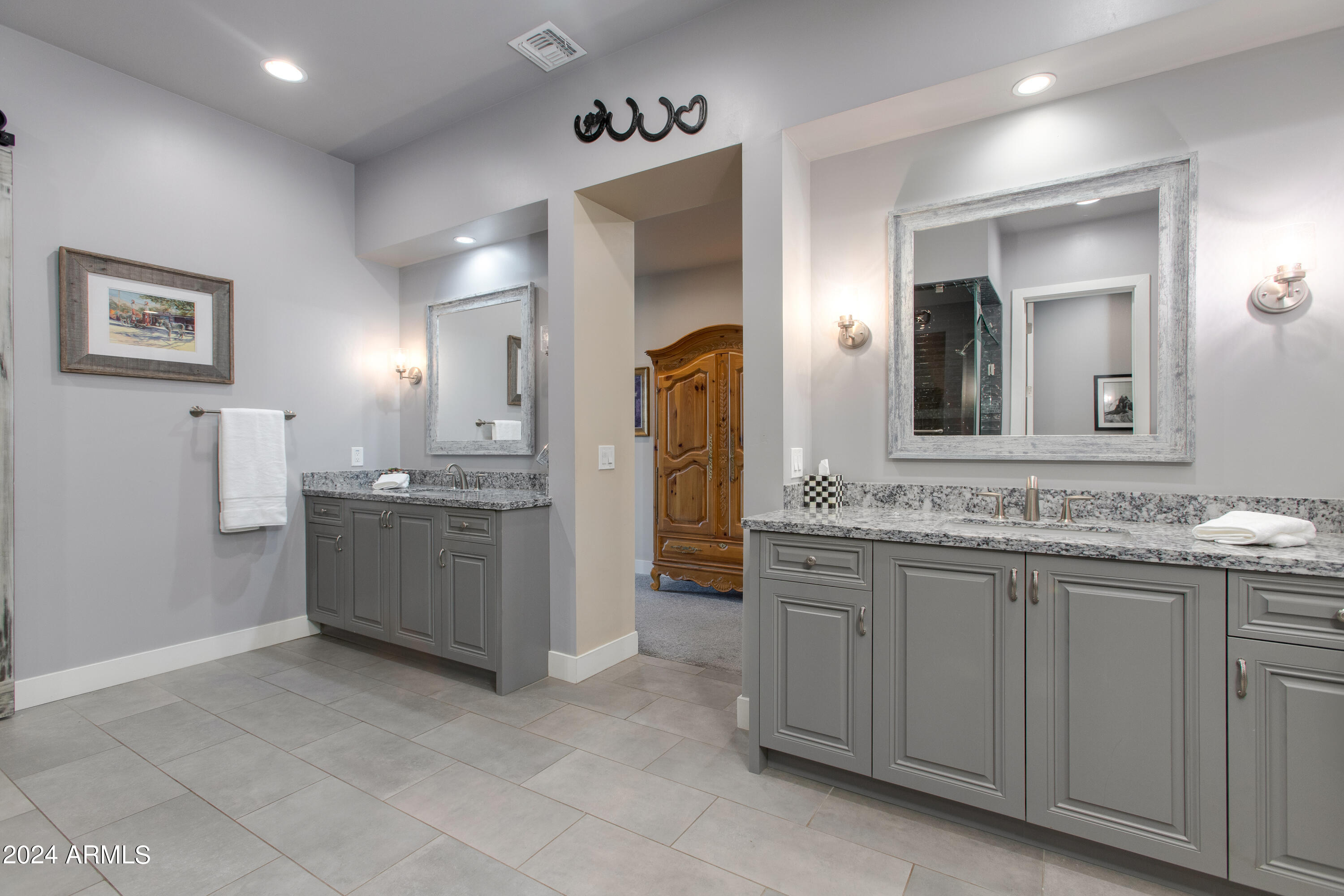 Give yourself the BEST WR has to offer. Enjoy 3/4 of an acre w/private panoramic views from every window. This one of a kind Scott Edmunds home is hosted on the largest homesite in WR. Spacious 3 bedroom 3.5 bath with Den. The Grand Living Room features gorgeous vaulted ceilings with beams and a built-in fireplace. Generous natural light with dramatic sliding walls of glass seamlessly blending your indoor and outdoor living spaces. Gourmet kitchen boast bountiful kitchen cabinets with builtin Wolf & Kitchenaid appliances. Gas cooktop includes a pot filler with custom decorative tile with under cabinet lighting. Kitchen island/breakfast bar houses built in microwave, separate prep sink with its own garbage disposal, builtin trash and recycling. Custom storage throughout. Primary Ensuite leads to a heavy glass shower enclosure with 4 shower heads walk-in with 2 entries coming from 2 separate water closets. Guest suites separated from Primary. Both ensuite with walk-in closets. Amazing backyard with multiple sitting/entertaining locations fully enclosed wrought iron fence with additional pest guard to keep out desert friends. Generous astro turf surrounds a large builtin gas fire pit with ample space for seating. In ground salt free hot tub, custom fountain & rock feature, bocce ball court, large covered patio with high pressure builtin misting system, Whole home Solar connects with EV charger. This is a MUST SEE. There is truly nothing in the community to compare.