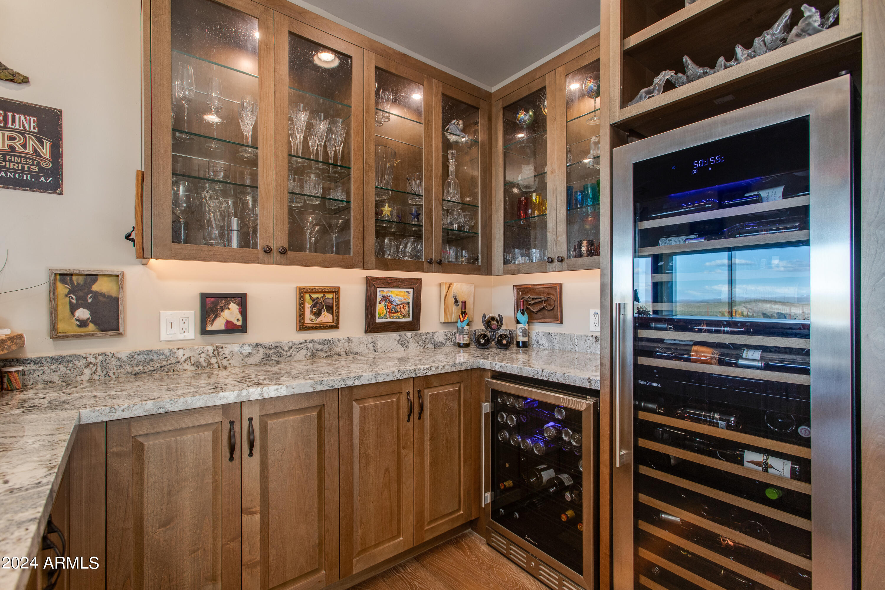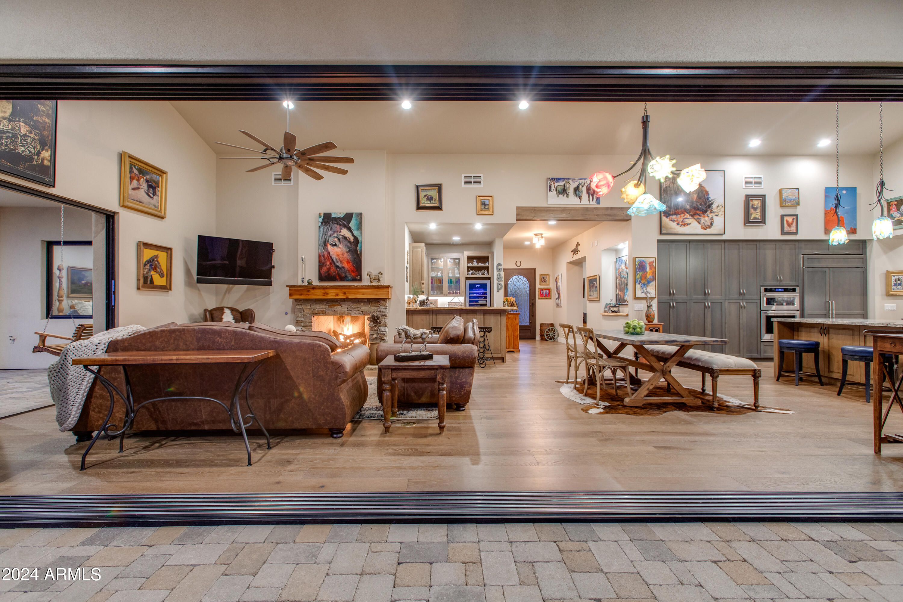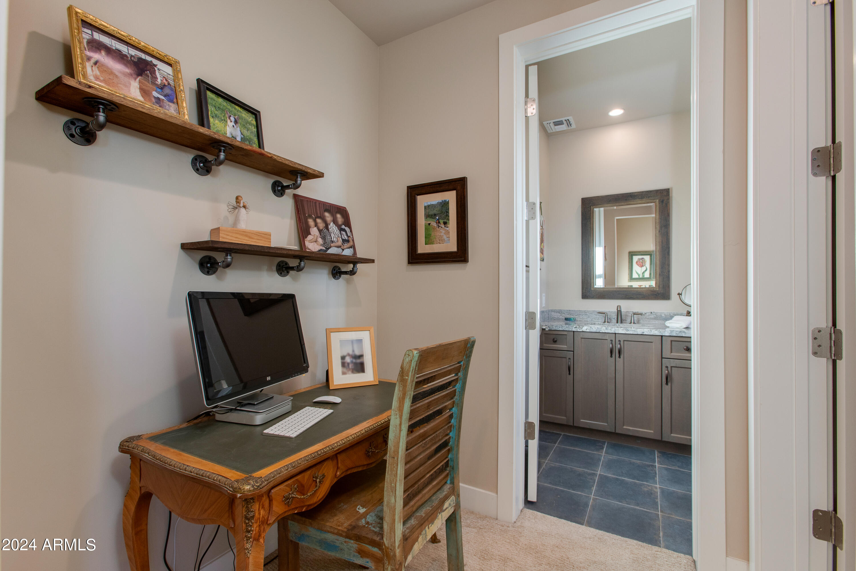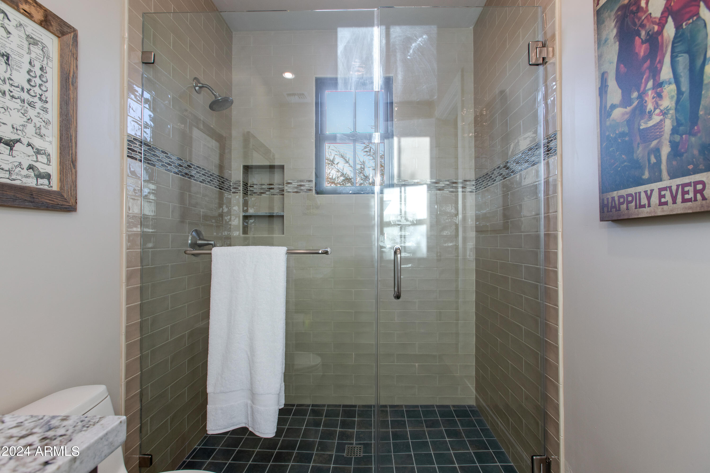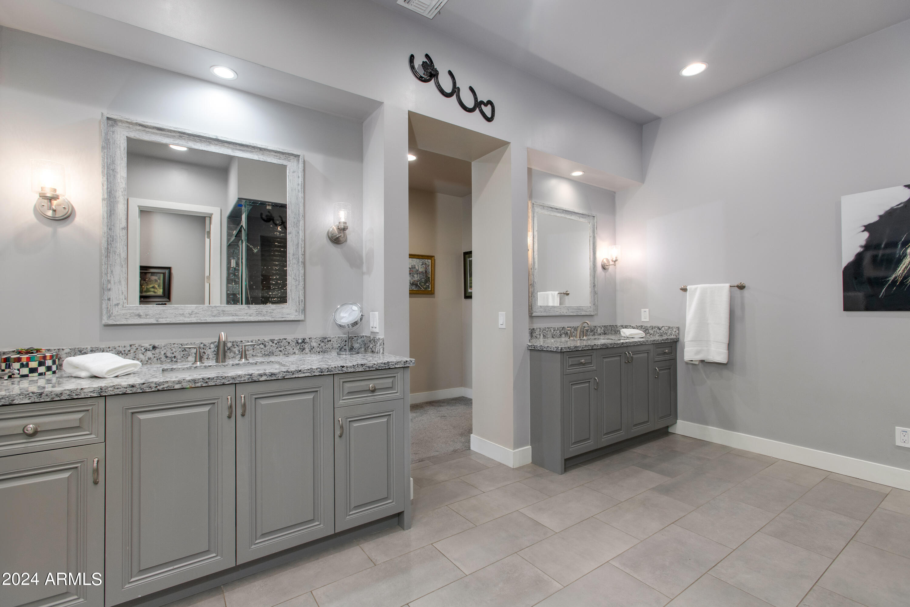 Give yourself the BEST WR has to offer. Enjoy 3/4 of an acre w/private panoramic views from every window. This one of a kind Scott Edmunds home is hosted on the largest homesite in WR. Spacious 3 bedroom 3.5 bath with Den. The Grand Living Room features gorgeous vaulted ceilings with beams and a built-in fireplace. Generous natural light with dramatic sliding walls of glass seamlessly blending your indoor and outdoor living spaces. Gourmet kitchen boast bountiful kitchen cabinets with builtin Wolf & Kitchenaid appliances. Gas cooktop includes a pot filler with custom decorative tile with under cabinet lighting. Kitchen island/breakfast bar houses built in microwave, separate prep sink with its own garbage disposal, builtin trash and recycling. Custom storage throughout. Primary Ensuite leads to a heavy glass shower enclosure with 4 shower heads walk-in with 2 entries coming from 2 separate water closets. Guest suites separated from Primary. Both ensuite with walk-in closets. Amazing backyard with multiple sitting/entertaining locations fully enclosed wrought iron fence with additional pest guard to keep out desert friends. Generous astro turf surrounds a large builtin gas fire pit with ample space for seating. In ground salt free hot tub, custom fountain & rock feature, bocce ball court, large covered patio with high pressure builtin misting system, Whole home Solar connects with EV charger. This is a MUST SEE. There is truly nothing in the community to compare.