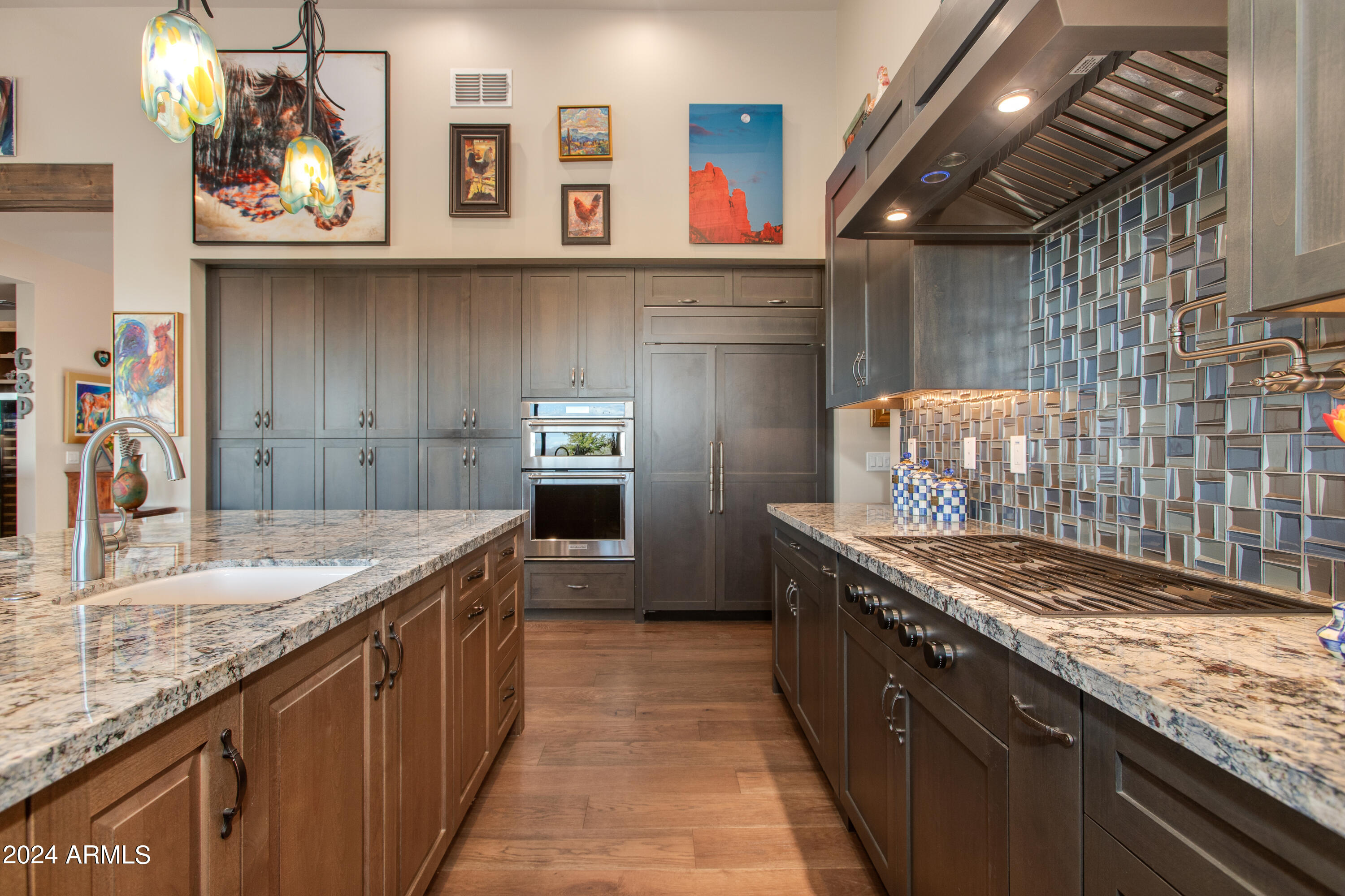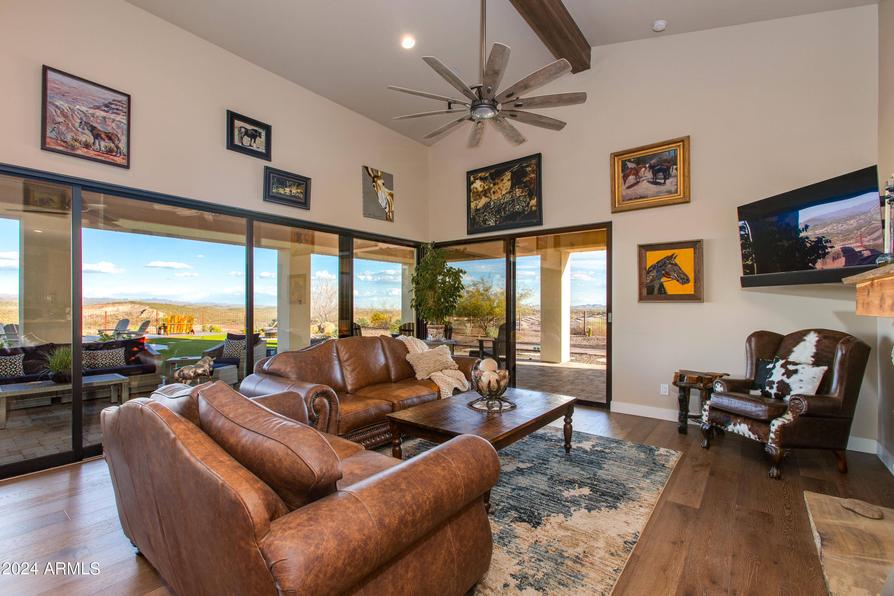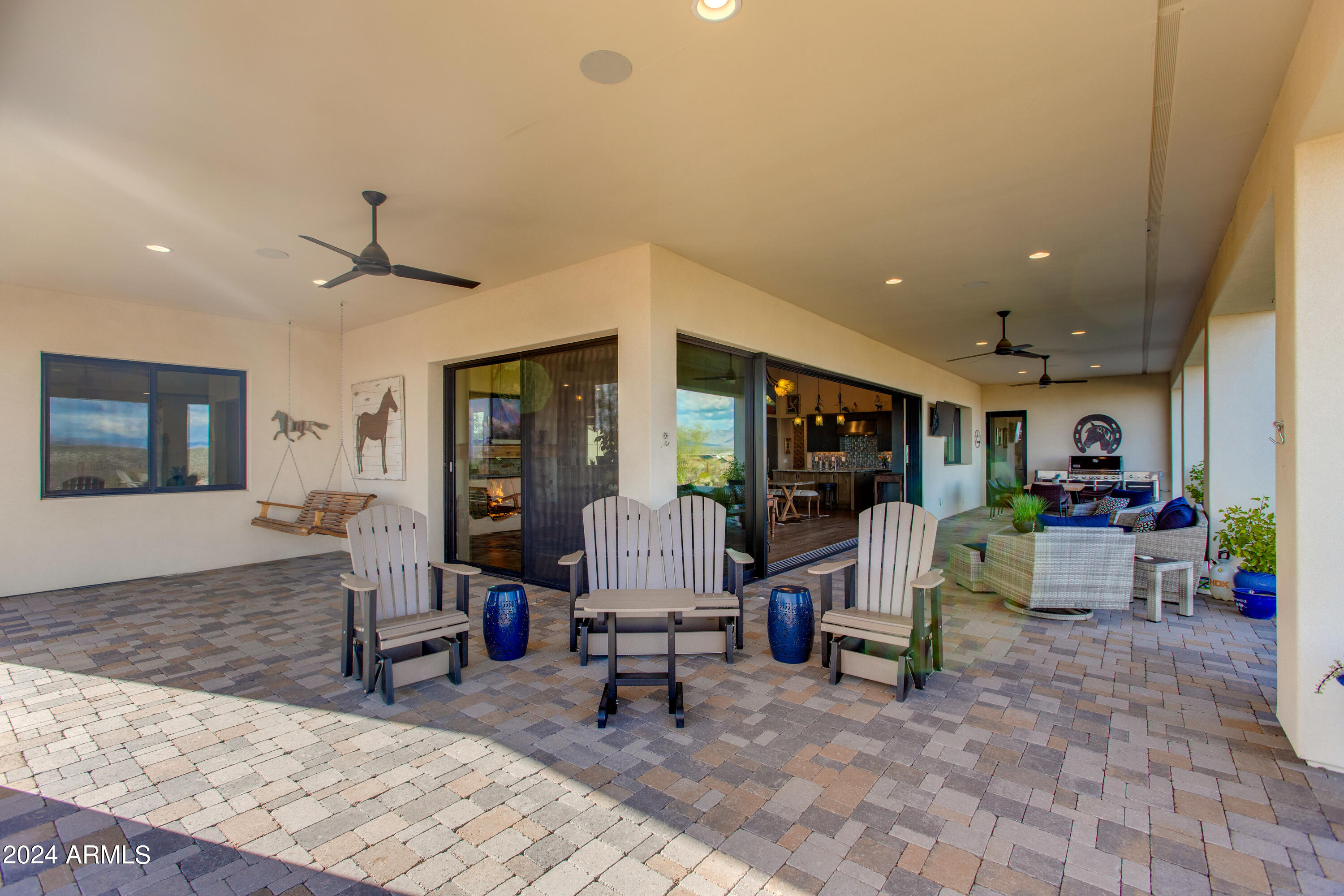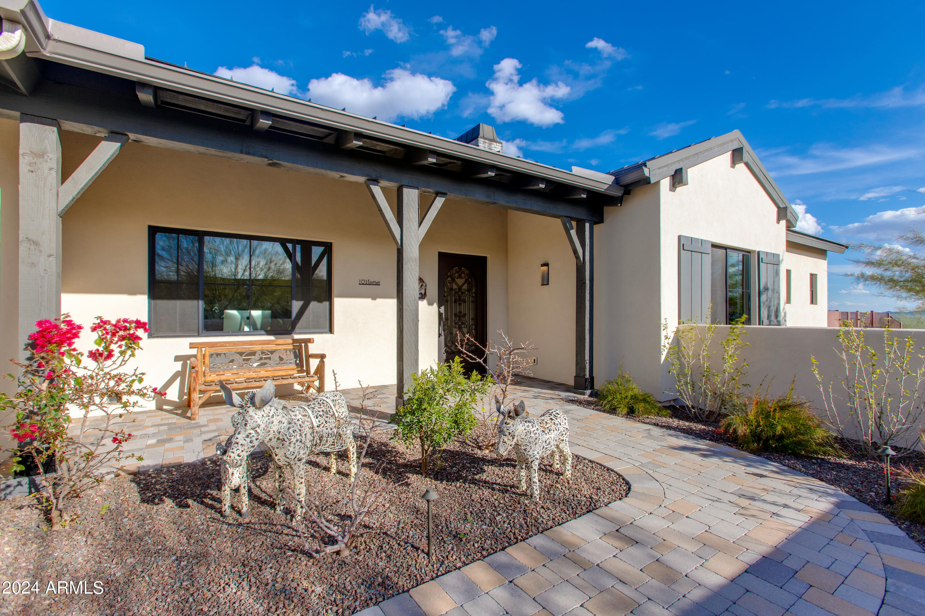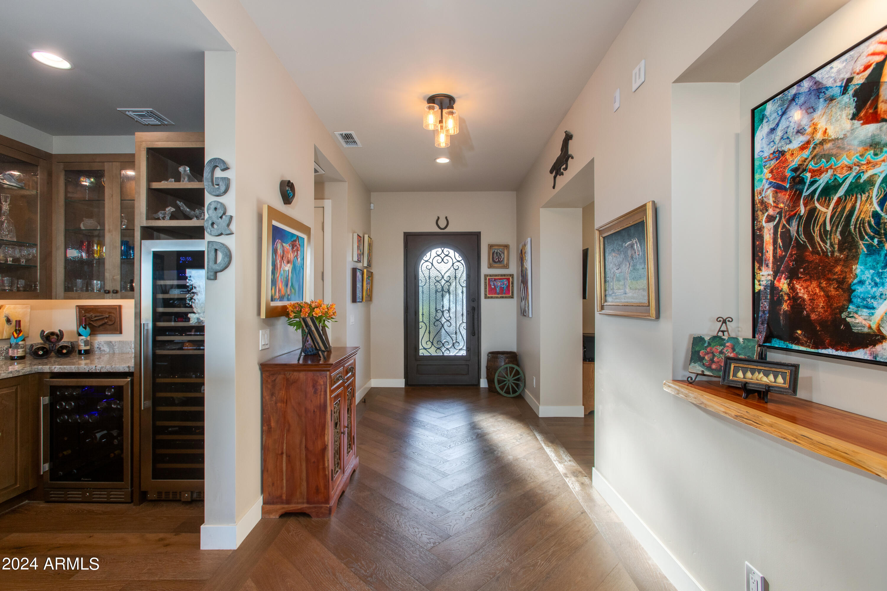 Give yourself the BEST WR has to offer. Enjoy 3/4 of an acre w/private panoramic views from every window. This one of a kind Scott Edmunds home is hosted on the largest homesite in WR. Spacious 3 bedroom 3.5 bath with Den. The Grand Living Room features gorgeous vaulted ceilings with beams and a built-in fireplace. Generous natural light with dramatic sliding walls of glass seamlessly blending your indoor and outdoor living spaces. Gourmet kitchen boast bountiful kitchen cabinets with builtin Wolf & Kitchenaid appliances. Gas cooktop includes a pot filler with custom decorative tile with under cabinet lighting. Kitchen island/breakfast bar houses built in microwave, separate prep sink with its own garbage disposal, builtin trash and recycling. Custom storage throughout. Primary Ensuite leads to a heavy glass shower enclosure with 4 shower heads walk-in with 2 entries coming from 2 separate water closets. Guest suites separated from Primary. Both ensuite with walk-in closets. Amazing backyard with multiple sitting/entertaining locations fully enclosed wrought iron fence with additional pest guard to keep out desert friends. Generous astro turf surrounds a large builtin gas fire pit with ample space for seating. In ground salt free hot tub, custom fountain & rock feature, bocce ball court, large covered patio with high pressure builtin misting system, Whole home Solar connects with EV charger. This is a MUST SEE. There is truly nothing in the community to compare.