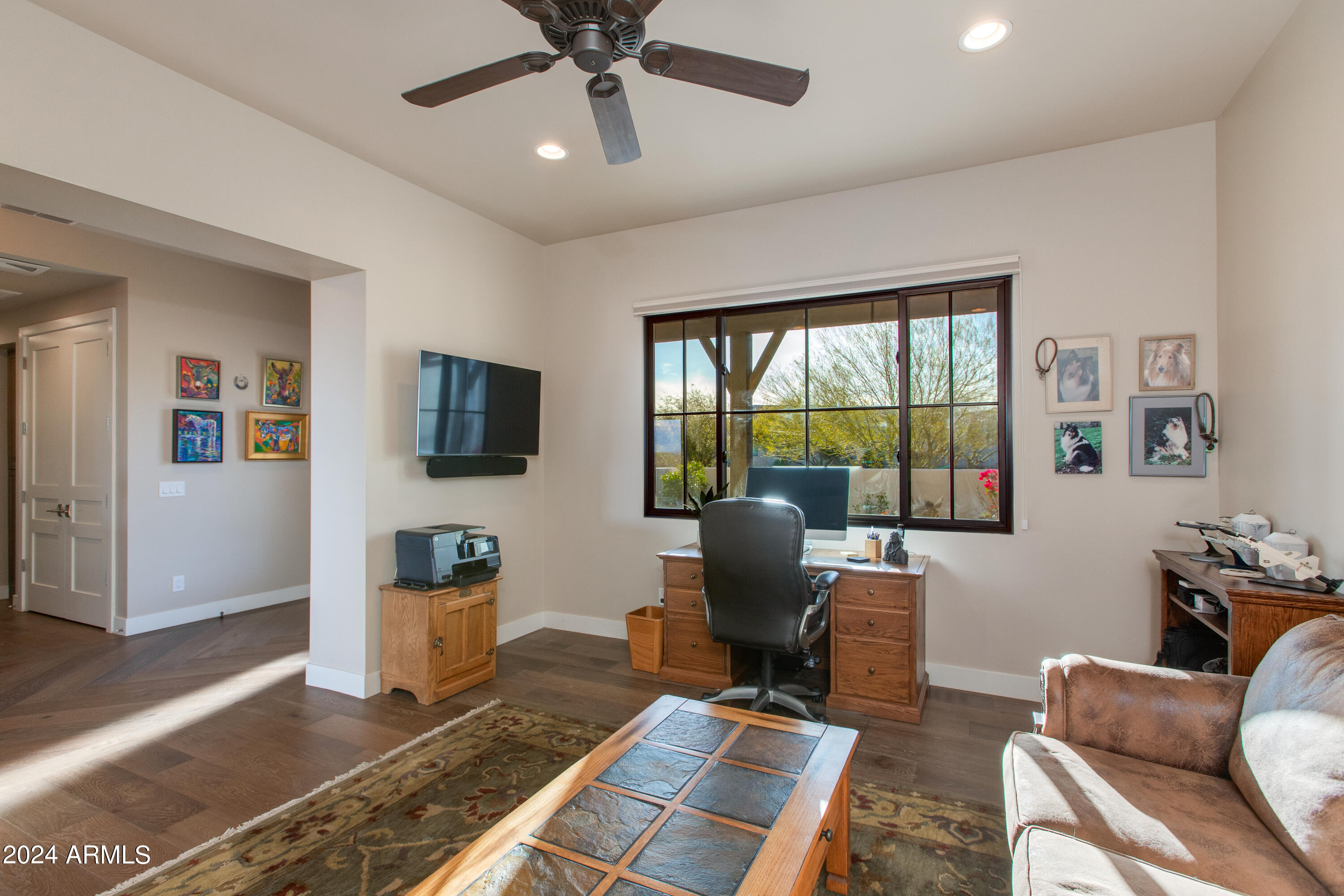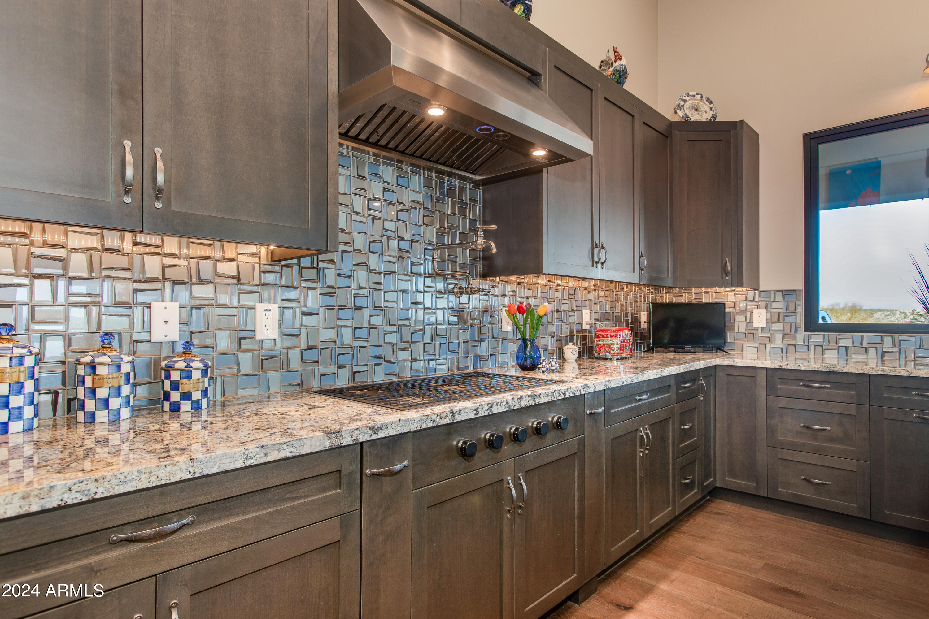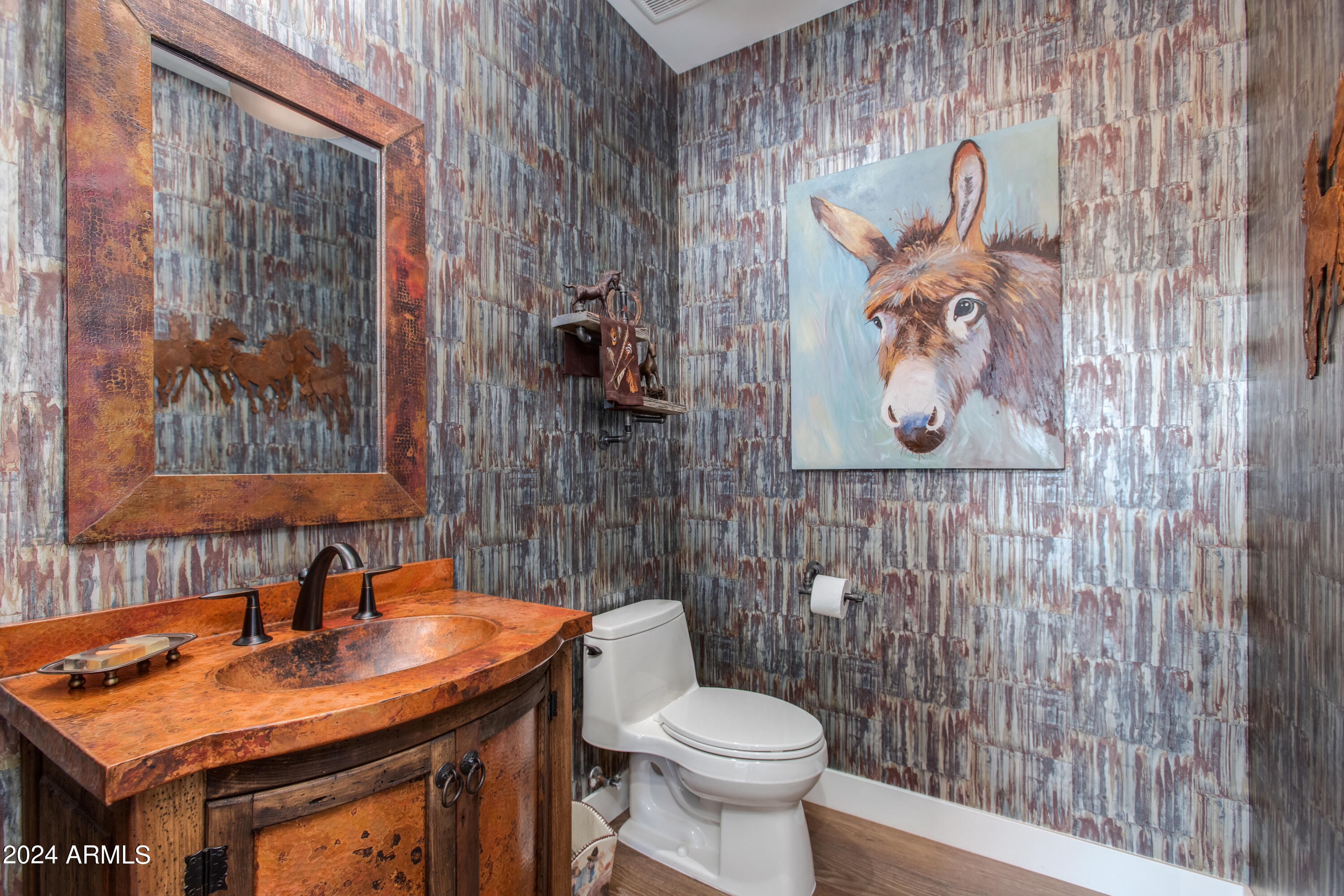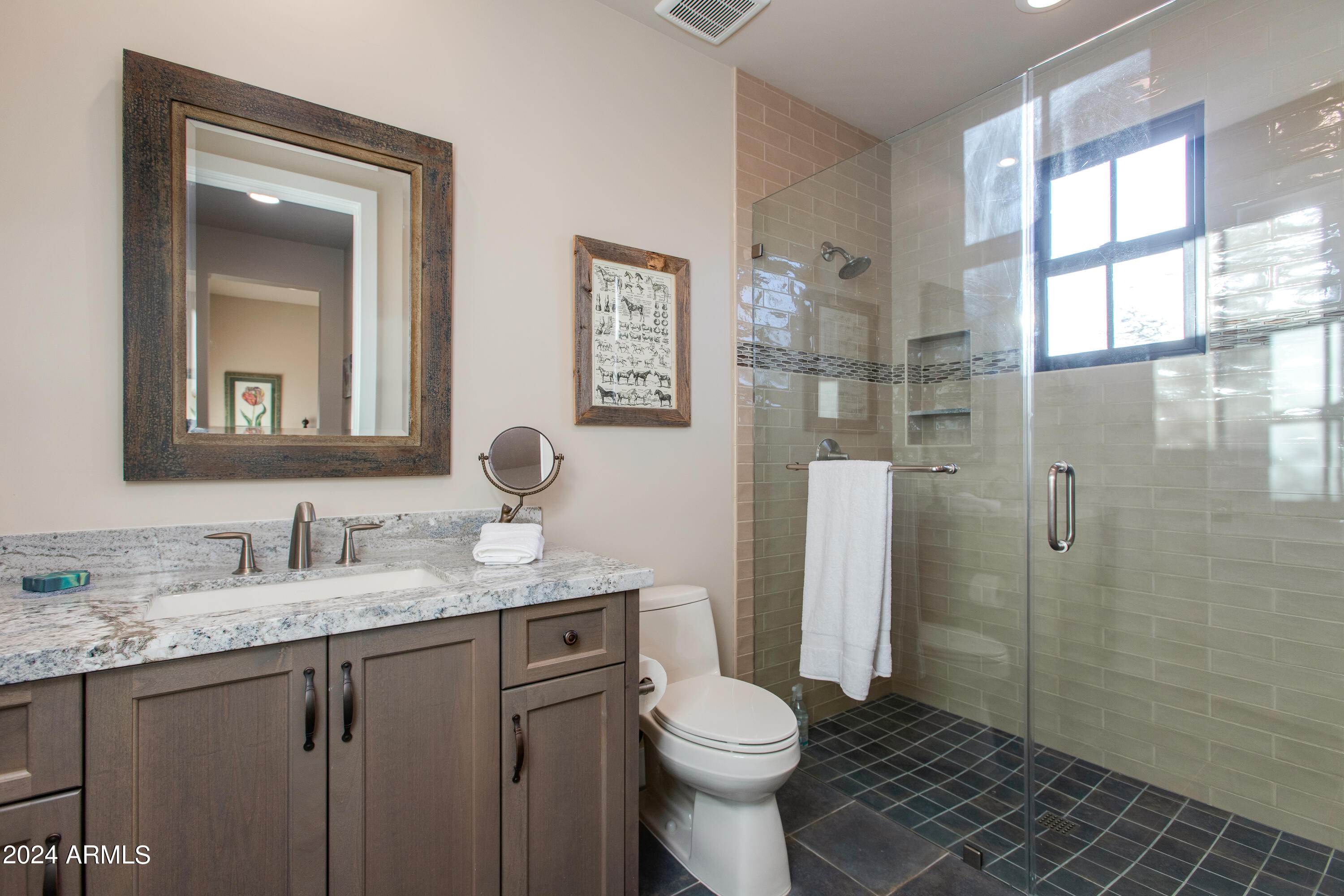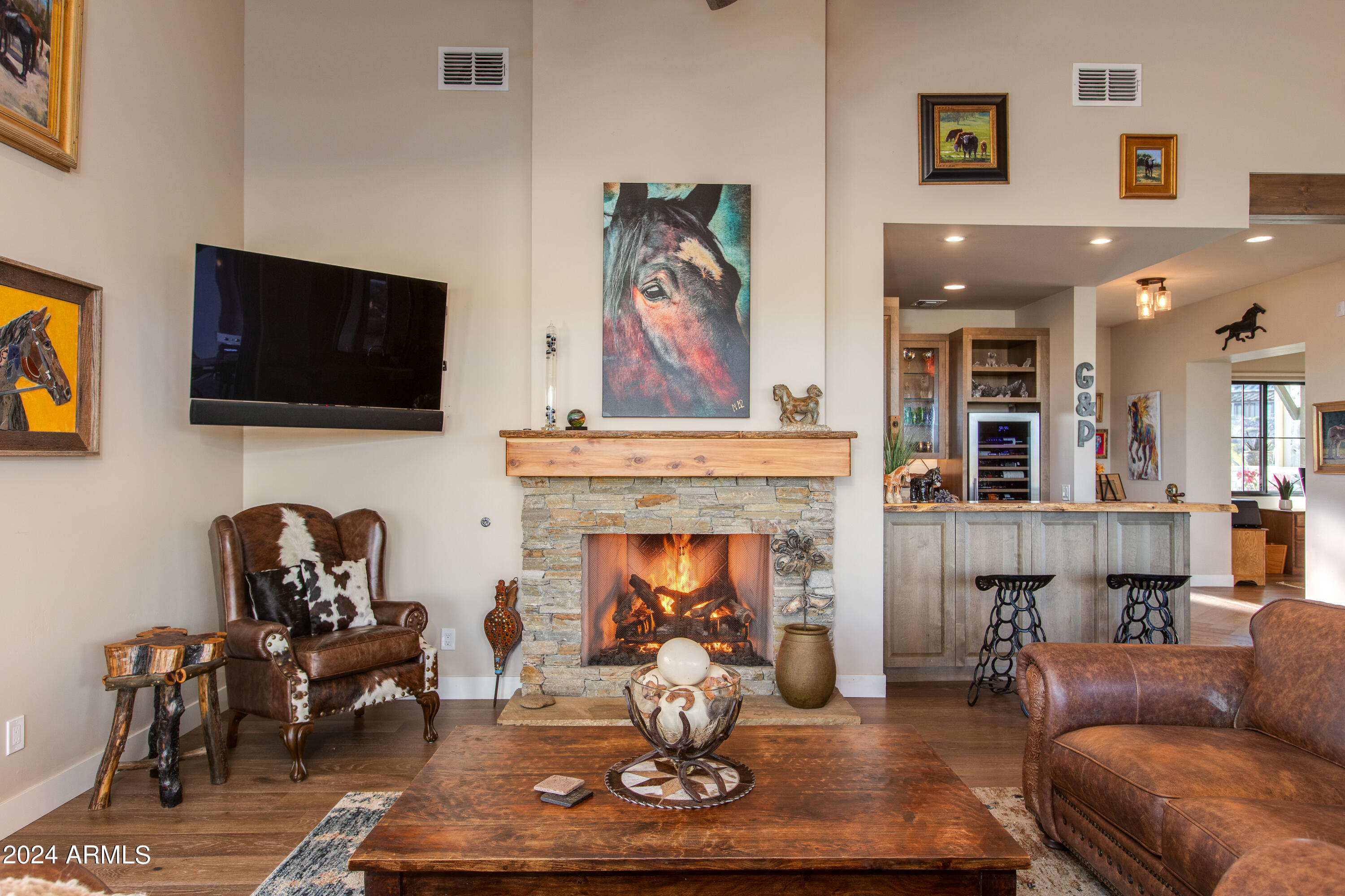 Give yourself the BEST WR has to offer. Enjoy 3/4 of an acre w/private panoramic views from every window. This one of a kind Scott Edmunds home is hosted on the largest homesite in WR. Spacious 3 bedroom 3.5 bath with Den. The Grand Living Room features gorgeous vaulted ceilings with beams and a built-in fireplace. Generous natural light with dramatic sliding walls of glass seamlessly blending your indoor and outdoor living spaces. Gourmet kitchen boast bountiful kitchen cabinets with builtin Wolf & Kitchenaid appliances. Gas cooktop includes a pot filler with custom decorative tile with under cabinet lighting. Kitchen island/breakfast bar houses built in microwave, separate prep sink with its own garbage disposal, builtin trash and recycling. Custom storage throughout. Primary Ensuite leads to a heavy glass shower enclosure with 4 shower heads walk-in with 2 entries coming from 2 separate water closets. Guest suites separated from Primary. Both ensuite with walk-in closets. Amazing backyard with multiple sitting/entertaining locations fully enclosed wrought iron fence with additional pest guard to keep out desert friends. Generous astro turf surrounds a large builtin gas fire pit with ample space for seating. In ground salt free hot tub, custom fountain & rock feature, bocce ball court, large covered patio with high pressure builtin misting system, Whole home Solar connects with EV charger. This is a MUST SEE. There is truly nothing in the community to compare.