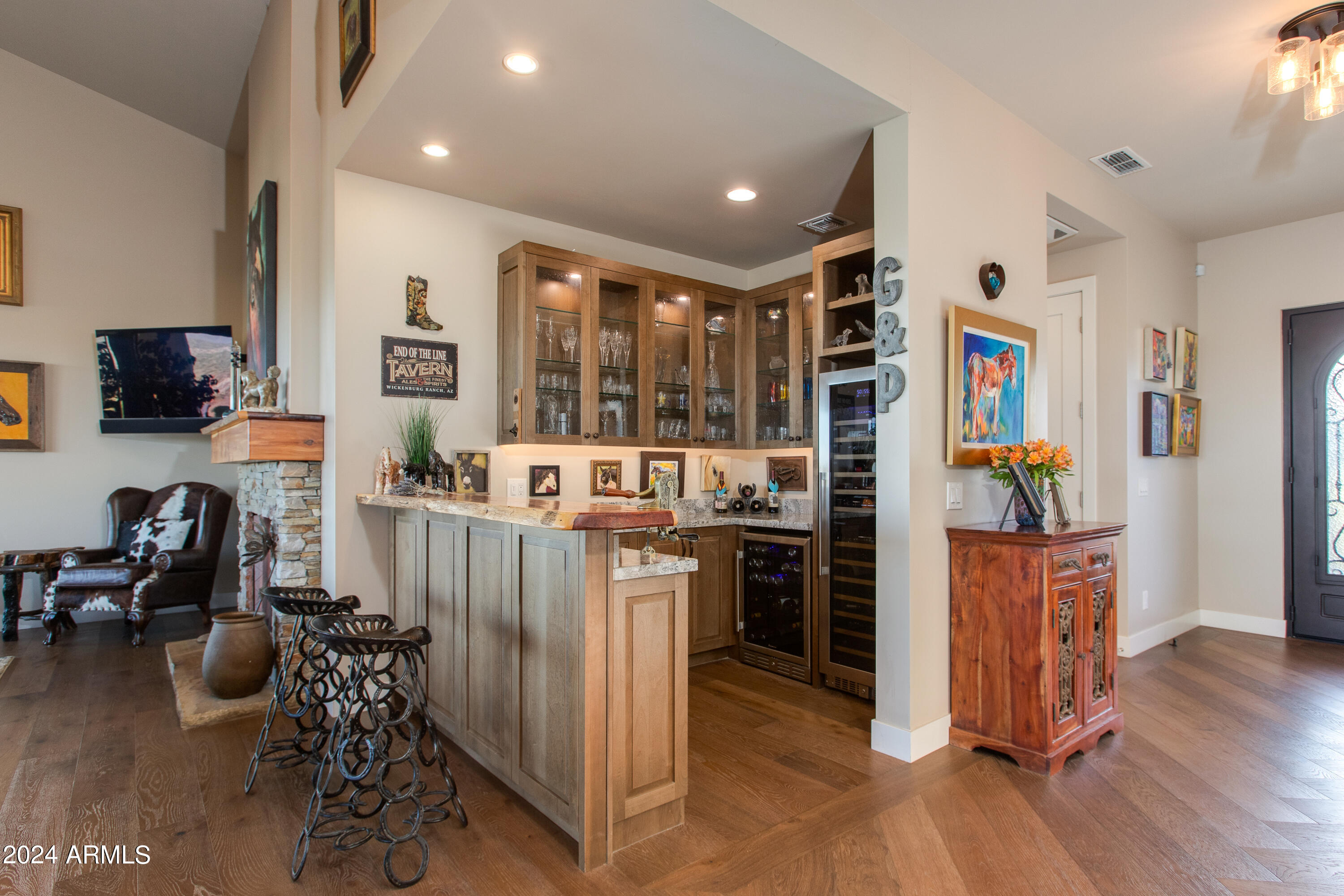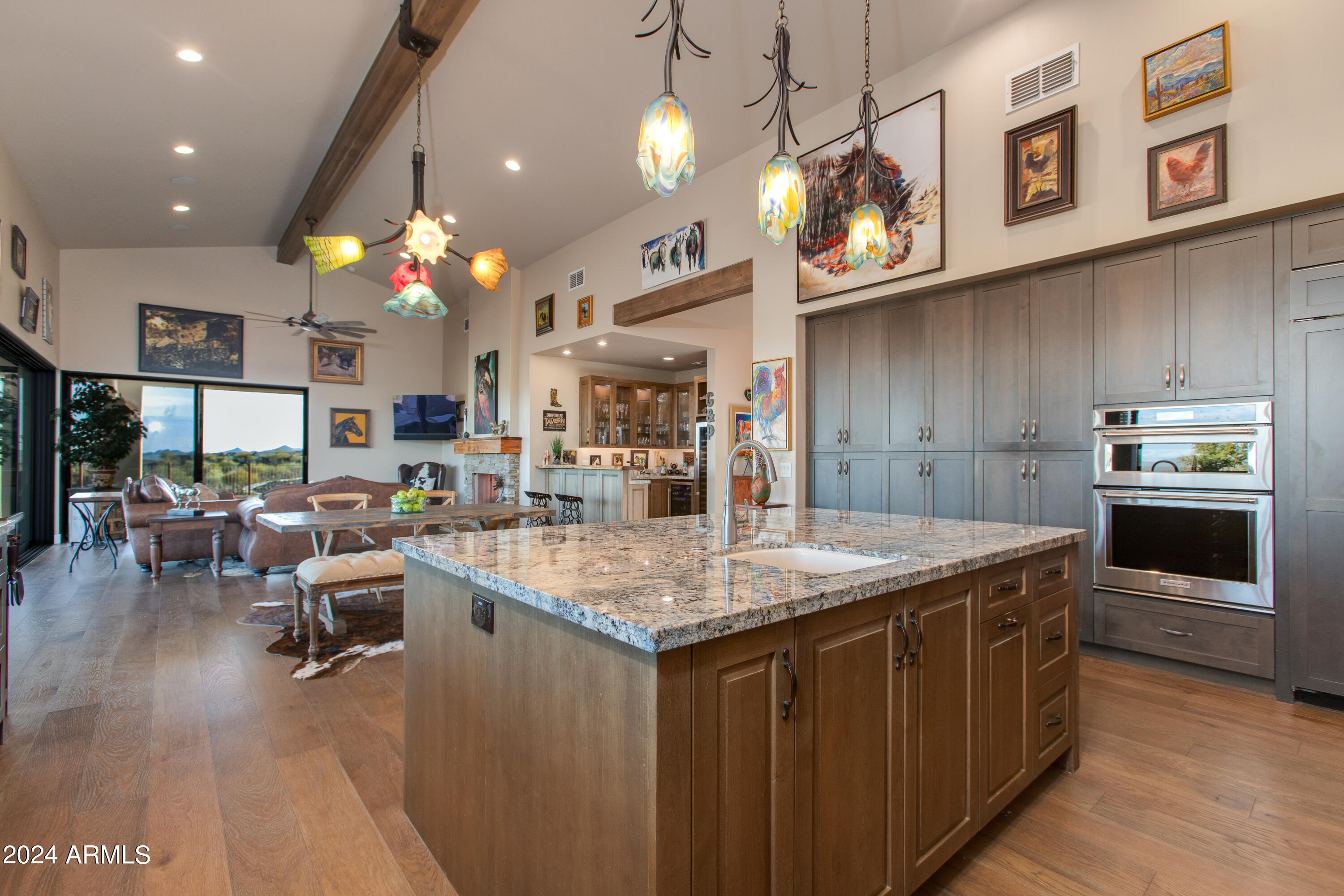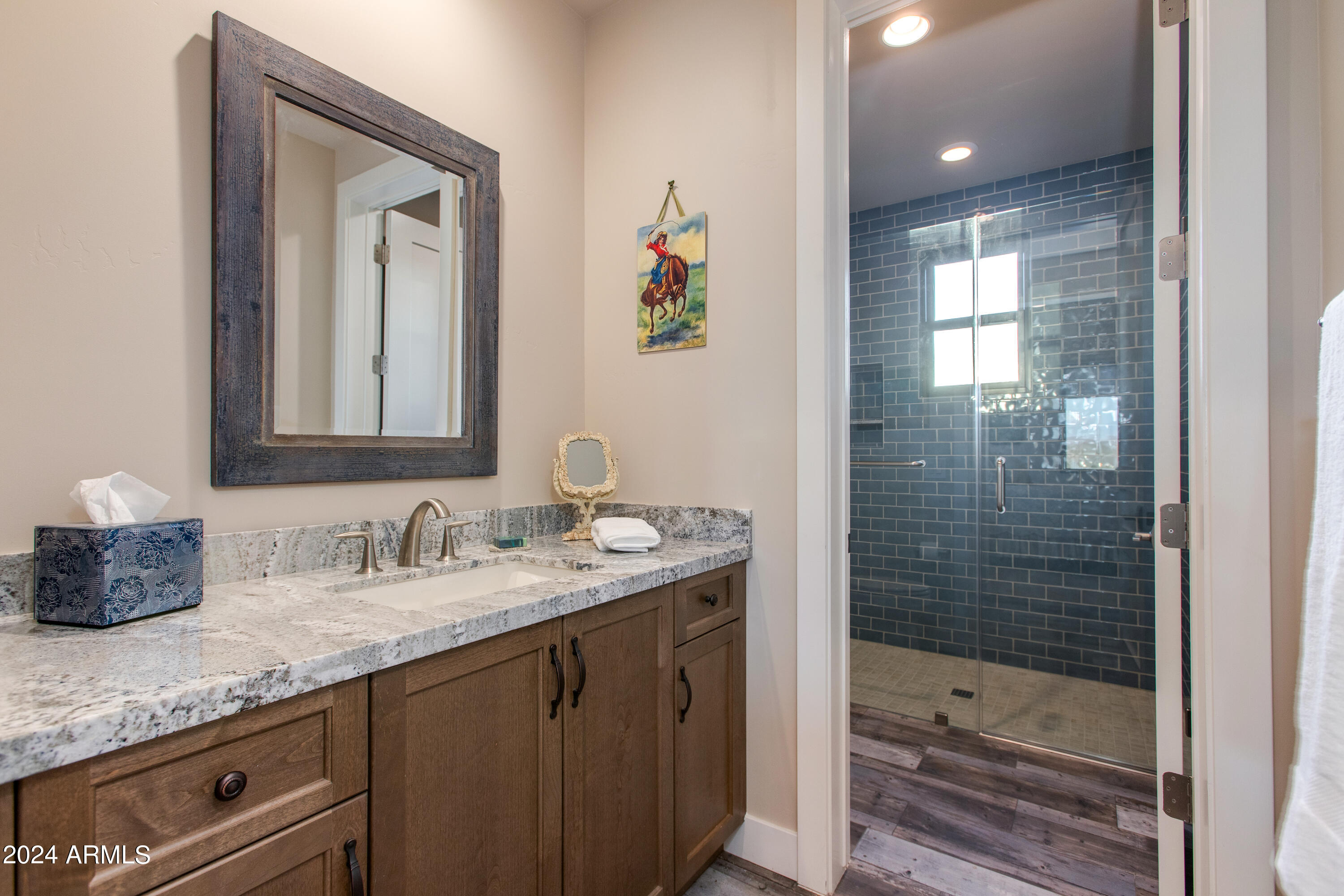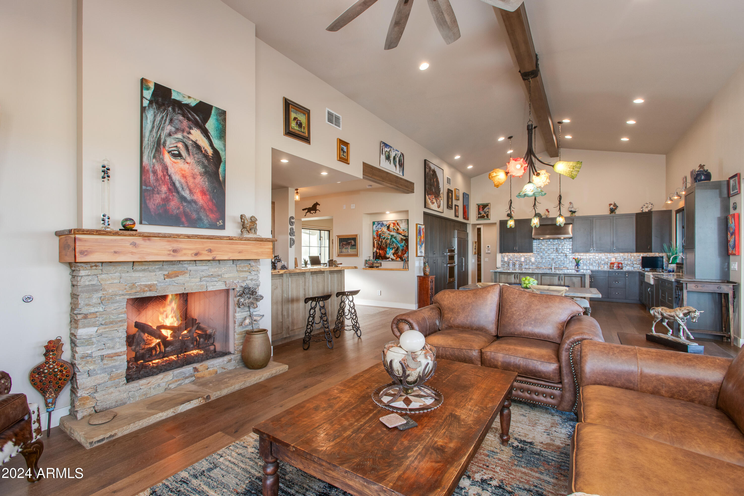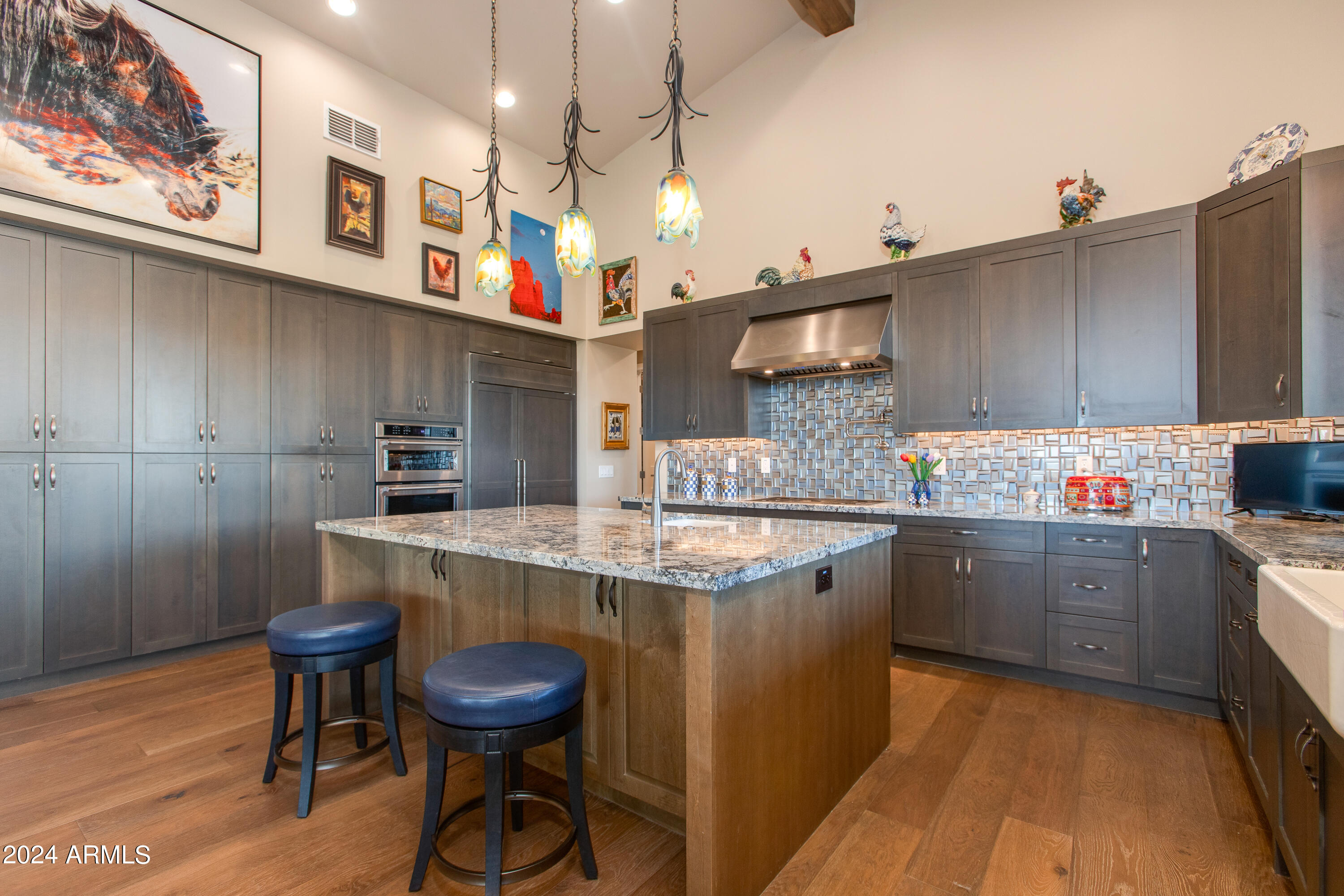 Give yourself the BEST WR has to offer. Enjoy 3/4 of an acre w/private panoramic views from every window. This one of a kind Scott Edmunds home is hosted on the largest homesite in WR. Spacious 3 bedroom 3.5 bath with Den. The Grand Living Room features gorgeous vaulted ceilings with beams and a built-in fireplace. Generous natural light with dramatic sliding walls of glass seamlessly blending your indoor and outdoor living spaces. Gourmet kitchen boast bountiful kitchen cabinets with builtin Wolf & Kitchenaid appliances. Gas cooktop includes a pot filler with custom decorative tile with under cabinet lighting. Kitchen island/breakfast bar houses built in microwave, separate prep sink with its own garbage disposal, builtin trash and recycling. Custom storage throughout. Primary Ensuite leads to a heavy glass shower enclosure with 4 shower heads walk-in with 2 entries coming from 2 separate water closets. Guest suites separated from Primary. Both ensuite with walk-in closets. Amazing backyard with multiple sitting/entertaining locations fully enclosed wrought iron fence with additional pest guard to keep out desert friends. Generous astro turf surrounds a large builtin gas fire pit with ample space for seating. In ground salt free hot tub, custom fountain & rock feature, bocce ball court, large covered patio with high pressure builtin misting system, Whole home Solar connects with EV charger. This is a MUST SEE. There is truly nothing in the community to compare.