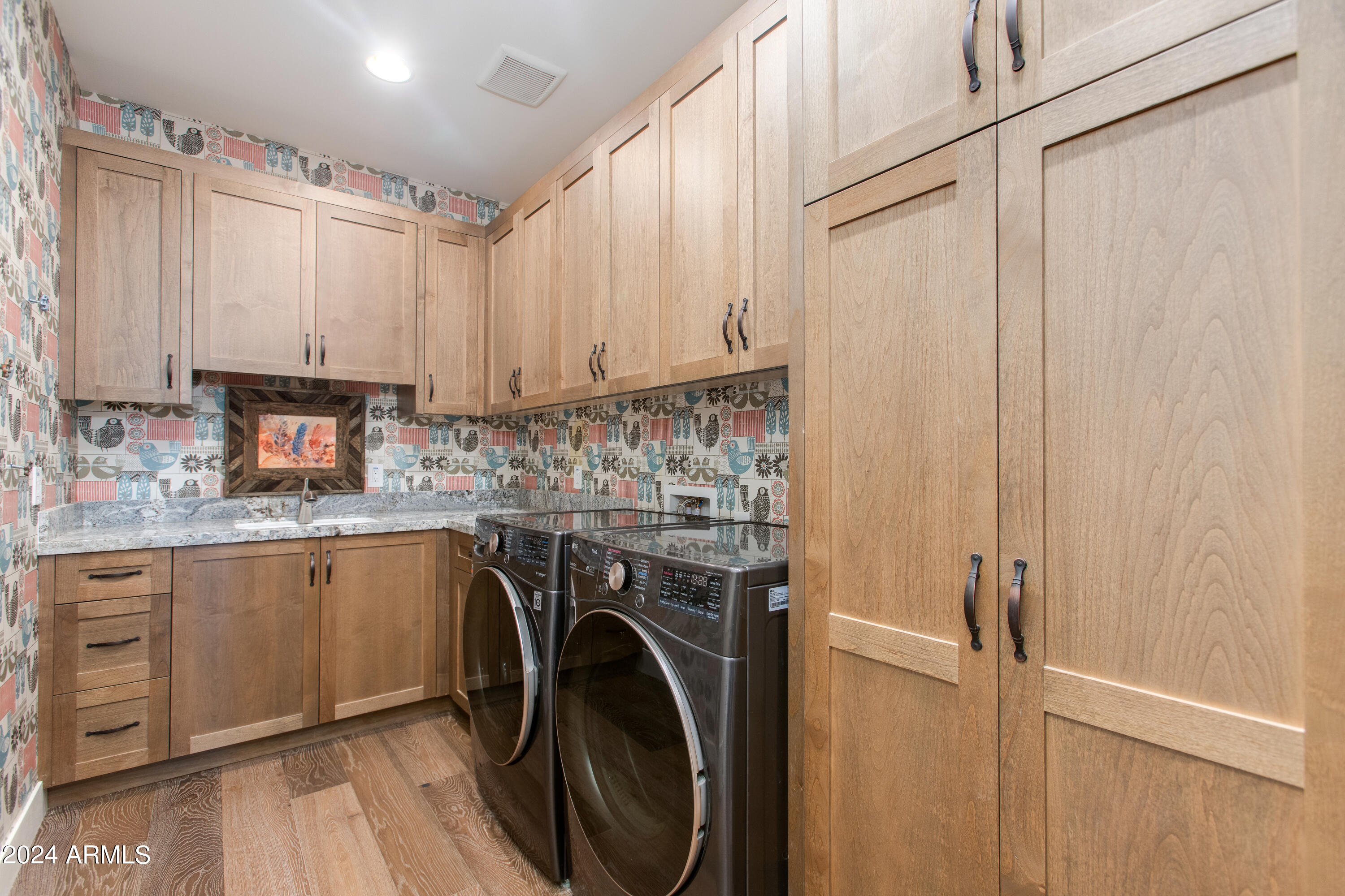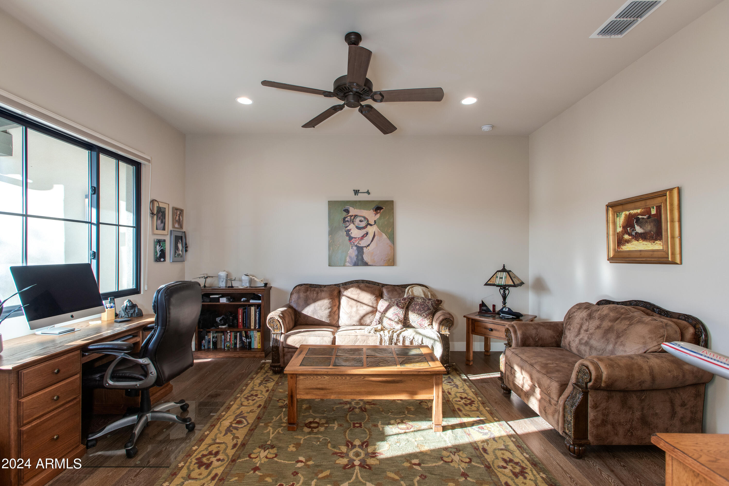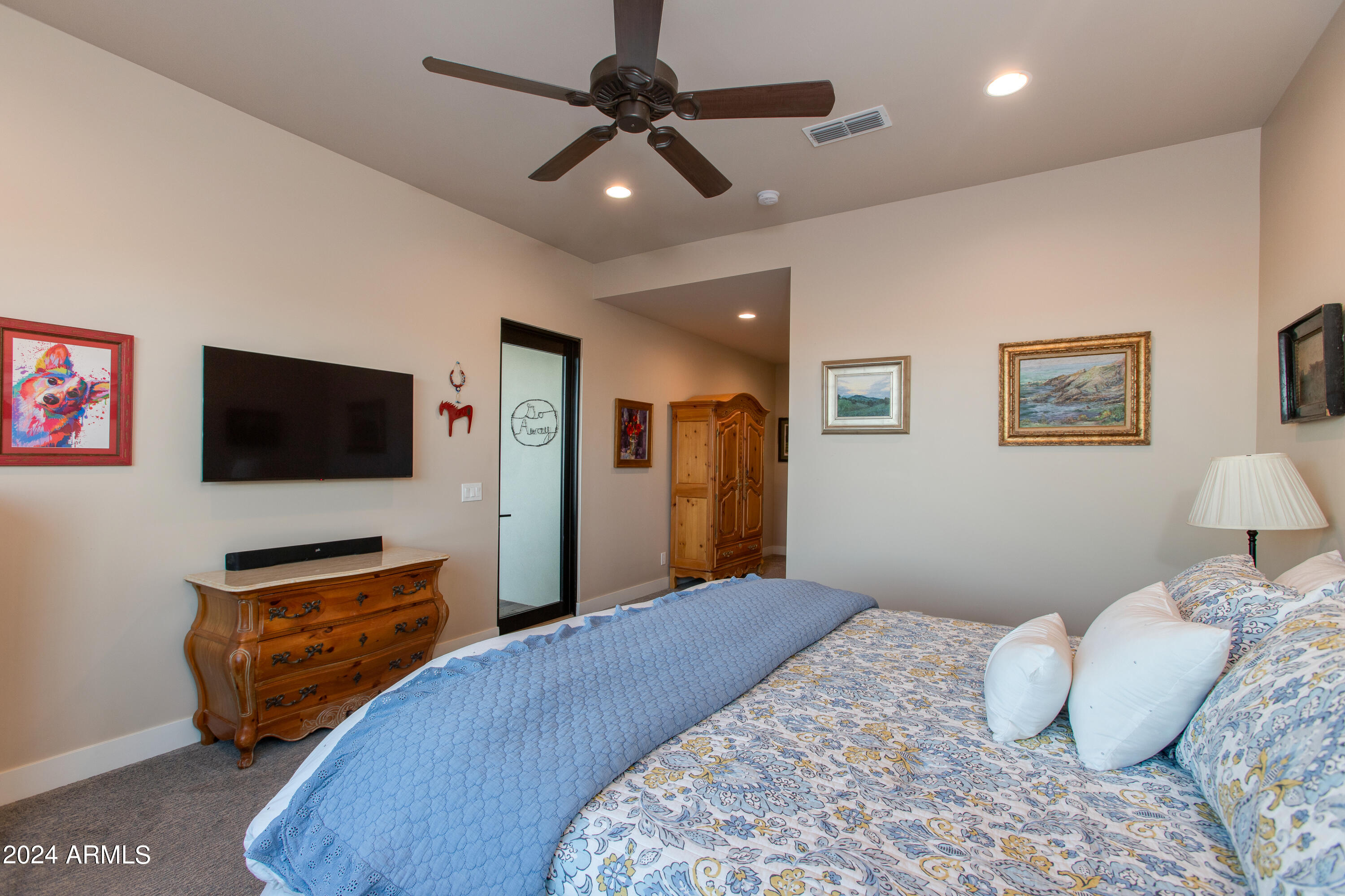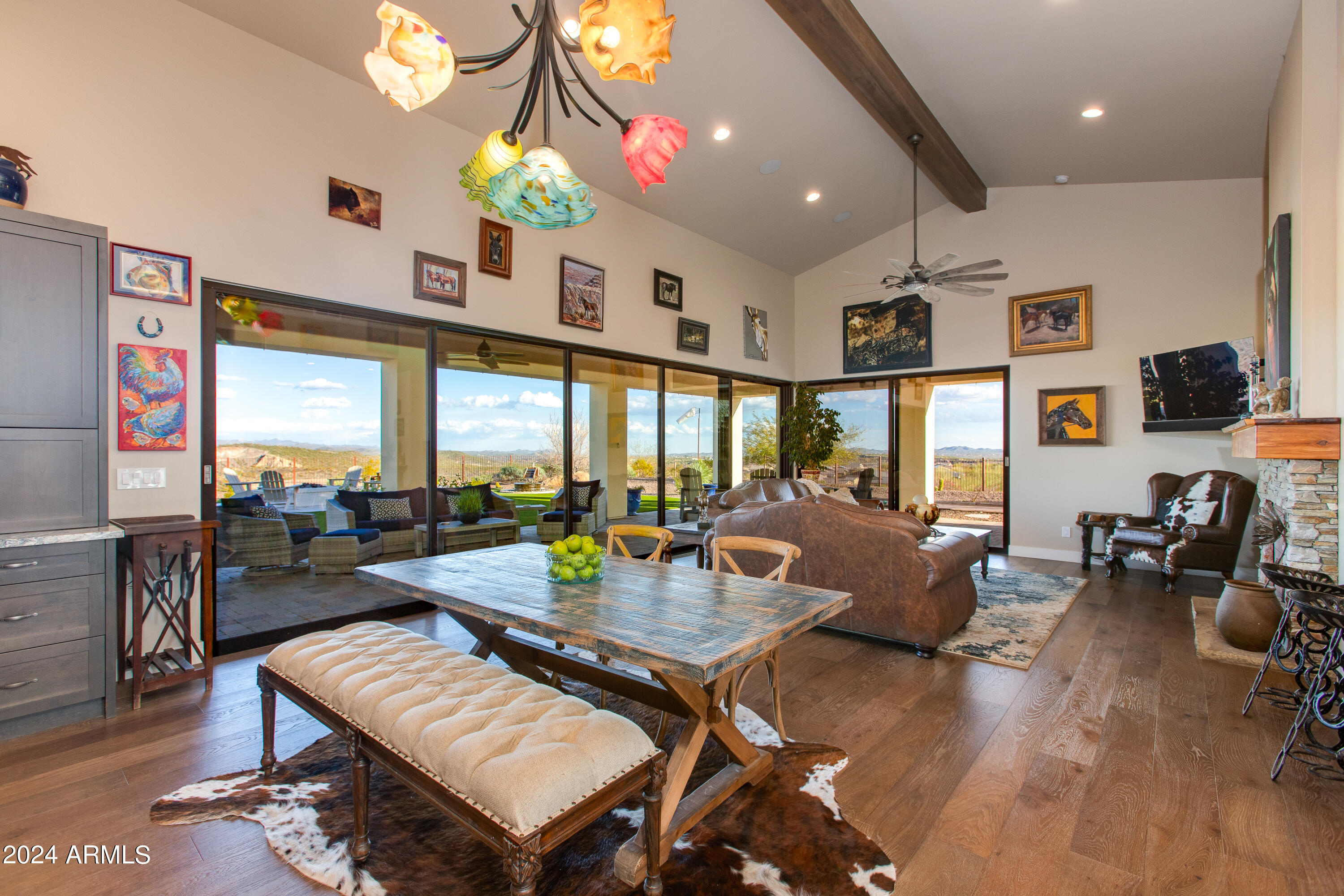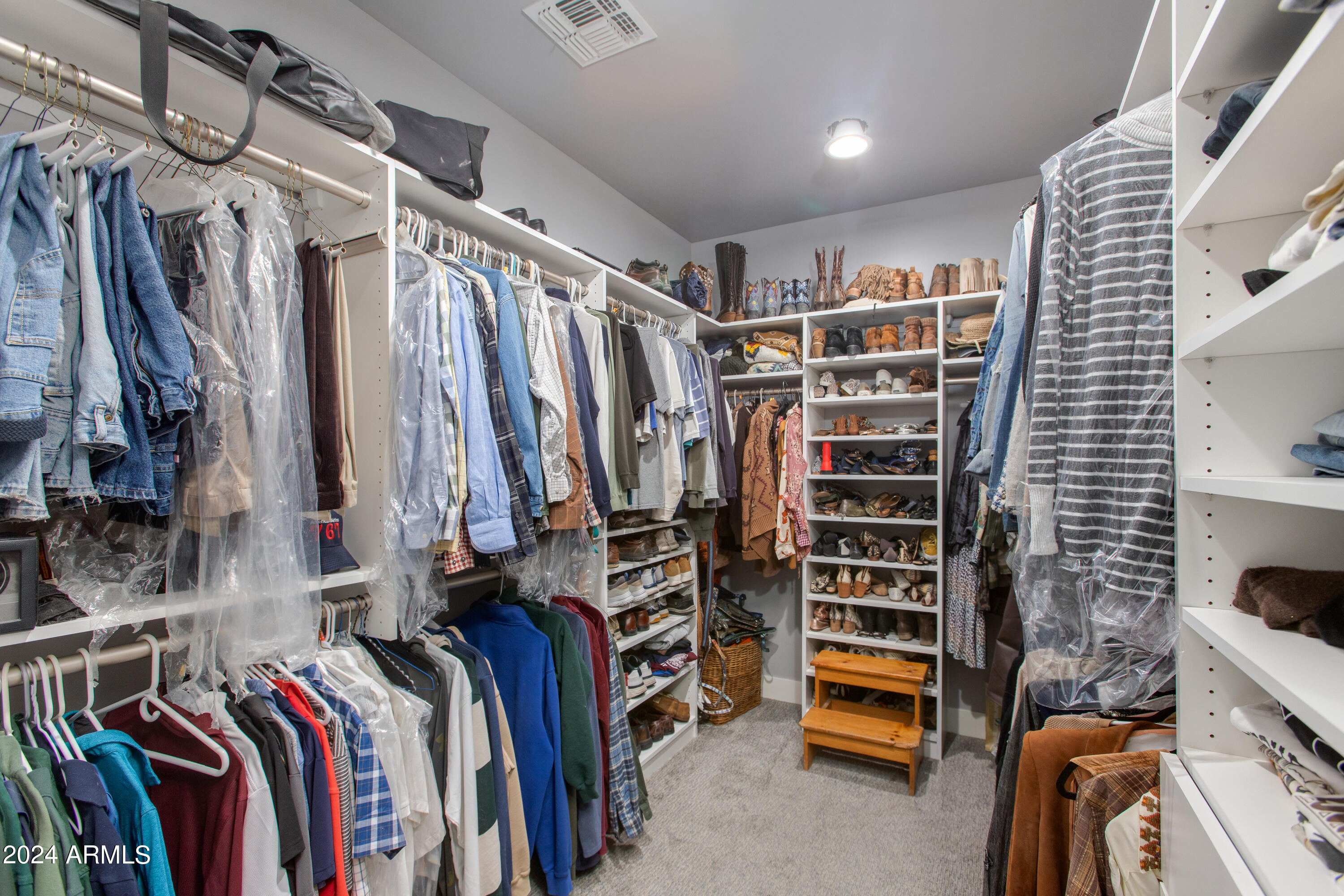 Give yourself the BEST WR has to offer. Enjoy 3/4 of an acre w/private panoramic views from every window. This one of a kind Scott Edmunds home is hosted on the largest homesite in WR. Spacious 3 bedroom 3.5 bath with Den. The Grand Living Room features gorgeous vaulted ceilings with beams and a built-in fireplace. Generous natural light with dramatic sliding walls of glass seamlessly blending your indoor and outdoor living spaces. Gourmet kitchen boast bountiful kitchen cabinets with builtin Wolf & Kitchenaid appliances. Gas cooktop includes a pot filler with custom decorative tile with under cabinet lighting. Kitchen island/breakfast bar houses built in microwave, separate prep sink with its own garbage disposal, builtin trash and recycling. Custom storage throughout. Primary Ensuite leads to a heavy glass shower enclosure with 4 shower heads walk-in with 2 entries coming from 2 separate water closets. Guest suites separated from Primary. Both ensuite with walk-in closets. Amazing backyard with multiple sitting/entertaining locations fully enclosed wrought iron fence with additional pest guard to keep out desert friends. Generous astro turf surrounds a large builtin gas fire pit with ample space for seating. In ground salt free hot tub, custom fountain & rock feature, bocce ball court, large covered patio with high pressure builtin misting system, Whole home Solar connects with EV charger. This is a MUST SEE. There is truly nothing in the community to compare.