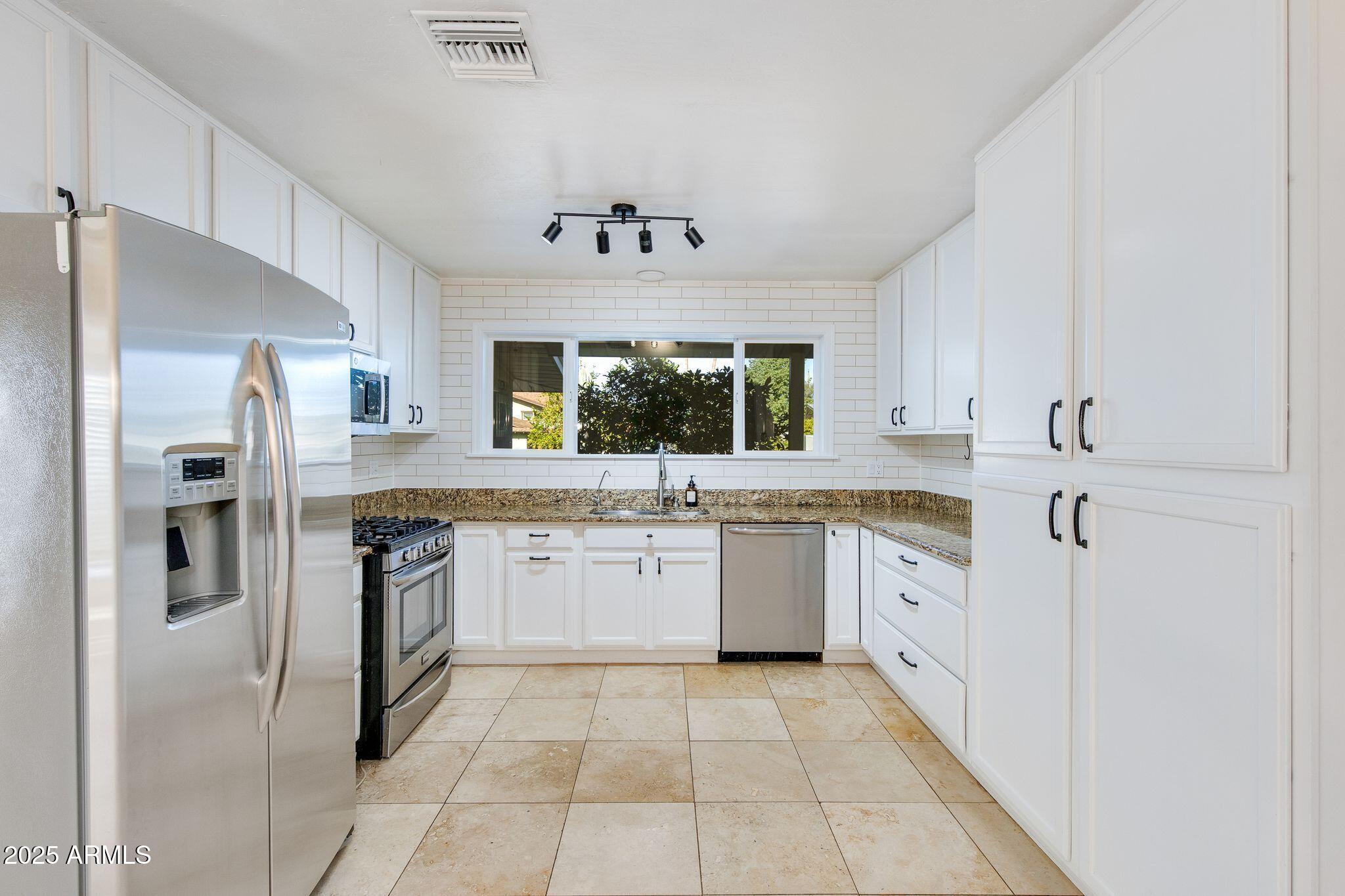 Welcome to this charming and thoughtfully updated home located in one of the area's most sought-after neighborhoods. With 3 bedrooms and 1.75 baths, this property blends comfort and style, featuring warm wood and tile flooring throughout. The spacious, open kitchen is a true highlight--complete with stainless steel appliances, gas range, built-in microwave, granite countertops, and sleek cabinetry. The refrigerator will remain with the home, adding extra convenience. Just off the kitchen sits a cozy flex room that works perfectly as a home office, media space, or relaxing reading nook. The living room offers just the right amount of space for gathering, while all bedrooms are generously sized and the bathrooms have been tastefully modernized. Step outside to a massive backyarda rare findideal for hosting weekend barbecues, unwinding under the stars, or creating your own outdoor oasis. Situated near the newly renovated/built Paradise Valley Mall which features popular restaurants, shopping, and entertainment. Close by is also hiking trails, and major freeway access which gives you access to the whole valley quickly. This home delivers the perfect mix of lifestyle and location!