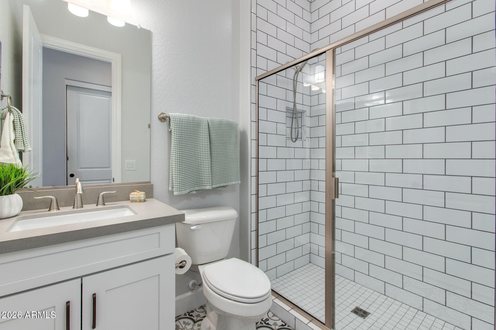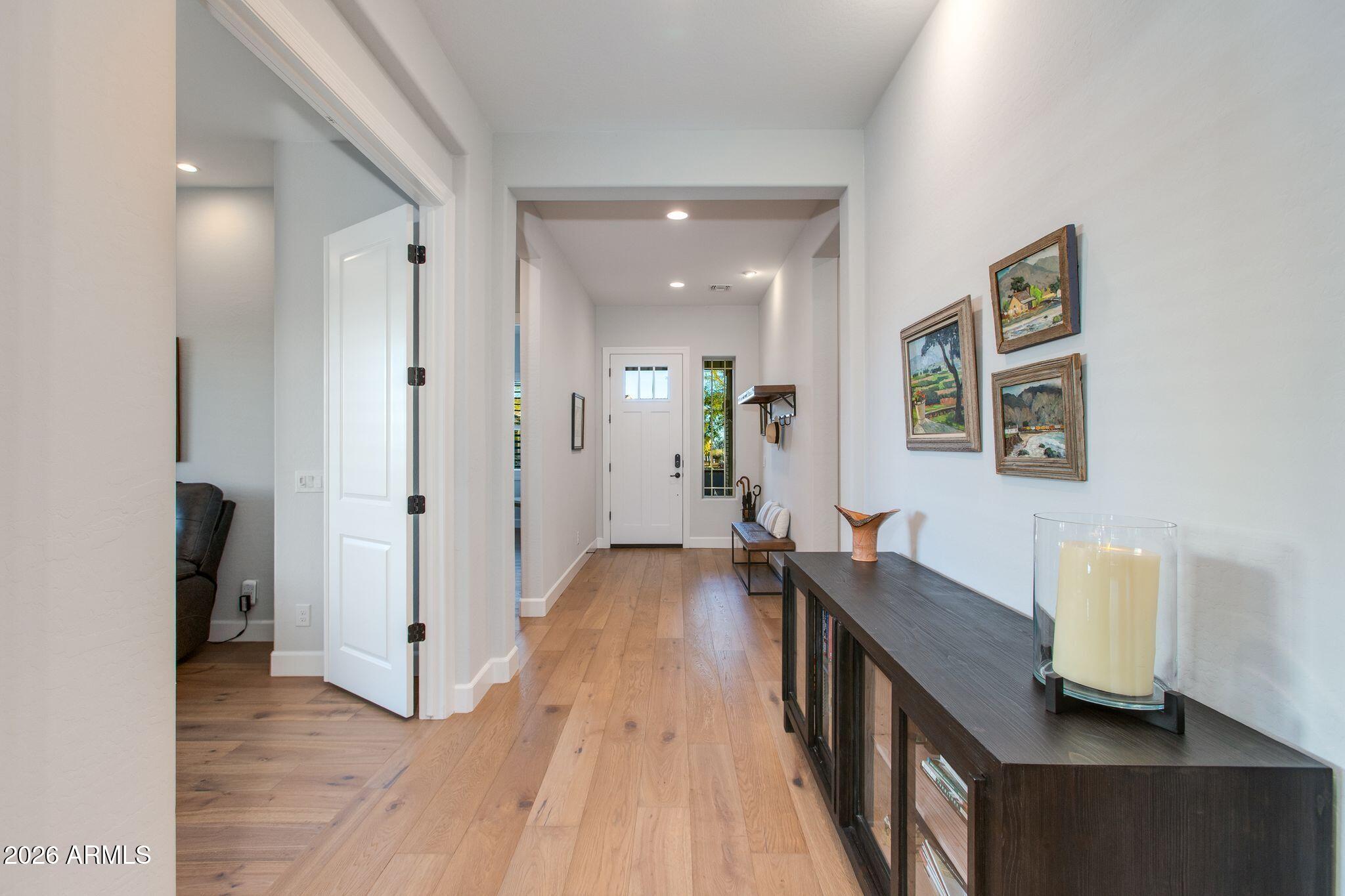 Rare 1/2-acre homesite with PAID-OFF SOLAR and an exceptional 5-CAR insulated, temperature-controlled garage--perfect for toys, collections, or a workshop. This sleek, open-concept home showcases 8' interior doors, upgraded paint, refined trim, and premium hardware. Chef's kitchen features quartz countertops, farmhouse sink, upgraded cabinetry, gas cooktop, and built-in oven and microwave. Spa-inspired primary suite offers an upgraded walk-in tiled shower and freestanding soaking tub. Laundry includes utility sink. The resort-style backyard is built for entertaining with an extended covered patio, expansive pergola, outdoor kitchen, low-maintenance turf, and a custom 3-hole putting green. Fully fenced yard with pest fencing. A rare blend of luxury, space, and lifestyle versatility! Resort amenities & award-winning golf!