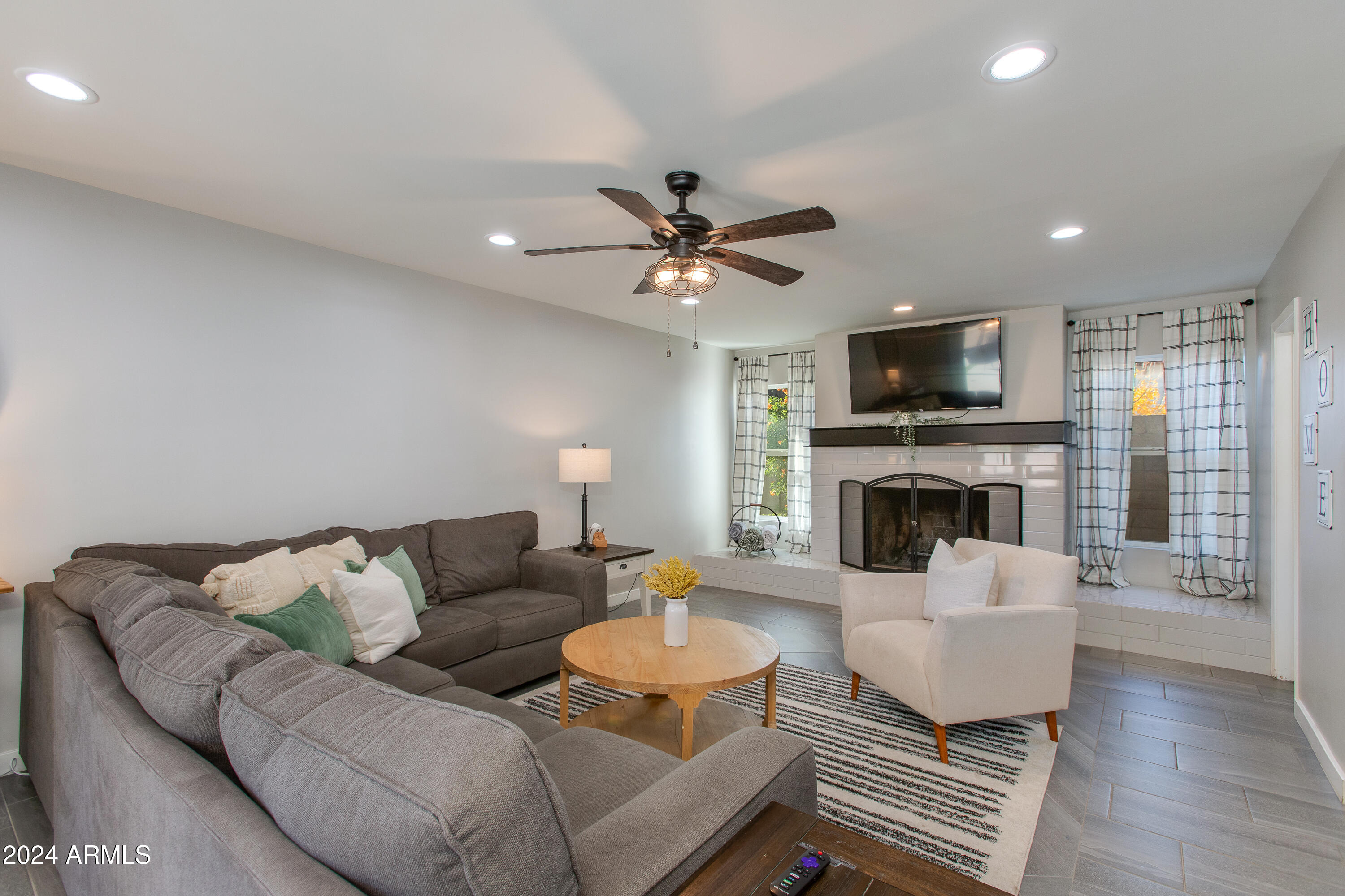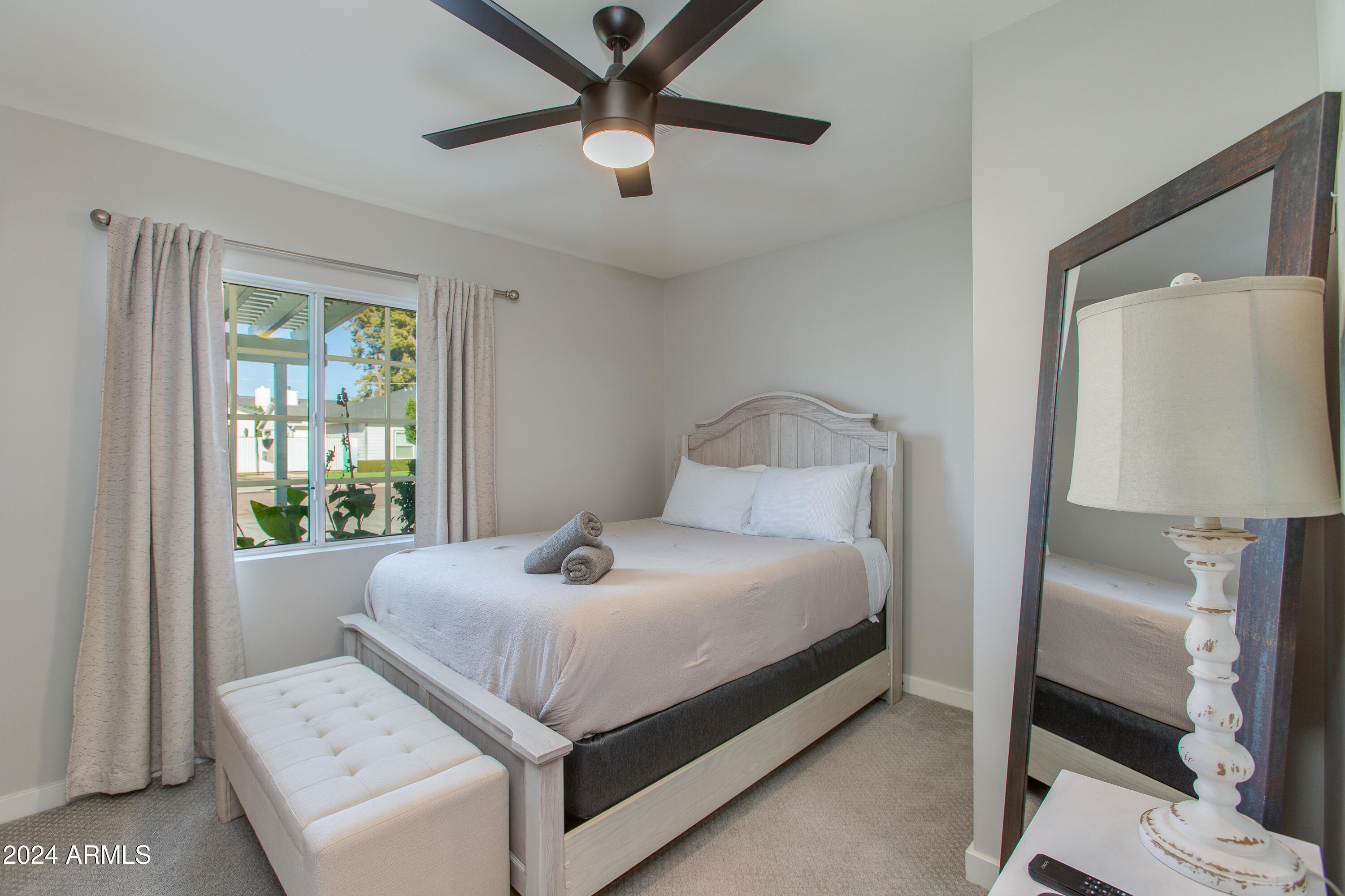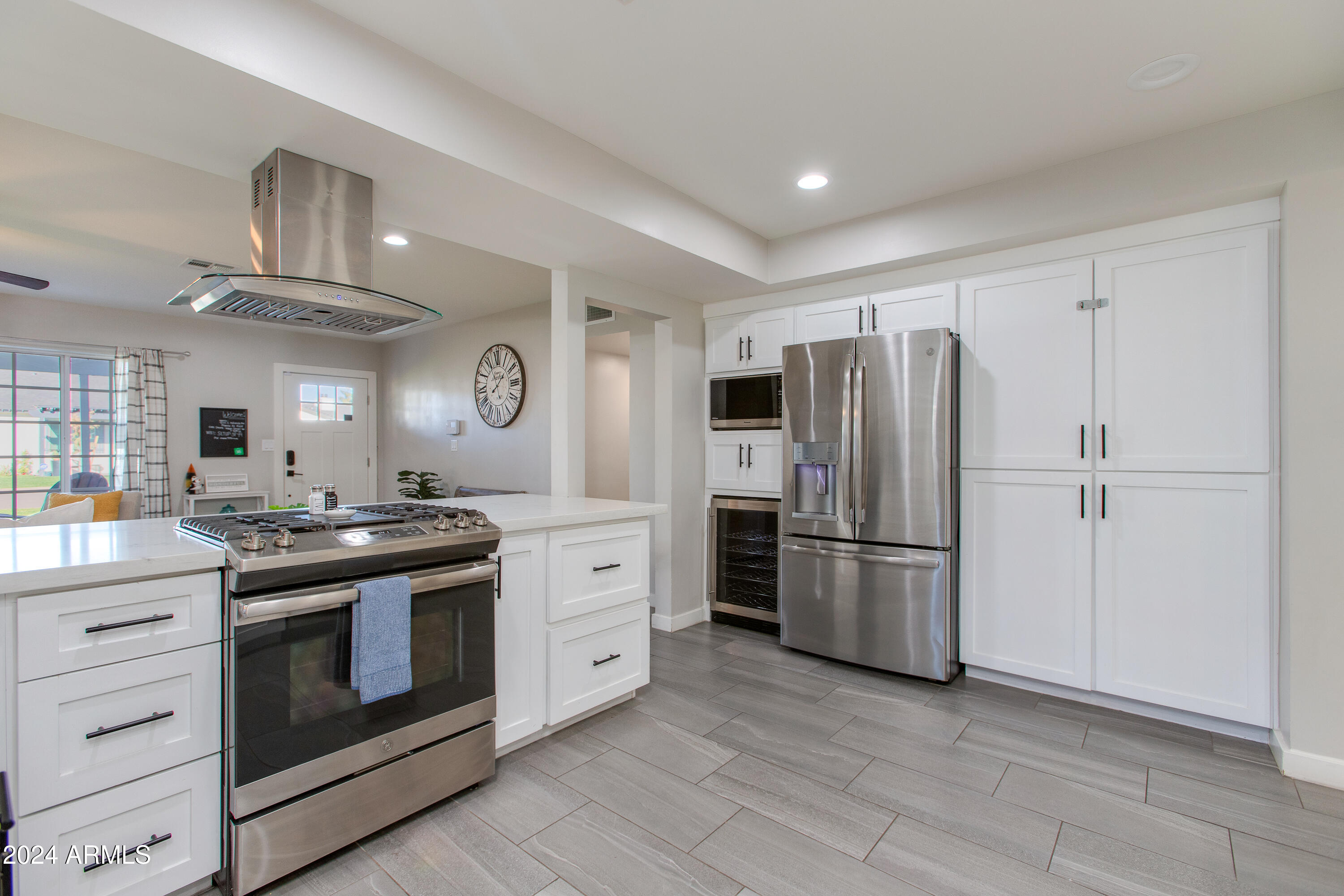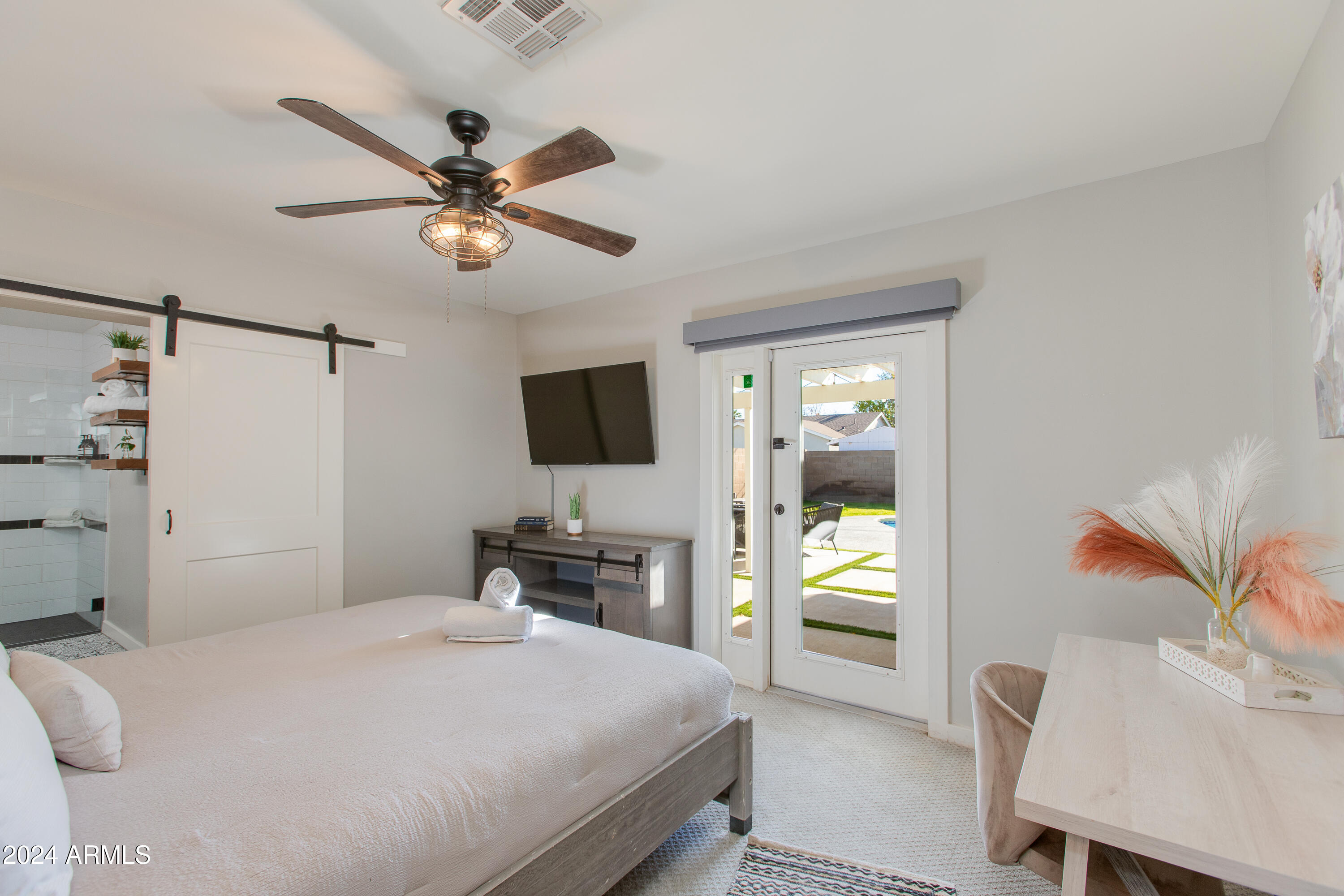 Delightful 3 bed, 2.5 bath charmer in the heart of Arcadia Lite! Remodeled in 2019, this home features an open floor plan with a cozy yet modern vibe. At the center of it is a modern kitchen with white shaker cabinets, quartz countertops, stainless steel appliances, a wine fridge, and two breakfast bars perfect for gatherings. Two inviting living rooms and a dining room complete the open concept living space. The primary suite features a spacious walk-in closet, double vanity, built-in Bluetooth speakers, and private access to the backyard. The spacious backyard offers a heated pool, covered outdoor entertainment area and low-maintenance landscaping. Surrounded by million dollar properties, this turn-key home is located just down the street from the best restaurants and shopping in town!