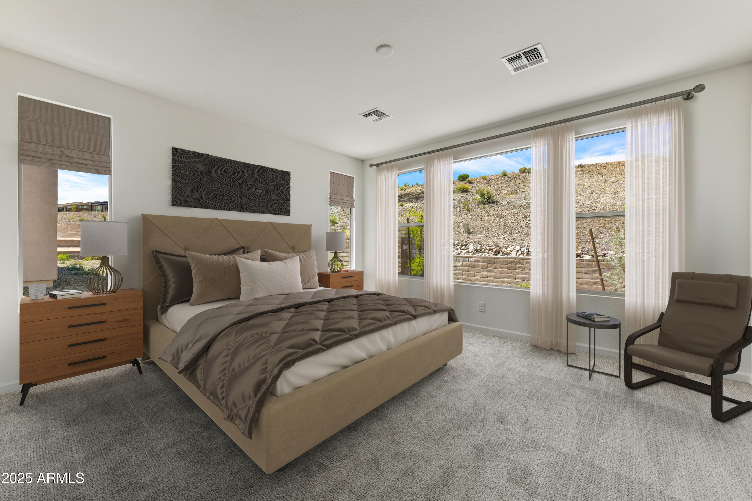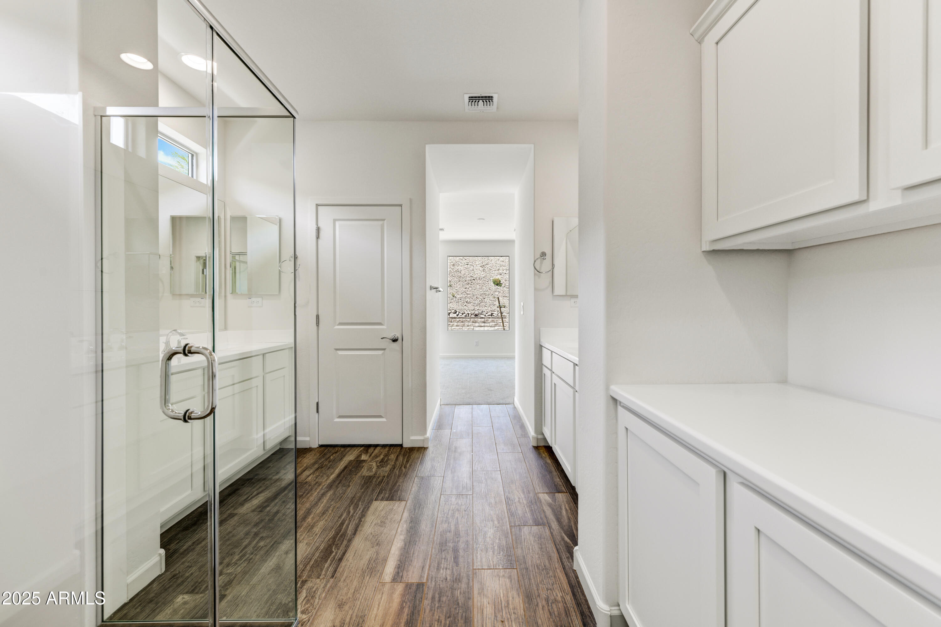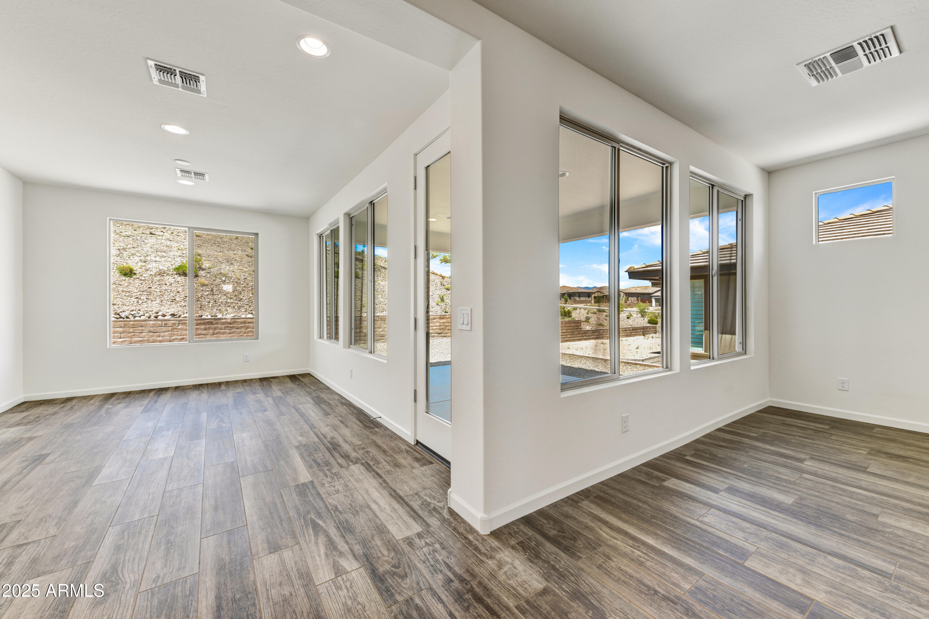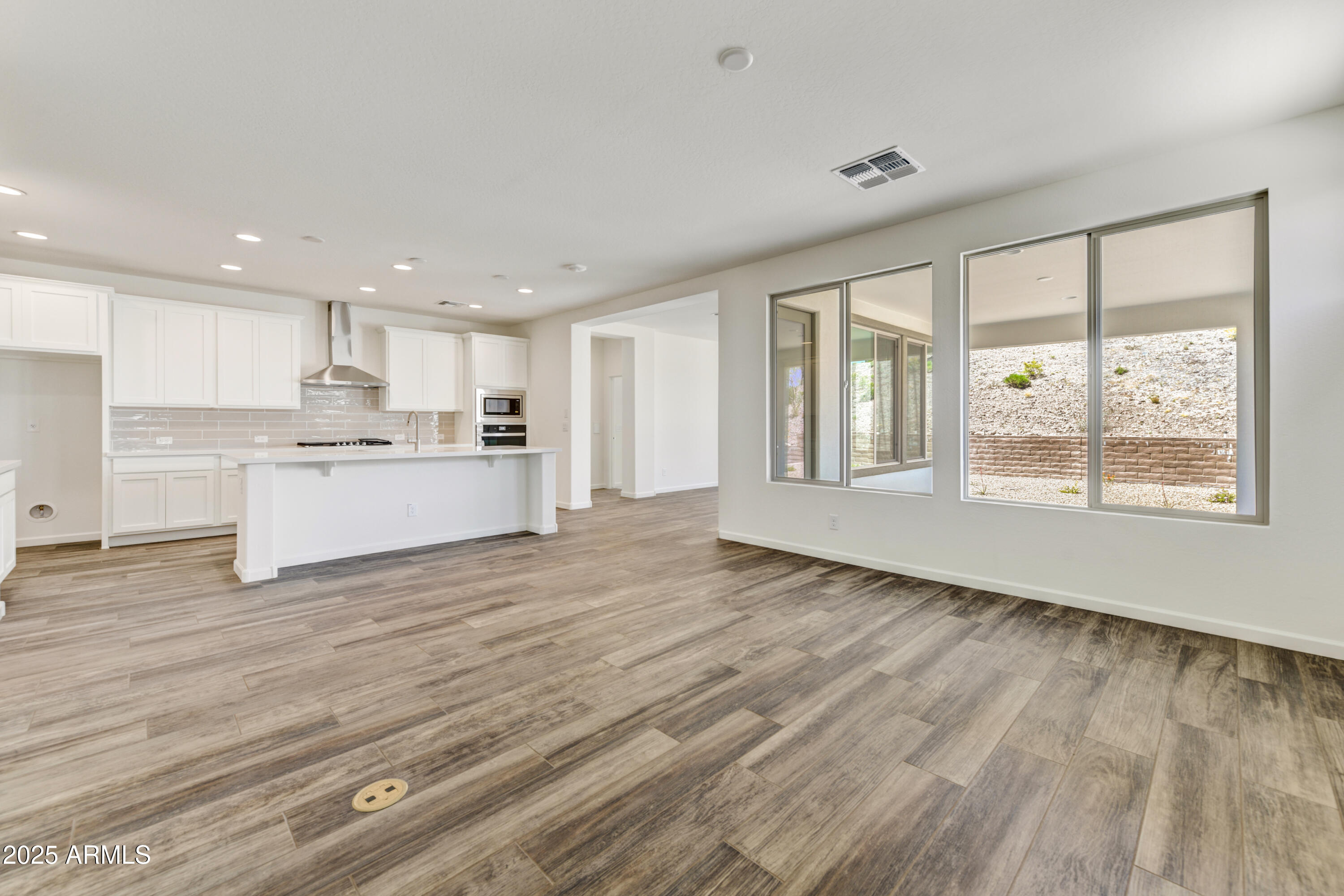 Located in the Palomino neighborhood at Wickenburg Ranch, this ''Nice'' plan offers approx. 1,945 sq. ft. with 2 beds, 2 baths, & a versatile den optioned as a 3rd bedroom. The open design showcases Coconut Matte cabinetry with convenience package roll-outs, quartz countertops, & built-in Whirlpool appliance suite. Expanded dining, Blanco farmhouse sink, LED under-cabinet lighting, & custom backsplash bring style to the kitchen. The primary suite includes an upgraded shower with heavy glass, chrome finishes, & cultured marble vanities. Flooring upgrades, two-tone details, & designer fixtures add a polished touch. Outdoors, enjoy custom landscaping, Belgard pavers, a gas stub for BBQ, & a golf cart garage for extra storage. Resort-style perfection.