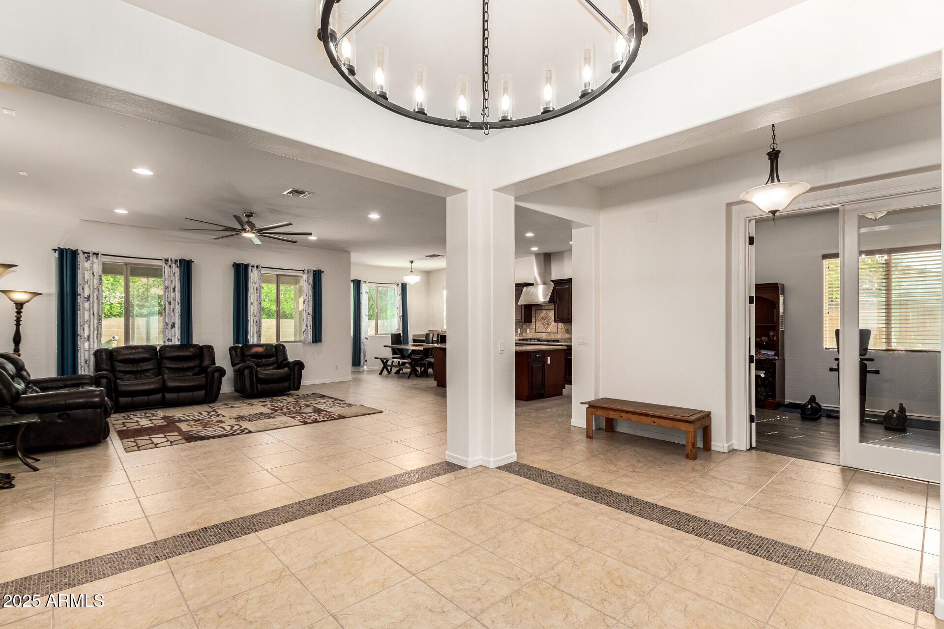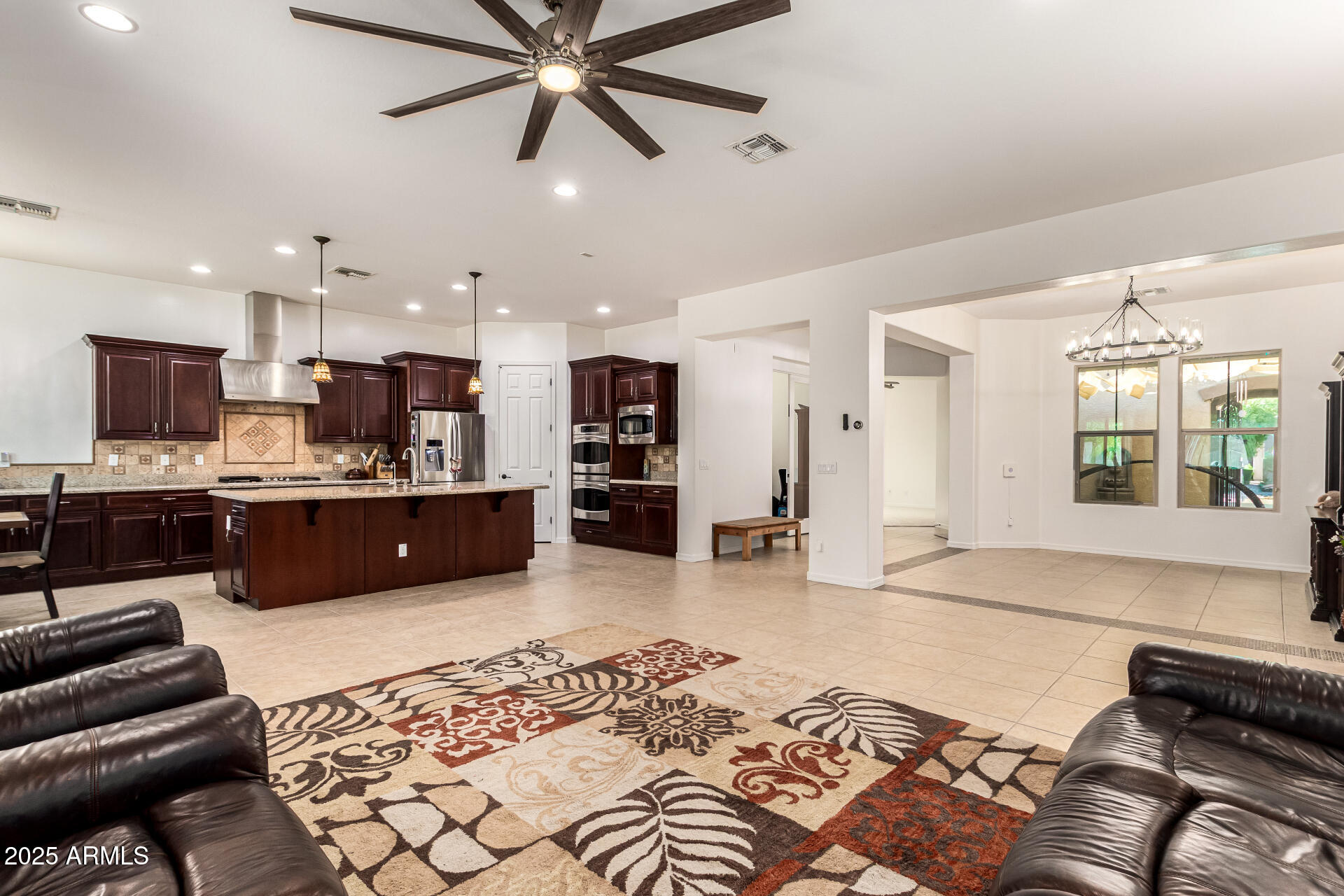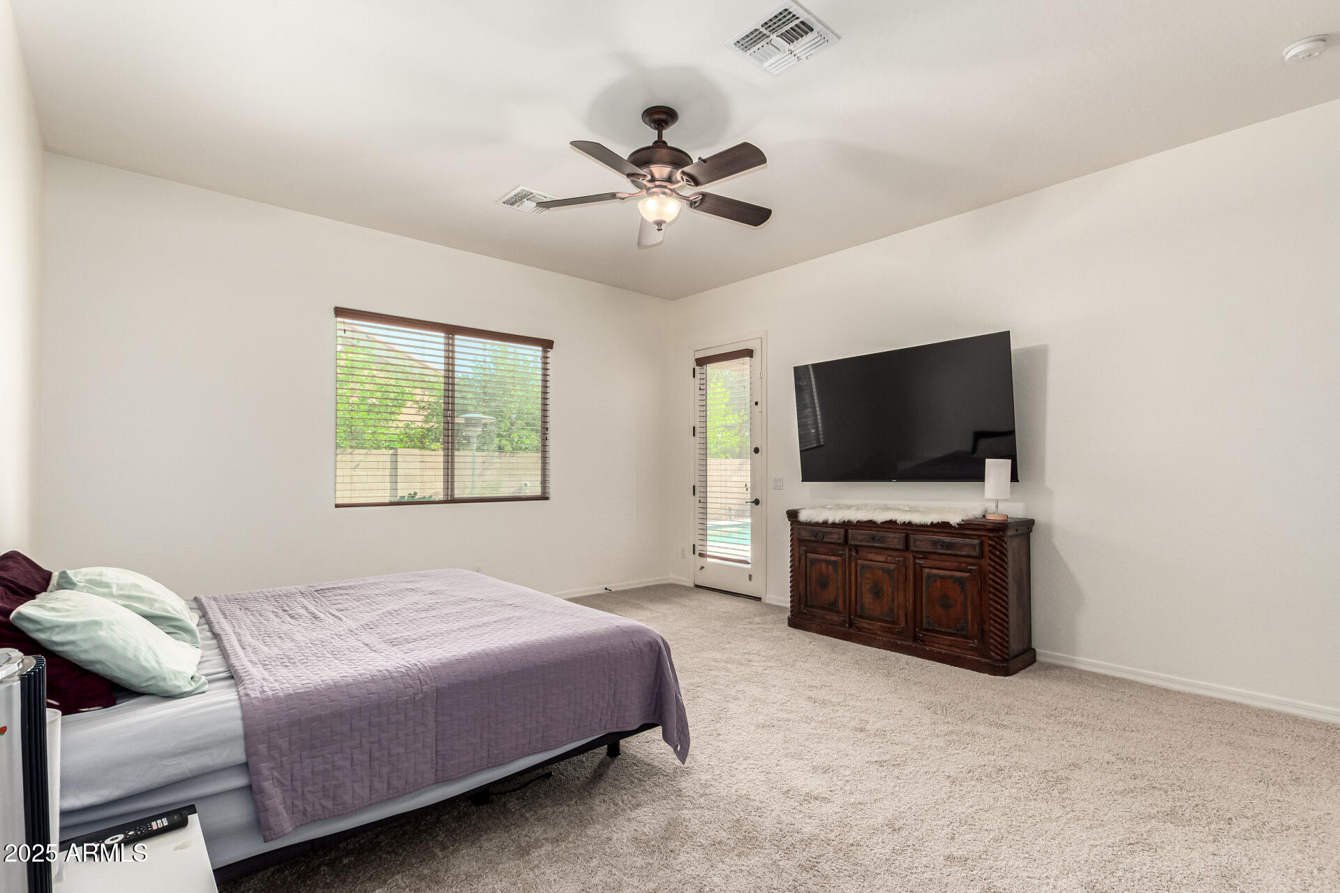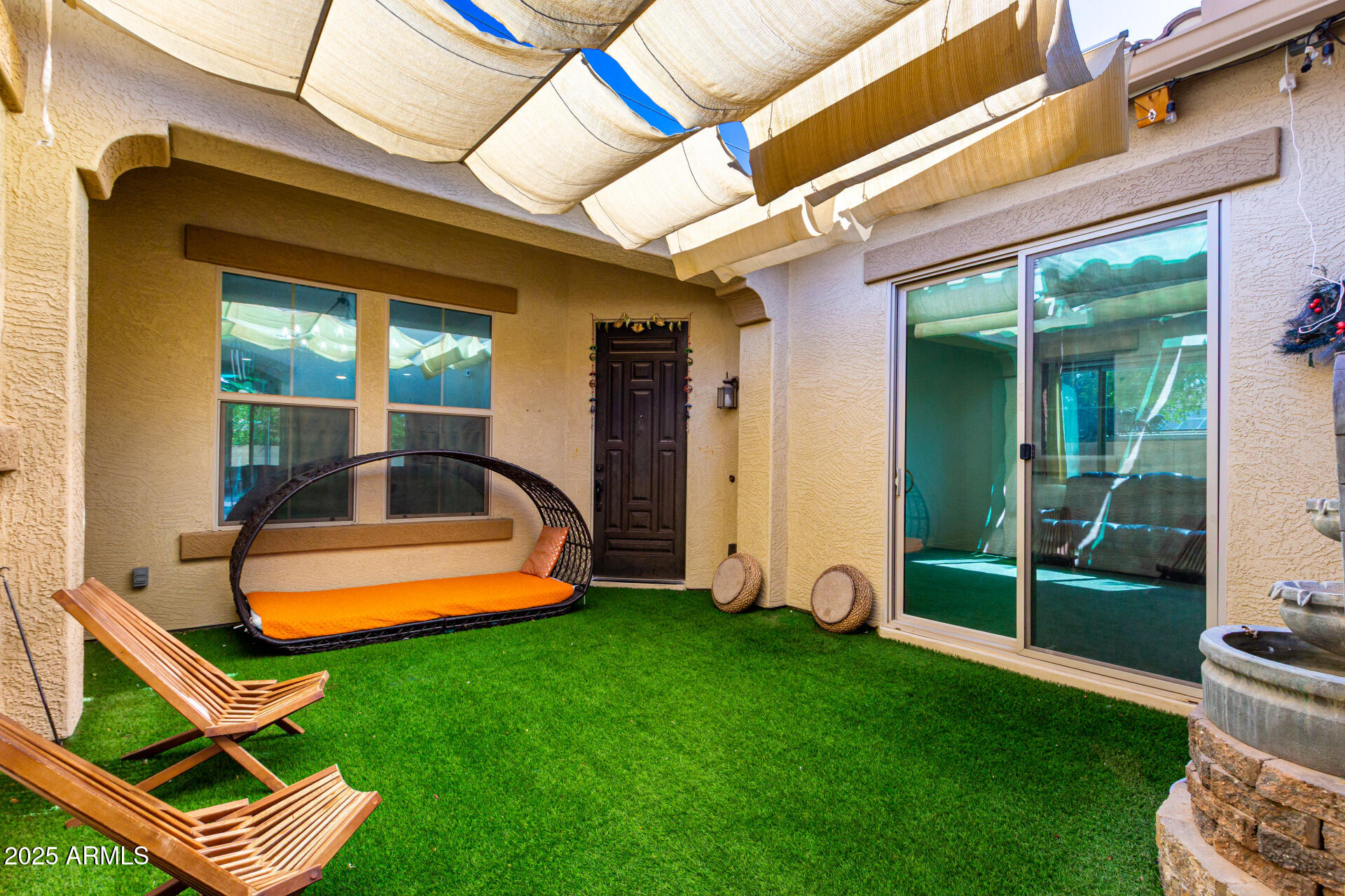 Experience the perfect blend of comfort and elegance in this beautifully designed home! Situated on a desirable corner lot, it displays a 3-car garage, an RV gate, and a gated courtyard. Inside, discover a living room, a versatile den with French doors, a bonus room, and a harmonious great room bathed in natural light. Thoughtful details include inviting foyer, tile flooring, ceiling fans, neutral palette, and stylish light fixtures. Open-concept kitchen is a cook's delight, fully equipped with glossy stainless steel appliances, tile backsplash, a pantry, ample cabinets adorned with crown molding, granite counters, recessed & pendant lighting, and a prep island with a breakfast bar. Serene main retreat impresses with plush carpet, direct outdoor access, and an ensuite with two vanities. Continue to your backyard oasis, where you'll find a covered patio and sparkling pool, excellent for year-round enjoyment and entertaining. Don't miss it!