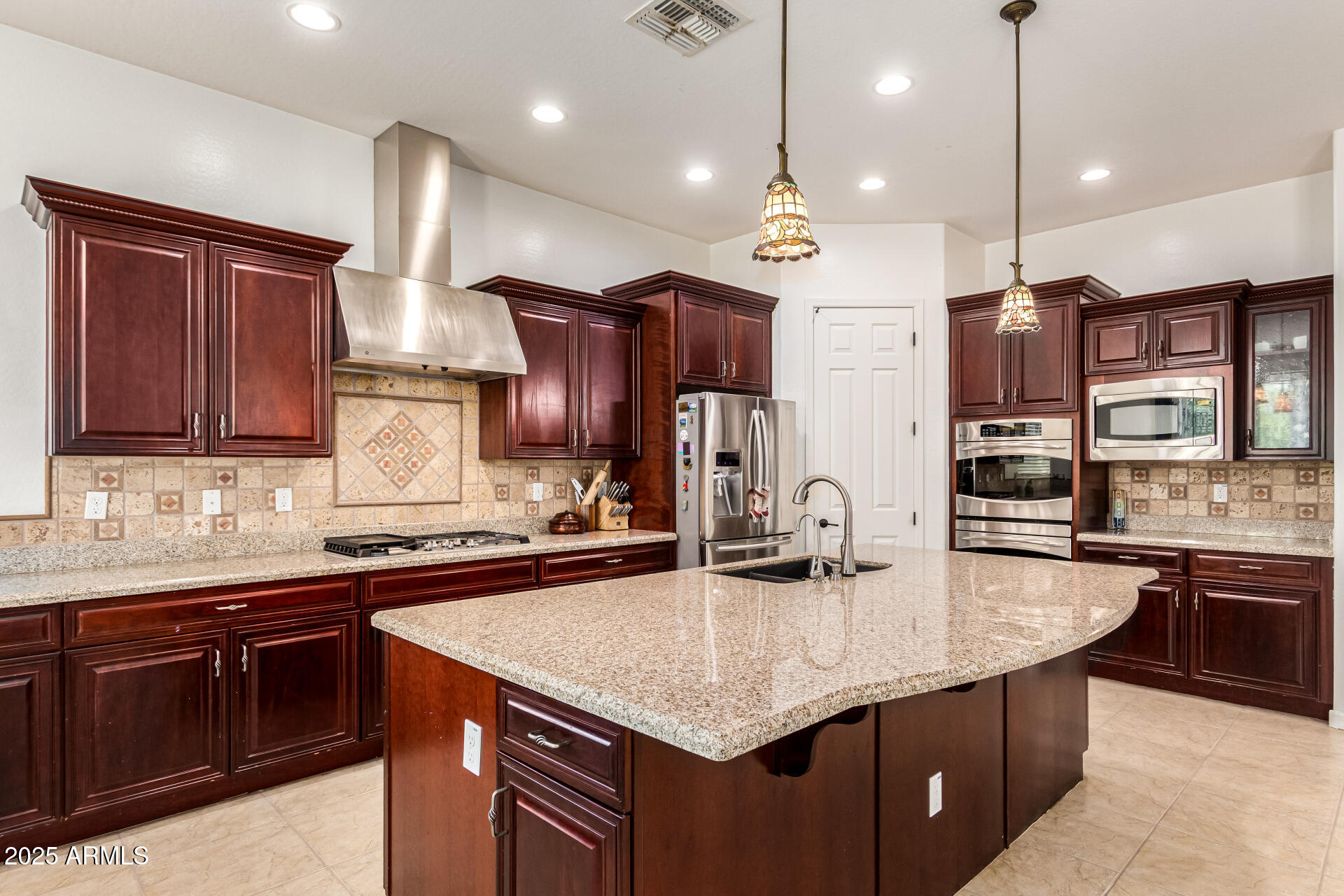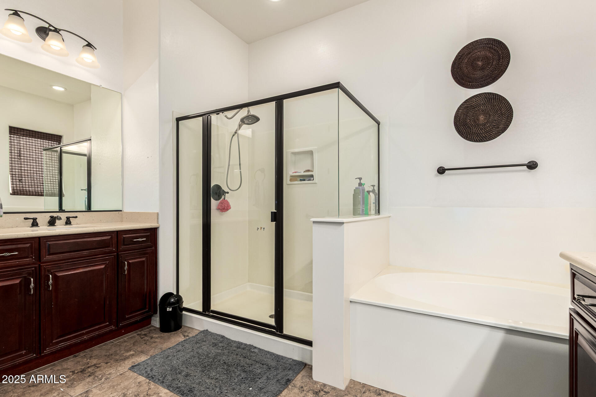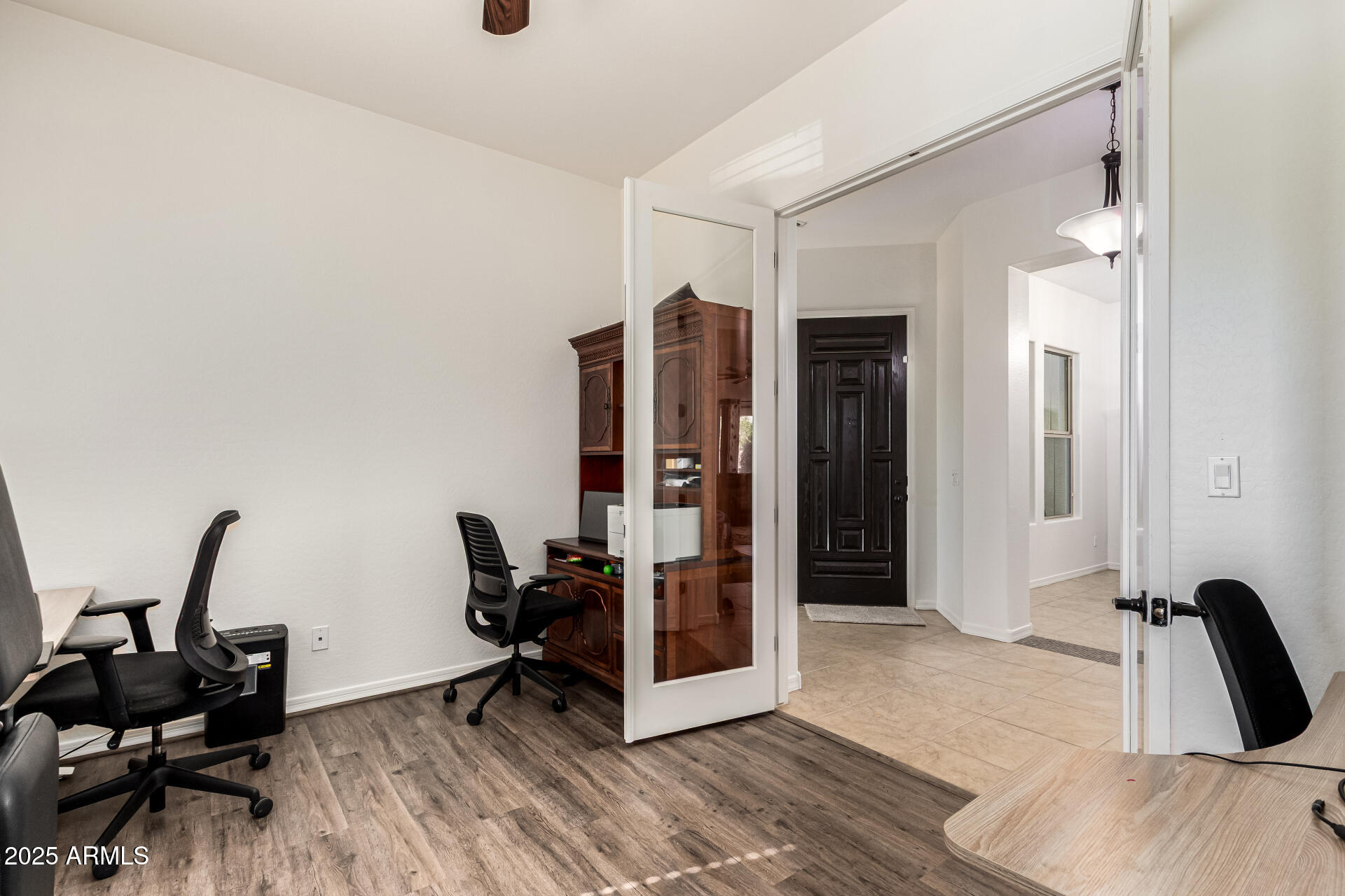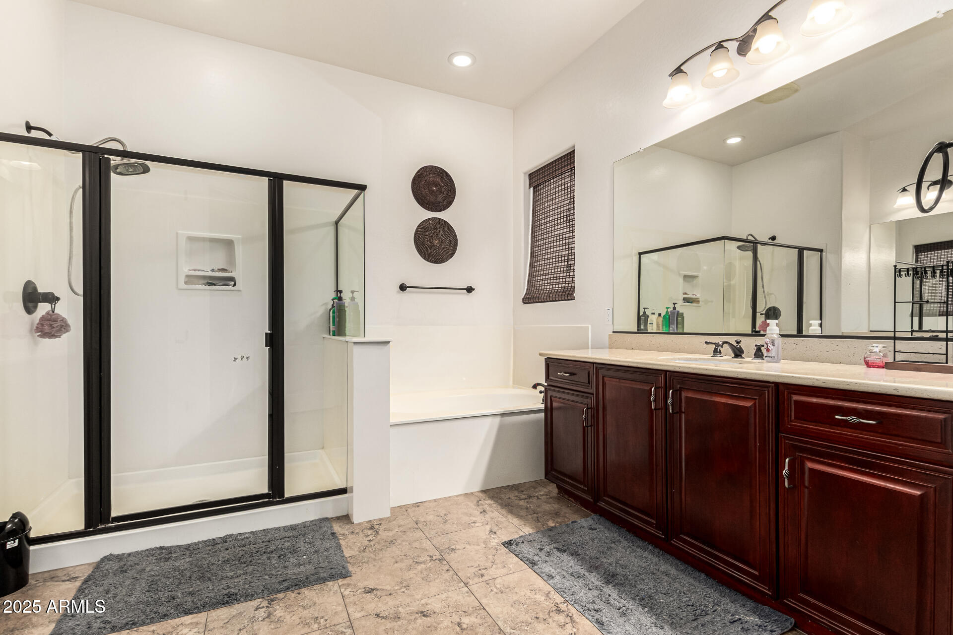 Experience the perfect blend of comfort and elegance in this beautifully designed home! Situated on a desirable corner lot, it displays a 3-car garage, an RV gate, and a gated courtyard. Inside, discover a living room, a versatile den with French doors, a bonus room, and a harmonious great room bathed in natural light. Thoughtful details include inviting foyer, tile flooring, ceiling fans, neutral palette, and stylish light fixtures. Open-concept kitchen is a cook's delight, fully equipped with glossy stainless steel appliances, tile backsplash, a pantry, ample cabinets adorned with crown molding, granite counters, recessed & pendant lighting, and a prep island with a breakfast bar. Serene main retreat impresses with plush carpet, direct outdoor access, and an ensuite with two vanities. Continue to your backyard oasis, where you'll find a covered patio and sparkling pool, excellent for year-round enjoyment and entertaining. Don't miss it!