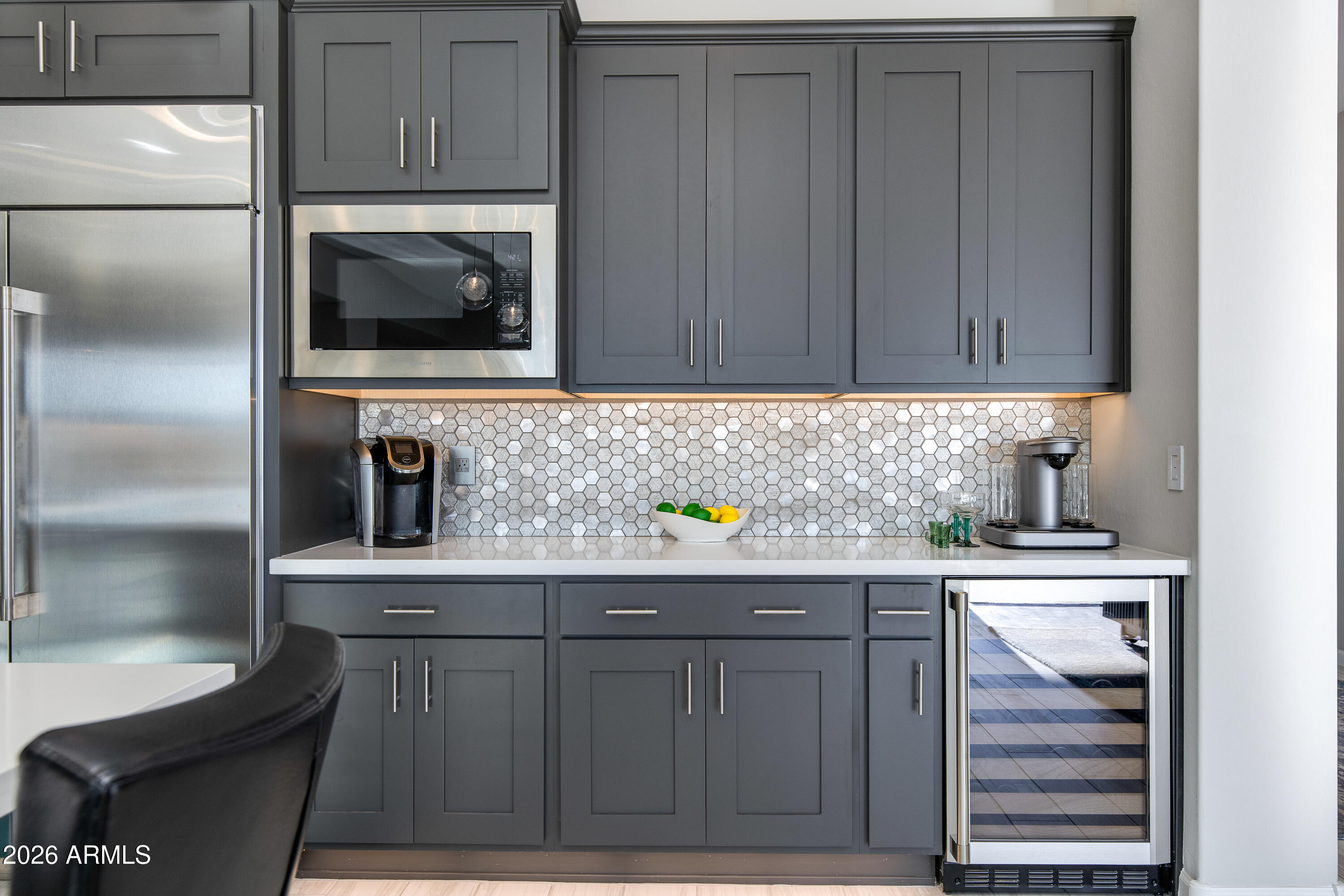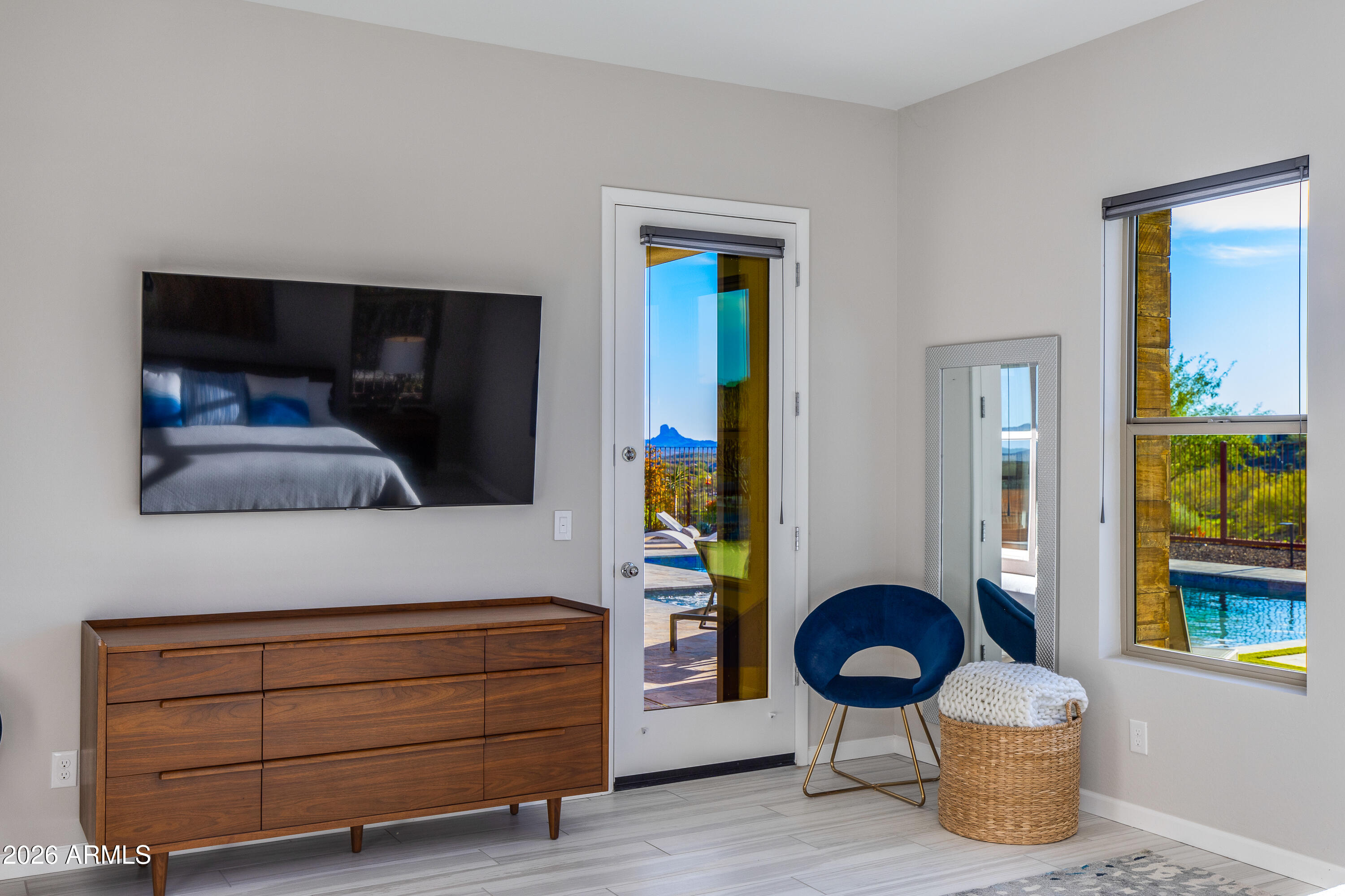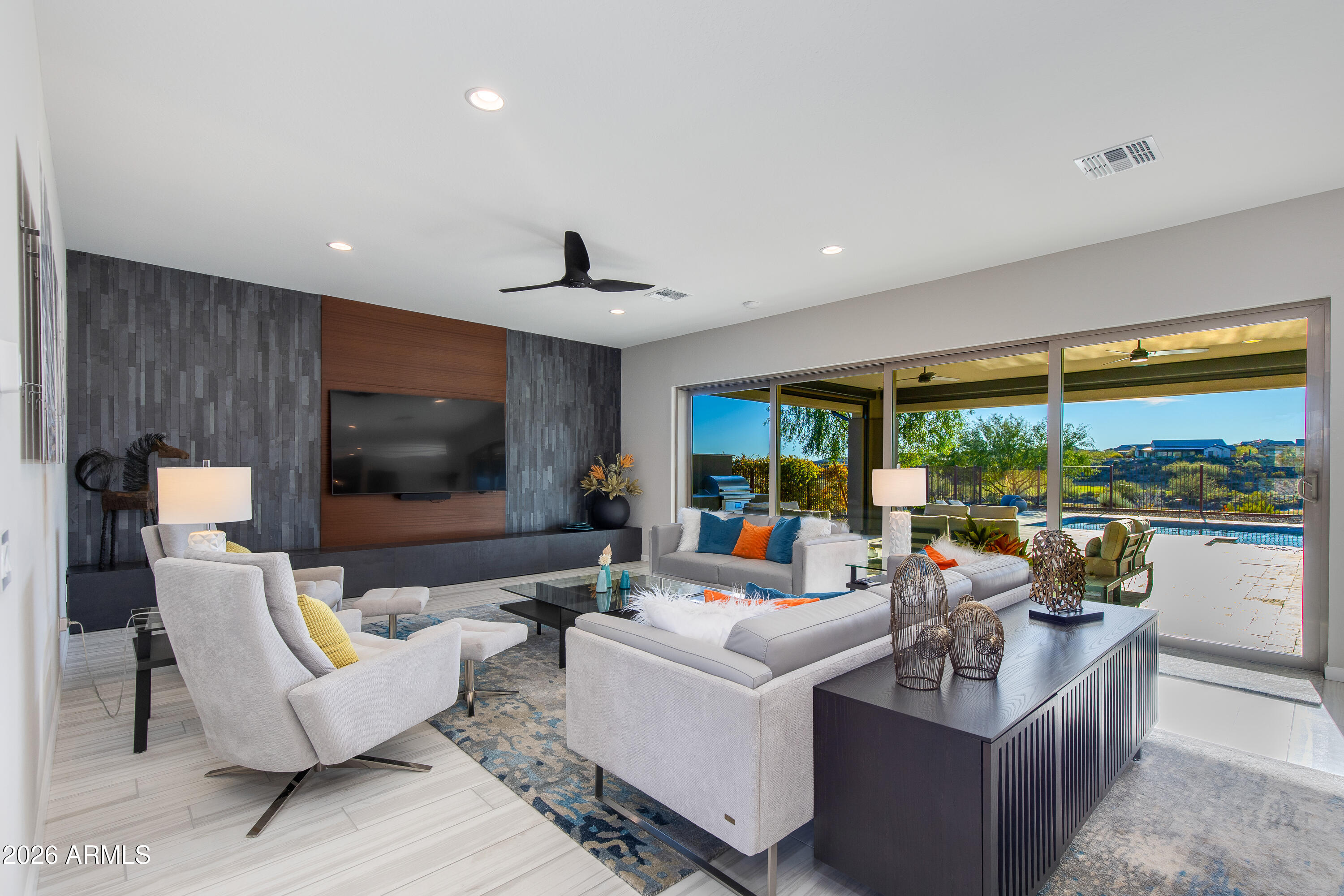 ONE-OF-A-KIND TURN KEY HOME blending modern Western sophistication w/every upgrade imaginable, perfectly positioned w/views of TWO separate fairways & glowing mountain sunsets nightly. Thoughtfully designed 3 bed,3.5 bath residence features upgraded flooring throughout, custom lighting, expansive multi-slide doors & power shades for seamless indoor-outdoor living. Chef's gourmet kitchen showcases Monogram appliances, quartz countertops, upgraded cabinetry w/soft-close drawers, under-cabinet lighting, wine chiller & oversized island.Spa-inspired primary suite offers luxurious bath w/heavy glass shower & custom tile surrounds. Heated pool & spa, travertine patio, putting green, extended covered patio & refined desert landscaping--ideal for hosting or unwinding w/golf & mountain views.