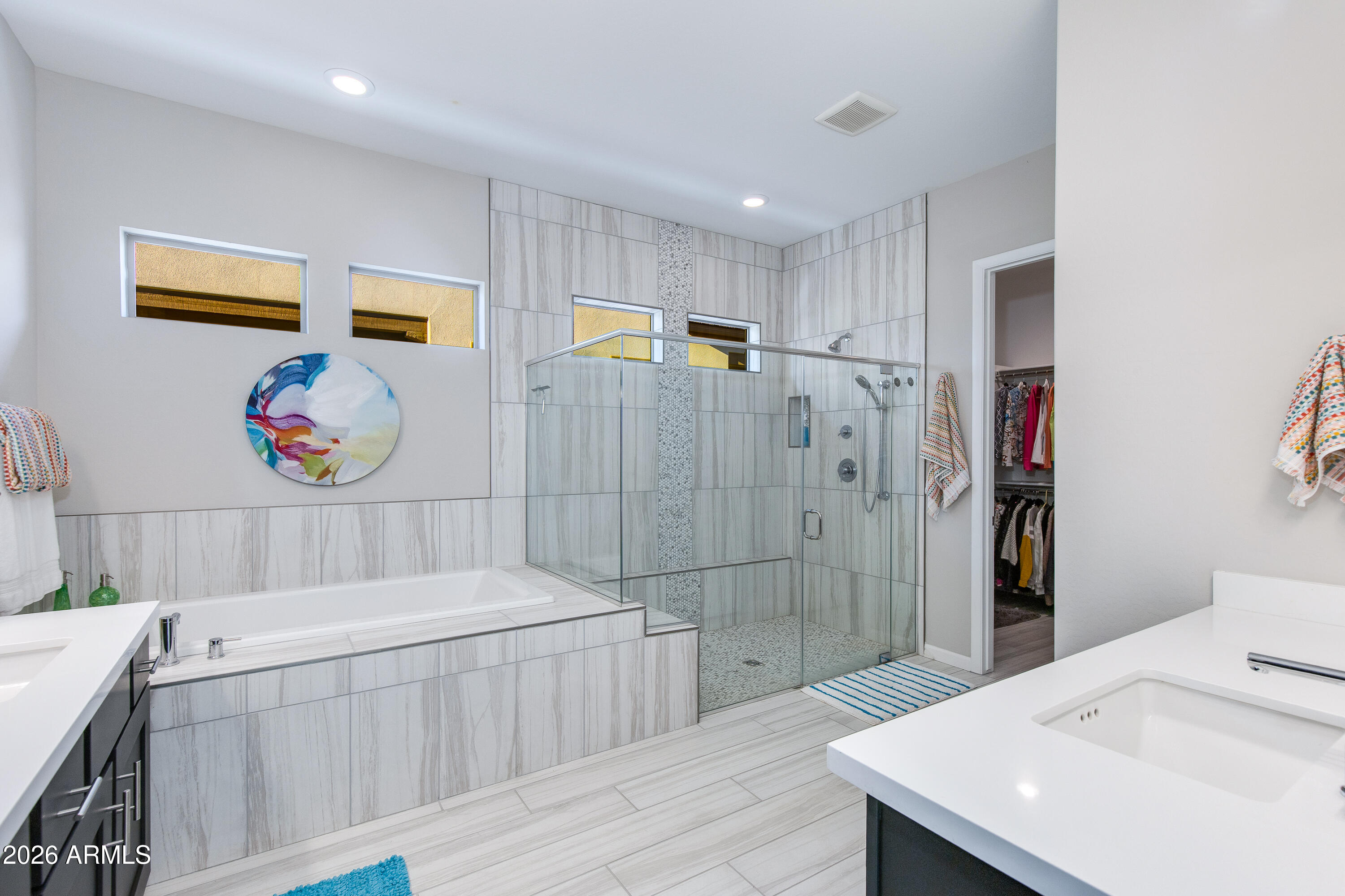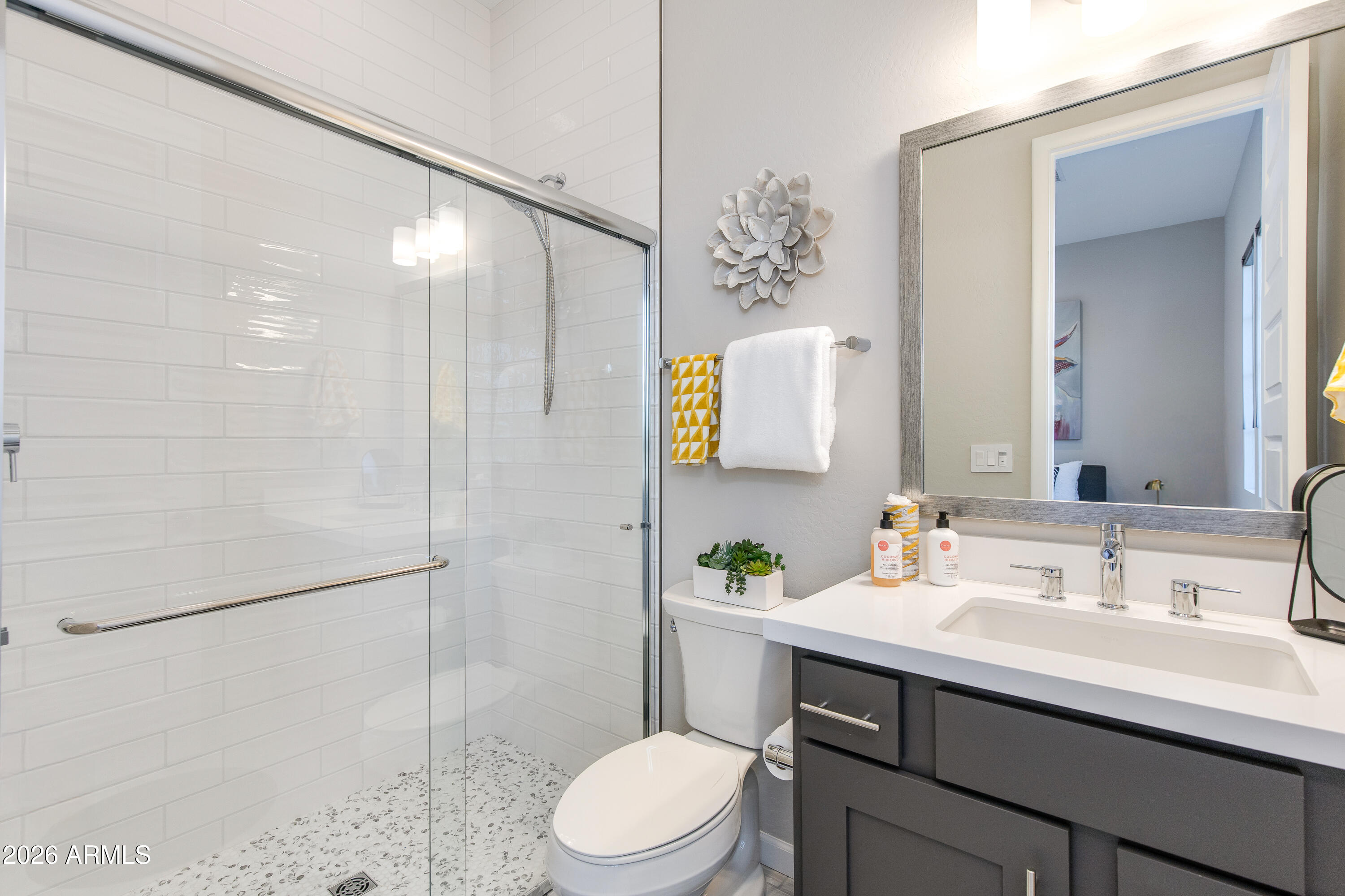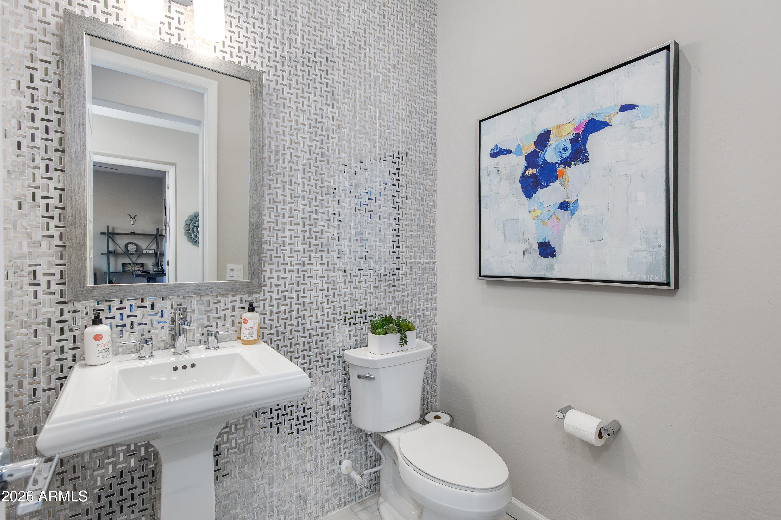 ONE-OF-A-KIND TURN KEY HOME blending modern Western sophistication w/every upgrade imaginable, perfectly positioned w/views of TWO separate fairways & glowing mountain sunsets nightly. Thoughtfully designed 3 bed,3.5 bath residence features upgraded flooring throughout, custom lighting, expansive multi-slide doors & power shades for seamless indoor-outdoor living. Chef's gourmet kitchen showcases Monogram appliances, quartz countertops, upgraded cabinetry w/soft-close drawers, under-cabinet lighting, wine chiller & oversized island.Spa-inspired primary suite offers luxurious bath w/heavy glass shower & custom tile surrounds. Heated pool & spa, travertine patio, putting green, extended covered patio & refined desert landscaping--ideal for hosting or unwinding w/golf & mountain views.