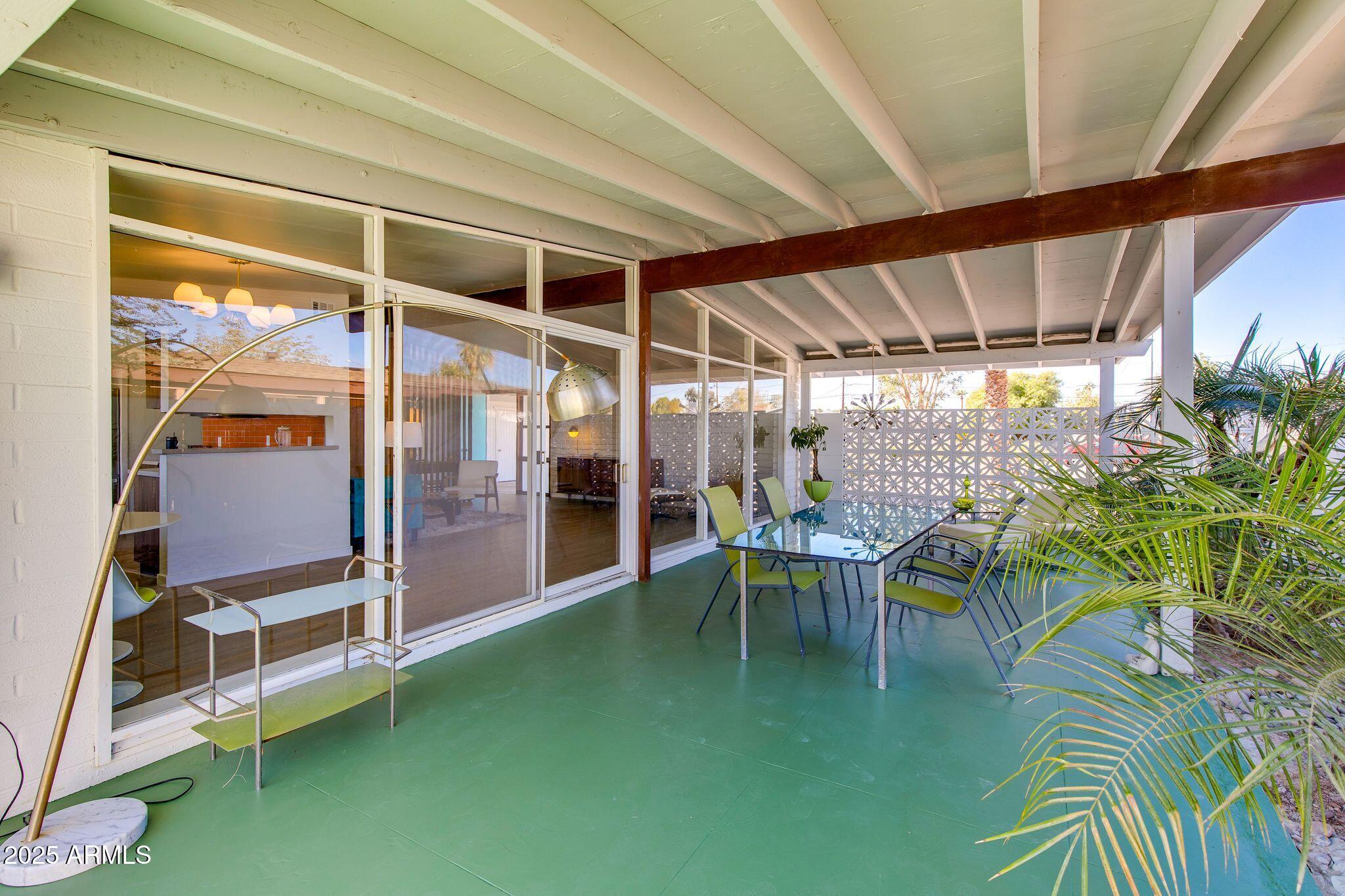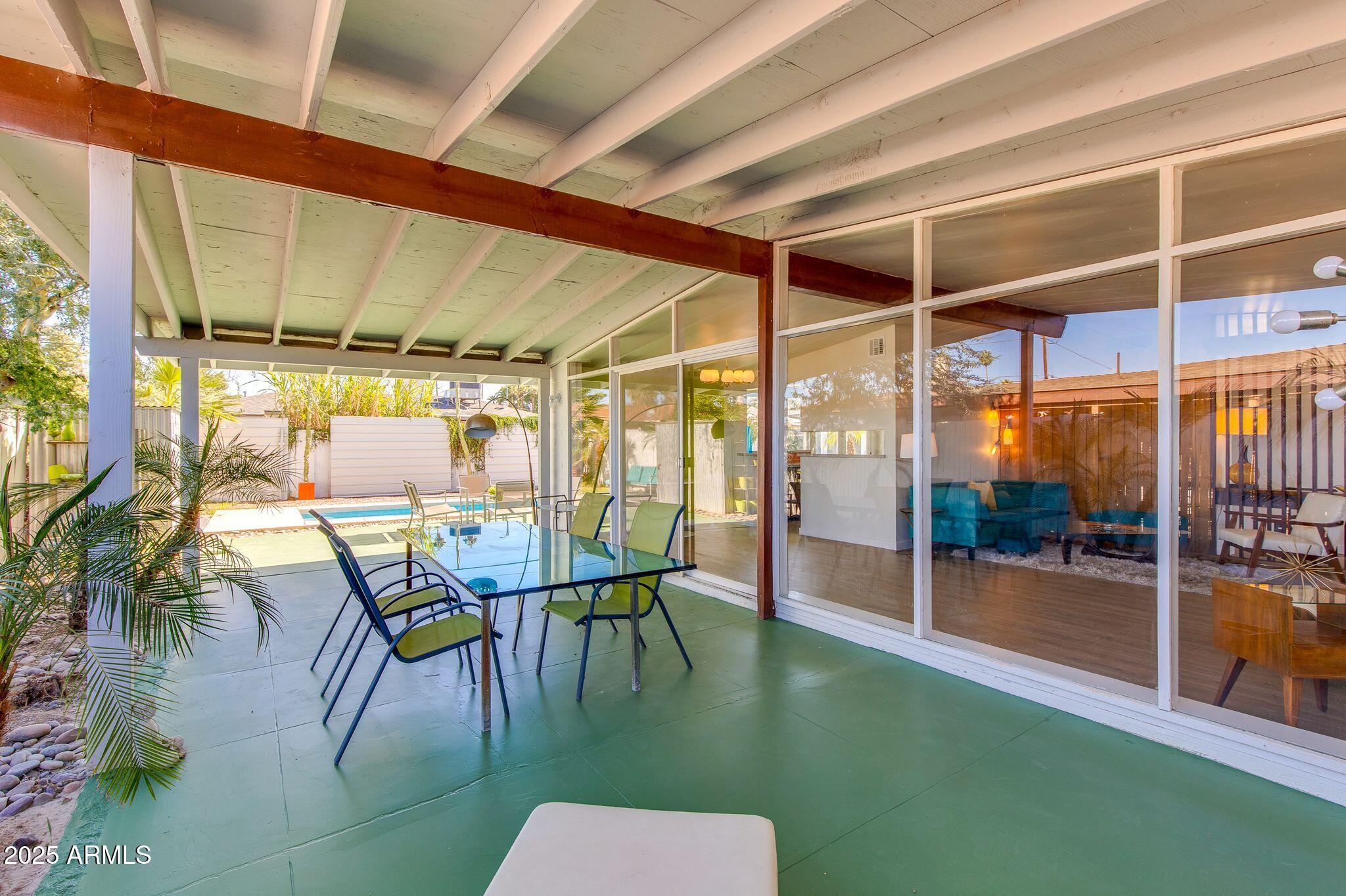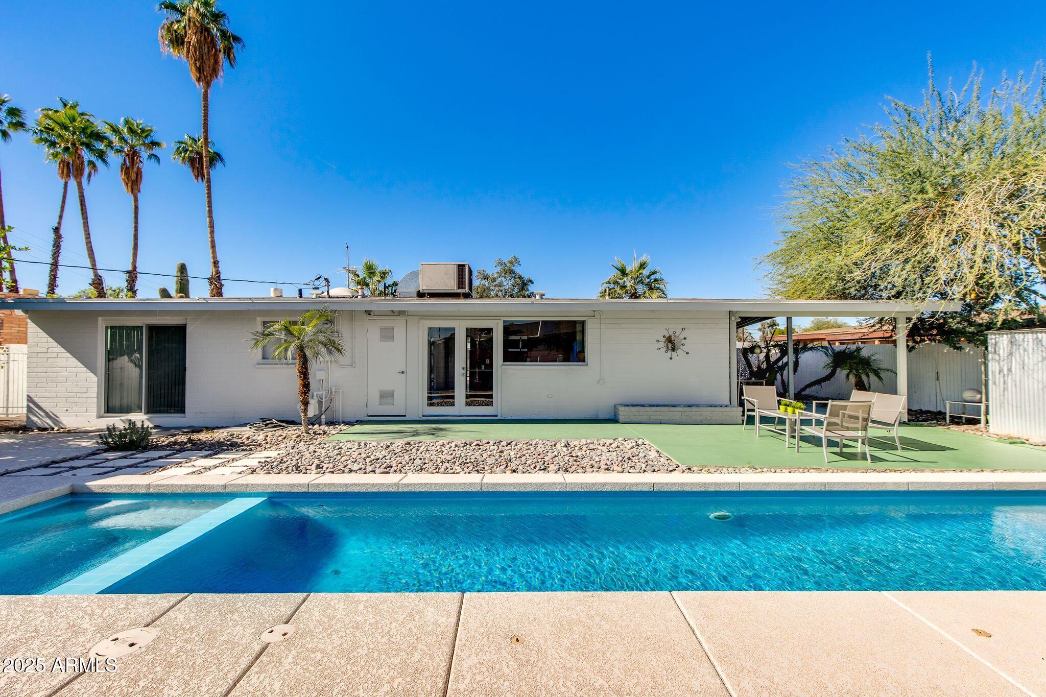 Don't miss out on this rare opportunity to lease this lovingly remodeled mid-century modern masterpiece by Glenn McCollum, AIA. Brand new Kitchen, baths, flooring, paint throughout, hot water heater and more!!. Thoughtfully reimagined to preserve its architectural soul, this home blends timeless design with stylish modern updates. Vaulted ceilings, expansive window walls, and open living spaces fill the home with natural light and authentic MCM charm. The upgraded kitchen and bathrooms reflect the home's refined aesthetic, while seamless indoor-outdoor living connects to a lush private yard featuring a sparkling modern pool, relaxing spa, and air conditioned detached office/pool house, offering the perfect blend of iconic design. Just minutes from vibrant Downtown Chandler.