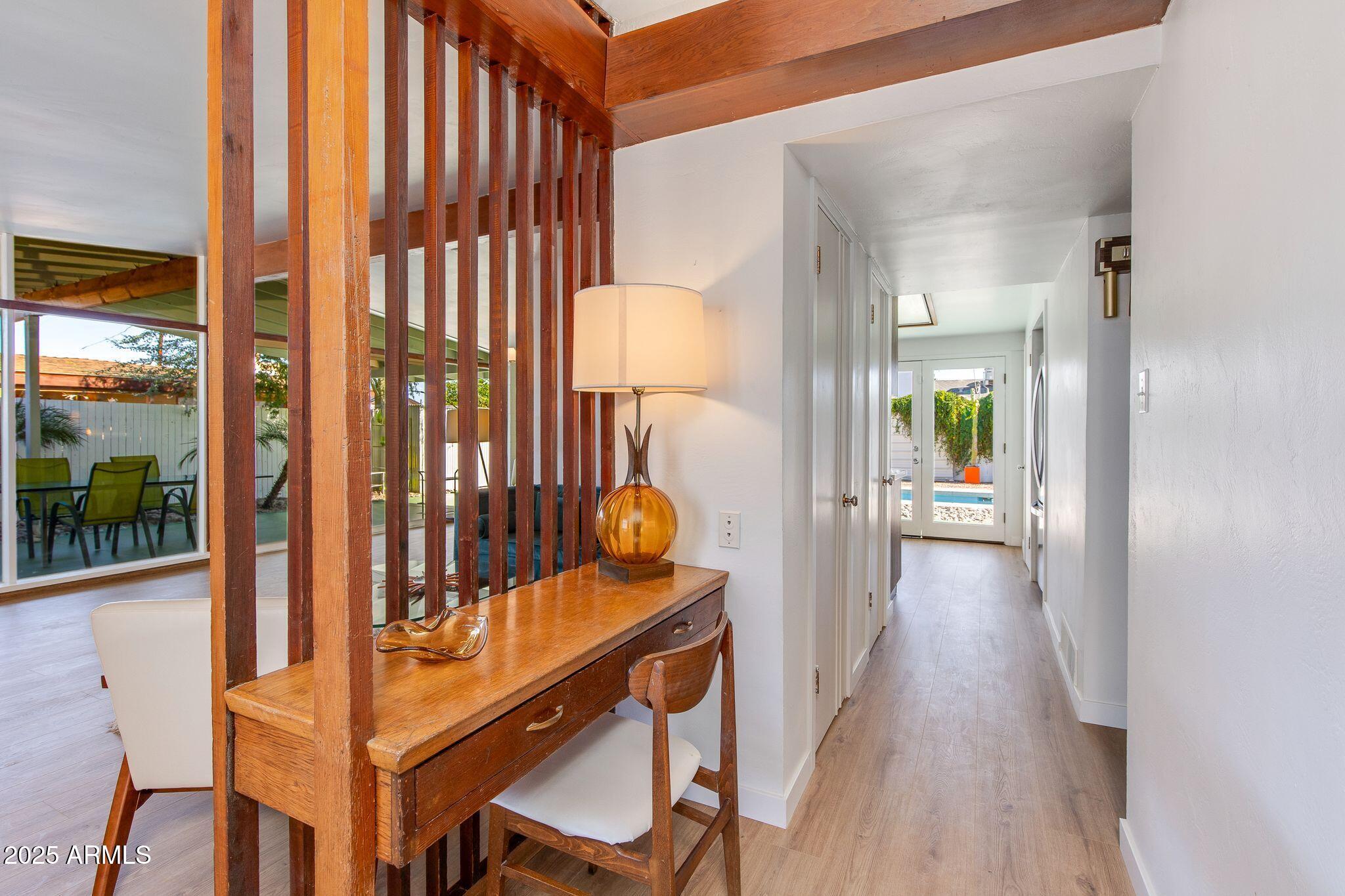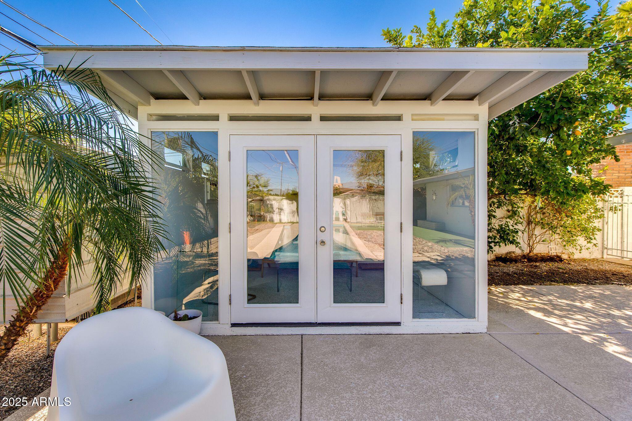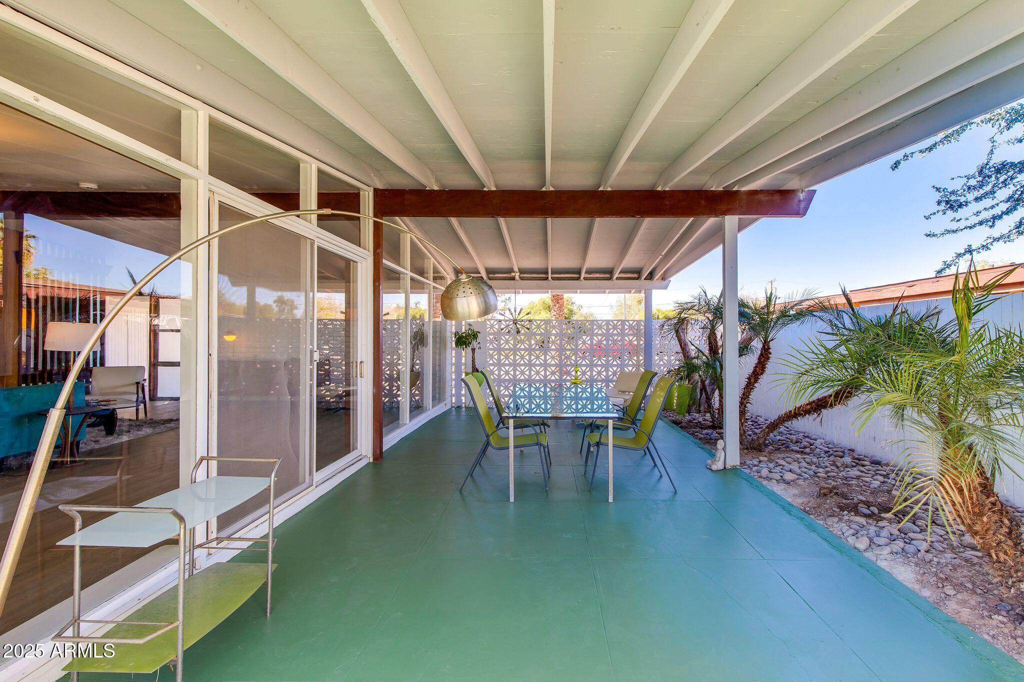 Don't miss out on this rare opportunity to lease this lovingly remodeled mid-century modern masterpiece by Glenn McCollum, AIA. Brand new Kitchen, baths, flooring, paint throughout, hot water heater and more!!. Thoughtfully reimagined to preserve its architectural soul, this home blends timeless design with stylish modern updates. Vaulted ceilings, expansive window walls, and open living spaces fill the home with natural light and authentic MCM charm. The upgraded kitchen and bathrooms reflect the home's refined aesthetic, while seamless indoor-outdoor living connects to a lush private yard featuring a sparkling modern pool, relaxing spa, and air conditioned detached office/pool house, offering the perfect blend of iconic design. Just minutes from vibrant Downtown Chandler.