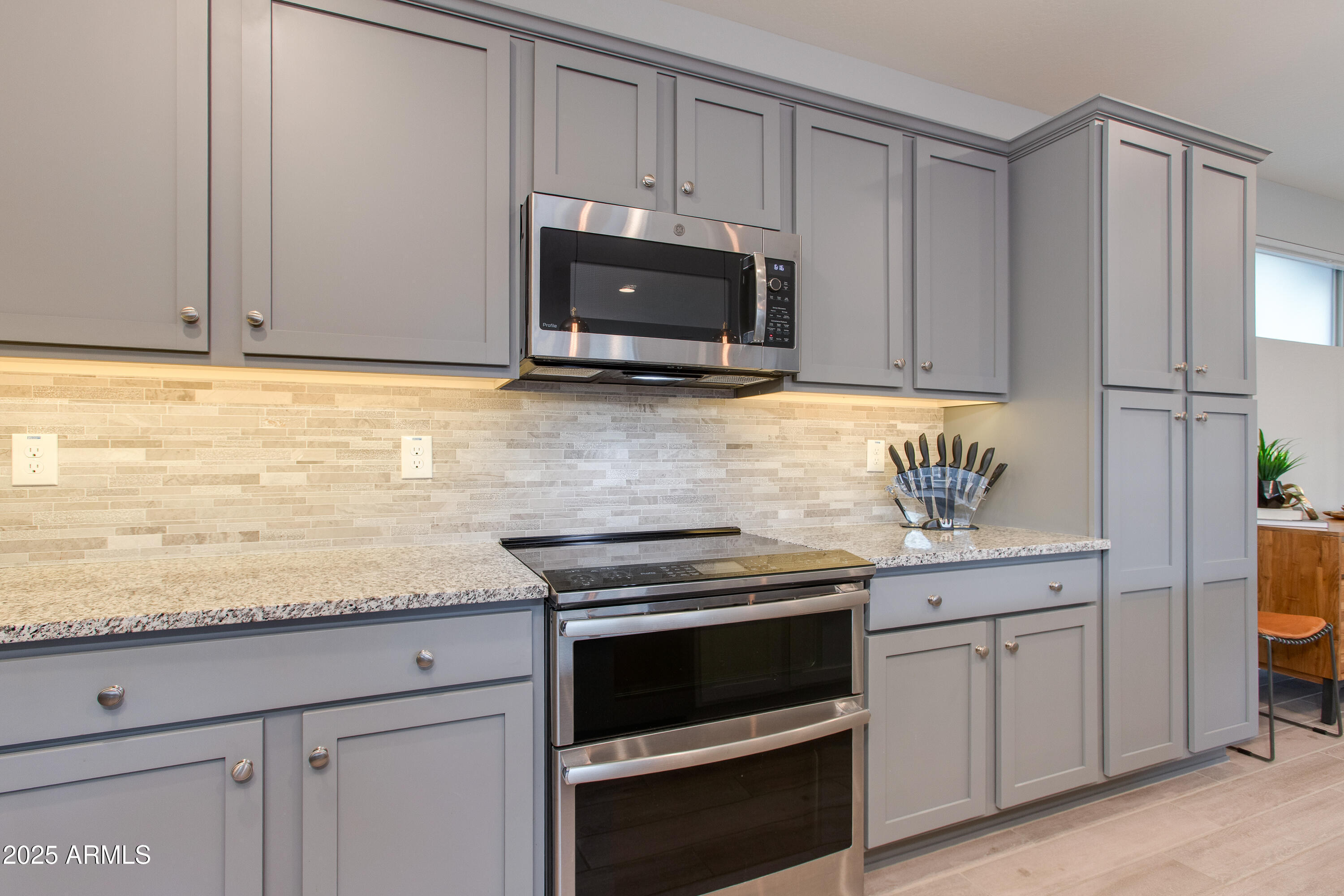 One-of-a-kind ''Lock & Leave'' Stetson plan with elevated golf, lake & mountain views. 2 bed/2 bath layout offers upgraded finishes throughout with a relaxed, resort-style vibe. Open kitchen, dining & living spaces create effortless flow for daily comfort & easy entertaining. Primary suite features spa-inspired bath with granite counters, tiled shower & dual sinks. Backyard shines with upgraded landscape, extended usability & motorized solar shades for beautiful sunrise mornings. Additional perks include extended electrical package, recessed lighting, exterior outlets, stone facade & Belgard pavers. HOA-maintained front & back landscape delivers true low-maintenance living. Ideal for seasonal retreat or full-time enjoyment at Wickenburg Ranch.