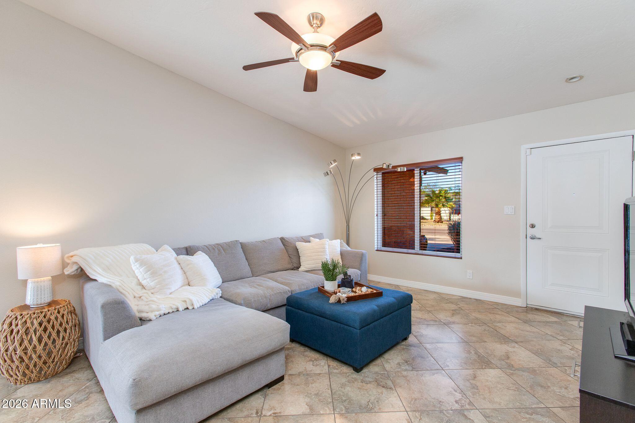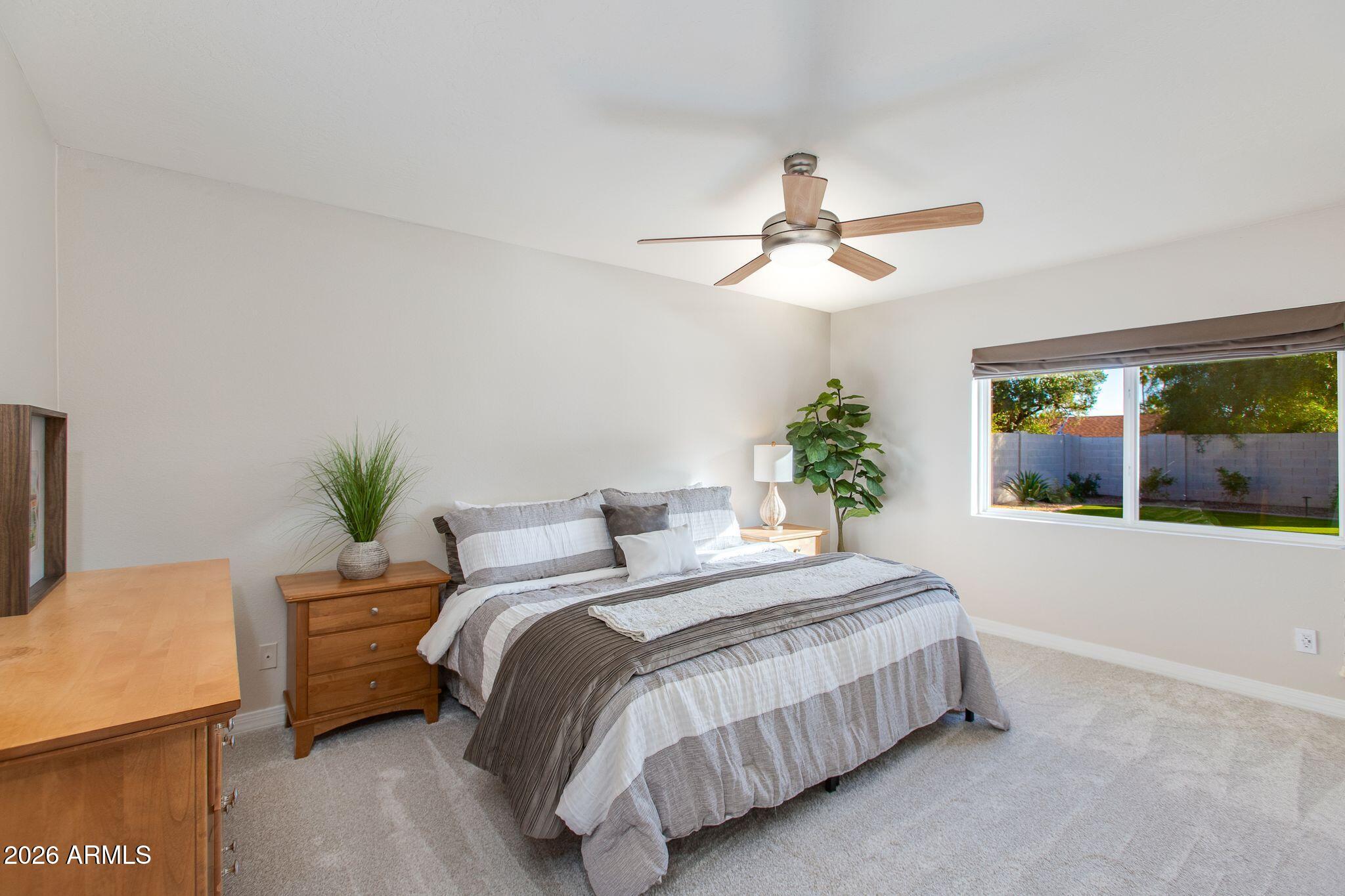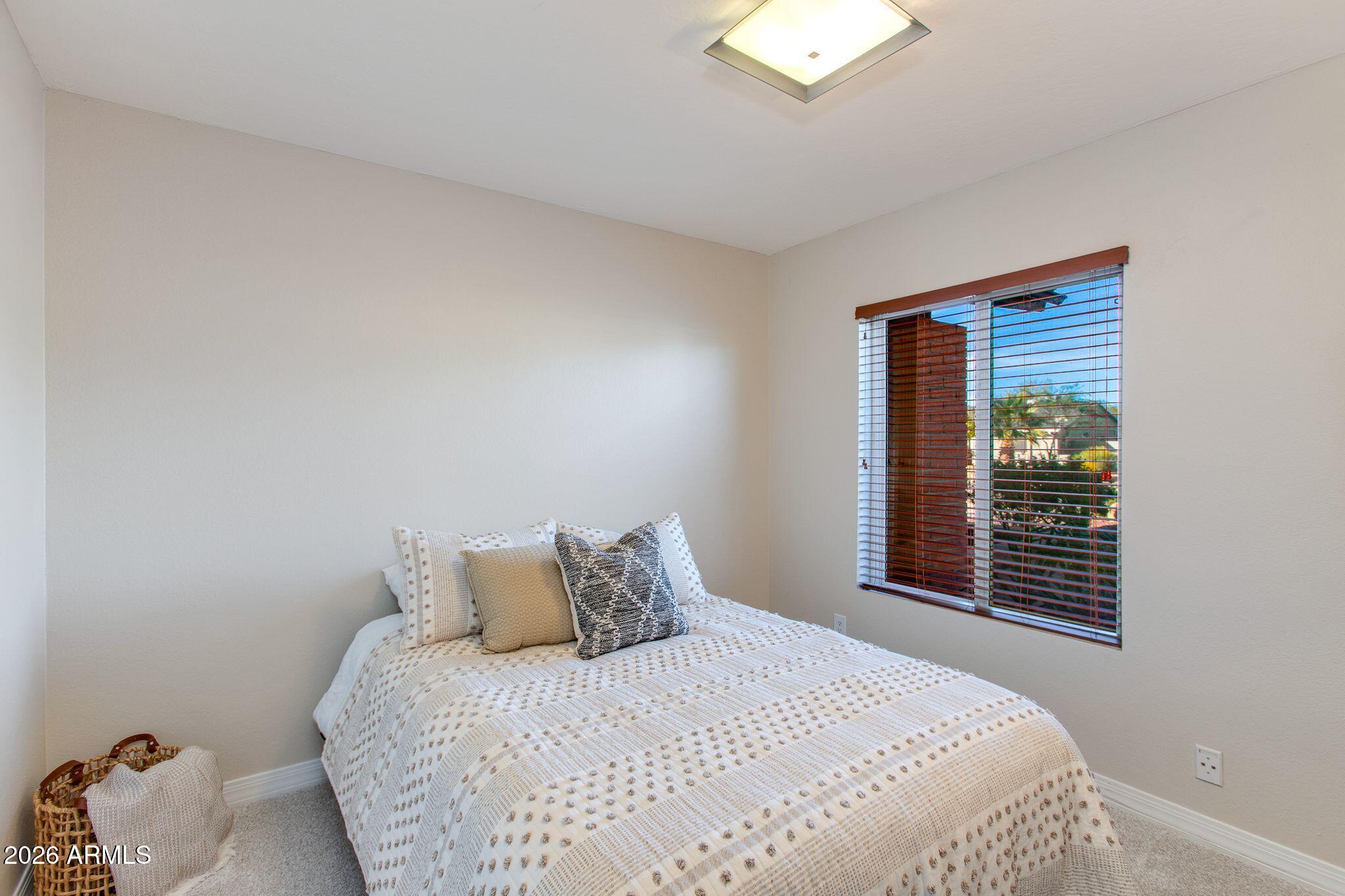 Set on a generous lot in the coveted 85254 + PV Mall area, this beautifully refreshed 3BD/2BA residence blends modern comfort with effortless living. Vaulted ceilings and natural light create an airy, welcoming feel throughout. Renovated kitchen + baths feature clean, modern finishes, complemented by new interior & exterior paint, new carpet, and neutral tile. Primary ensuite offers walk-in closet, double vanity & lg. shower. Laundry includes built-in storage space/pantry. Step outside to a beautiful oasis complete with sparkling pool, Alumawood pergola, bistro lighting, covered patio, hardscape, firepit & turf, perfect for low-maintenance upkeep & easy entertaining. Extended storage area in garage. Ideally located with premier dining, shopping, freeways and amenities just moments away