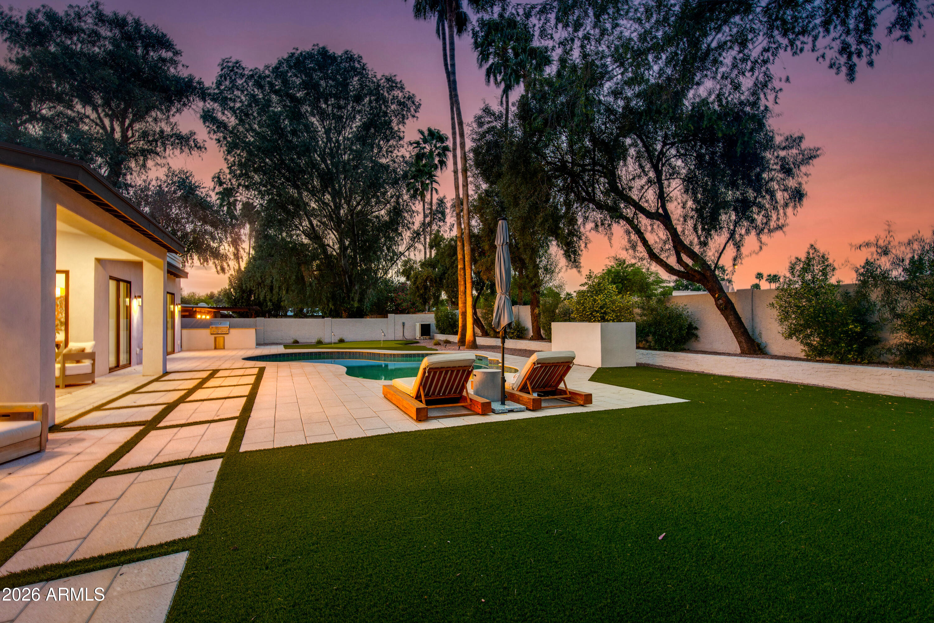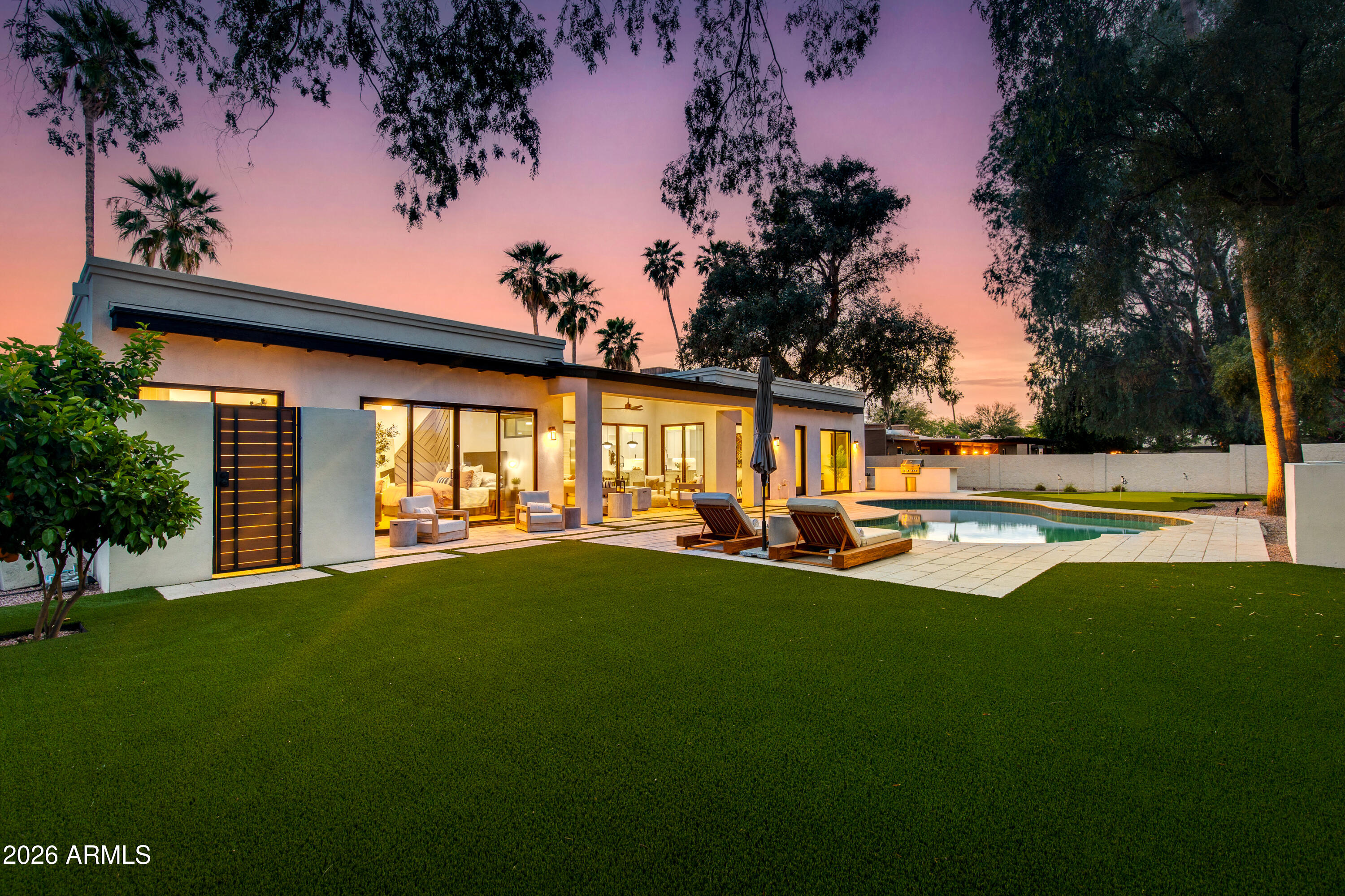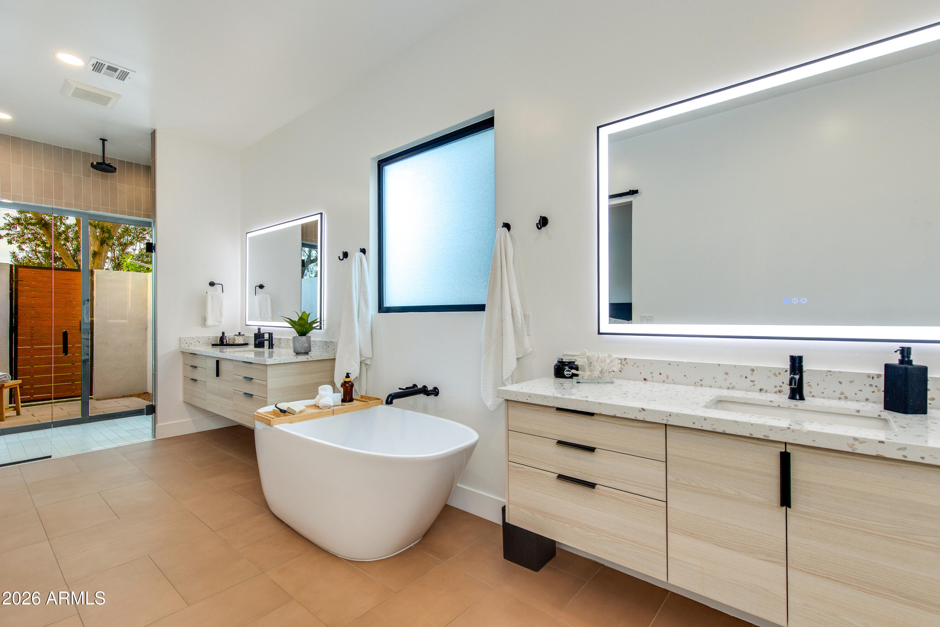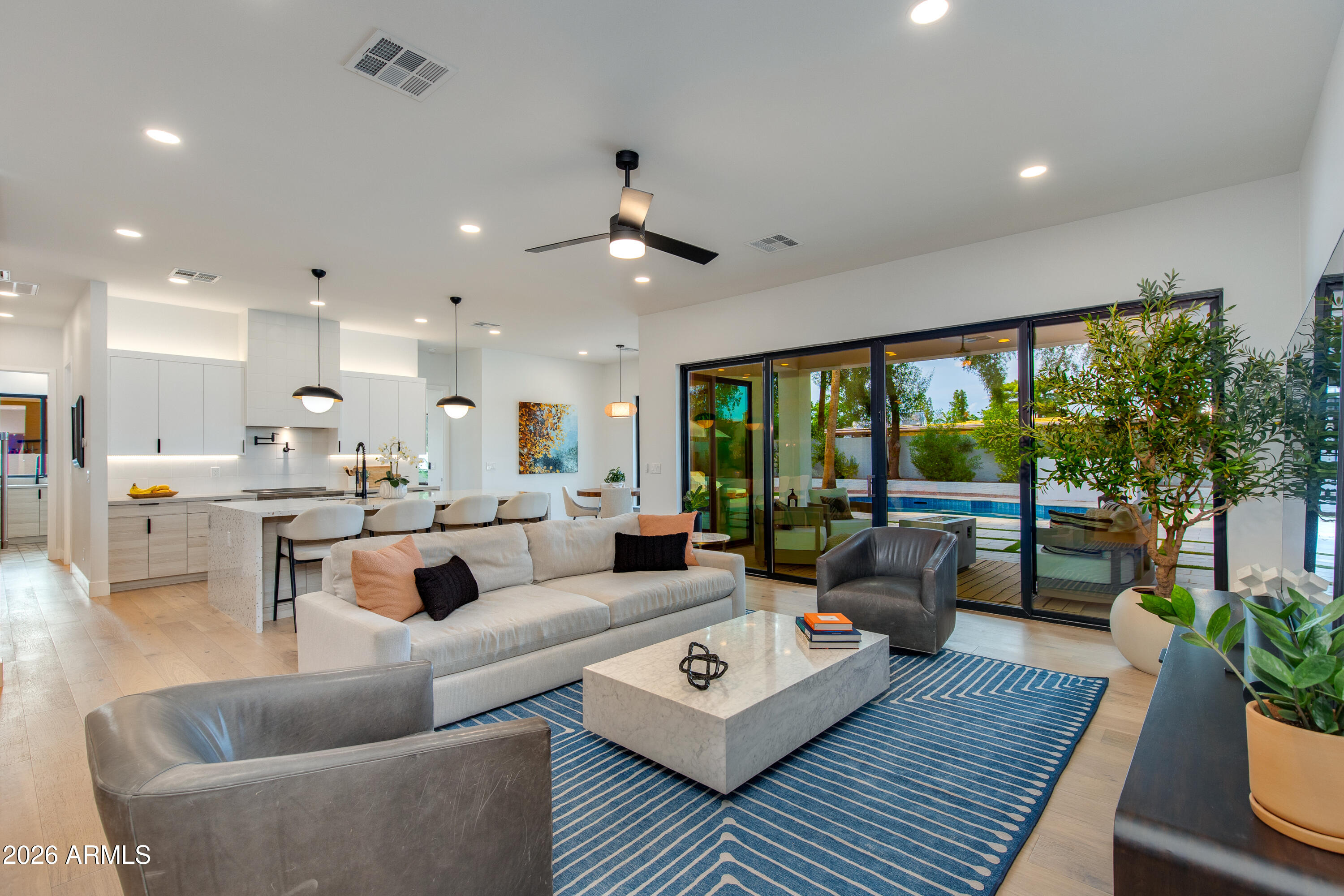 Located in the coveted ''magic island'' zip code of 85254, this 2023 full-rebuild delivers modern luxury, thoughtful design & elevated everyday functionality in one of the Valley's most desirable locations. Offering a Scottsdale address with Phoenix services, enjoy close proximity to Kierland, Paradise Valley, & the Camelback Corridor. This 5 bed, 4.5 bath home features a versatile layout ideal for guest quarters or Airbnb-style use, including a private flex space with full bath, wet bar, & backyard access. The owner's suite is a true retreat with dual vanities, freestanding tub, large shower, split W.I.C. & private outdoor shower. Open-concept living extends to a resort-style backyard with pool, BBQ, turf & putting green, while front-facing Camelback Mountain views elevate the experience.