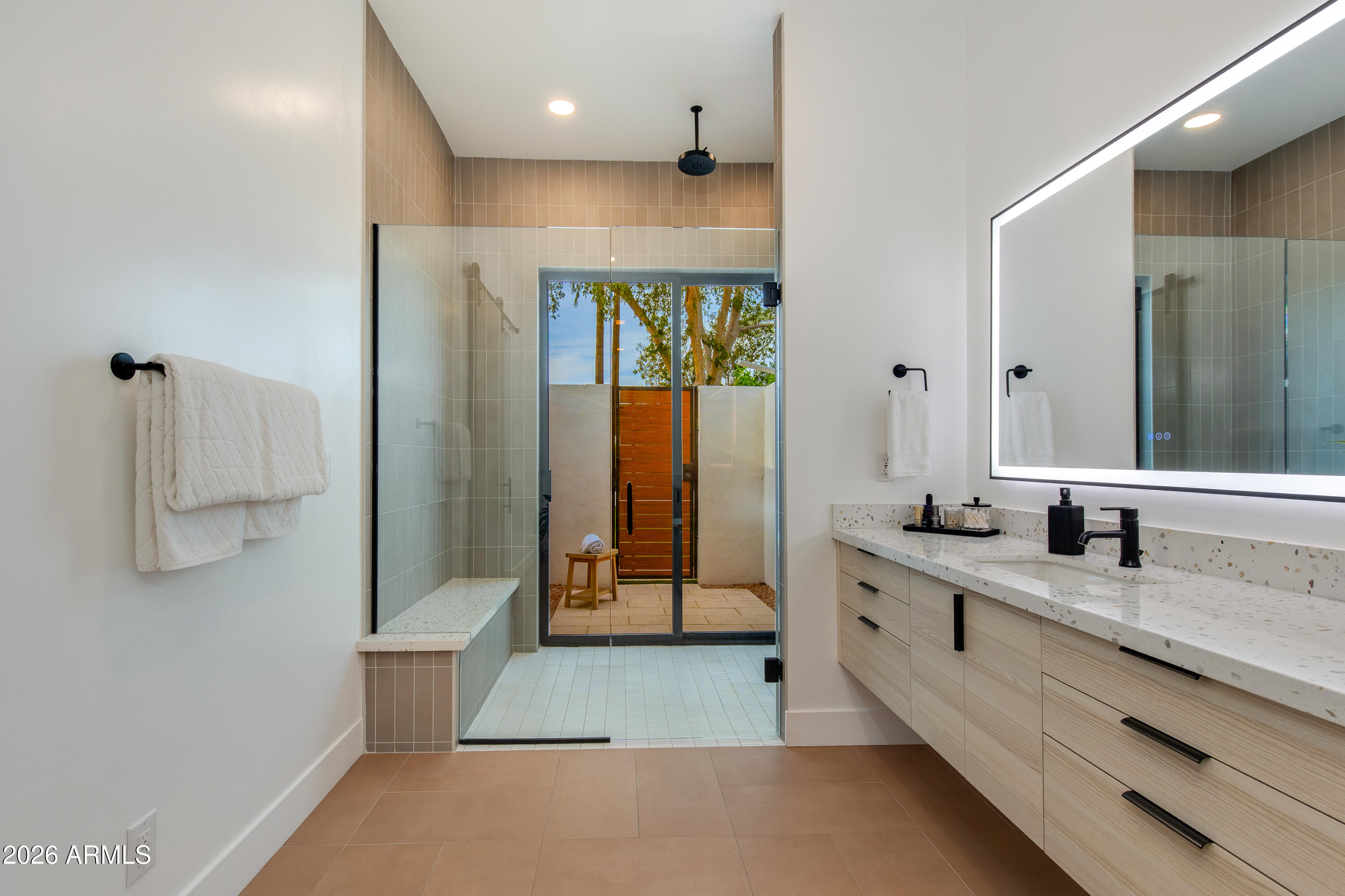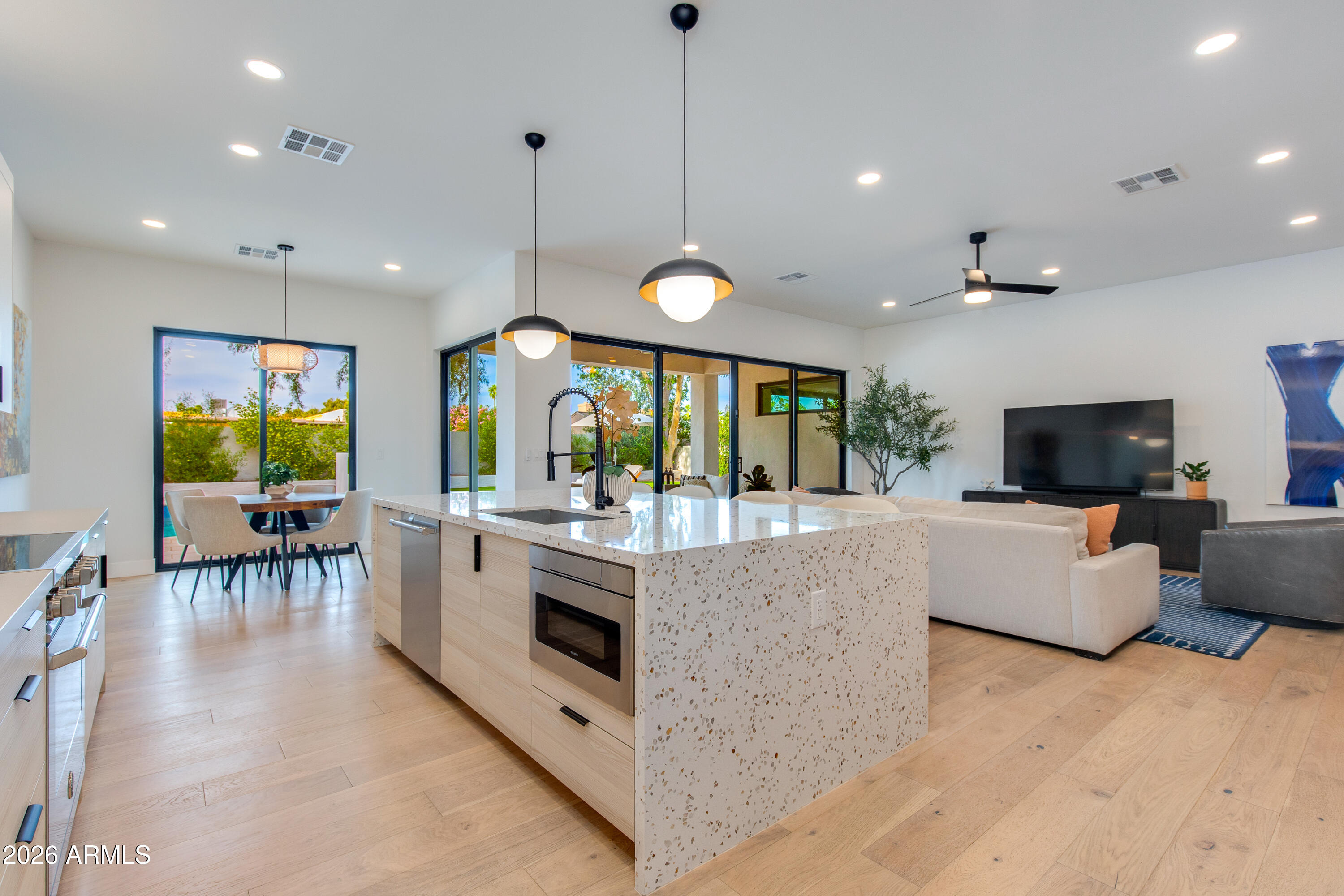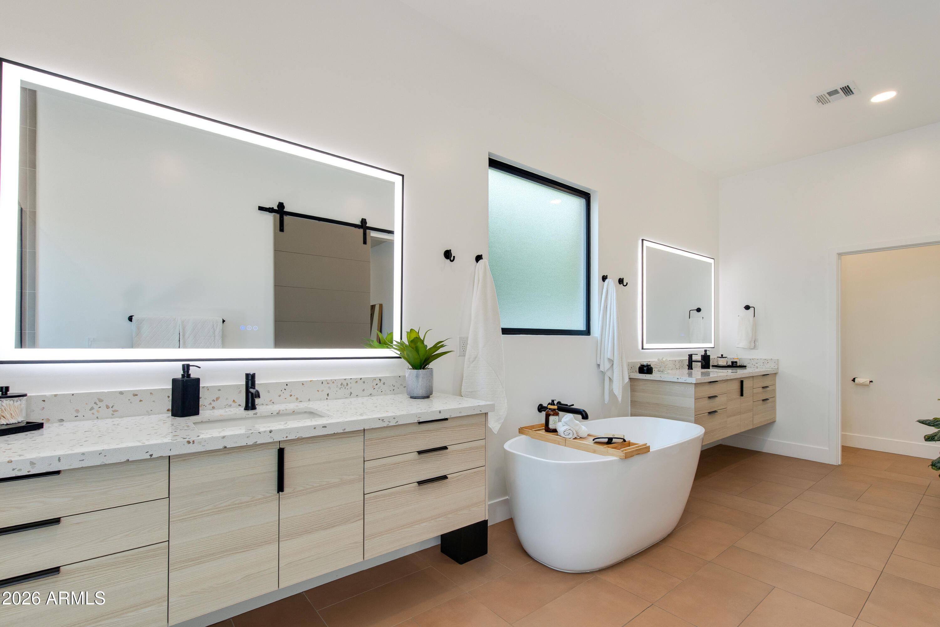 Located in the coveted ''magic island'' zip code of 85254, this 2023 full-rebuild delivers modern luxury, thoughtful design & elevated everyday functionality in one of the Valley's most desirable locations. Offering a Scottsdale address with Phoenix services, enjoy close proximity to Kierland, Paradise Valley, & the Camelback Corridor. This 5 bed, 4.5 bath home features a versatile layout ideal for guest quarters or Airbnb-style use, including a private flex space with full bath, wet bar, & backyard access. The owner's suite is a true retreat with dual vanities, freestanding tub, large shower, split W.I.C. & private outdoor shower. Open-concept living extends to a resort-style backyard with pool, BBQ, turf & putting green, while front-facing Camelback Mountain views elevate the experience.