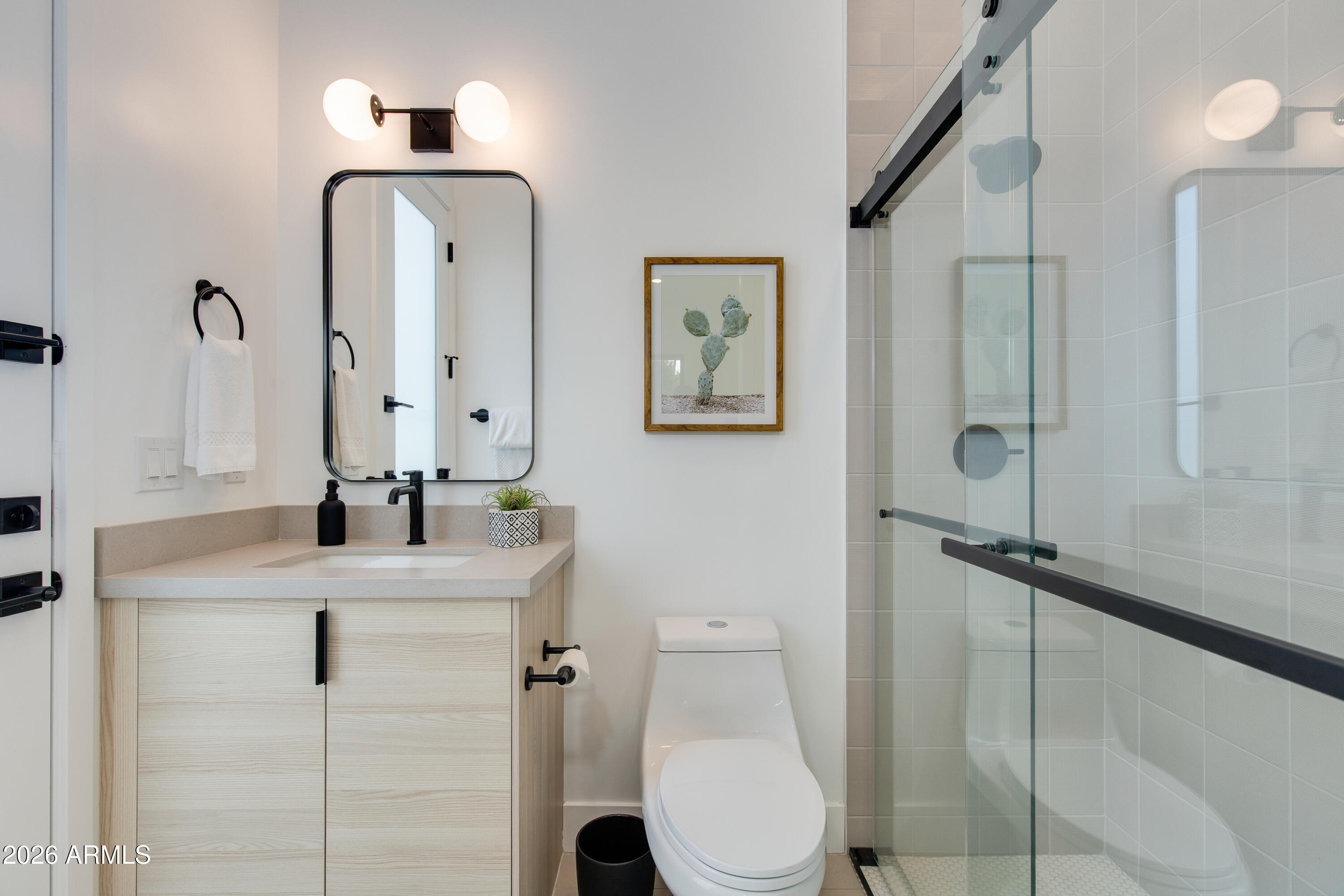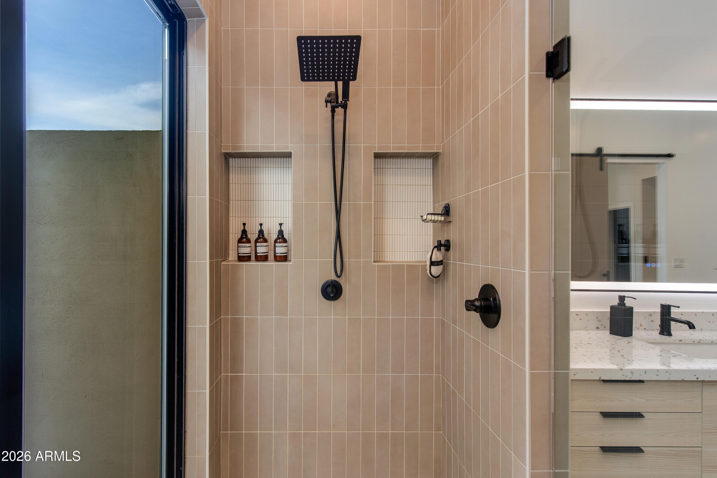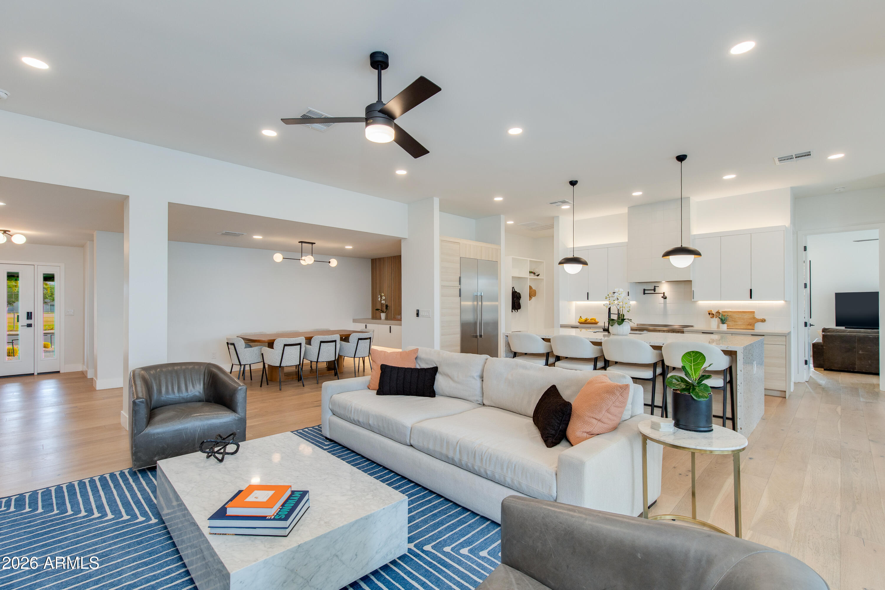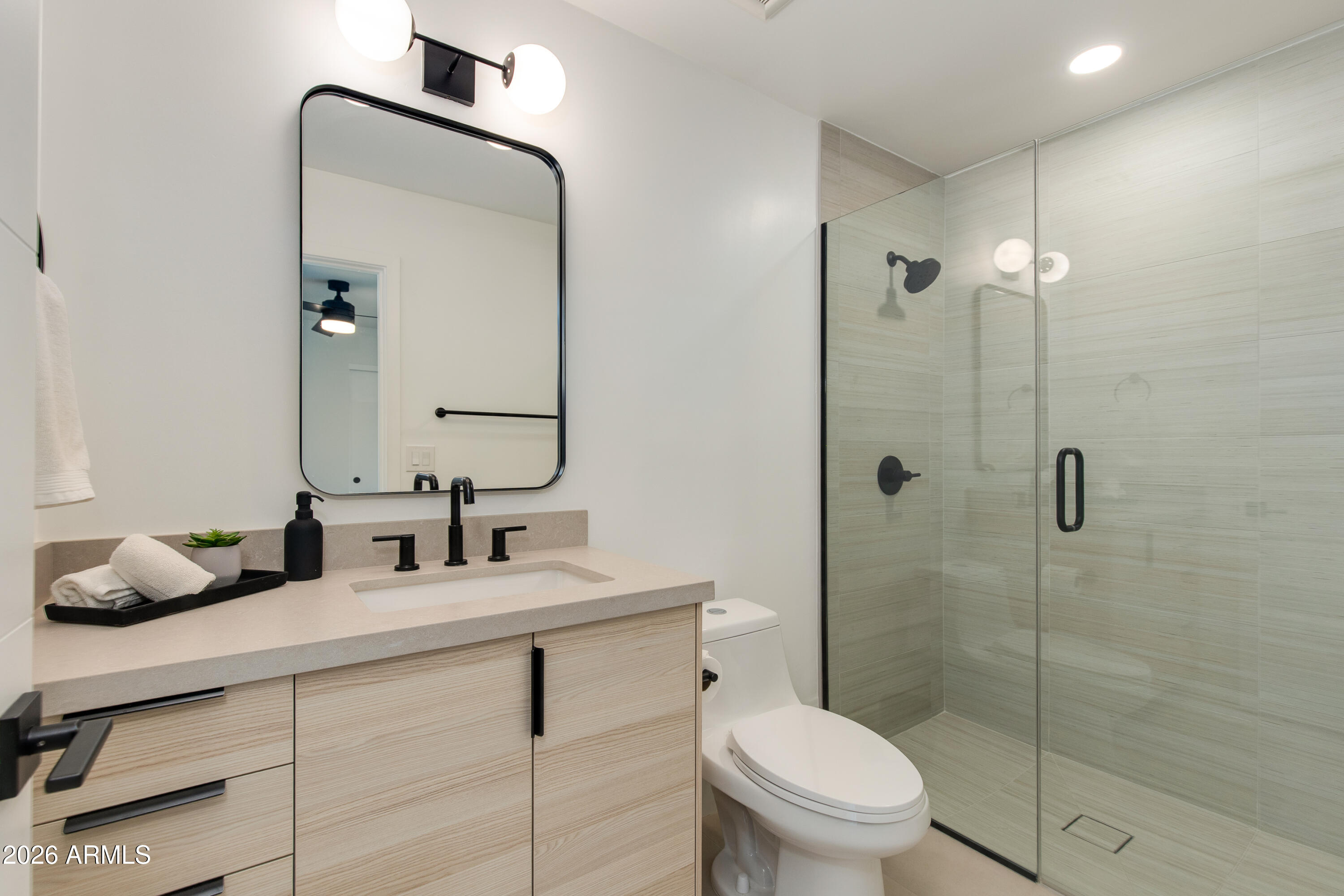 Located in the coveted ''magic island'' zip code of 85254, this 2023 full-rebuild delivers modern luxury, thoughtful design & elevated everyday functionality in one of the Valley's most desirable locations. Offering a Scottsdale address with Phoenix services, enjoy close proximity to Kierland, Paradise Valley, & the Camelback Corridor. This 5 bed, 4.5 bath home features a versatile layout ideal for guest quarters or Airbnb-style use, including a private flex space with full bath, wet bar, & backyard access. The owner's suite is a true retreat with dual vanities, freestanding tub, large shower, split W.I.C. & private outdoor shower. Open-concept living extends to a resort-style backyard with pool, BBQ, turf & putting green, while front-facing Camelback Mountain views elevate the experience.