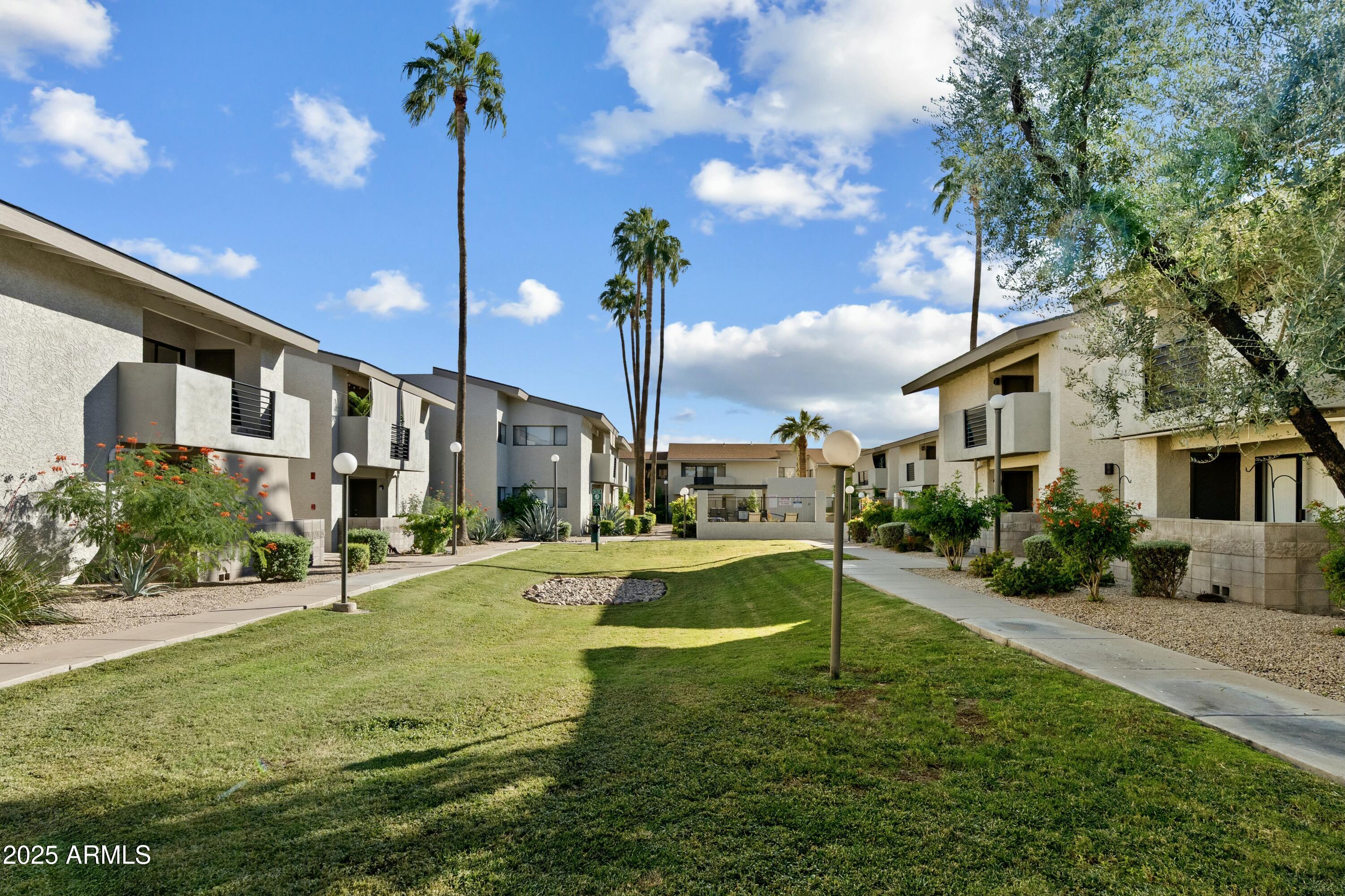 Hello, poolside living! Step into this beautifully updated, ground-floor condo perfectly situated in one of Scottsdale's most convenient pockets! Set on a quiet interior lot overlooking the courtyard, this home offers the perfect blend of comfort and convenience. Inside, you'll find tile flooring throughout, fresh paint, modern slate cabinetry, granite countertops, and updated stainless-steel appliances. This is a highly desirable floor plan, both bedrooms feature en-suite baths, master walk-in closet, a private covered patio, inside laundry, and reserved parking with ample guest spaces for friends and family! Lincoln Gardens is an exceptionally well-managed community that covers all exterior maintenance, water, sewer, and waste services; while enjoying some of the lowest HOA dues and property taxes in all of Scottsdale! Enjoy effortless access to Chaparral Park, scenic greenbelt walking paths, minutes from Old Town and the brand-new Ritz Carlton. Move-in ready and waiting for you!