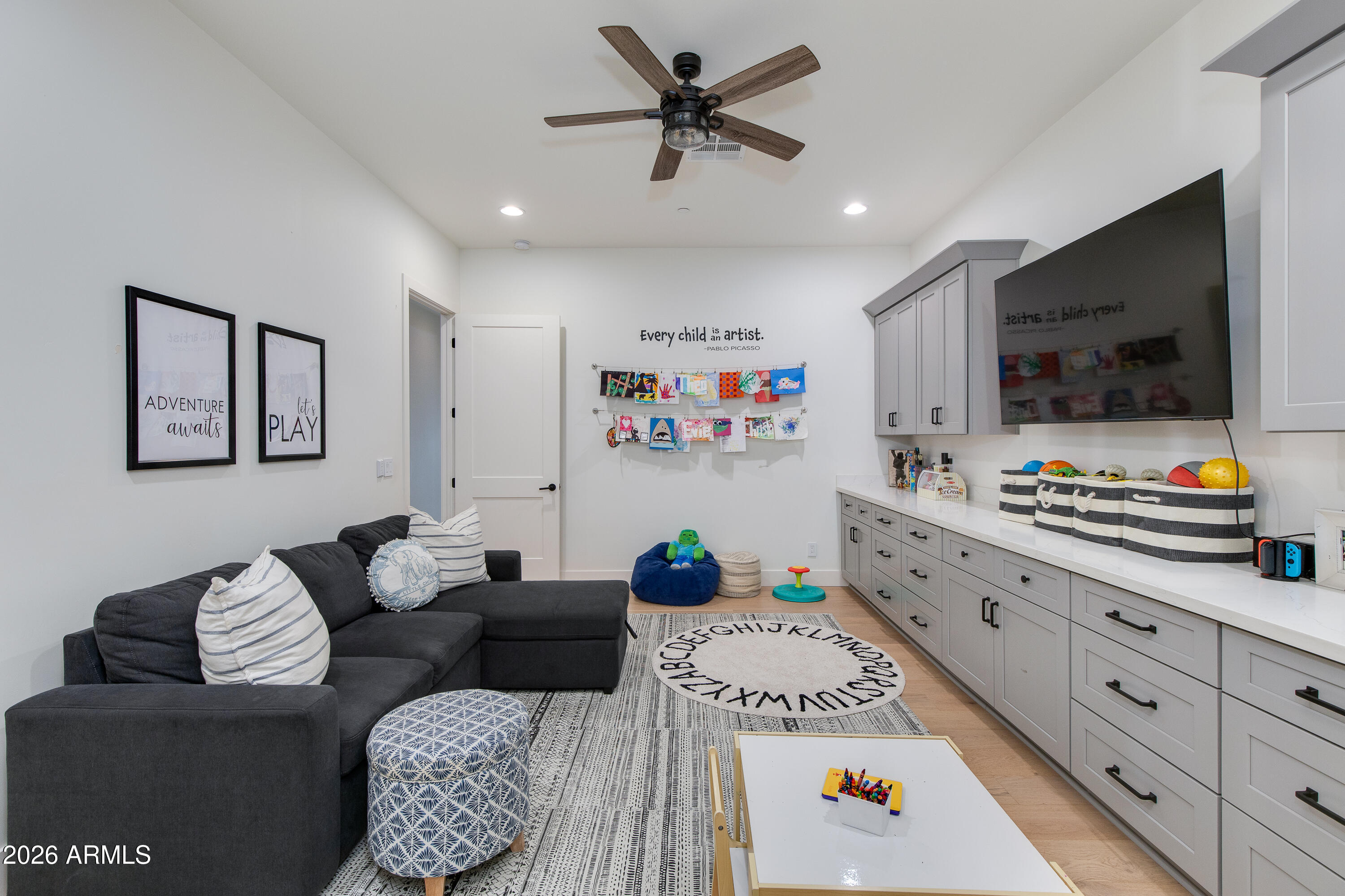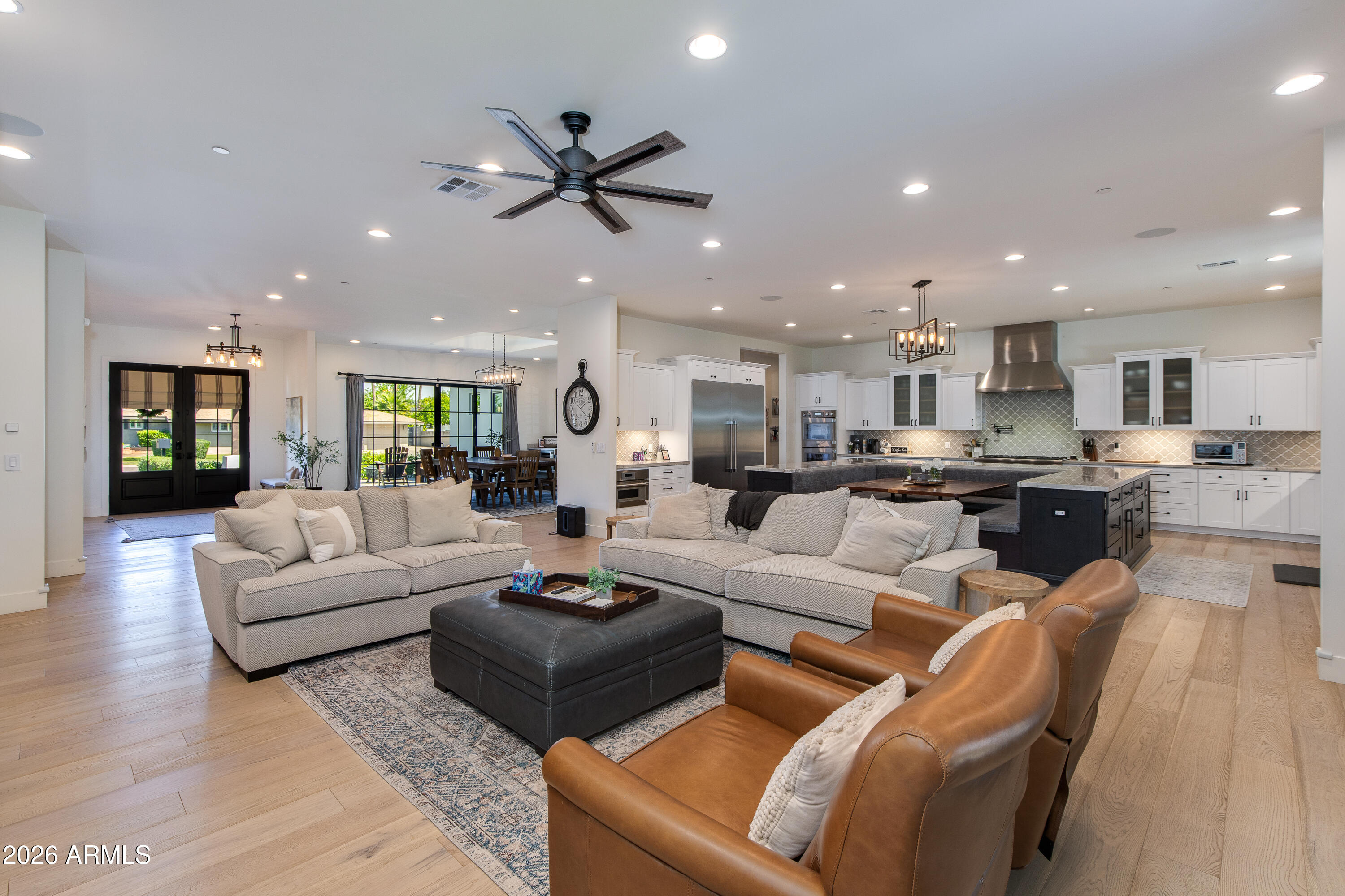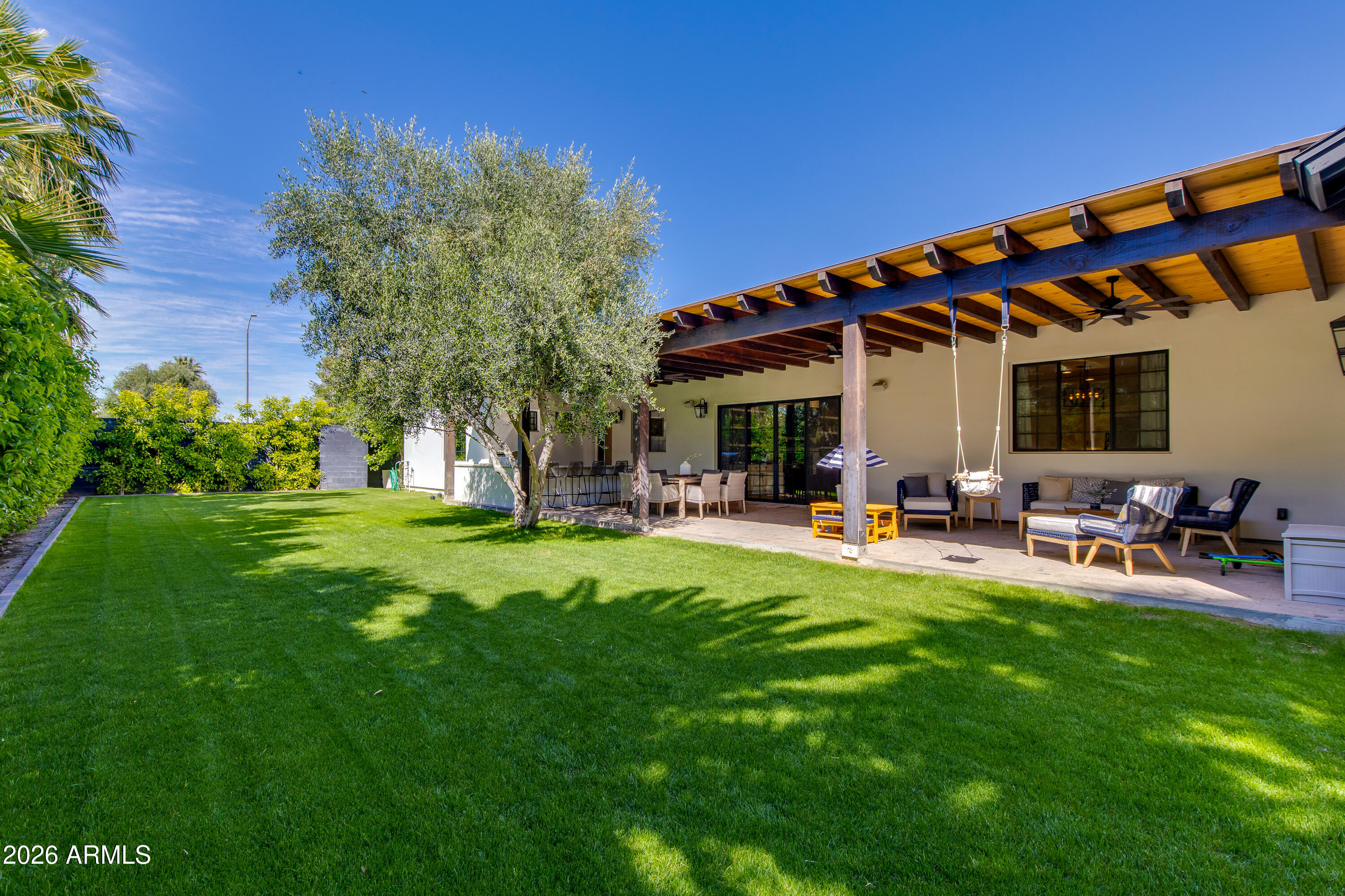 Warm and spacious 5-Bedroom Custom Luxury Home built for the owners in 2021 by OPA Development, beautifully landscaped with mature trees and hedges. This expansive 5-bedroom, 5-full-bath, 2-half-bath home offers 5,810 sq ft of elegant living on a 16,884 sq ft lot. Designed for modern living, this custom floor plan offers everything a buyer could desire starting with a beautifully designed master-suite (split floor plan) including a fireplace, private backyard exit, soaking tub, rain shower, his-and-her private toilet rooms, his-and-hers separate closets. Uniquely, the home includes 2 laundry rooms, 2 home offices, a home gym, and a playroom (perfect for kids, media or your hobbies) PLUS a stunning 50FT by 15FT (750 SF) covered patio featuring exposed wooden beams! Lot also allows for an ADU, mother-in-law suite, or pool under new zoning regulations. This home is an Entertainer's Dream with a formal dining room with custom cabinetry and dual wine refrigerators, spacious office/den with French doors, and a chef's kitchen featuring Thermador appliances (36'' fridge/freezer, 48" chefs gas stove top, double ovens), quartzite countertops, eat-in-kitchen nook, and a generous butler's pantry. Each wing was thoughtfully planned for private luxury. Each bedroom with an en-suite bath and walk-in closet. Outdoor living features a private backyard with a sport court, an outdoor kitchen, 48" grill, and beautifully landscaped grounds with Arizona's natural irrigation and wireless drip systems. In the heart of North Central, you are close to Murphy's Bridle Path. Nearby Madison Simis and Madison Meadows and private schools include Brophy Prep, Xavier Prep, All Saints Episcopal Day School, St. Francis Xavier, and MTA. This home seamlessly blends luxury, functionality, and location perfect for families seeking comfort, style, and room to grow.