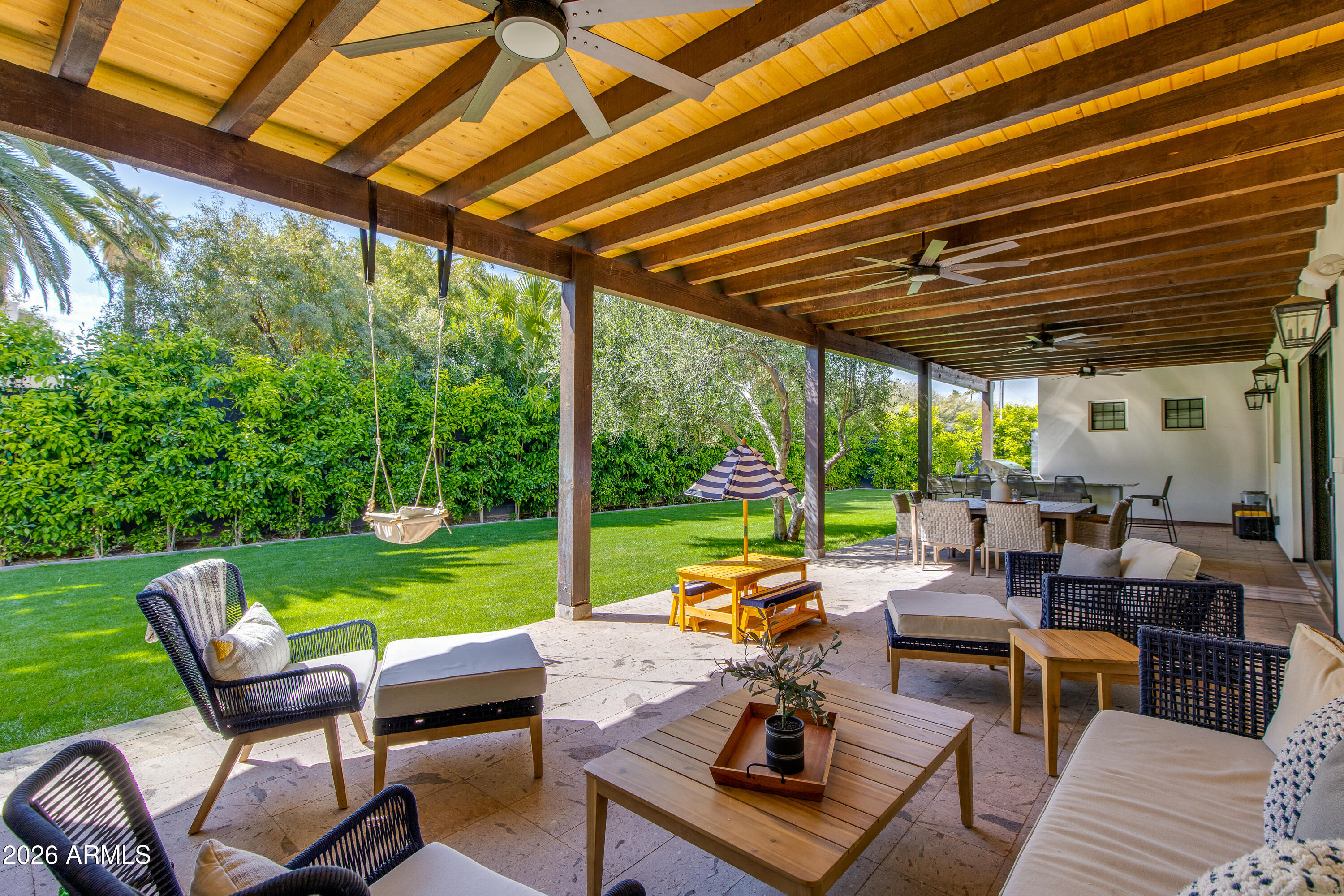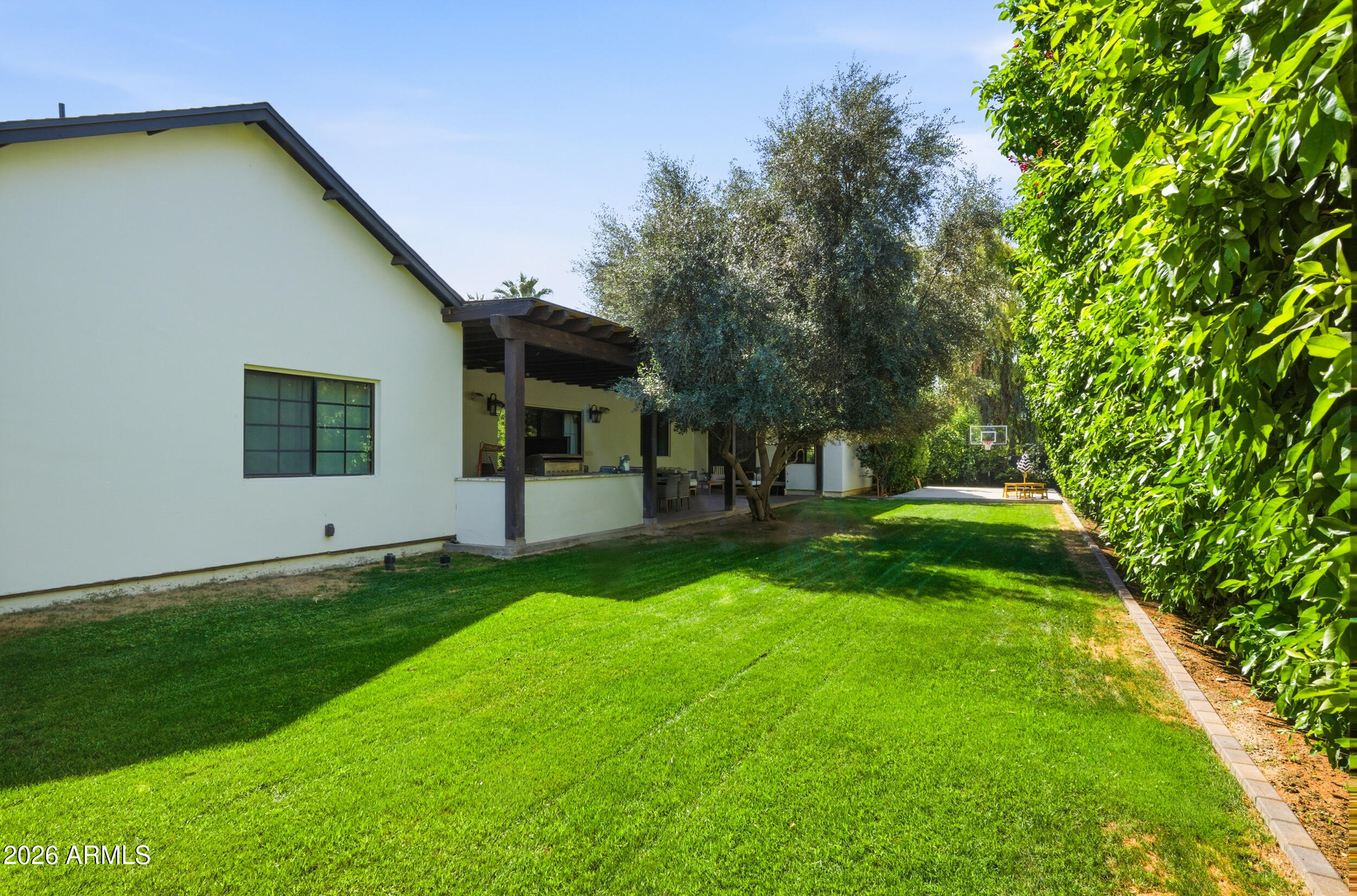 Lot also allows for an ADU, mother-in-law suite, or pool under new zoning regulations. This home is an Entertainer's Dream with a formal dining room with custom cabinetry and dual wine refrigerators, spacious office/den with French doors, and a chef's kitchen featuring Thermador appliances (36'' fridge/freezer, 48" chefs gas stove top, double ovens), quartzite countertops, eat-in-kitchen nook, and a generous butler's pantry. Each wing was thoughtfully planned for private luxury. Each bedroom with an en-suite bath and walk-in closet. Outdoor living features a private backyard with a sport court, an outdoor kitchen, 48" grill, and beautifully landscaped grounds with Arizona's natural irrigation and wireless drip systems. In the heart of North Central, you are close to Murphy's Bridle Path. Nearby Madison Simis and Madison Meadows and private schools include Brophy Prep, Xavier Prep, All Saints Episcopal Day School, St. Francis Xavier, and MTA. This home seamlessly blends luxury, functionality, and location perfect for families seeking comfort, style, and room to grow.