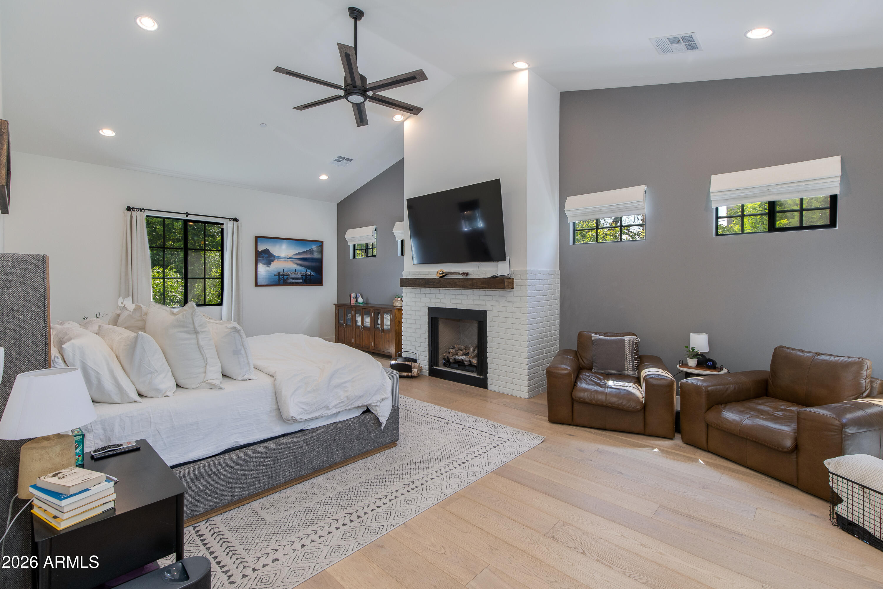 This custom home has EVERYTHING but a pool, but we are offering a **POOL CREDIT**. to buyers. See renderings. Warm and spacious 5-Bedroom Custom Luxury Home built for the owners in 2021 by OPA Development, beautifully landscaped with mature trees and hedges. This expansive 5-bedroom, 5-full-bath, 2-half-bath home offers 5,810 sq ft of elegant living on a 16,884 sq ft lot. Designed for modern living, this custom floor plan offers everything a buyer could desire starting with a beautifully designed master-suite (split floor plan) including a fireplace, private backyard exit, soaking tub, rain shower, his-and-her private toilet rooms, his-and-hers separate closets. Uniquely, the home includes 2 laundry rooms, 2 home offices, a home gym, and a playroom (perfect for kids, media or your hobbies) PLUS a stunning 50FT by 15FT (750 SF) covered patio featuring exposed wooden beams!