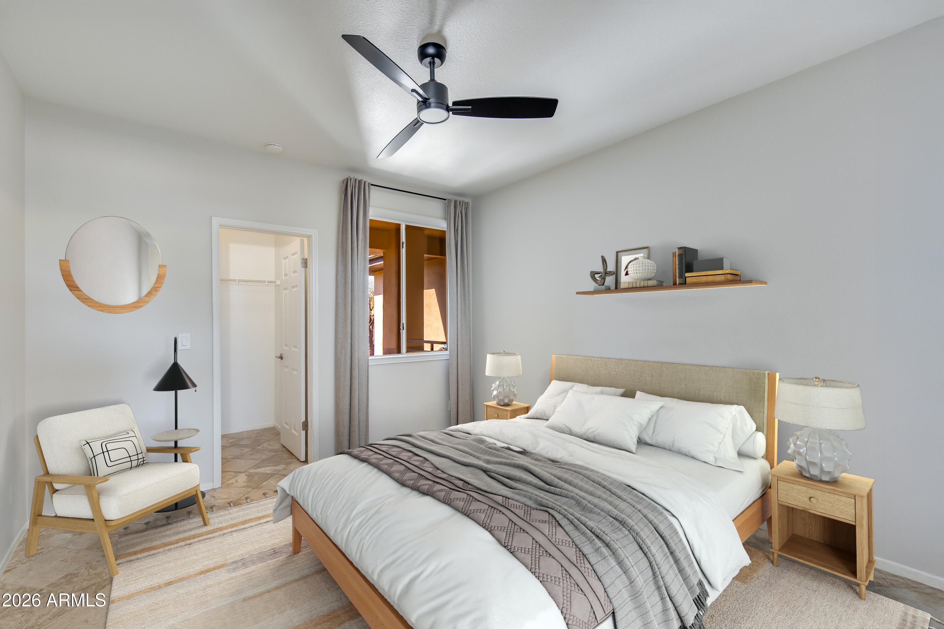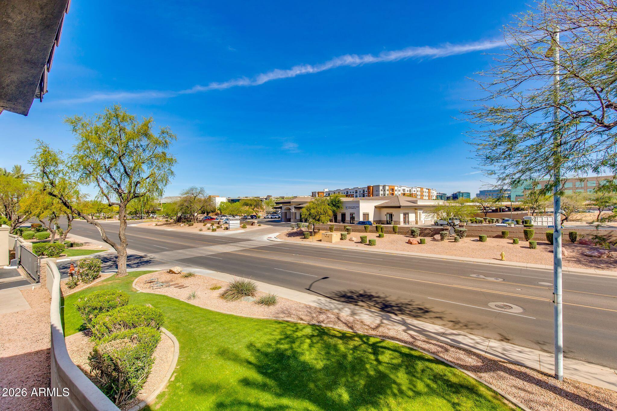 Upgraded 2 bedroom, 2 bathroom upstairs condo offering over 1,100 square feet with an open floor plan. Interior features include tile flooring throughout, crown molding, a wood-burning fireplace, and a covered patio. The kitchen includes upgraded cabinetry with an antique finish, stainless steel appliances, and a pantry. Ceiling fans are located in all rooms along with wood window blinds. Both bedrooms offer spacious walk-in closets. Bathrooms feature tiled walk-in showers and Corian countertops. Residents of Plaza Residences enjoy amenities including two pools (one heated), spa, fitness center, putting green, clubhouse with billiards, and a business center. Gated community located near Kierland Commons and Scottsdale Quarter.