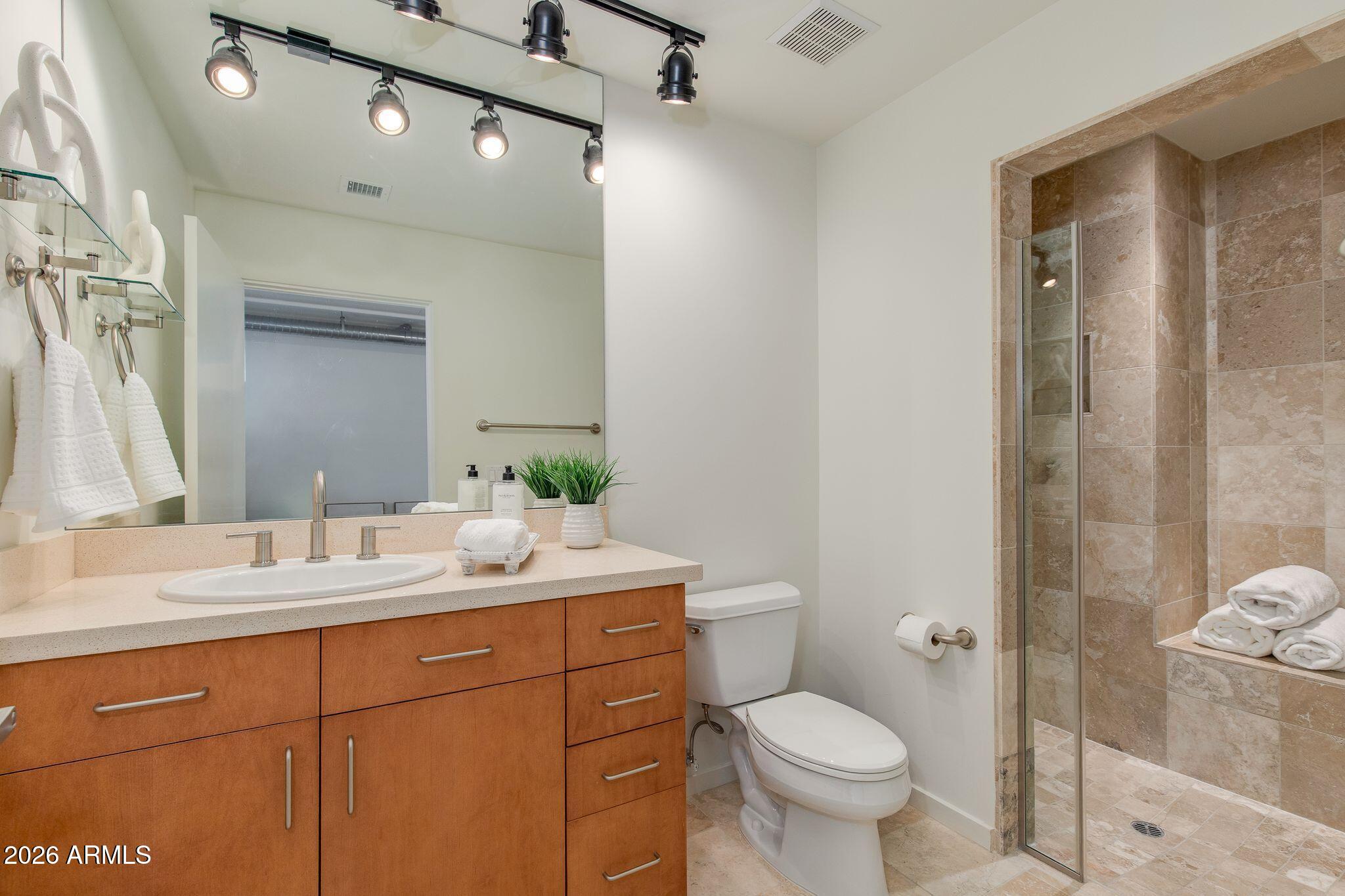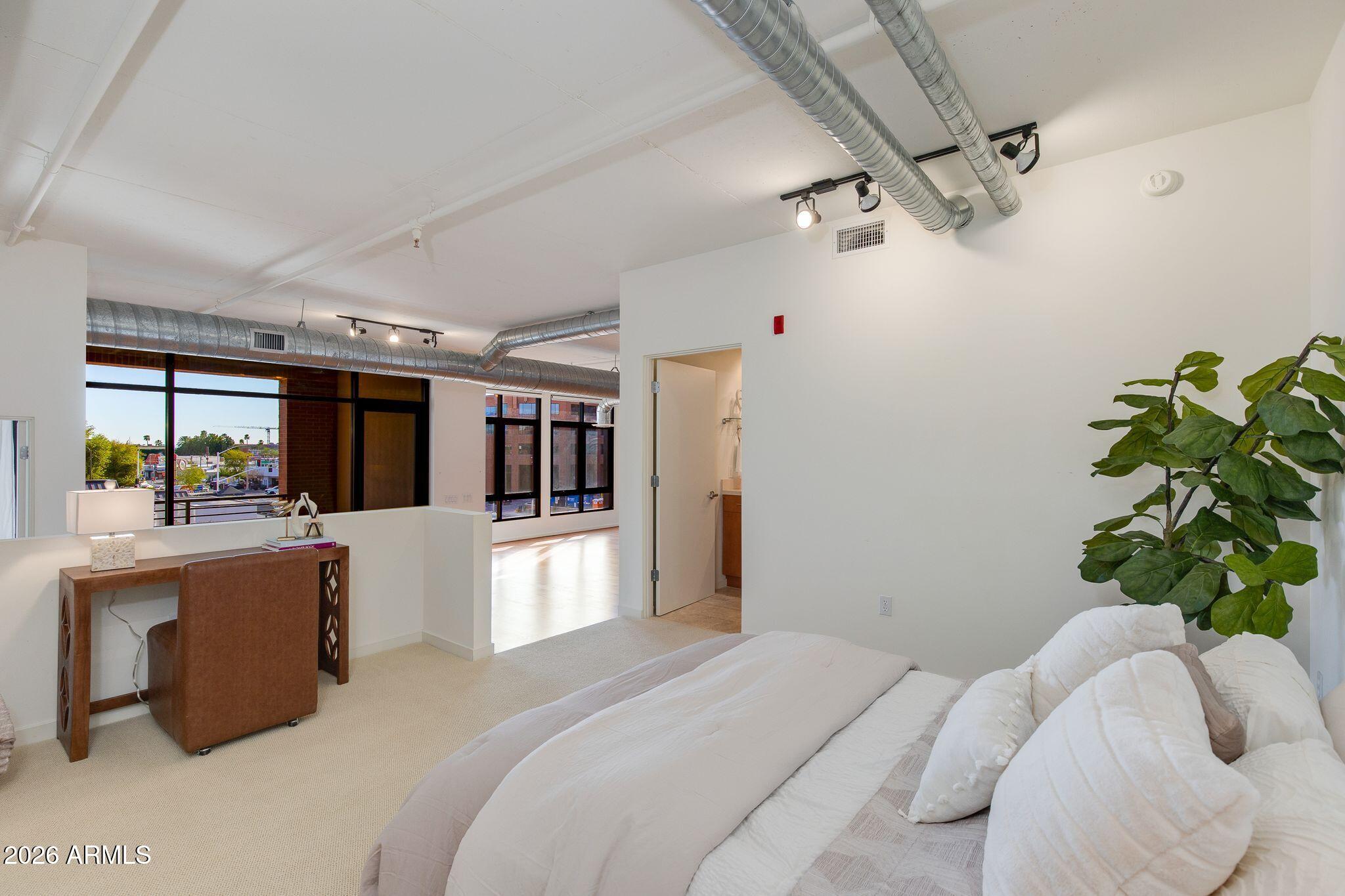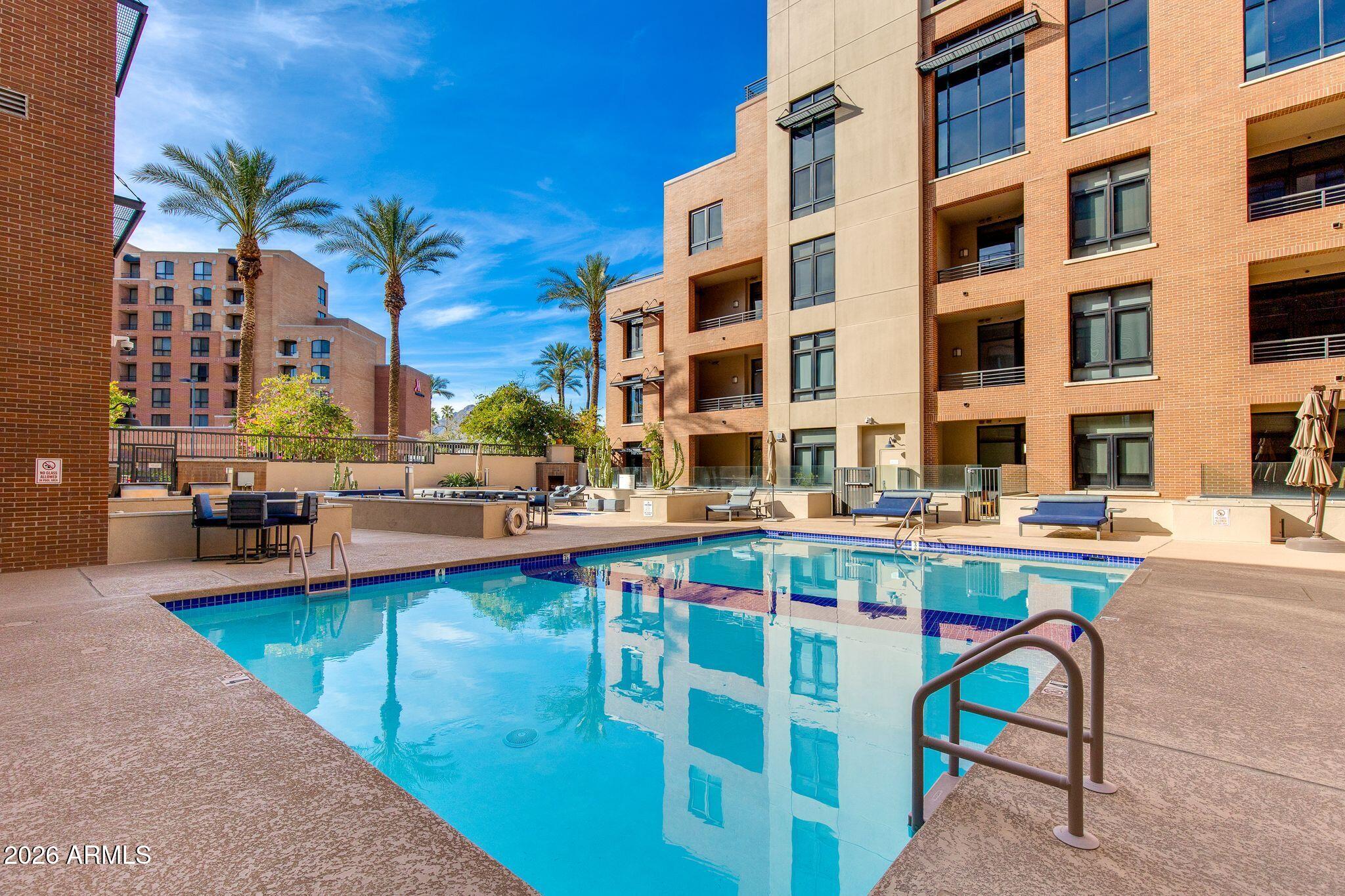 One of the larger exclusive loft residences at Third Avenue Lofts, this sophisticated 2BR/2BA condo places you in the heart of Old Town Scottsdale all while offering incredible privacy with luxury living. Soaring ceilings, expansive windows, upgraded finishes and an open-concept layout showcase the building's signature modern industrial design while creating light-filled spaces ideal for both relaxing and entertaining. Large covered balcony extends living space outdoors. Ideally located near the elevator for effortless access, with two dedicated parking spaces just steps away in the secure underground garage. Enjoy resort-style amenities including pool, spa, fitness center & concierge services mere moments from Fashion Square, acclaimed dining, galleries, nightlife and freeways.