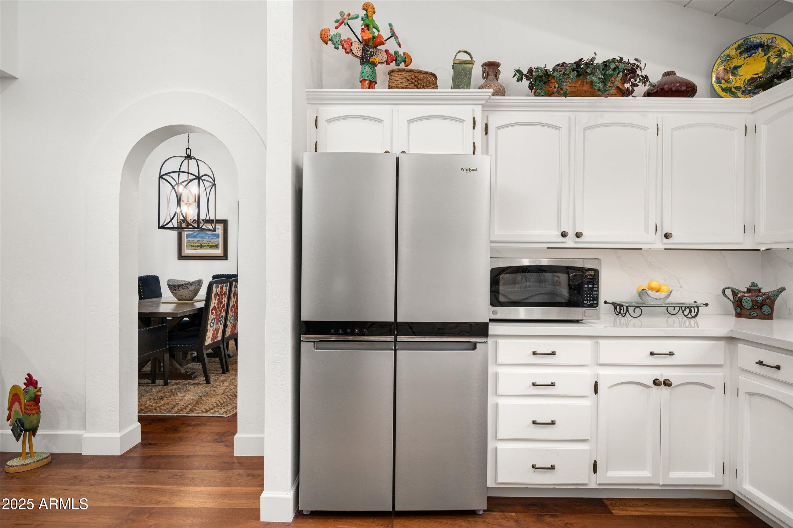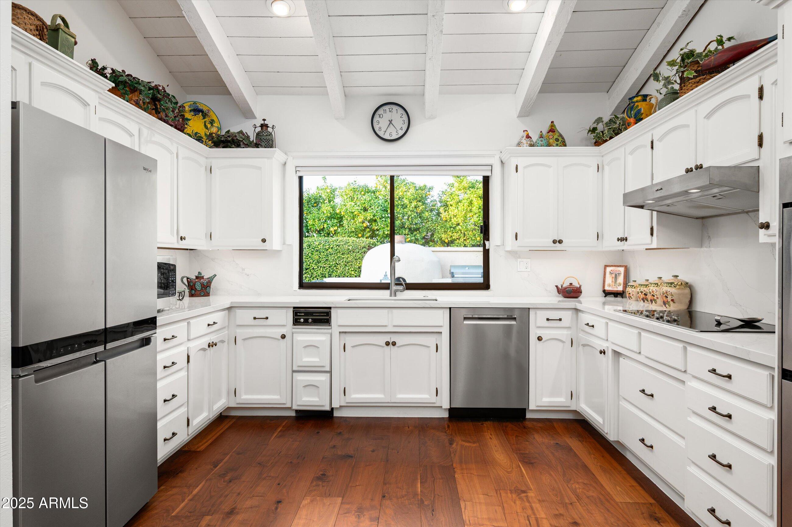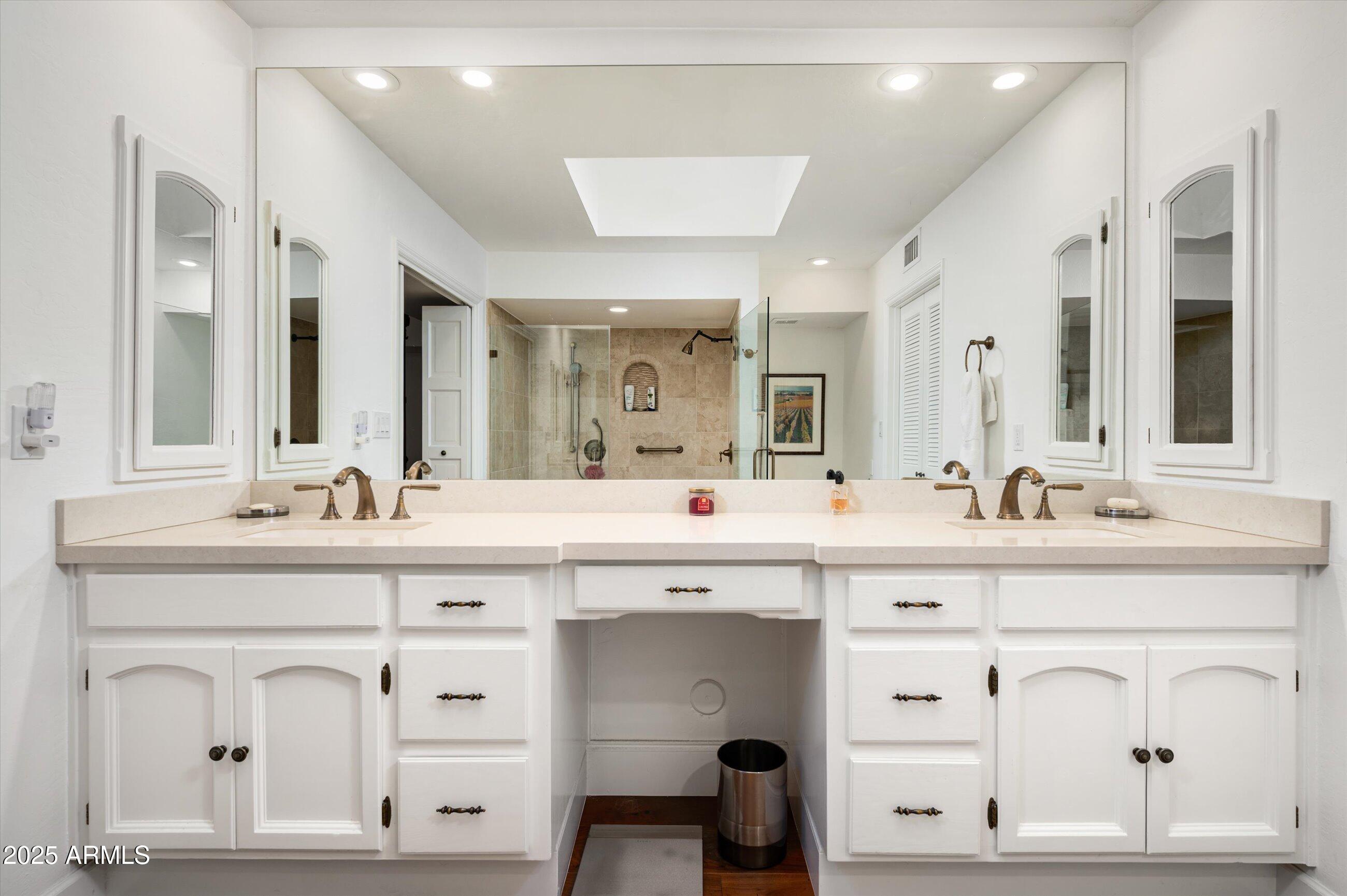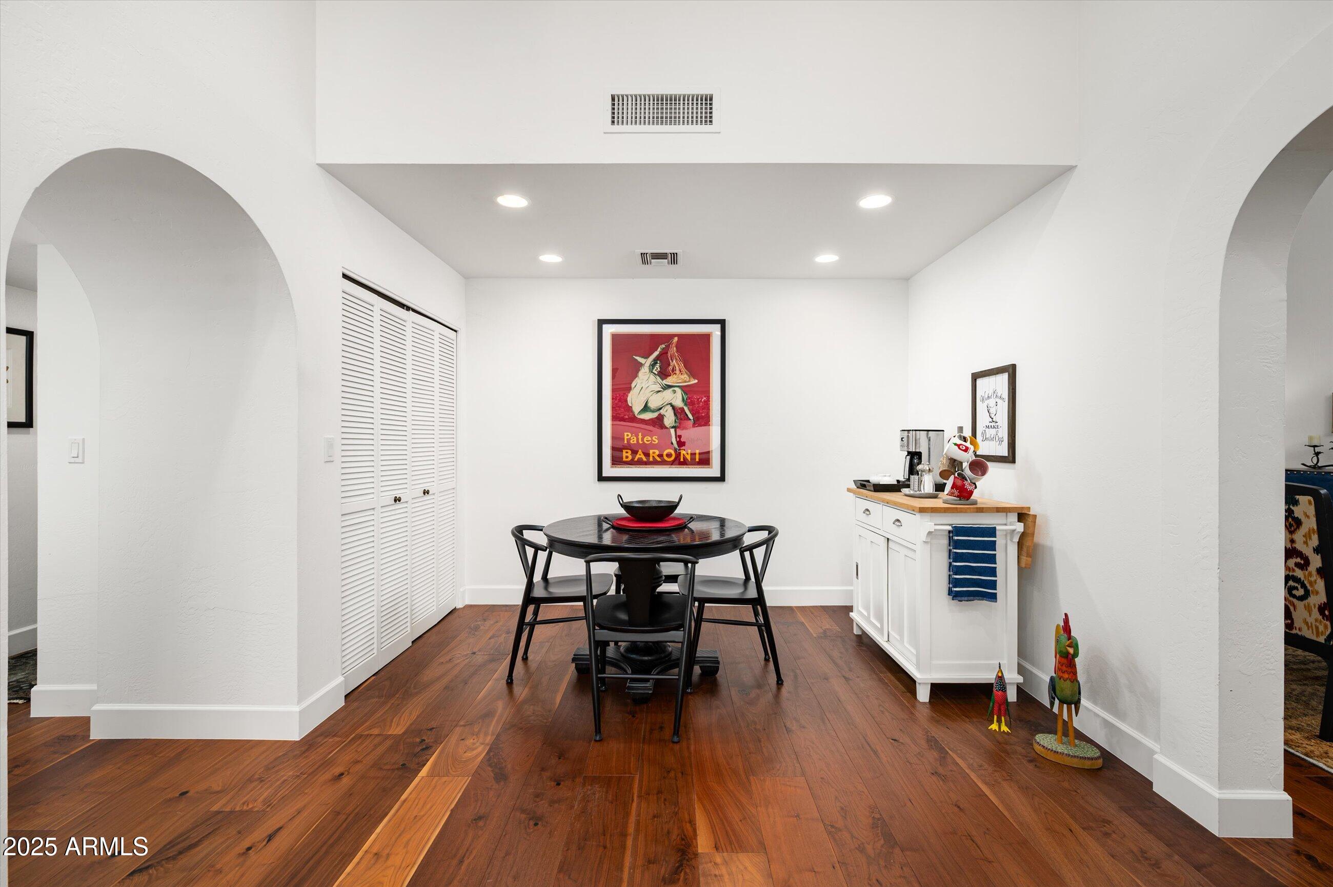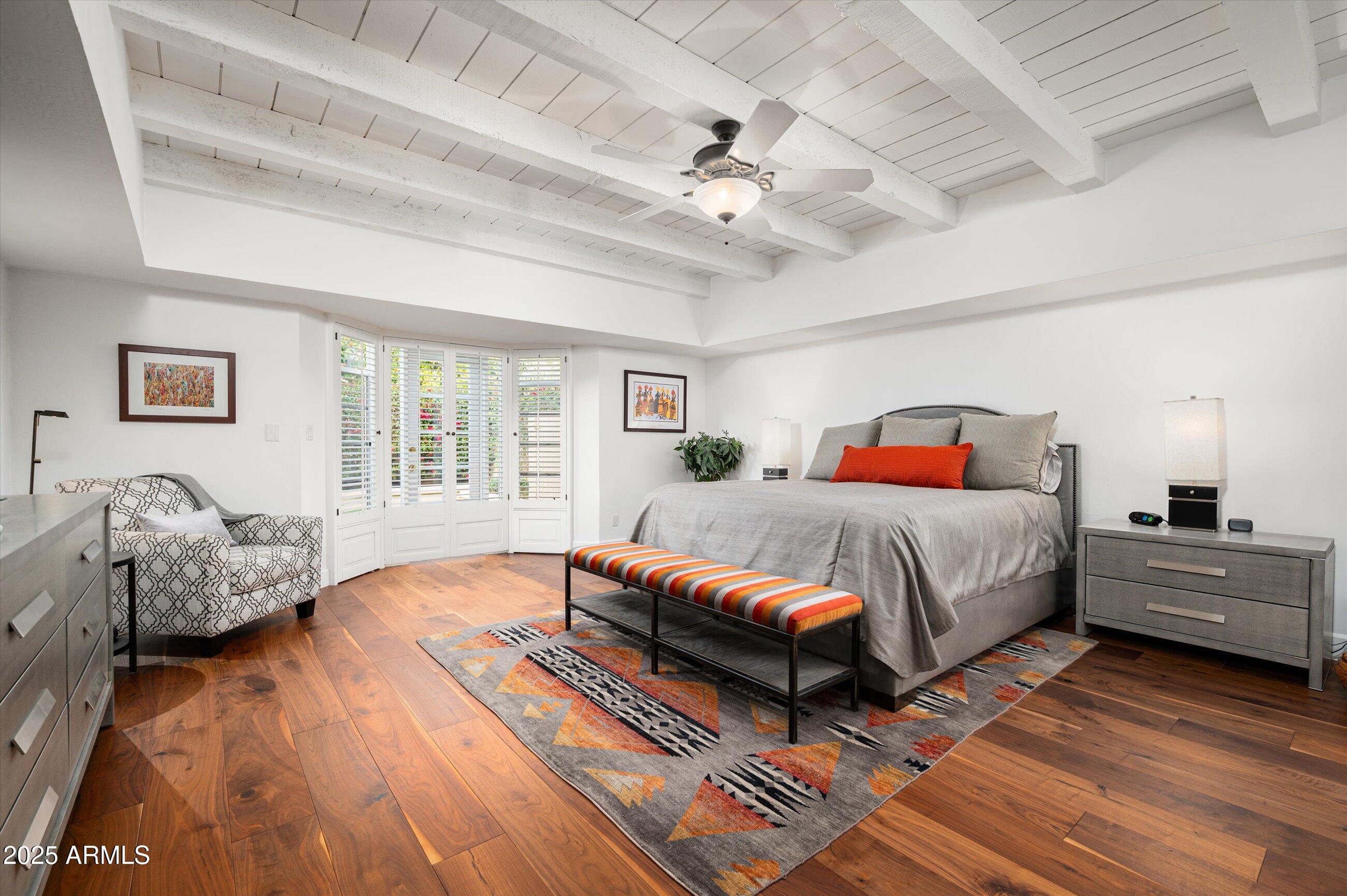 REMODELED- SINGLE-LEVEL Spanish villa by renowned builder Geoffrey Edmunds. Light-filled on a desirable N/S lot w/solid block construction, wide-plank wood floors, and tongue-&-groove ceilings. Open great room w/vaulted ceilings & custom dry bar. Bright white kitchen w/quartz counters & SS appliances. Private primary suite w/exit doors to turf yard, walk-in shower & walk-in closet. Private laundry, tons of storage & 2-car garage. Smart floor plan w/2 beds, 2 baths + den. Community amenities include 2 tennis courts, clubhouse, fitness center, 2 pools & spa, & off-leash dog park. 24 HRS-MANNED GATED. Prime Central Scottsdale location in McCormick Ranch near 2 world-class golf courses, shopping & dining. Recently updated ROOF & ELECTRICAL PANEL.