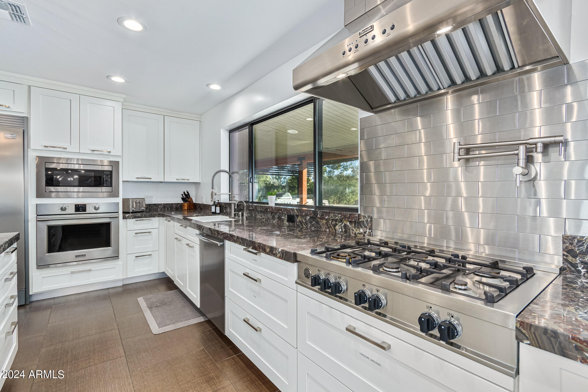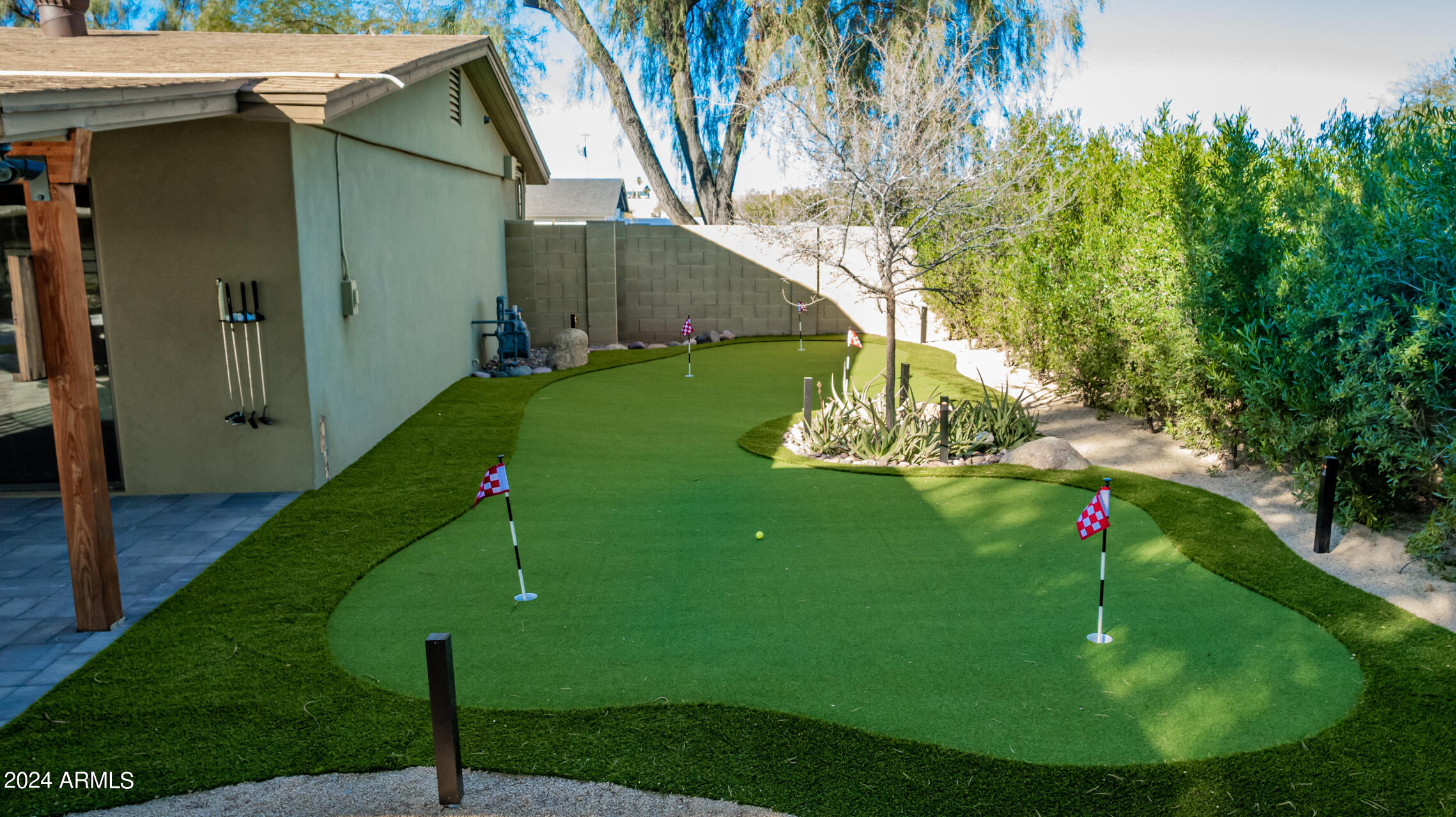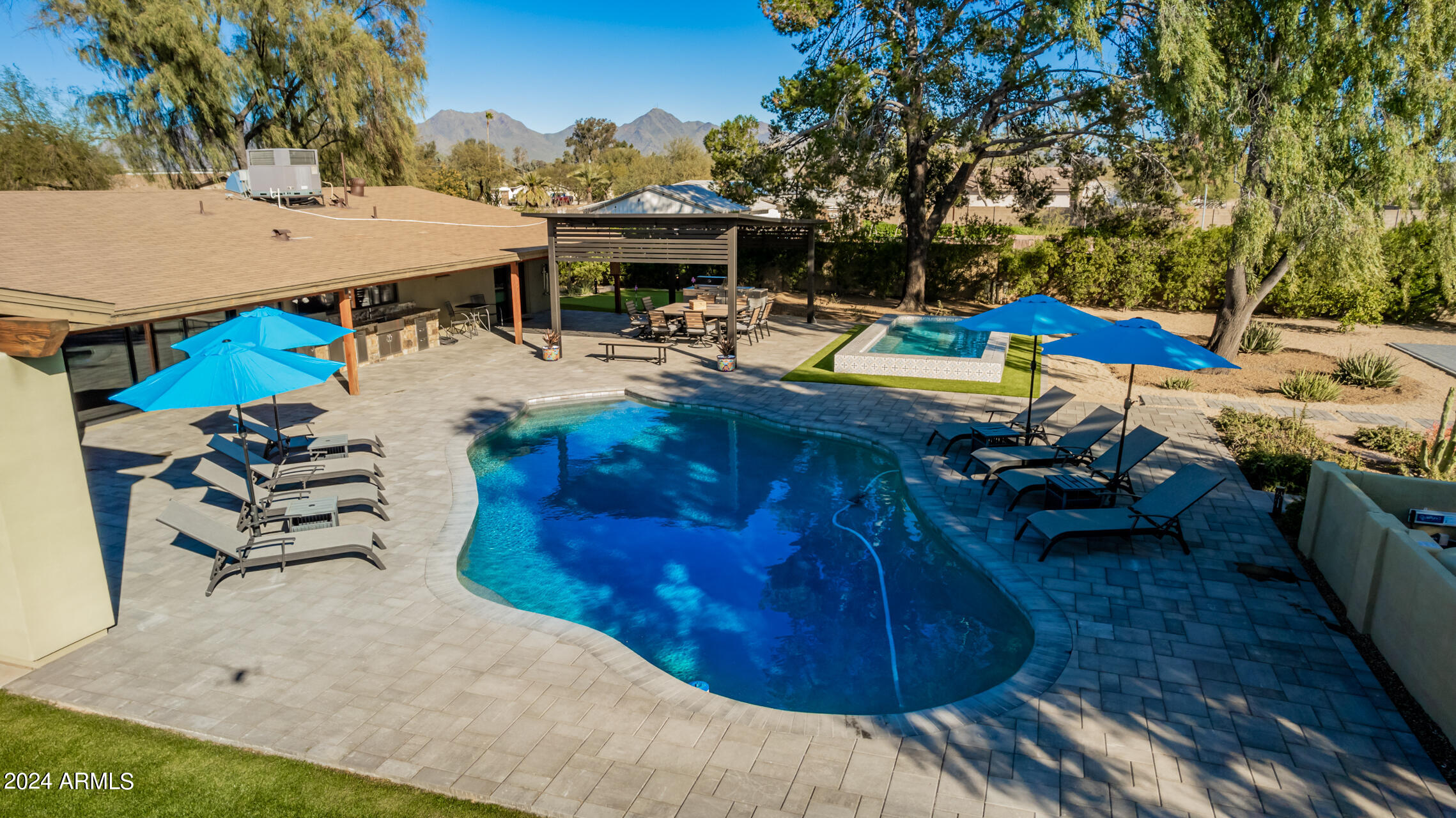 Experience the ultimate North Scottsdale lifestyle on a nearly one-acre lot just minutes from Kierland Commons & Scottsdale Quarter! This beautifully remodeled estate features over $220,000 in upgrades including a brand NEW ROOF and a seamless open-concept design ideal for both everyday living and upscale entertaining. The chef's kitchen anchors the home with an Italian marble waterfall island, premium stainless-steel appliances, and effortless flow into the expansive living space with sliding glass doors opening to the backyard. The resort-style backyard was fully redesigned in 2023 and is truly a showstopper! Enjoy a saltwater pool with new Pentair equipment, custom pergola with built-in BBQ, gas fire pit, 5-hole putting green and expansive natural grass areas. The massive lot offers incredible flexibility to add a casita, guest house, or additional outdoor amenities, making this property ideal for future expansion or multi-generational living. Generously sized bedrooms include dual primary suites, private patio access, and versatile bonus space. Offering rare privacy, endless outdoor potential, and close proximity to world-class shopping, dining, Scottsdale Airport (SDL), and Downtown Scottsdale, this is a true North Scottsdale sanctuary that blends luxury, lifestyle, and long-term value.