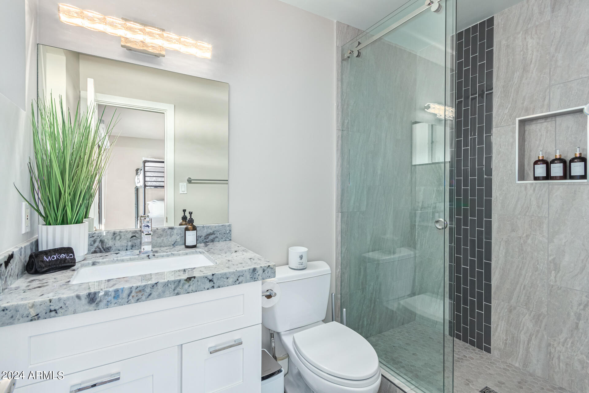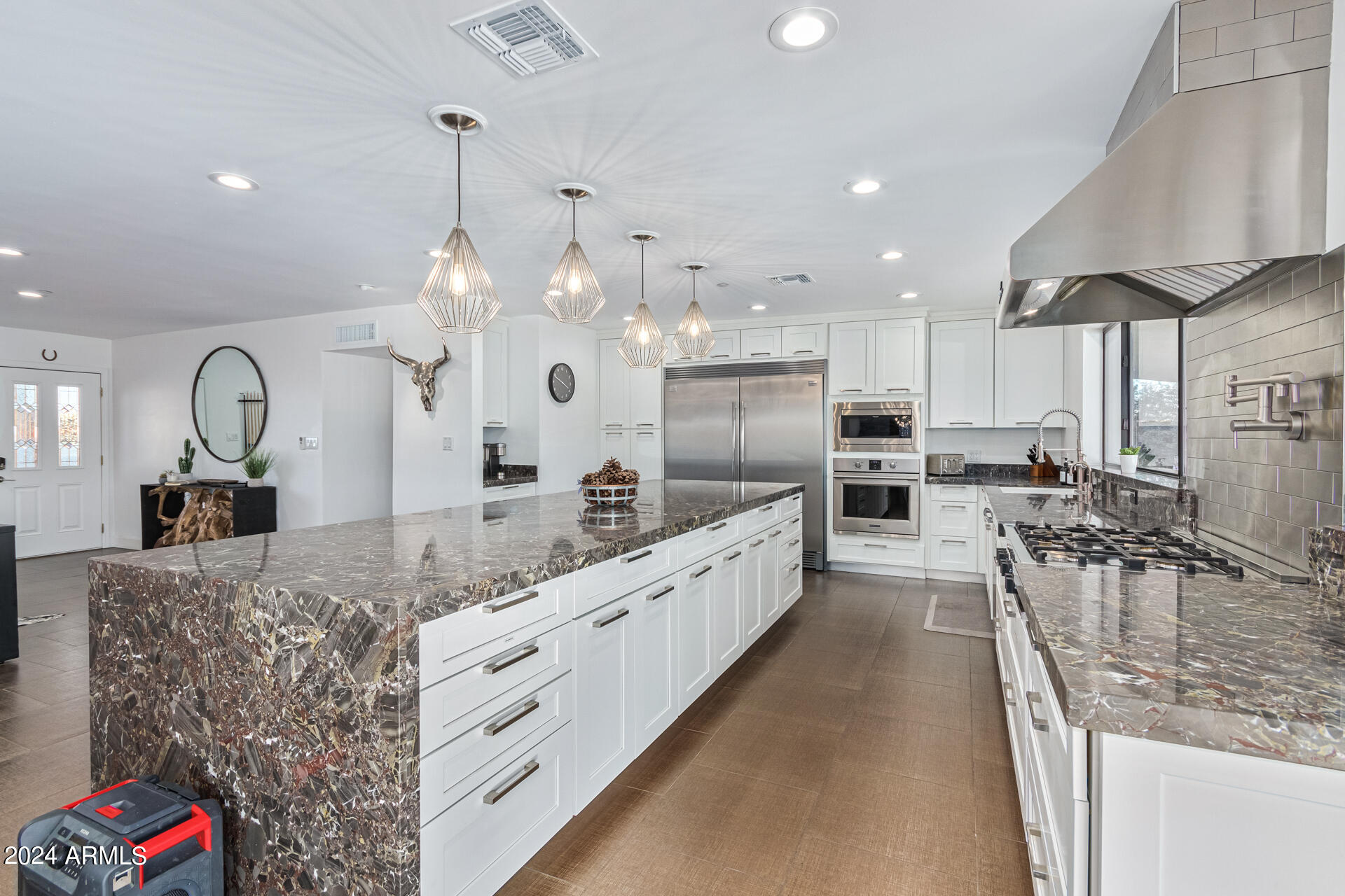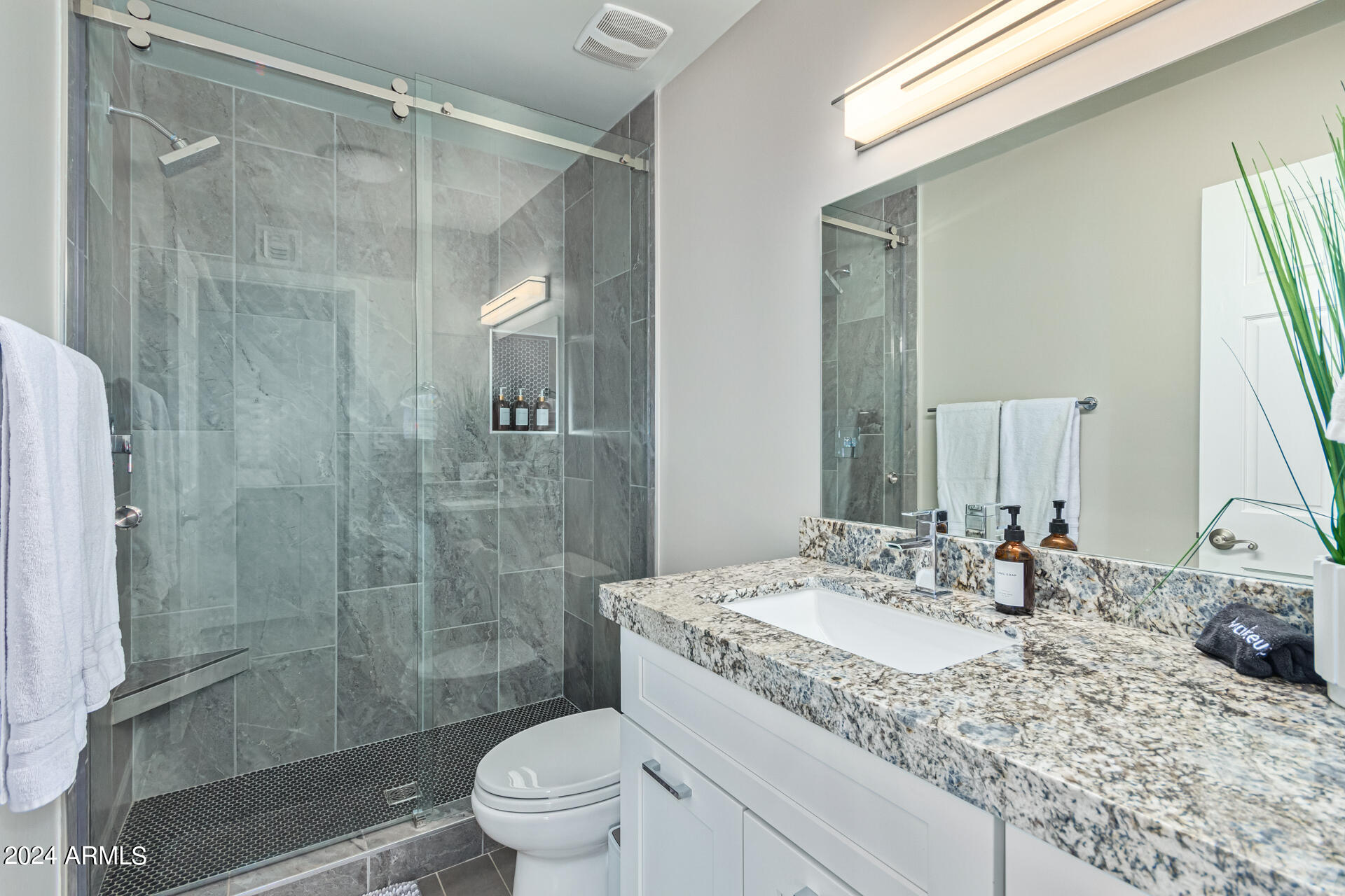 Experience the ultimate North Scottsdale lifestyle on a nearly one-acre lot just minutes from Kierland Commons & Scottsdale Quarter! This beautifully remodeled estate features over $220,000 in upgrades including a brand NEW ROOF and a seamless open-concept design ideal for both everyday living and upscale entertaining. The chef's kitchen anchors the home with an Italian marble waterfall island, premium stainless-steel appliances, and effortless flow into the expansive living space with sliding glass doors opening to the backyard. The resort-style backyard was fully redesigned in 2023 and is truly a showstopper! Enjoy a saltwater pool with new Pentair equipment, custom pergola with built-in BBQ, gas fire pit, 5-hole putting green and expansive natural grass areas. The massive lot offers incredible flexibility to add a casita, guest house, or additional outdoor amenities, making this property ideal for future expansion or multi-generational living. Generously sized bedrooms include dual primary suites, private patio access, and versatile bonus space. Offering rare privacy, endless outdoor potential, and close proximity to world-class shopping, dining, Scottsdale Airport (SDL), and Downtown Scottsdale, this is a true North Scottsdale sanctuary that blends luxury, lifestyle, and long-term value.