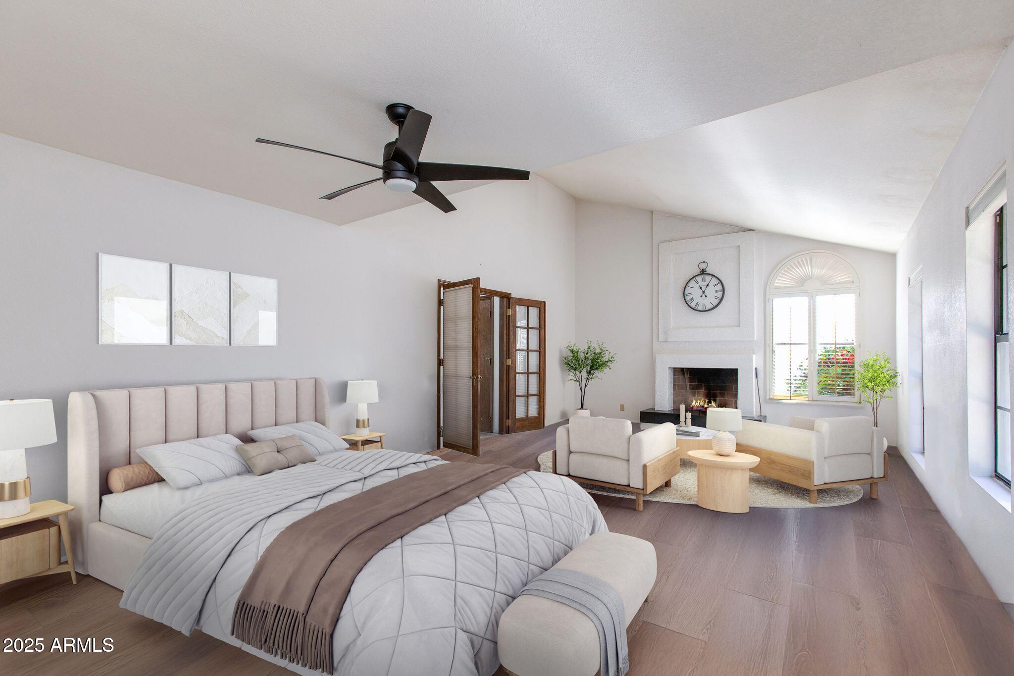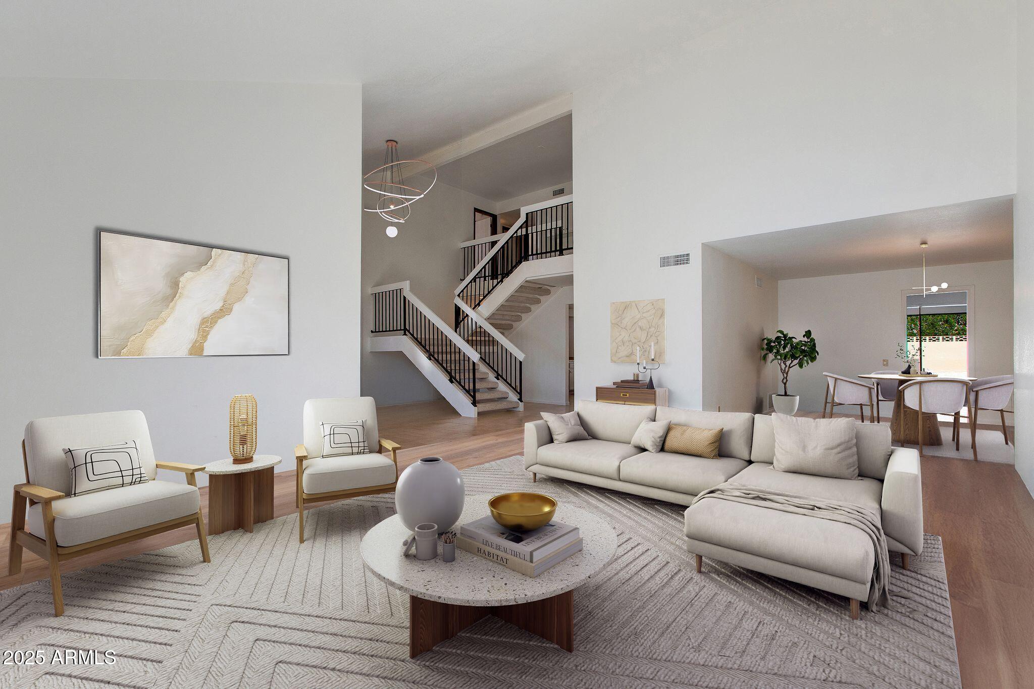 Beautiful custom family home in the highly desirable McCormick Ranch, located on a quiet cul-de-sac just steps from the greenbelt. This two-story 4-bedroom, 2.5-bath home offers approximately 3,842 sq ft of living space and the opportunity to make it your dream home. Lofty vaulted ceilings and abundant natural light enhance the home throughout. Spacious kitchen with eat-in breakfast area. Large living and dining rooms plus family room with fireplace and wet bar. The primary suite features a sitting area with private fireplace, en-suite bath, and dressing area. Upstairs offers three generously sized bedrooms and a versatile flex space with balcony, ideal for a fifth bedroom, office, or den. Private backyard with an oversized Pebble Tec pool and covered patio completes this beautiful home.