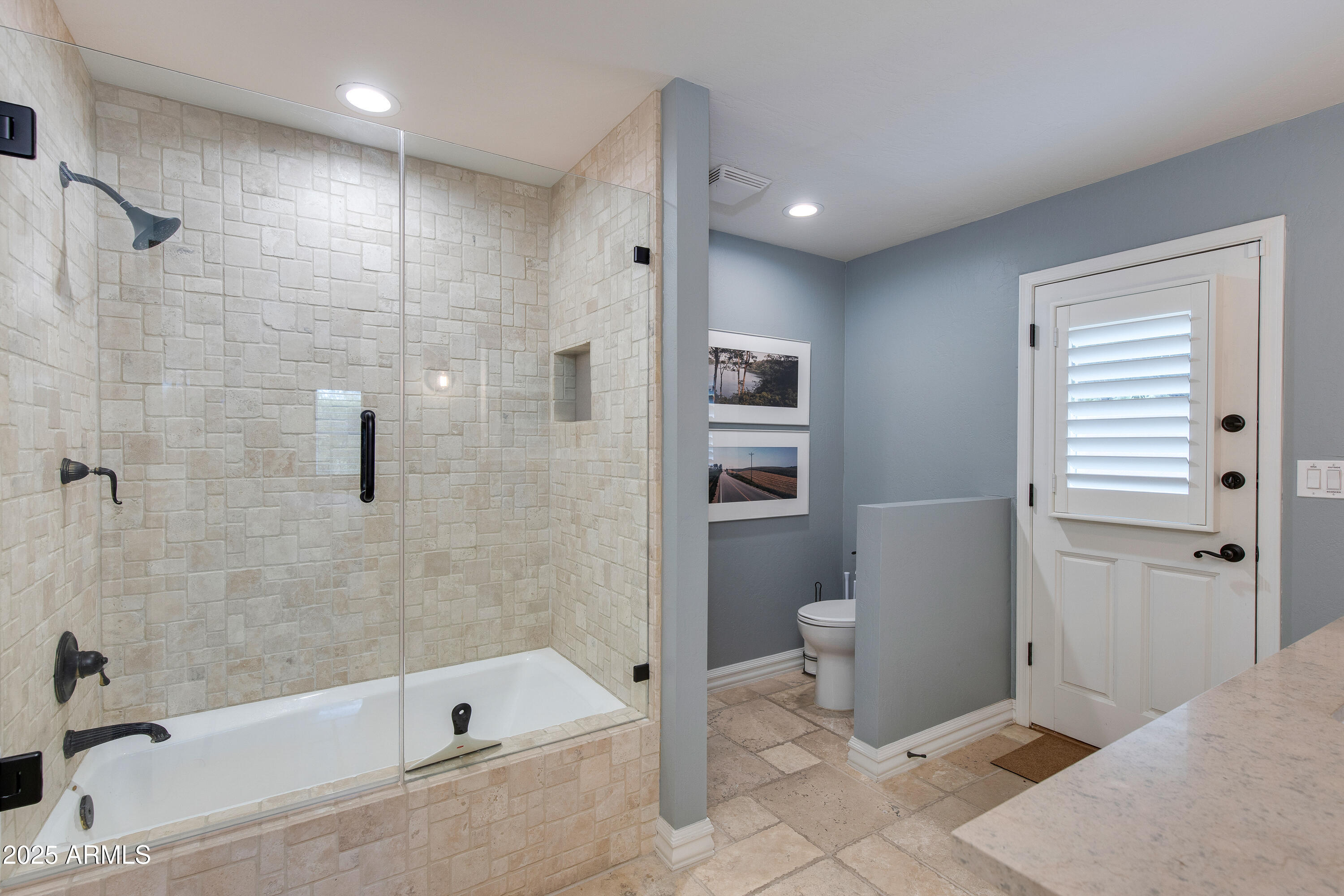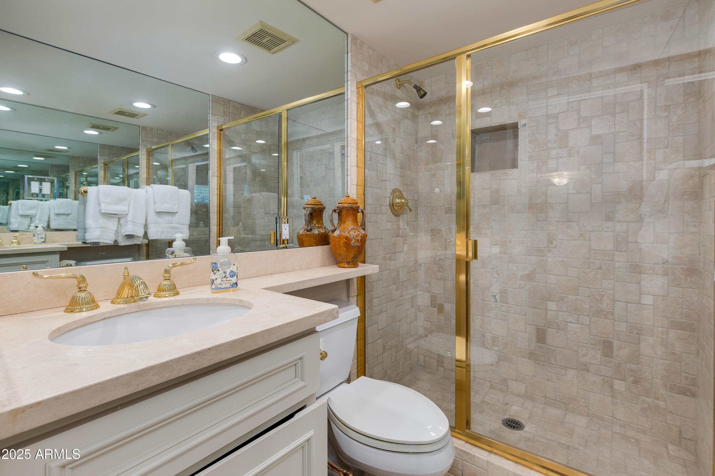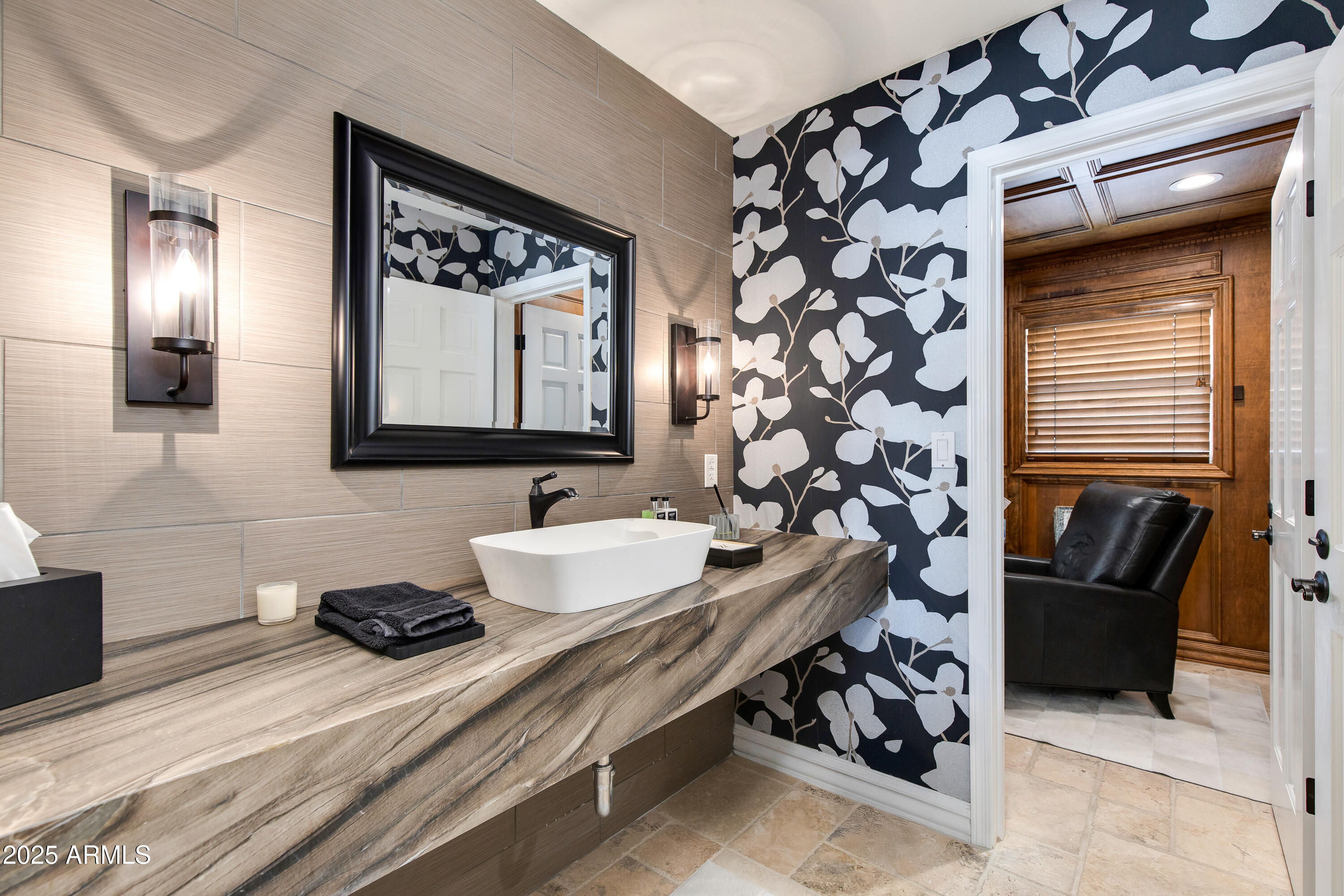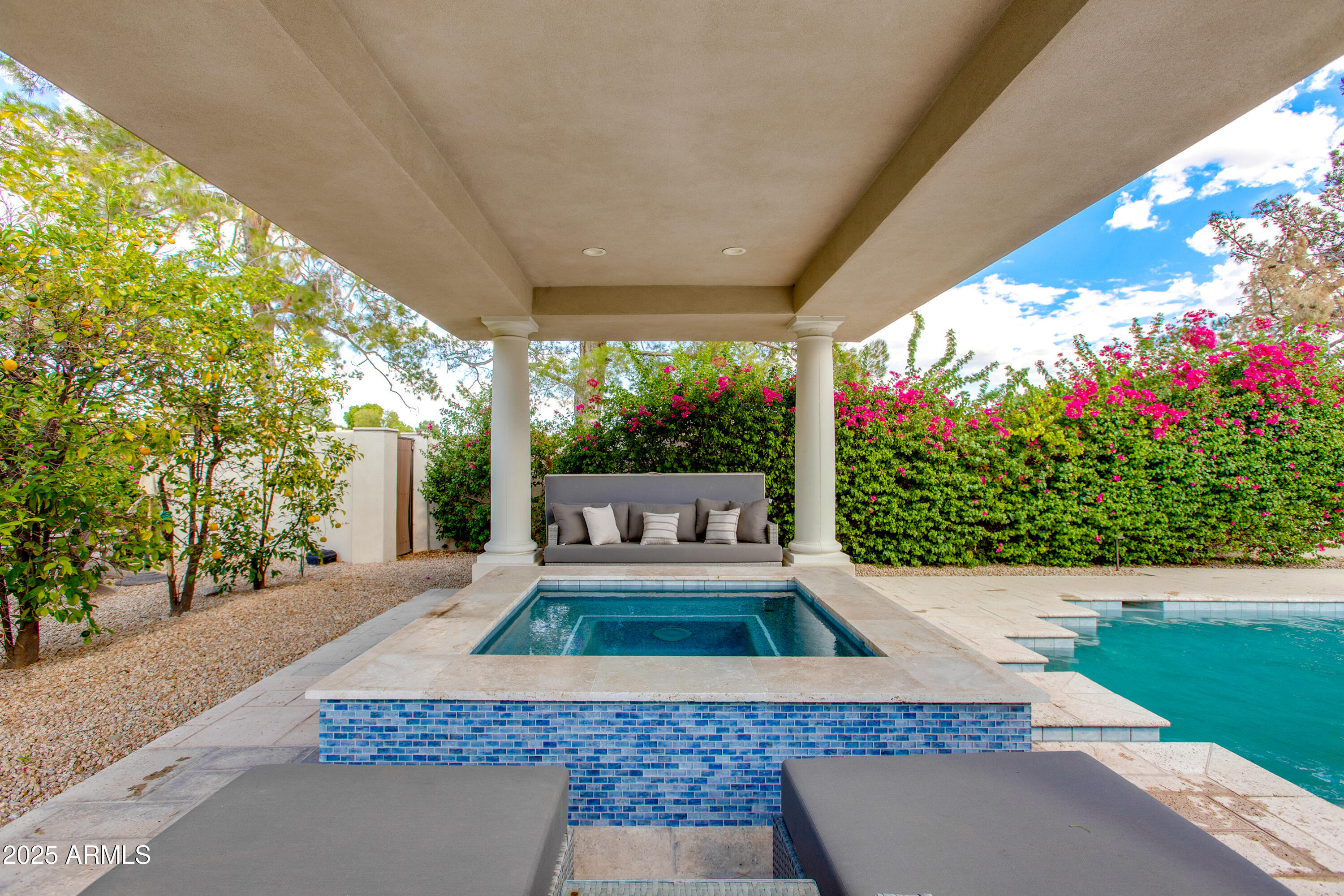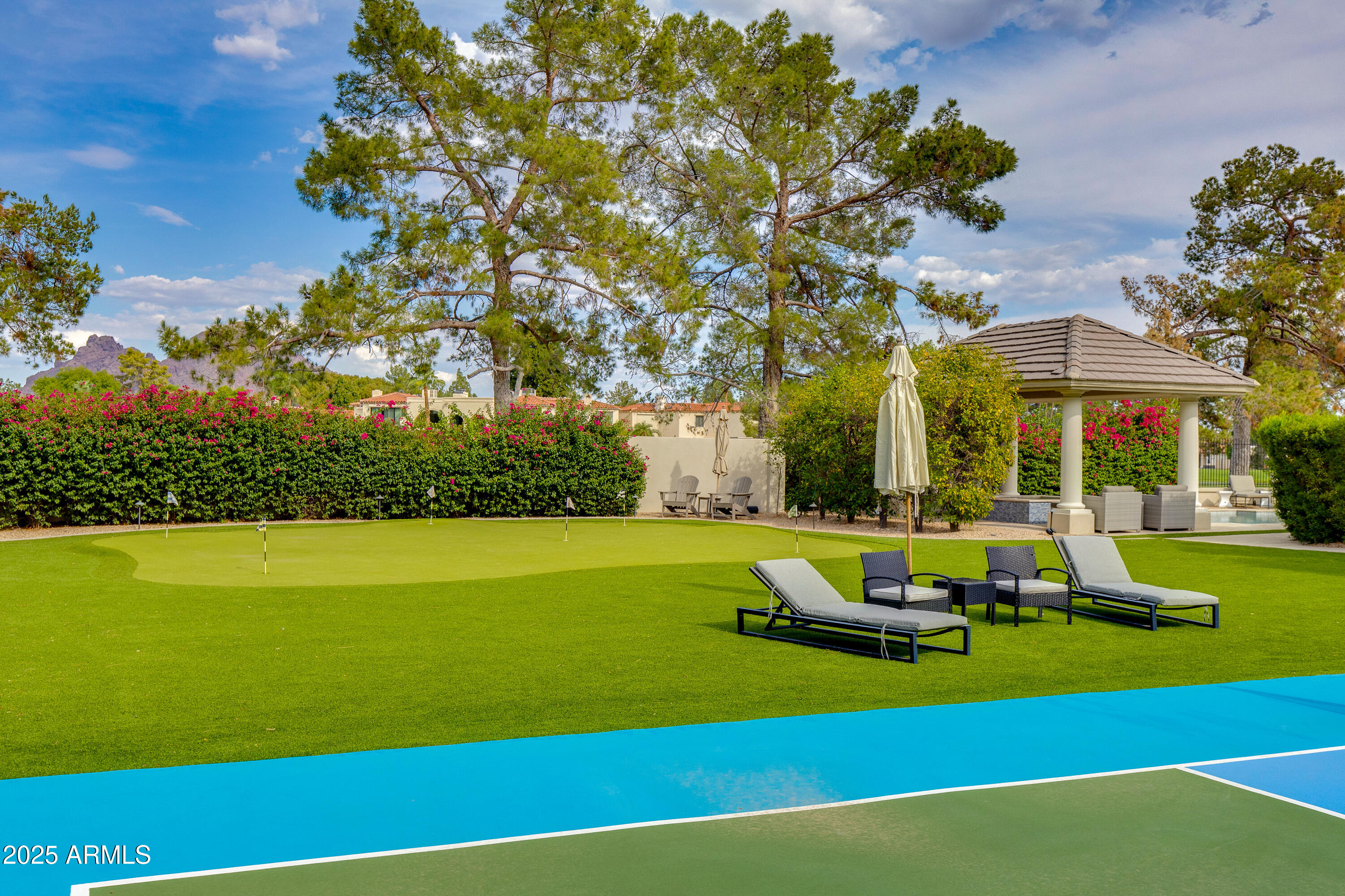 Welcome to 87 Biltmore Estate! Perfectly positioned at the end of a cul-de-sac, this single-level estate sits on an elevated golf course lot, offering views of Camelback Mountain and the prestigious Biltmore Links Golf Course. Step through custom iron doors into a foyer, where coffered ceilings, stone flooring, and abundant natural light fill the main living space. The kitchen is the true centerpiece, featuring a spacious island with seating, custom cabinetry, and stainless steel appliances. Just steps away, a built-in bar connects seamlessly to the living spaces, making entertaining effortless. This estate was designed for both work and play, offering a media room for movie nights, a private office or library for work, and a home gym. A private wing of the home is devoted to the primary suite complete with a fireplace and newly renovated spa-inspired bath featuring a spacious walk-in shower, dual vanities and custom closet. Guests will enjoy their own private wing with a separate entrance, ensuring comfort and privacy for all. Designed for the ultimate Arizona lifestyle, the backyard is an outdoor haven. Enjoy a pickleball court, a custom putting and chipping range, a fully equipped outdoor kitchen, a sparkling pool, and a luxurious spa. Rare, private, and impeccably appointed, 87 Biltmore Estate embodies the essence of Arizona Biltmore living.